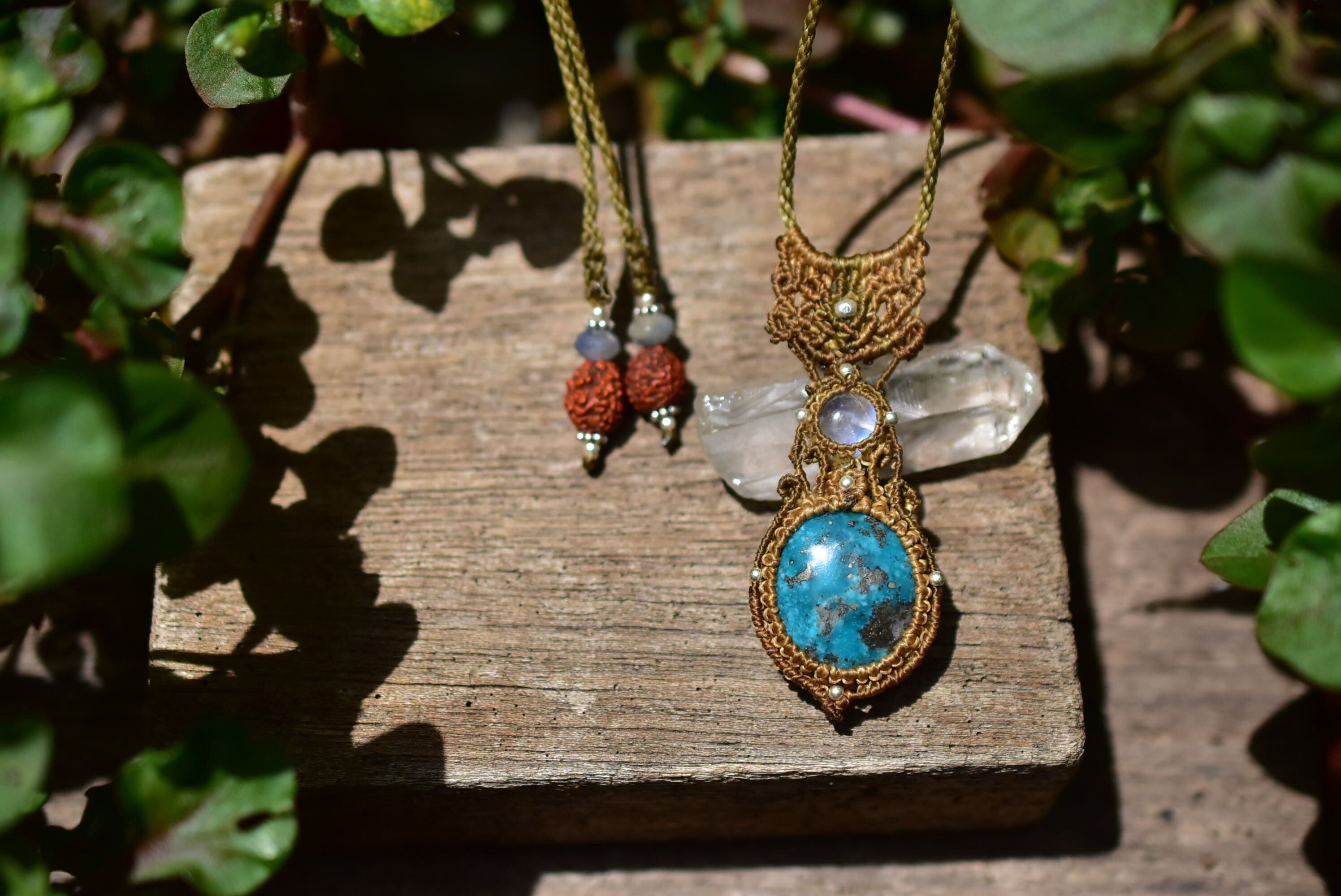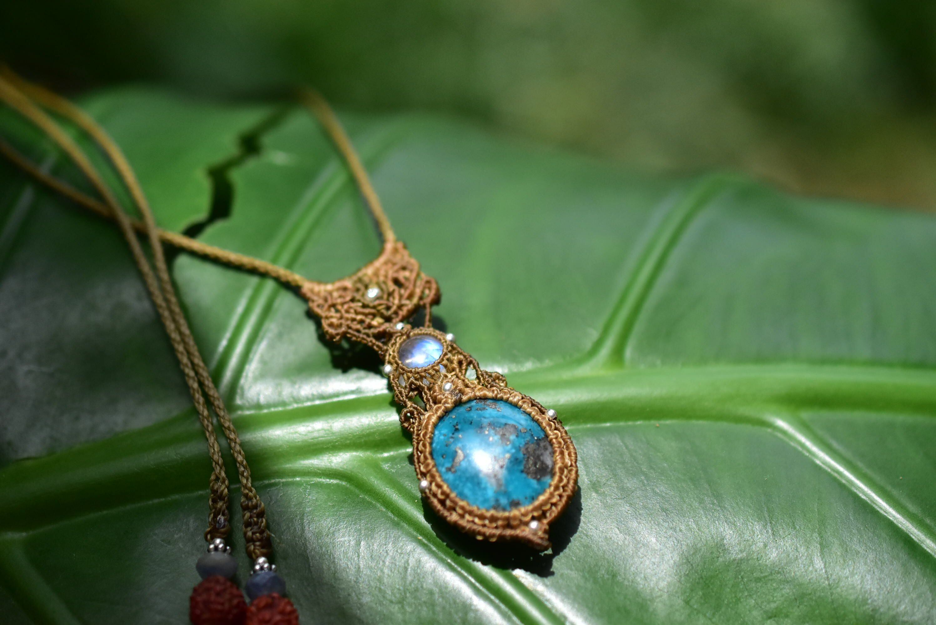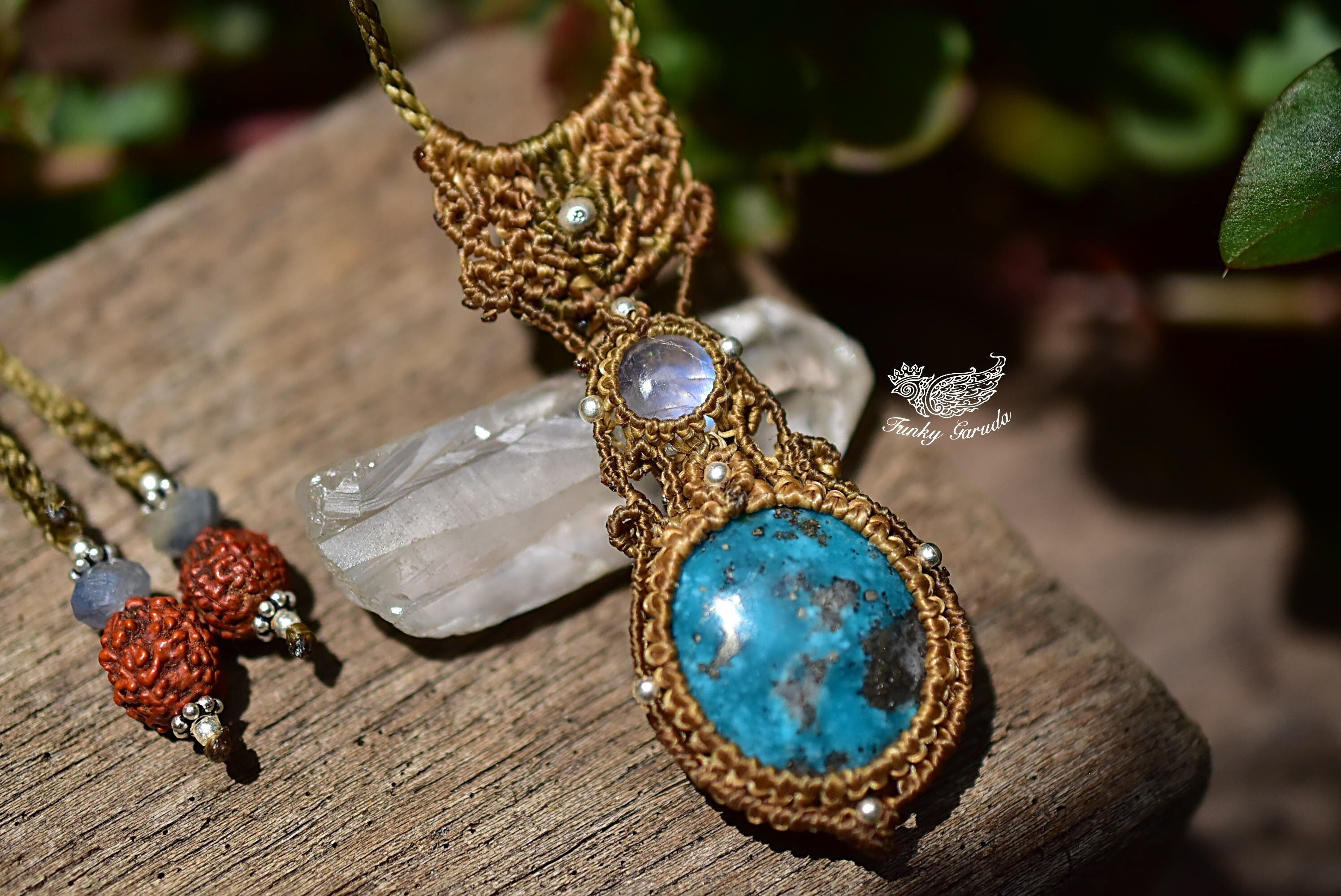 旅人の輝き★ターコイズとレインボームーンストーン マクラメペンダント tur023