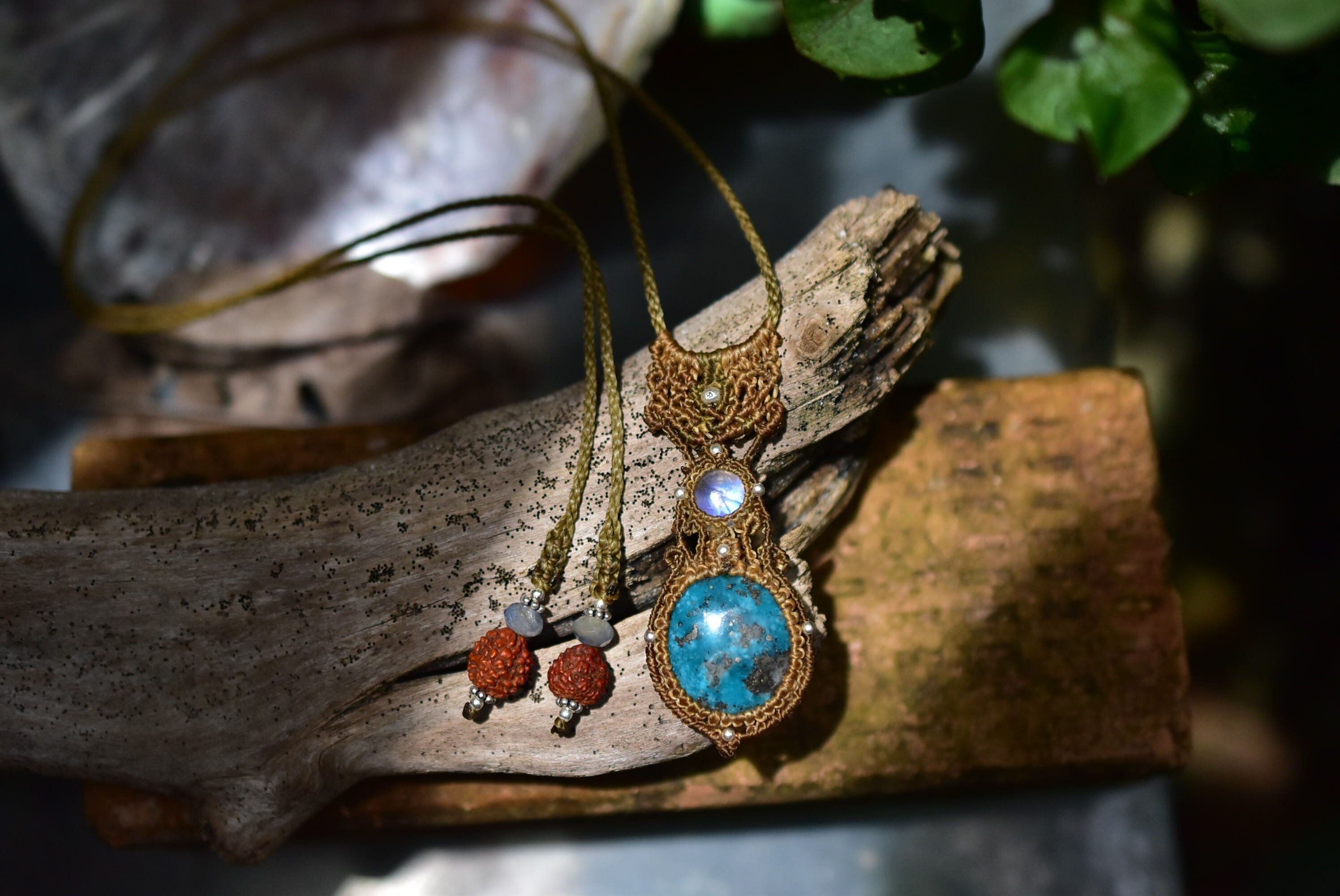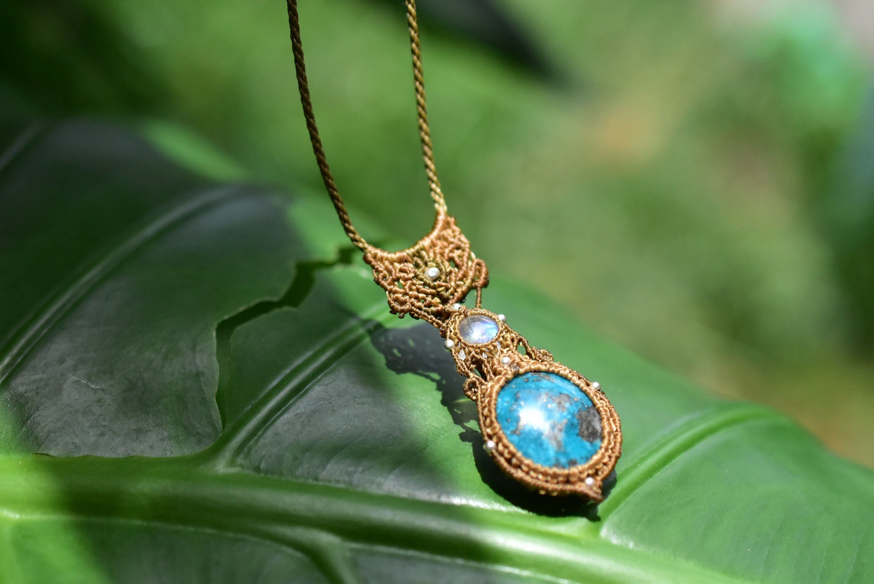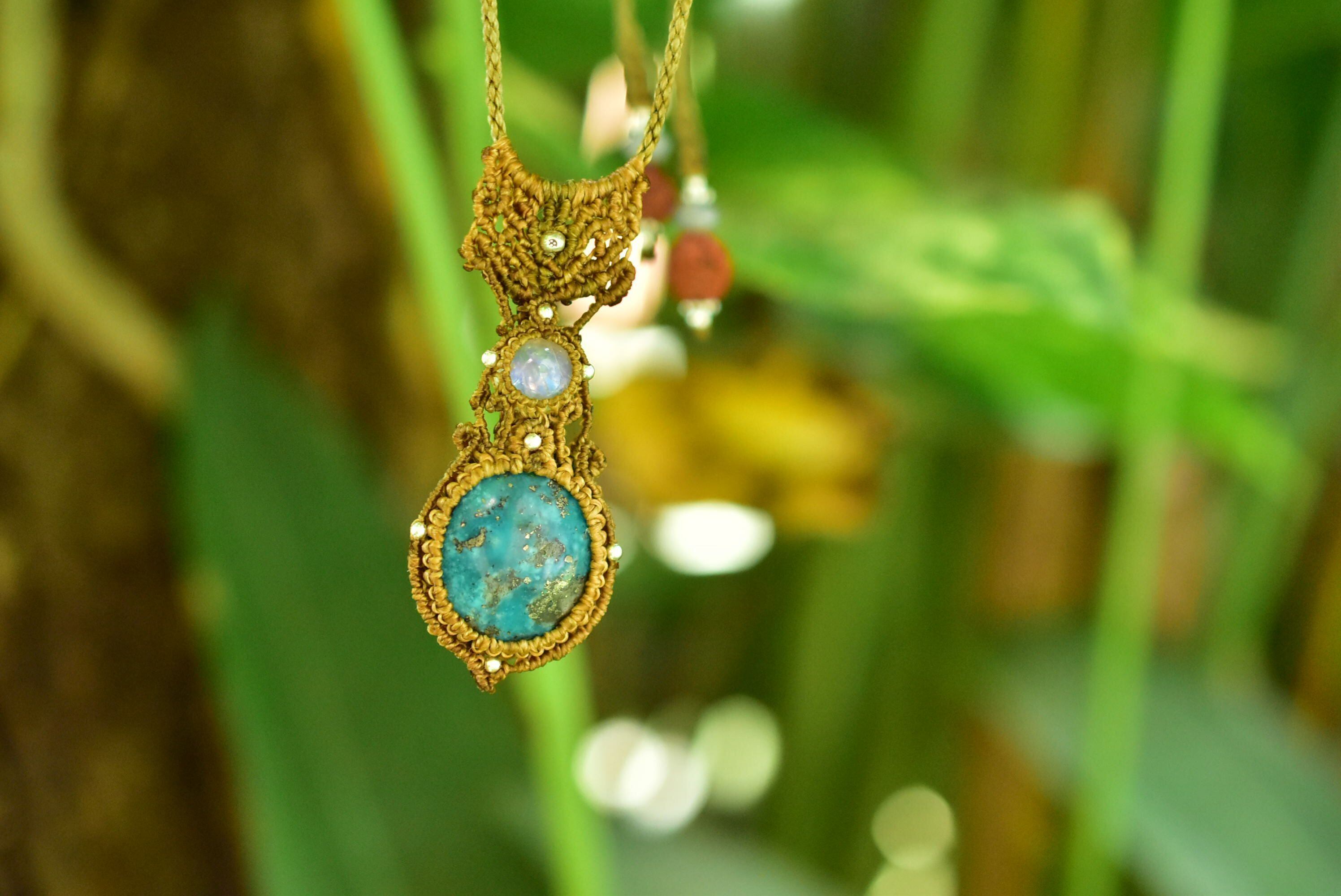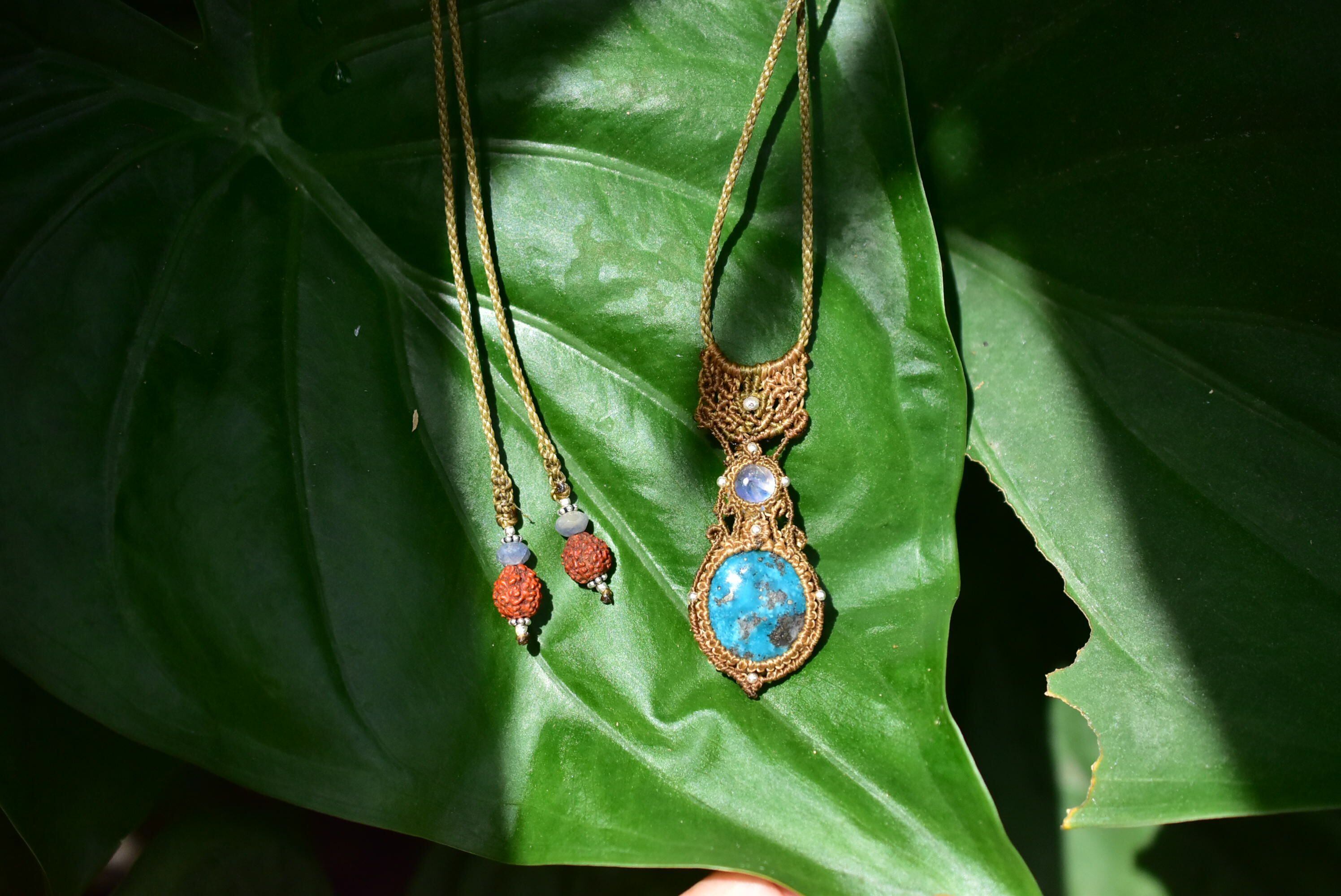 丁寧にマクラメ編み装飾を施し、ネックレスペンダントに仕上げました