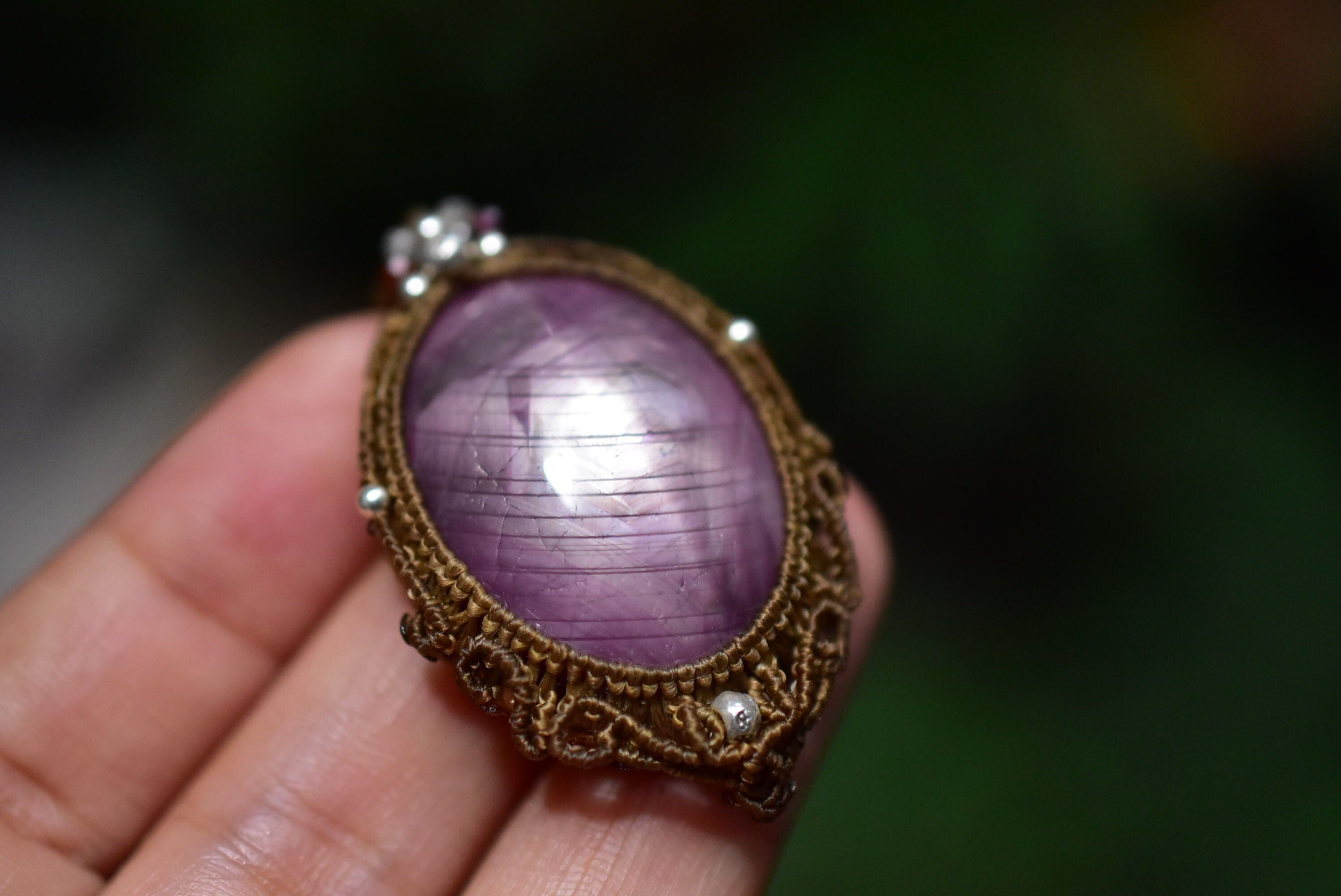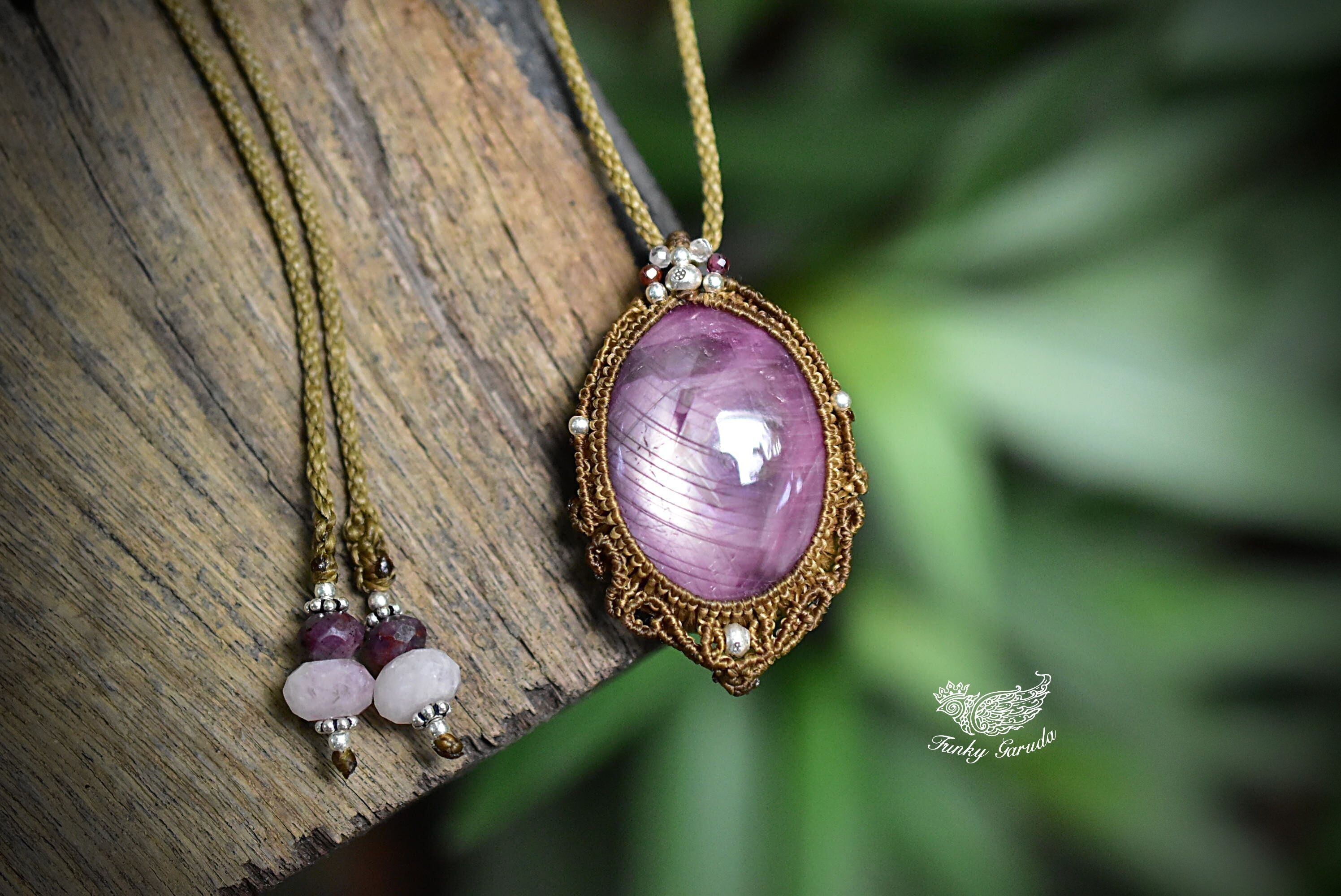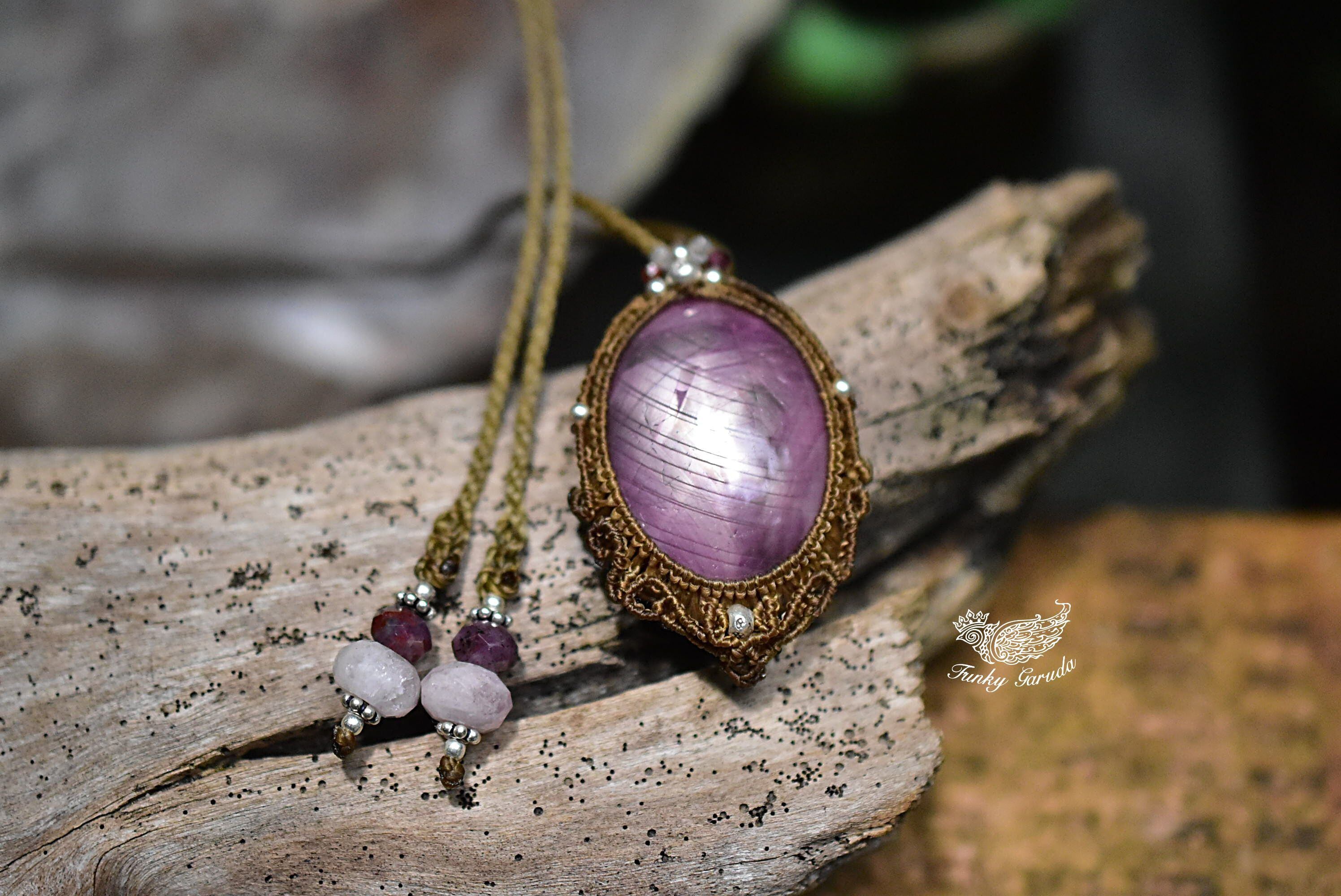 大きな星★高品質★102ctスタールビー★マクラメペンダント ruby032