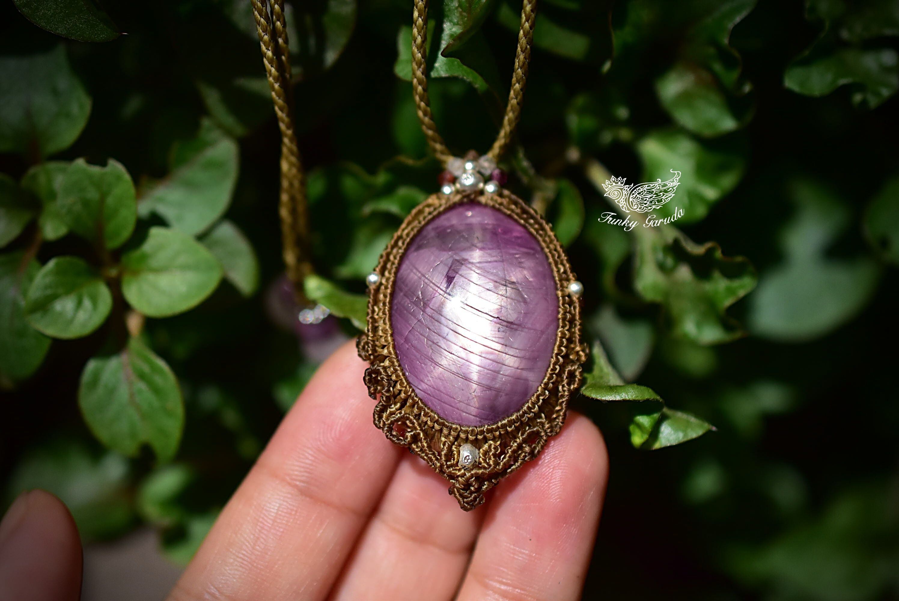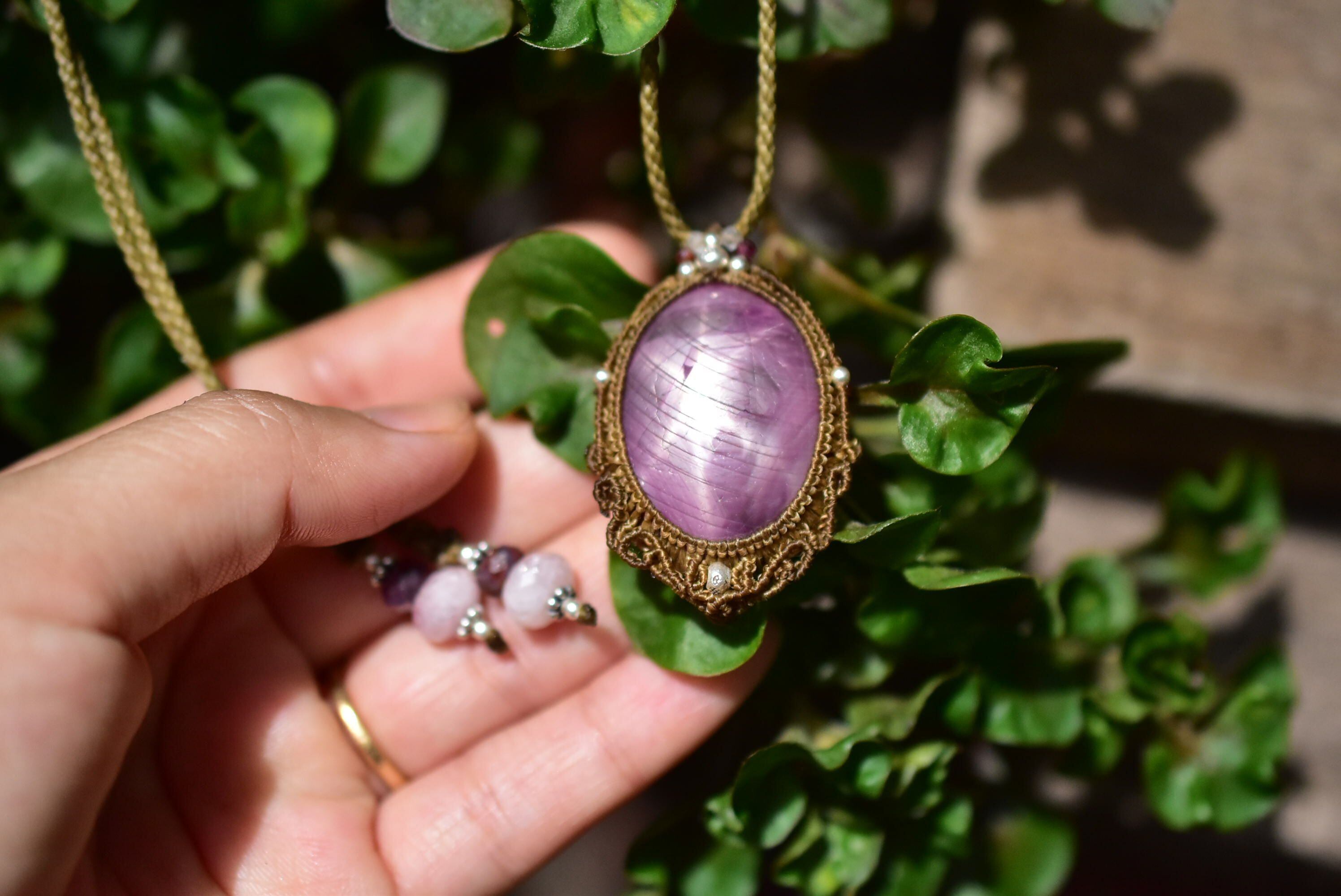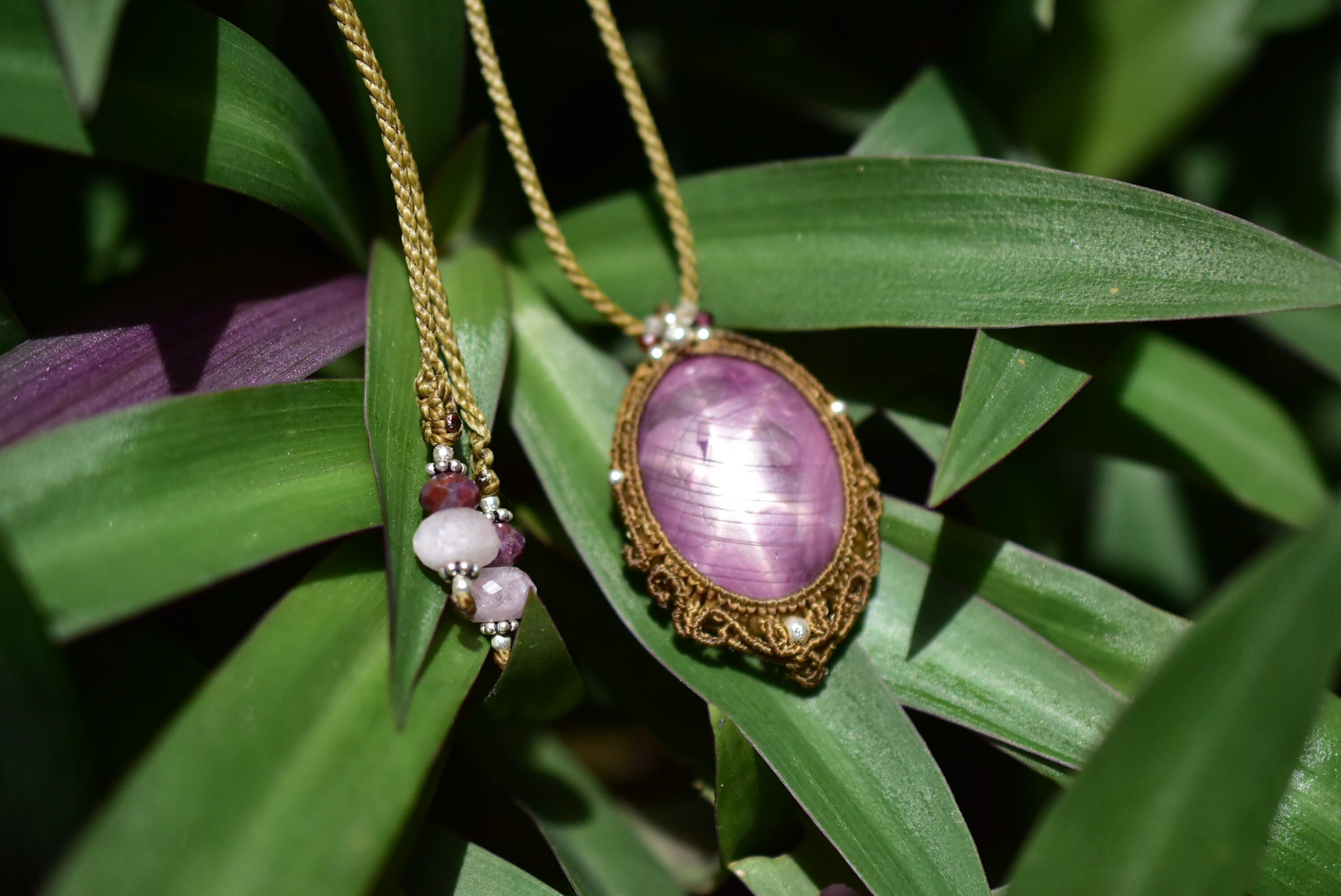 大きな星★高品質★102ctスタールビー★マクラメペンダント ruby032