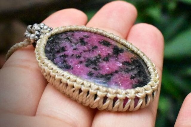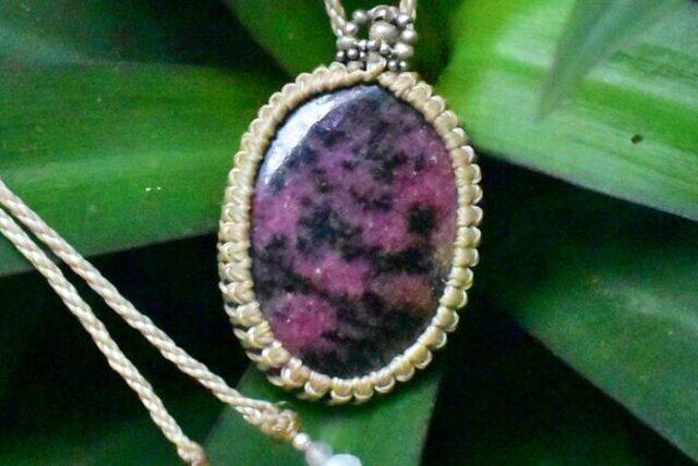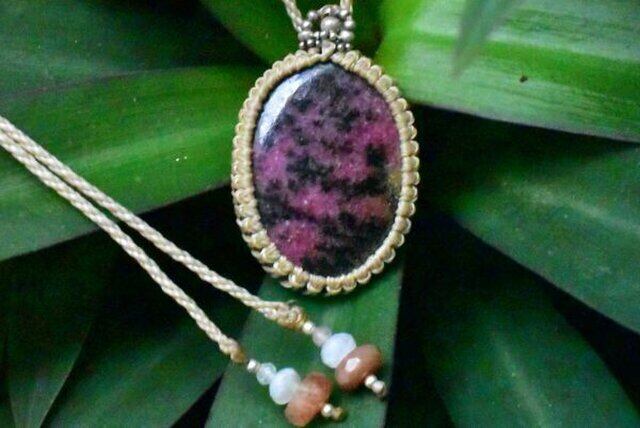 愛の色模様★ロードクロサイト マクラメペンダント rhody001
