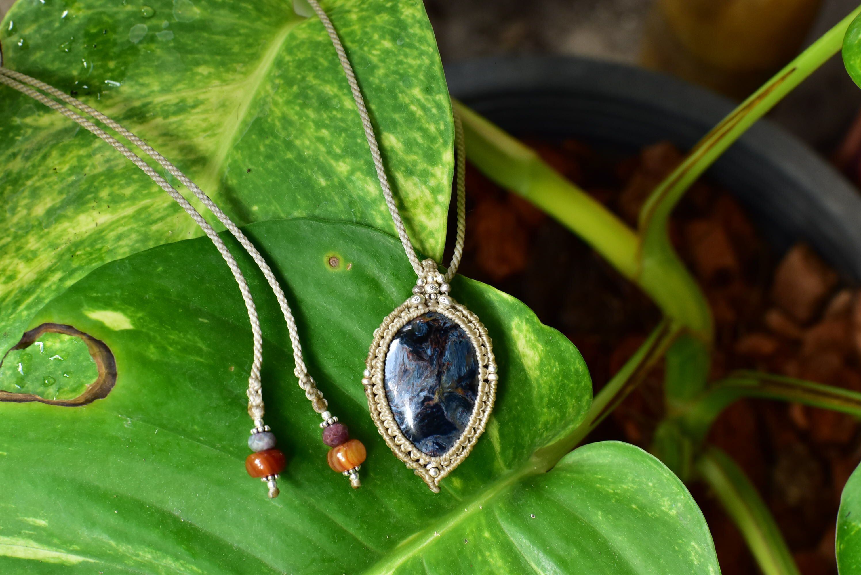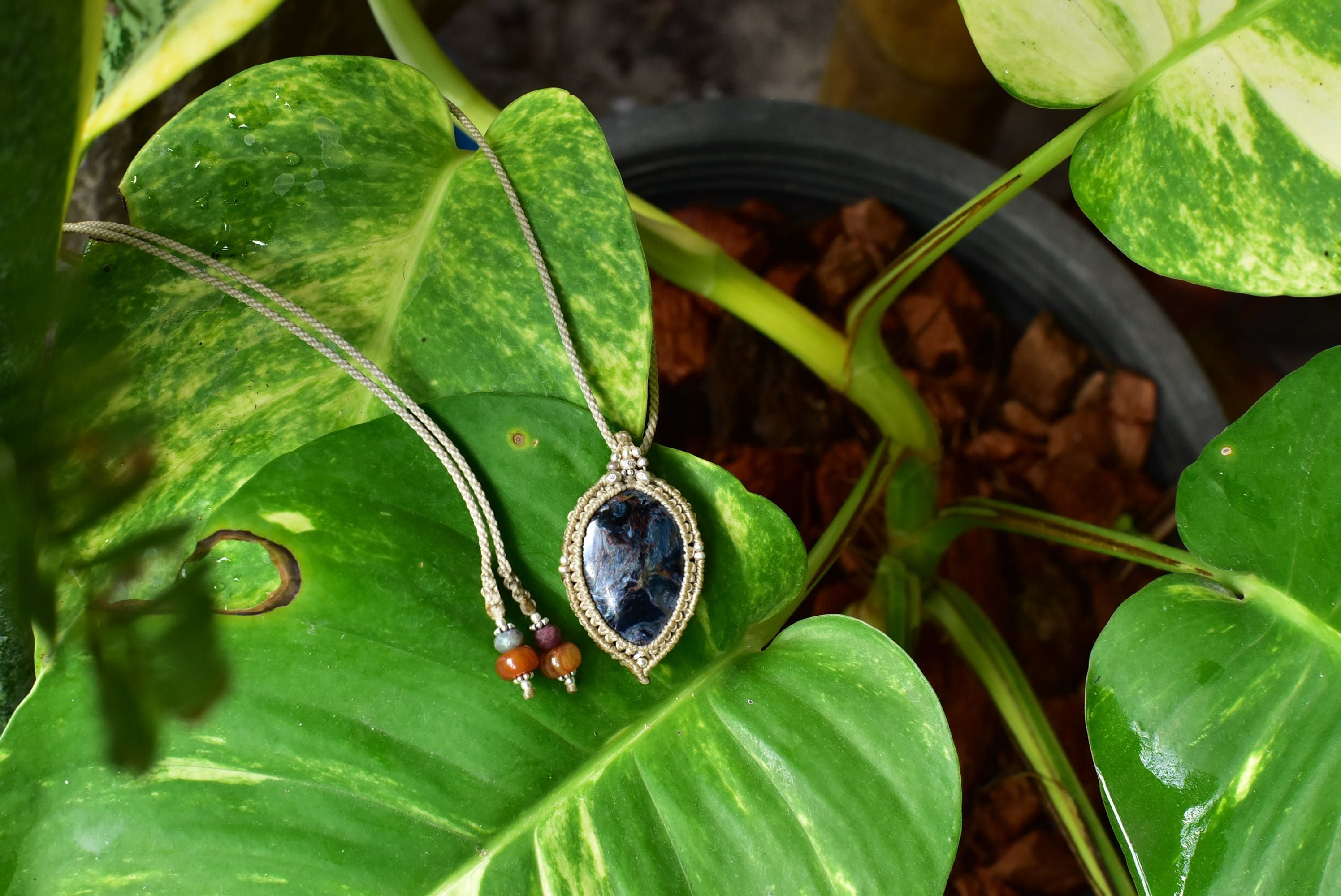 夜の狼模様★ピーターサイト マクラメペンダントpet003
