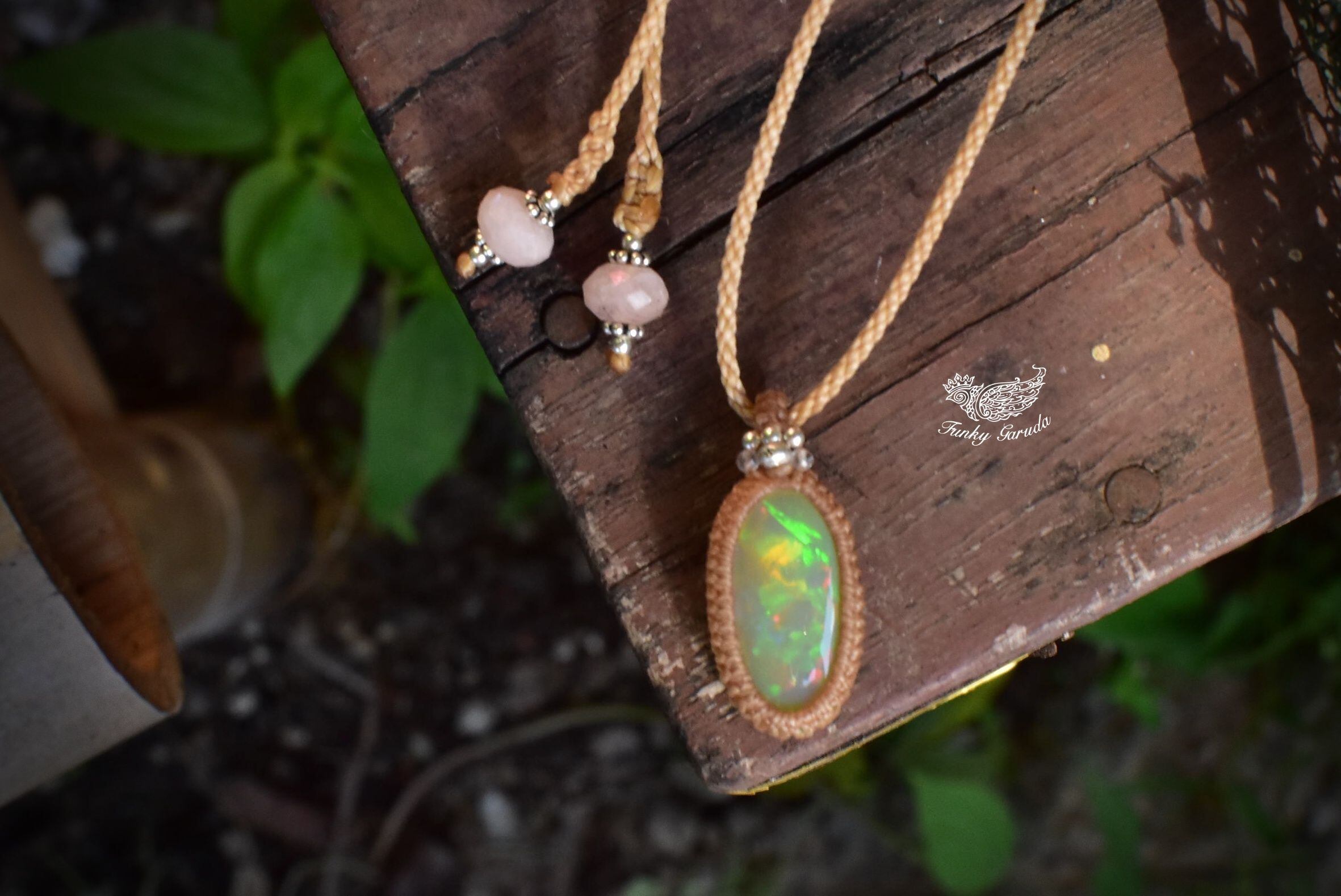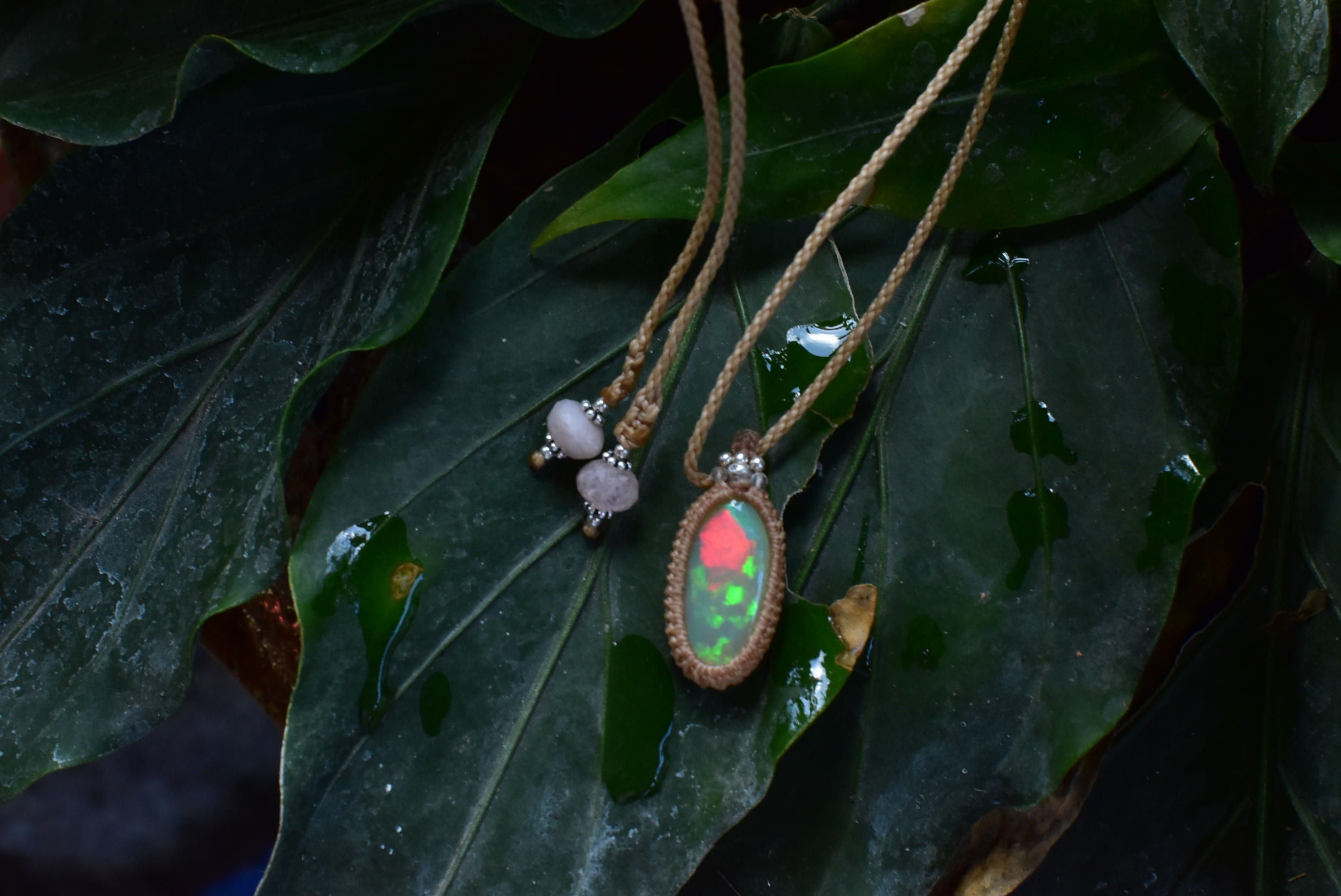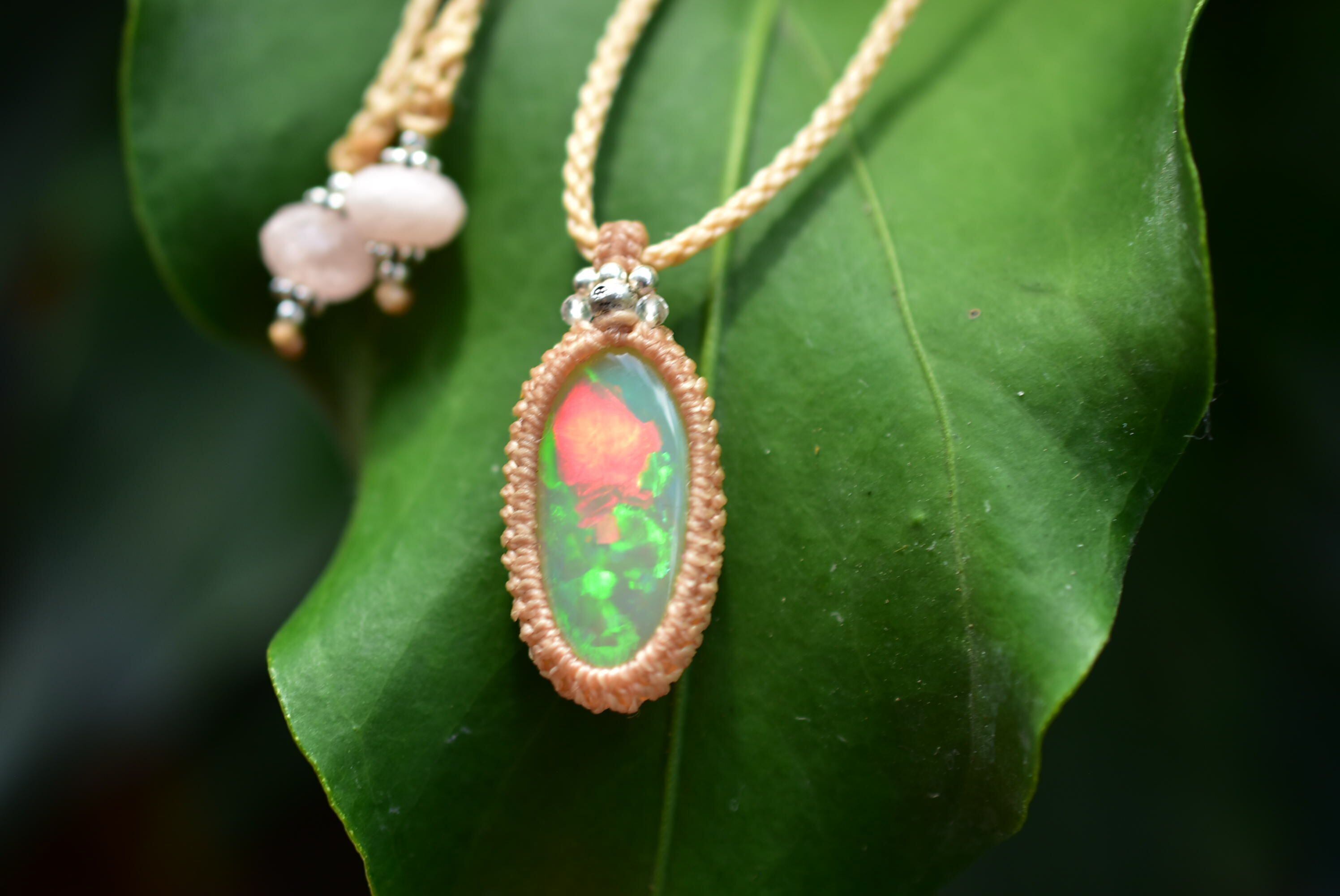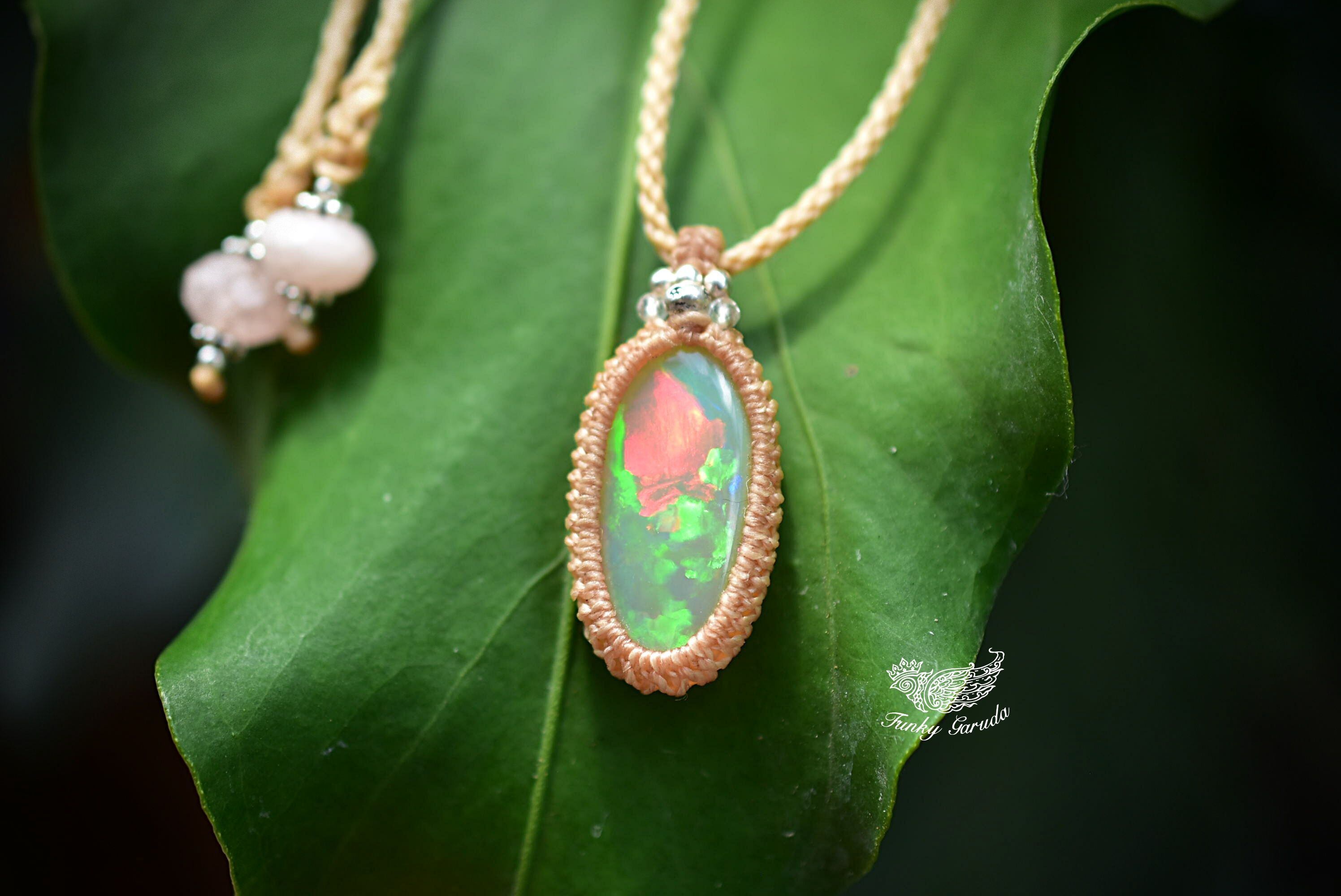 華やかプリズム★高品質★ウォーターオパール シンプルマクラメペンダント opay004