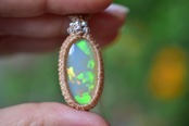 色とりどりの虹色プリズムが、次々と現れ、揺らめく良質なオパール