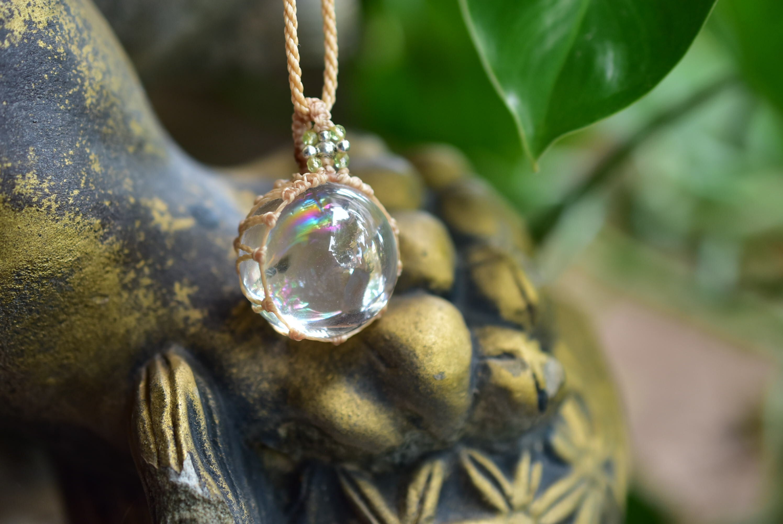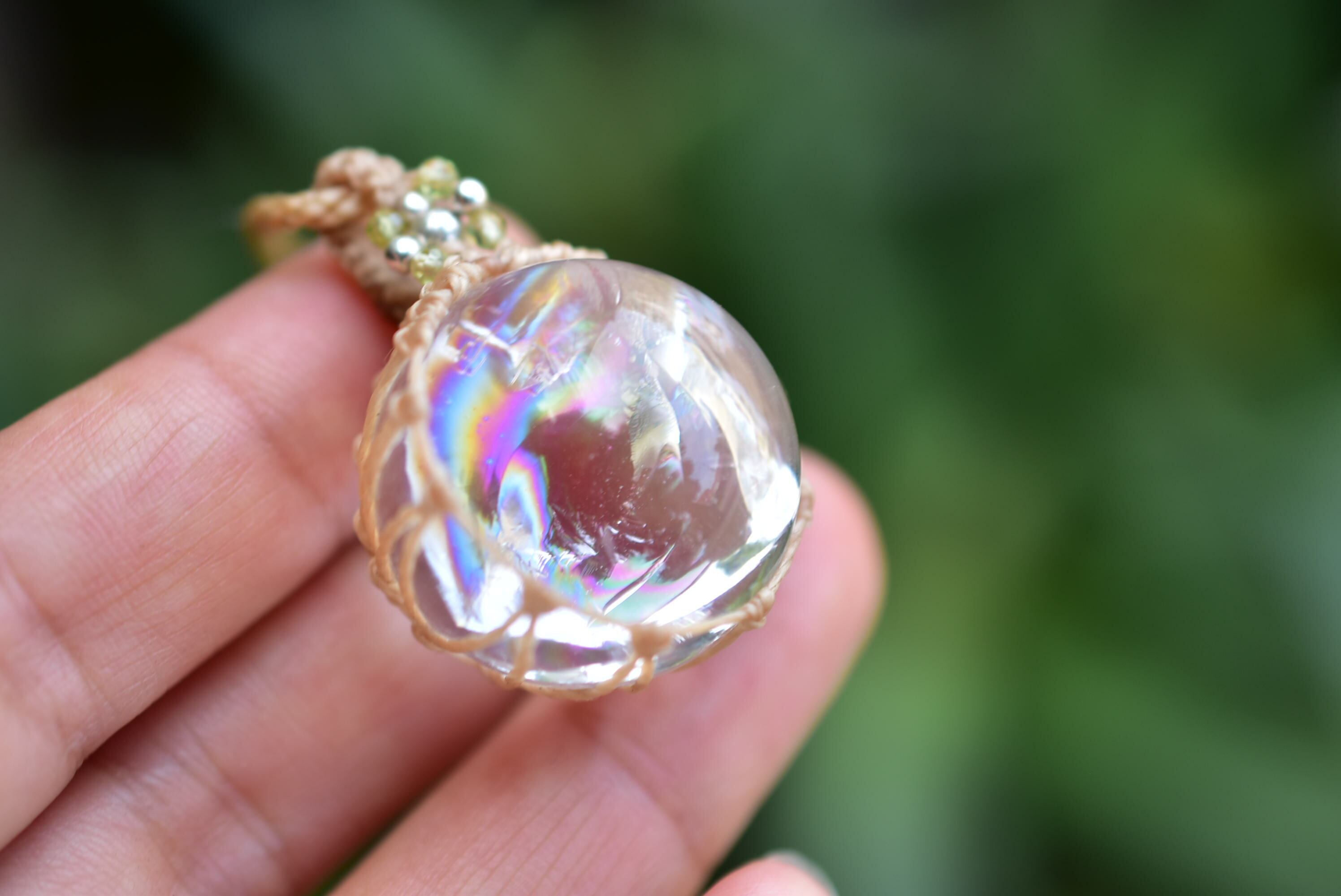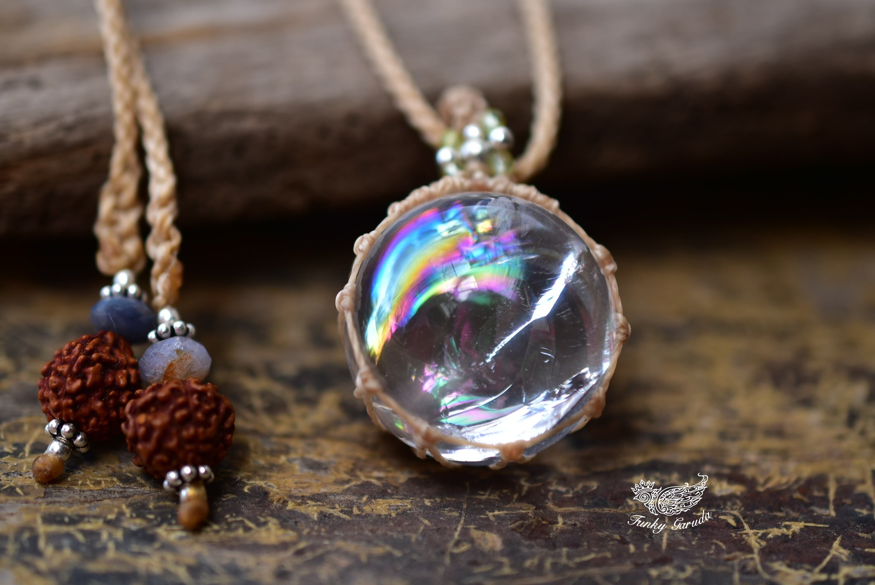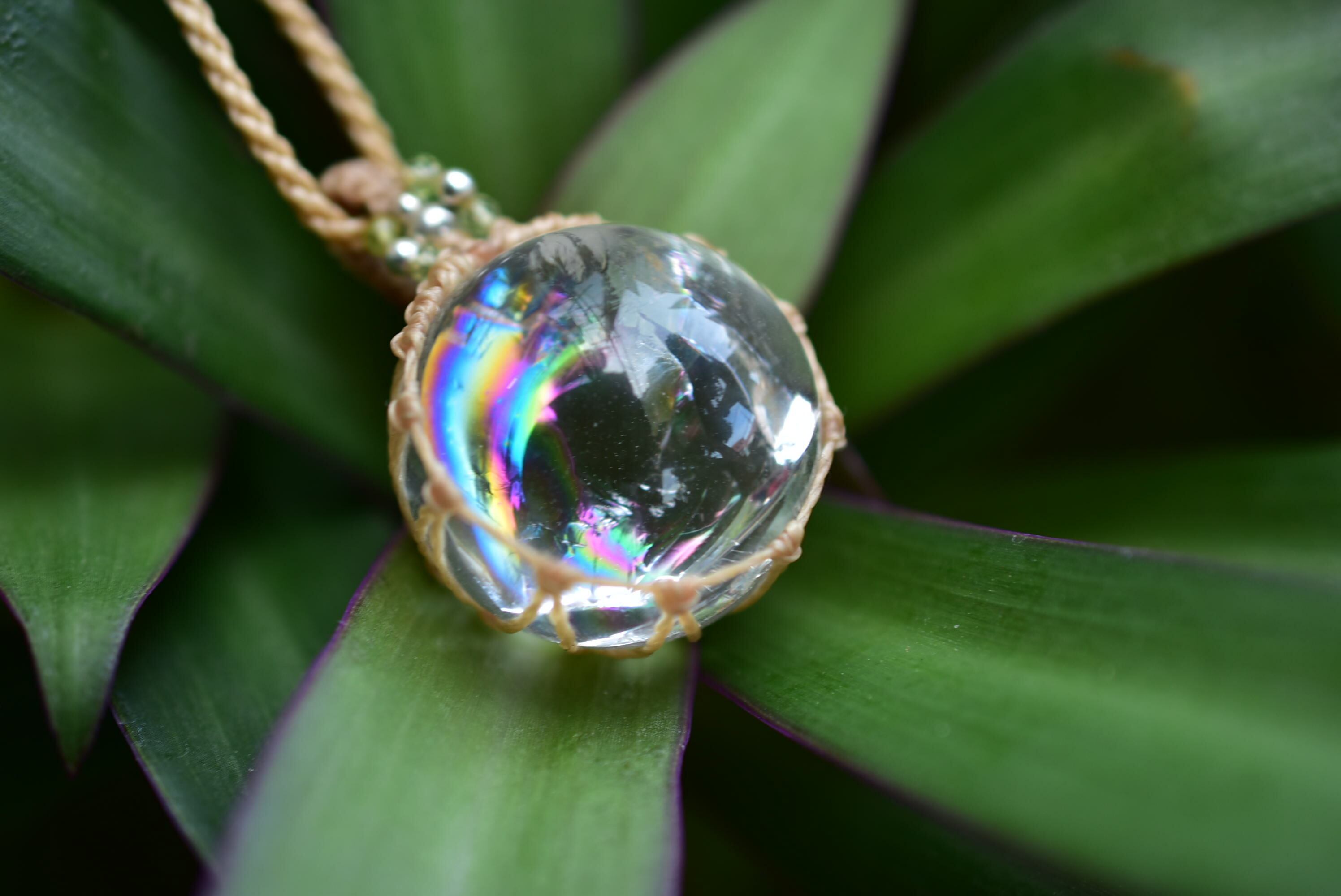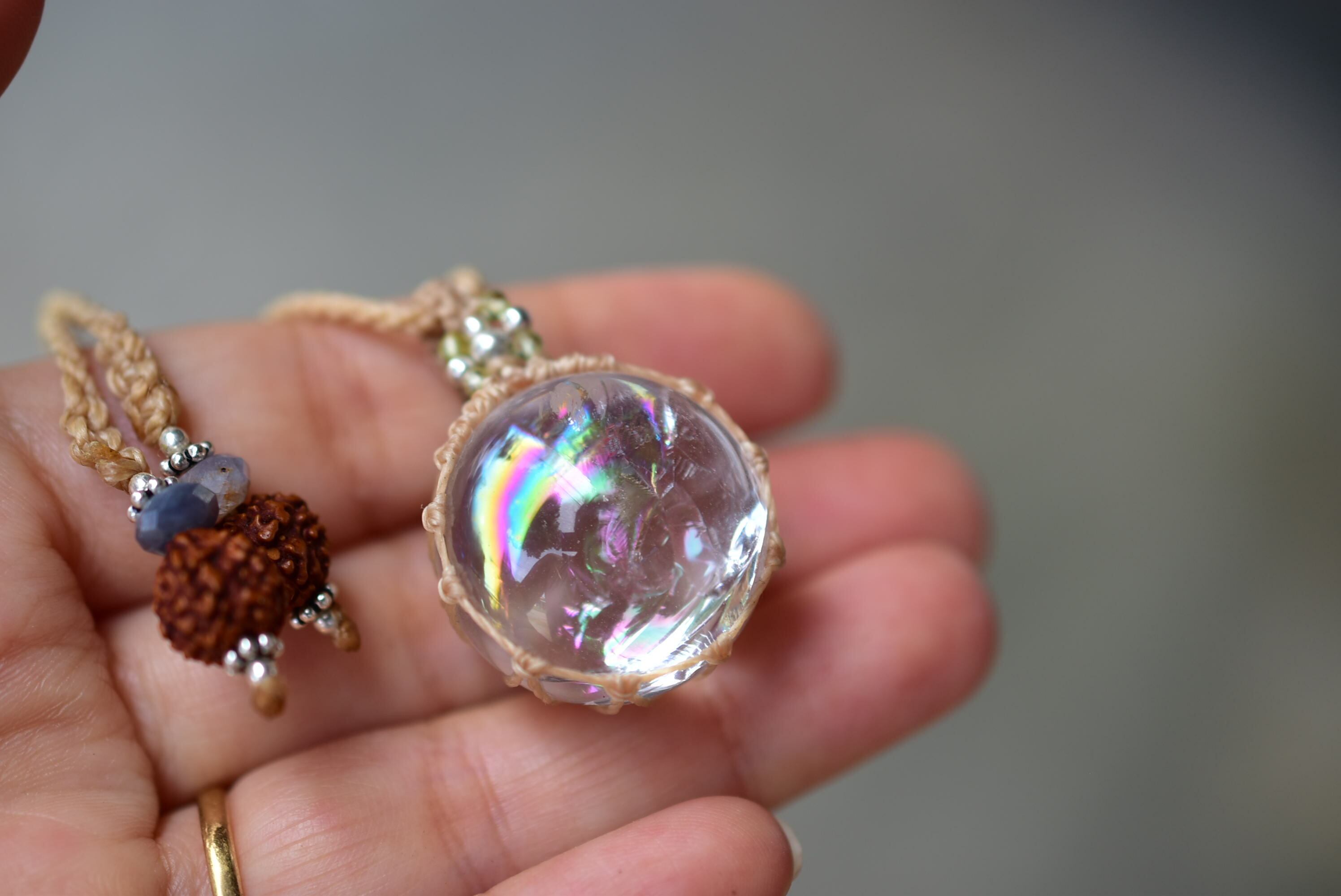 光と虹★丸玉★レインボークォーツ マクラメペンダントcry015