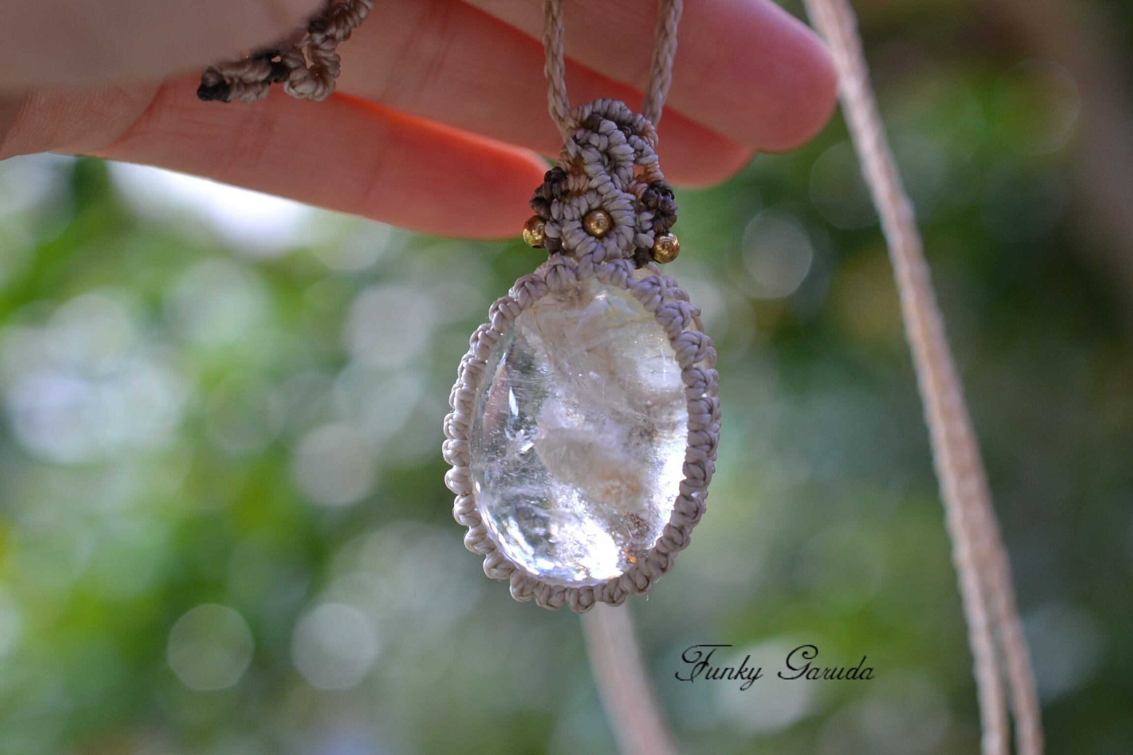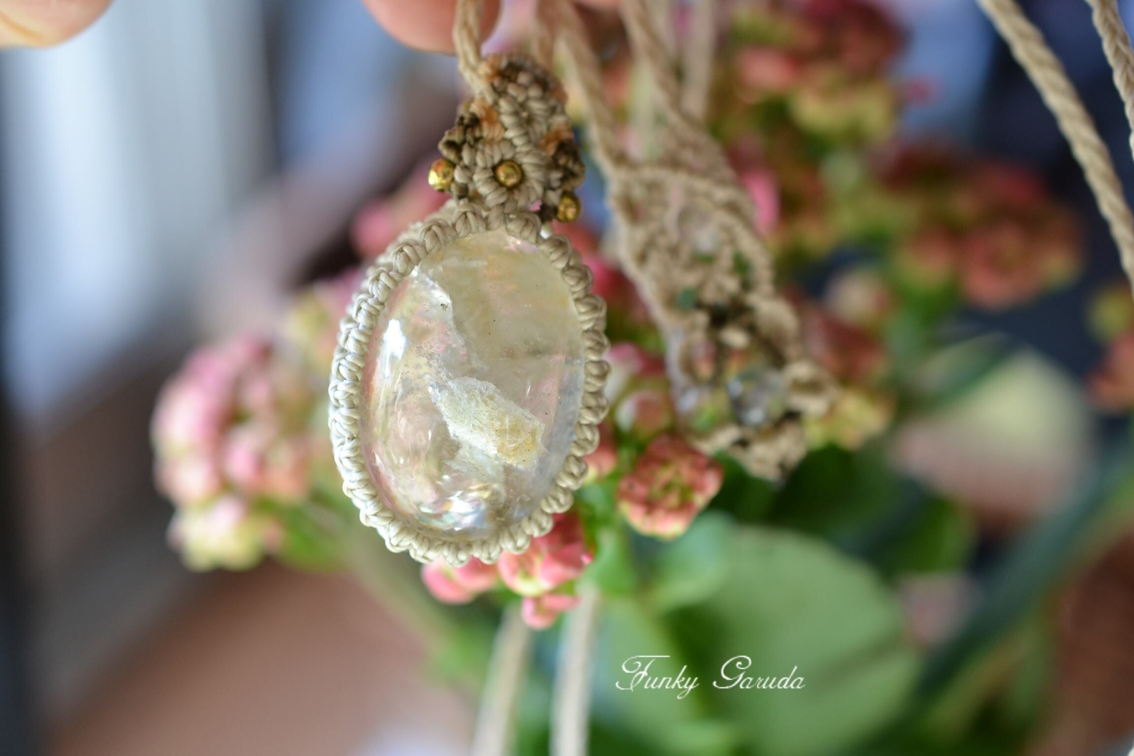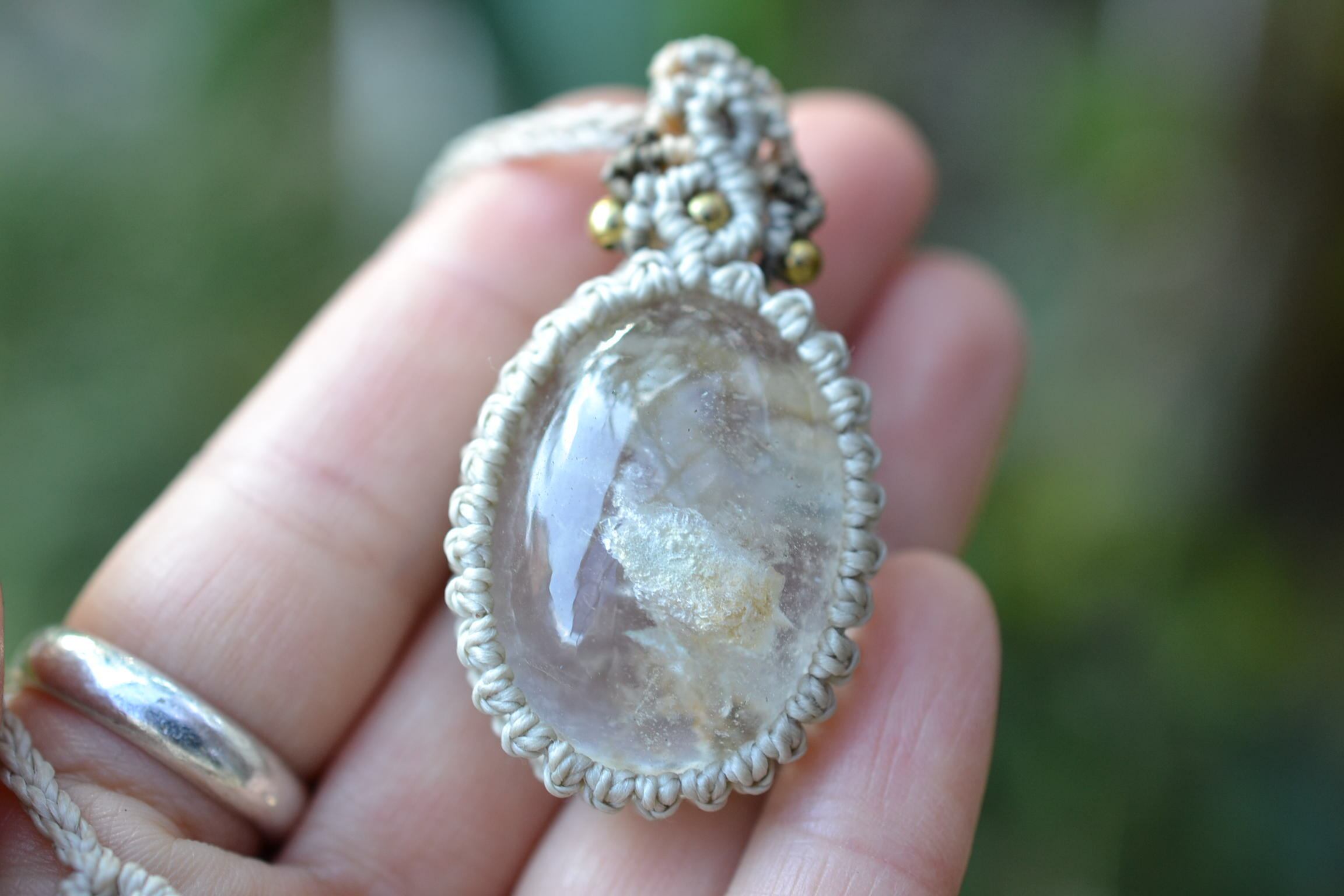 銀狐色☆ガーデンクォーツ マクラメペンダント