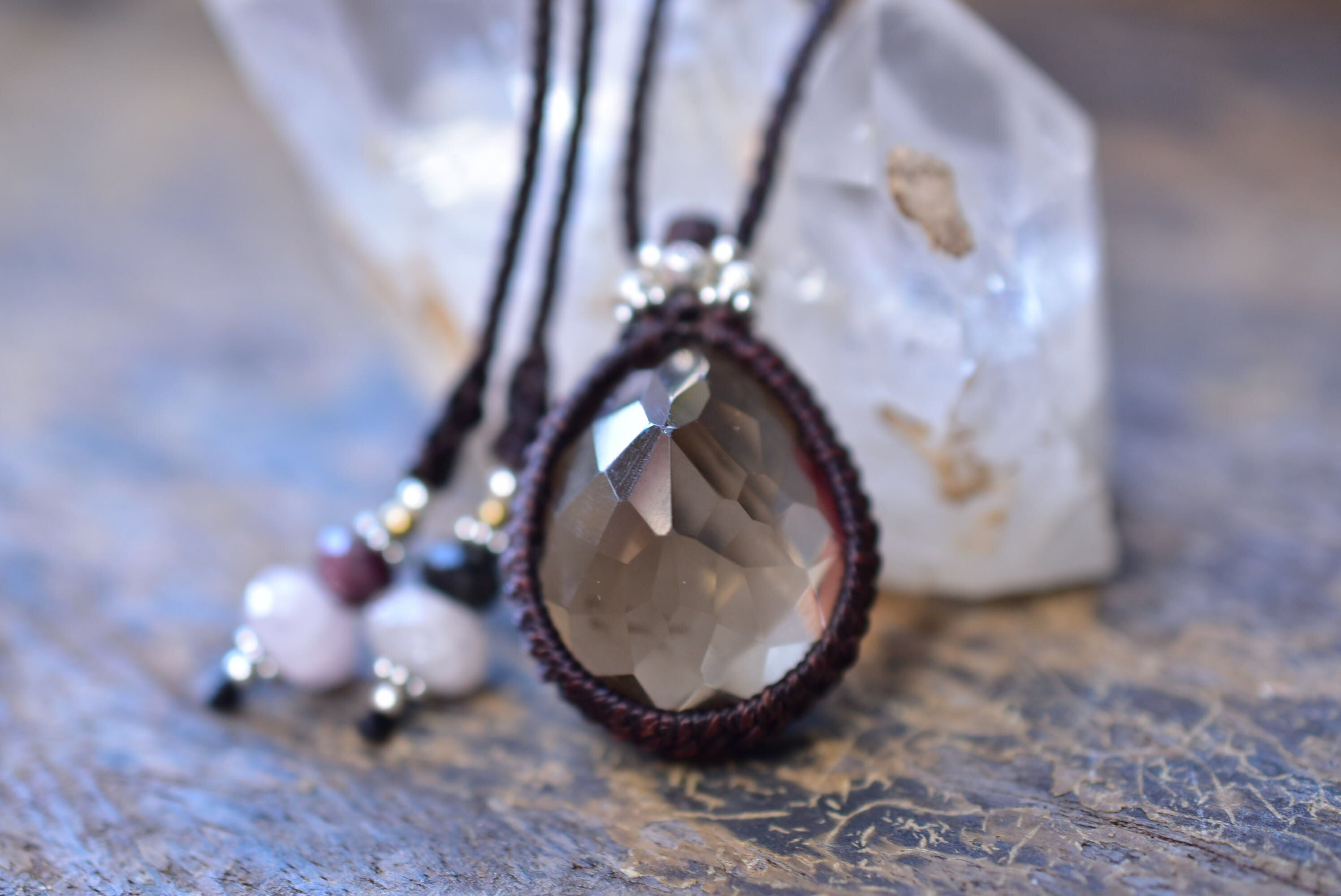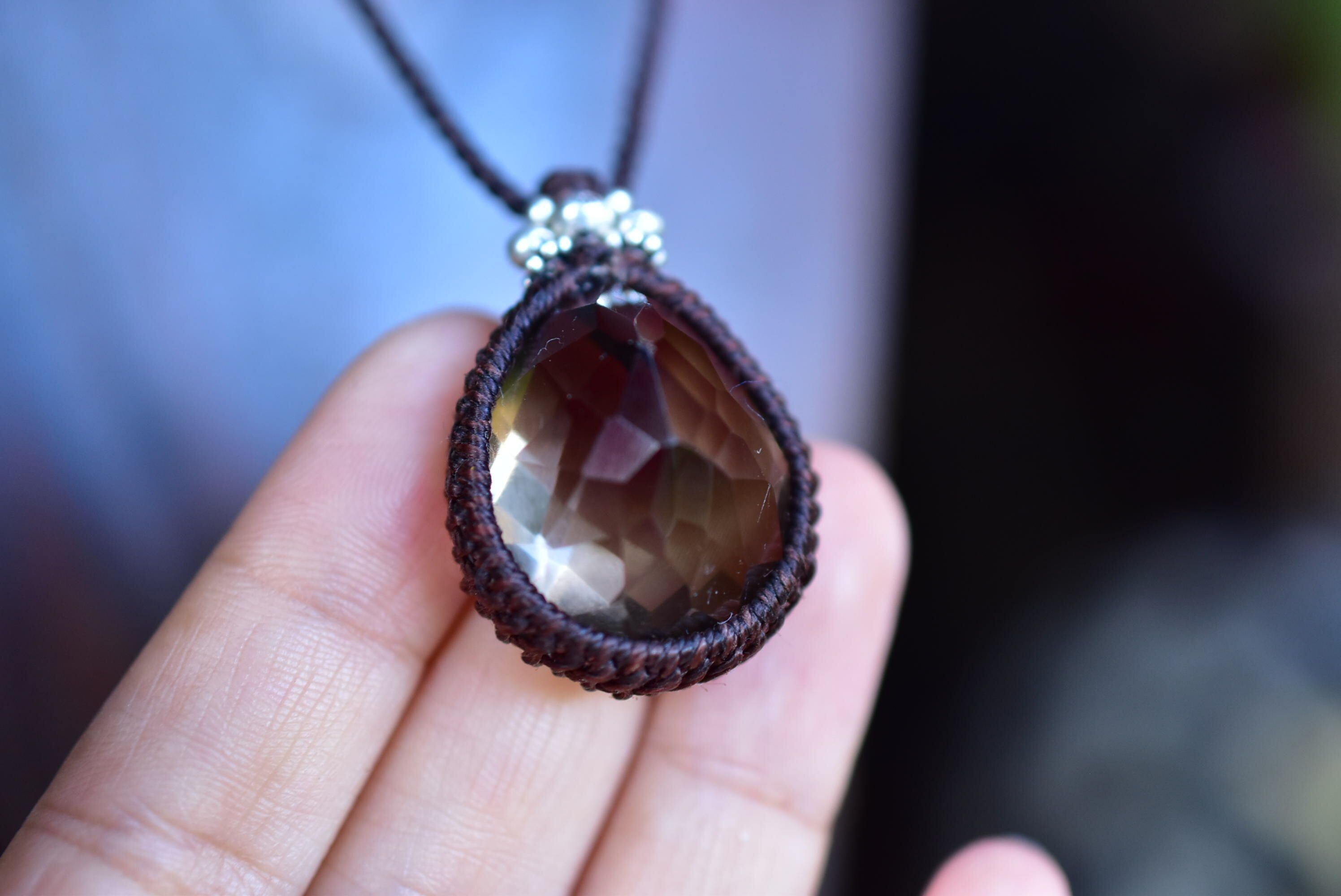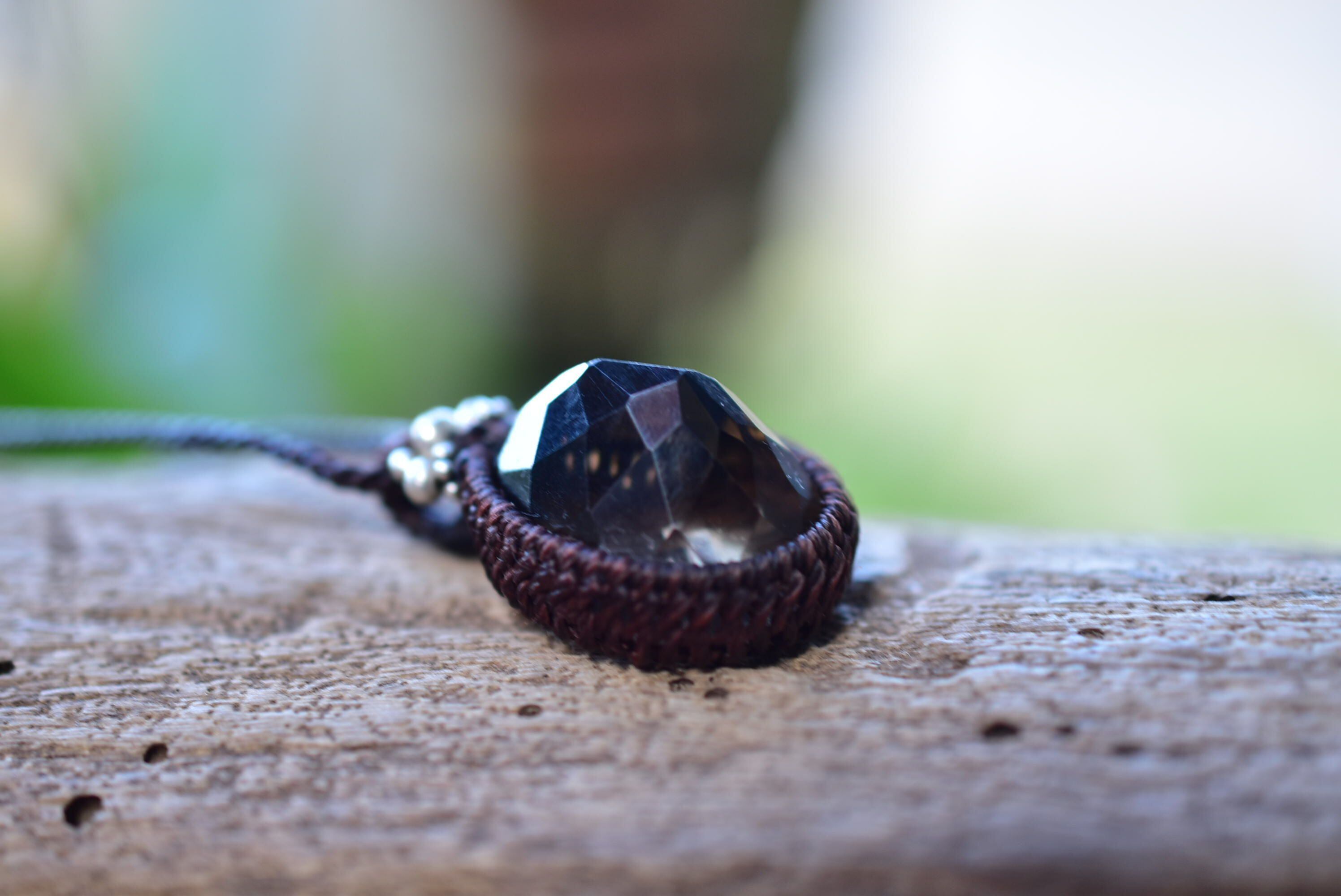 58ctファセットカット スモーキークォーツ マクラメペンダントsmoy001