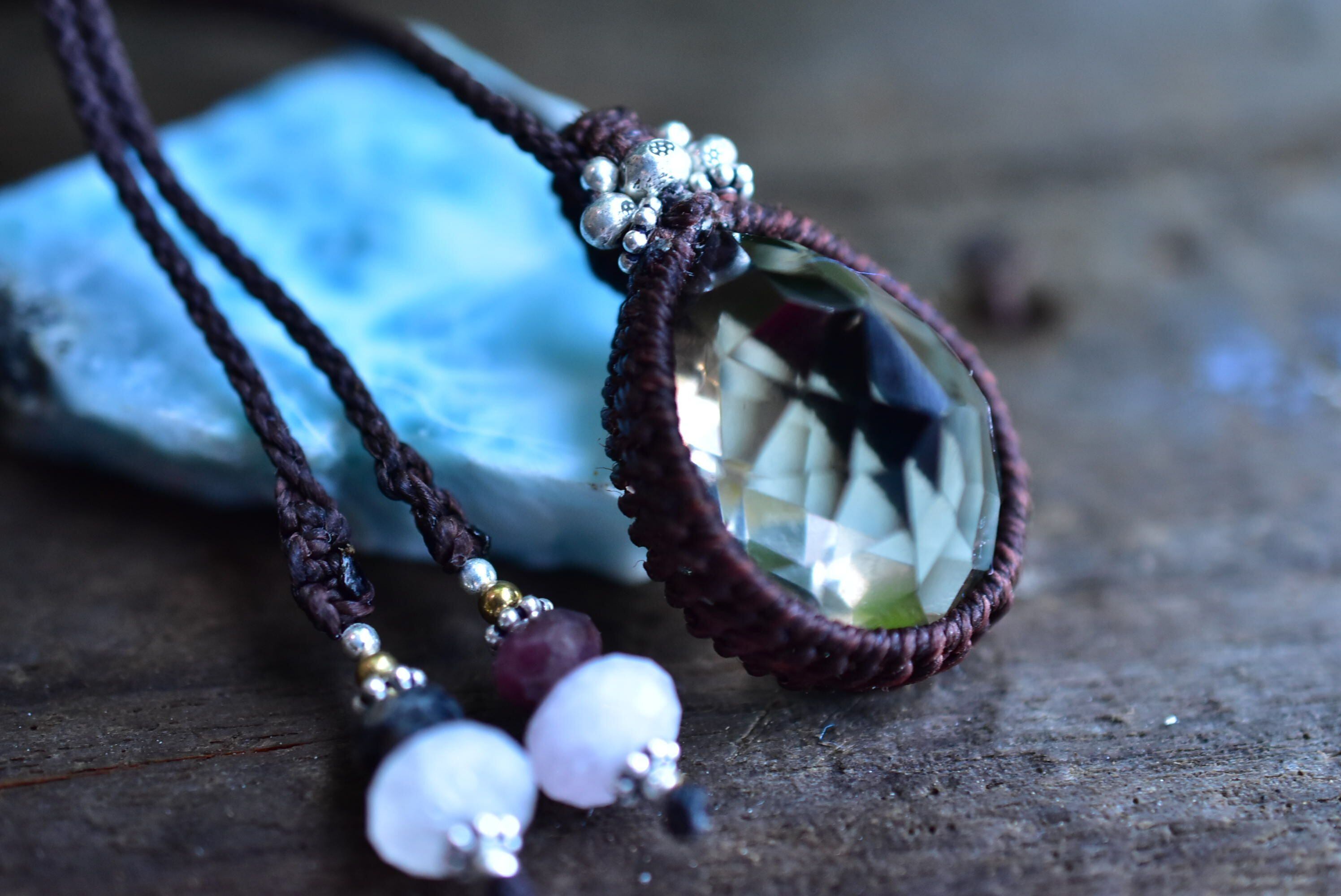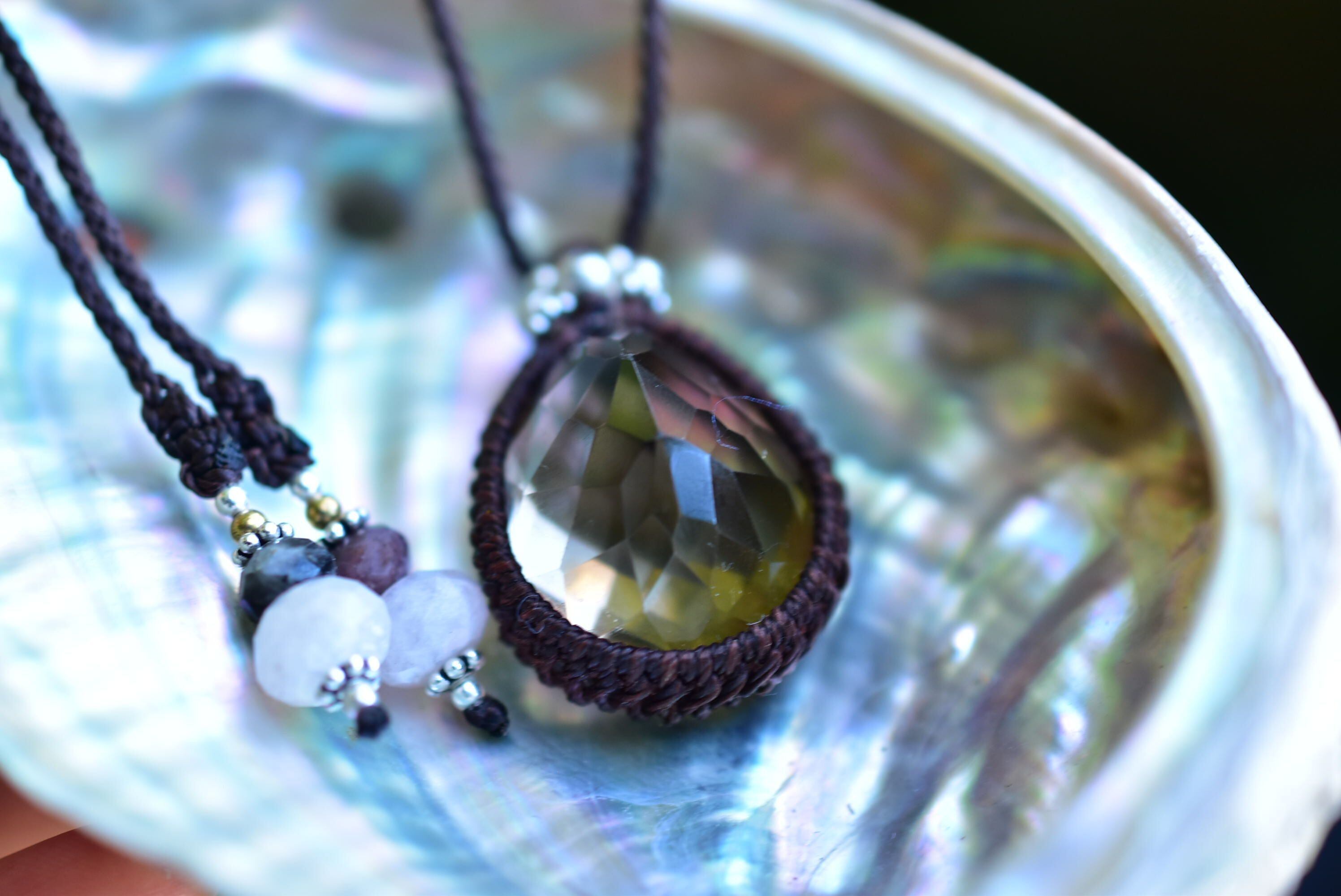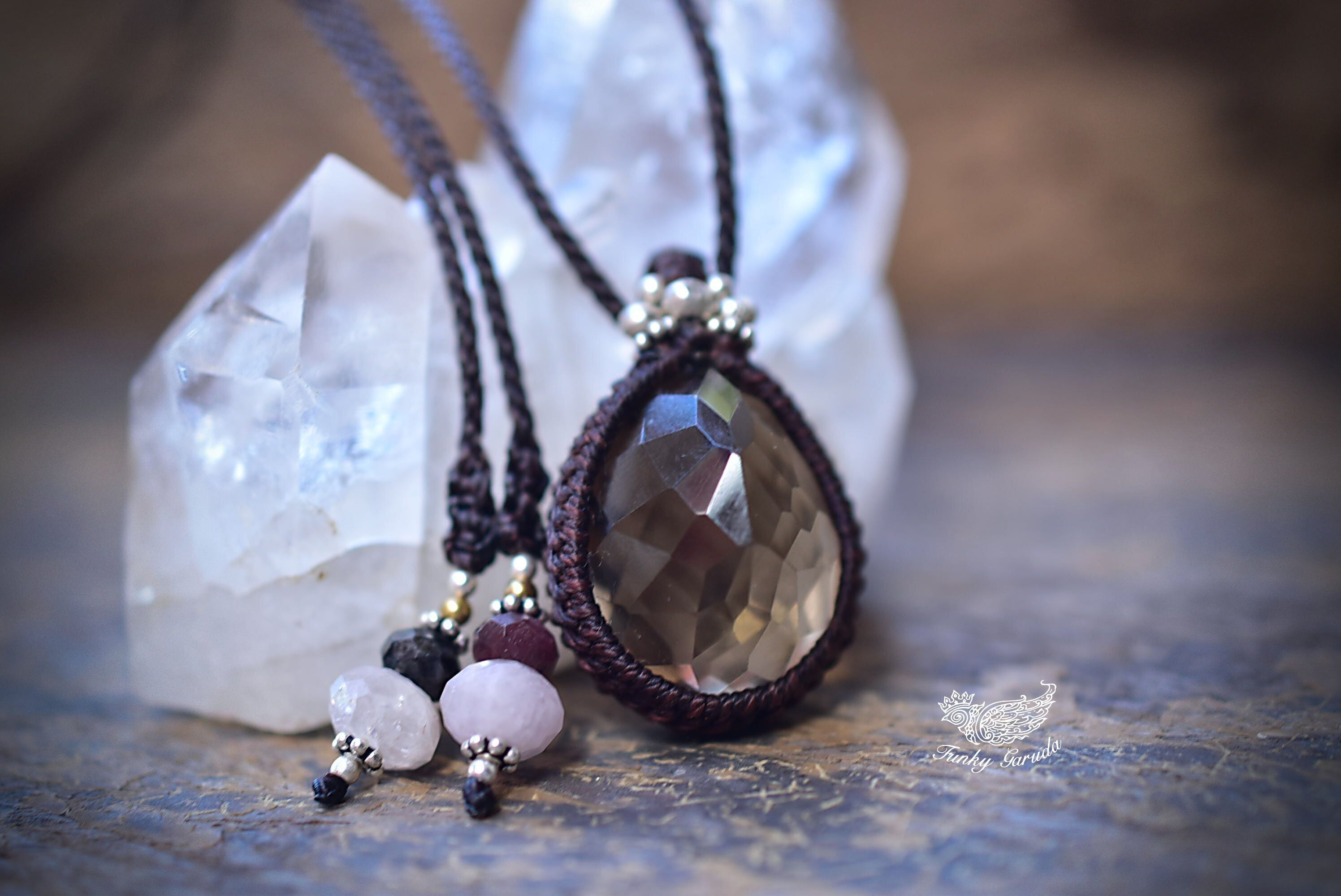 58ctファセットカット スモーキークォーツ マクラメペンダントsmoy001