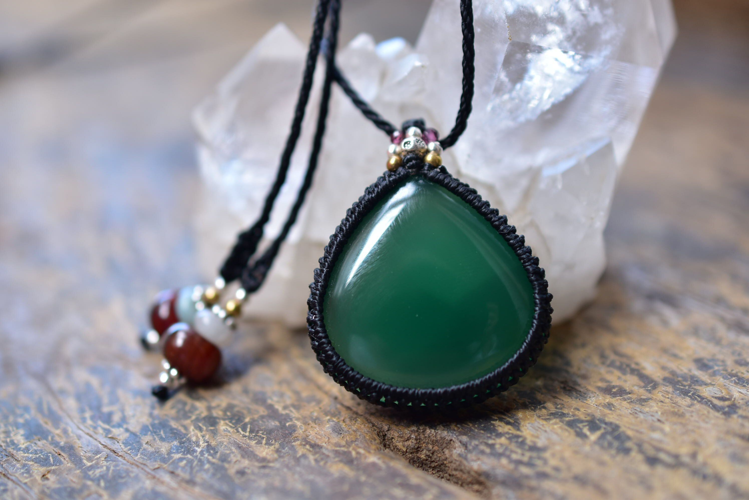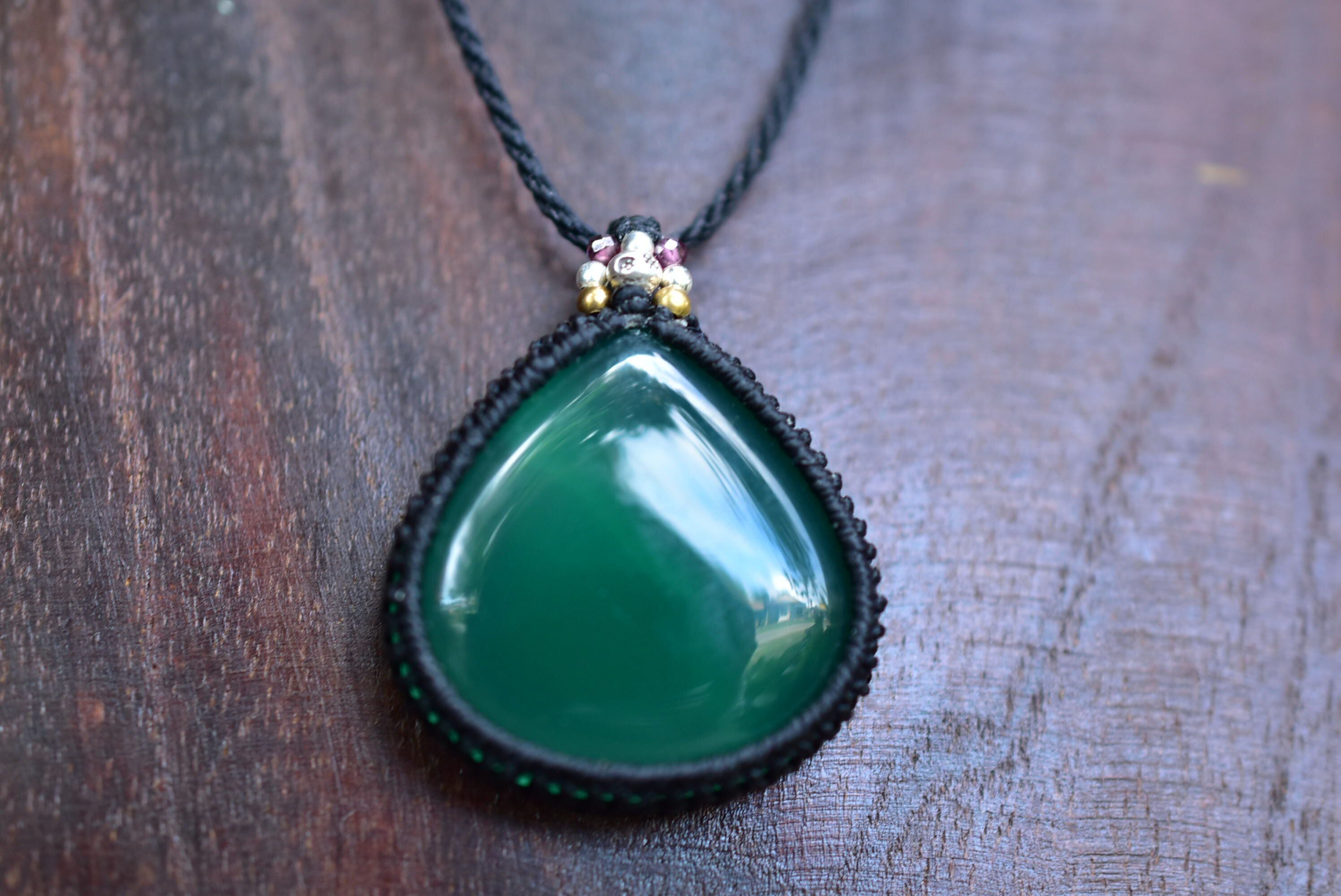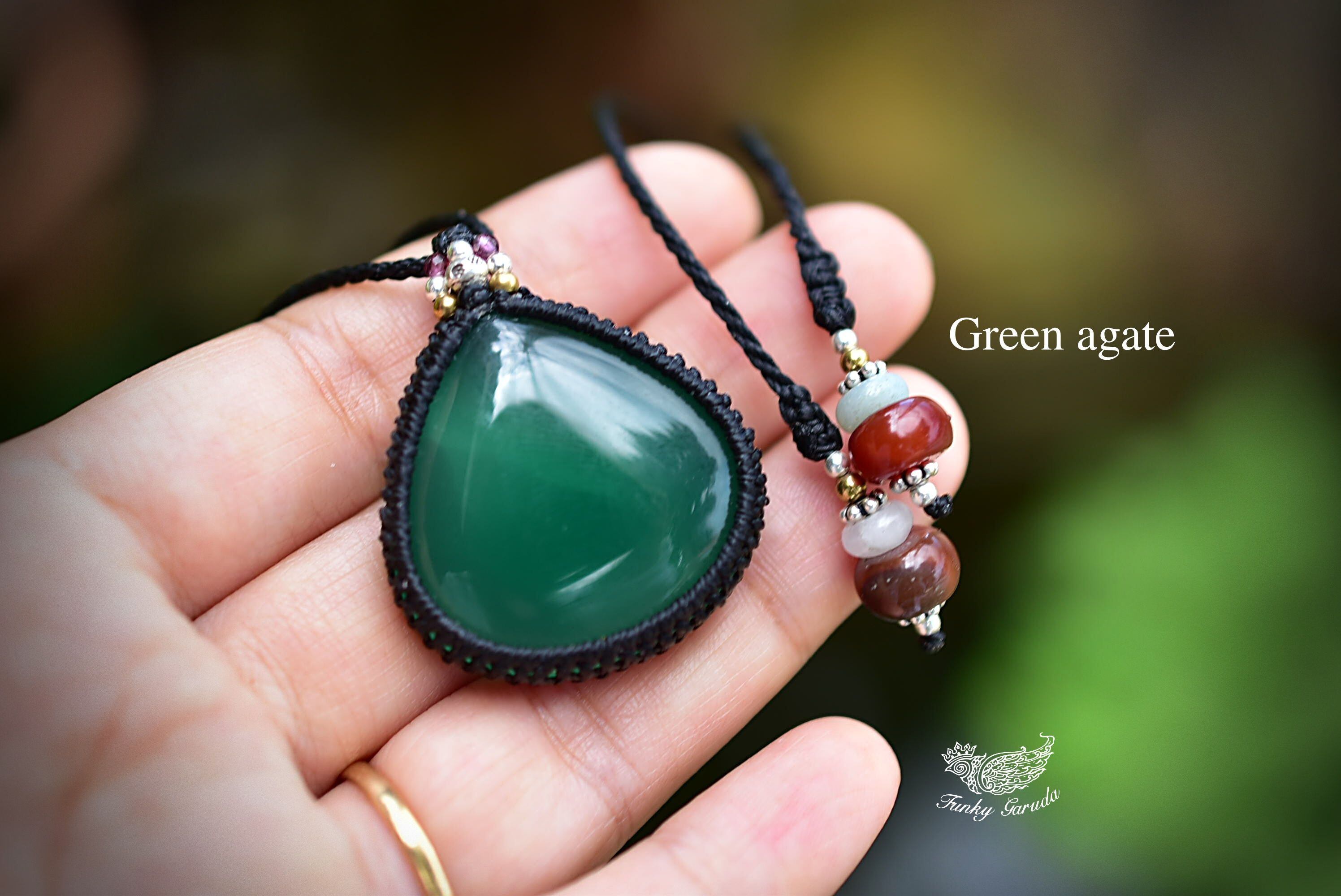 麗しい緑★グリーンアゲート マクラメペンダント agety004