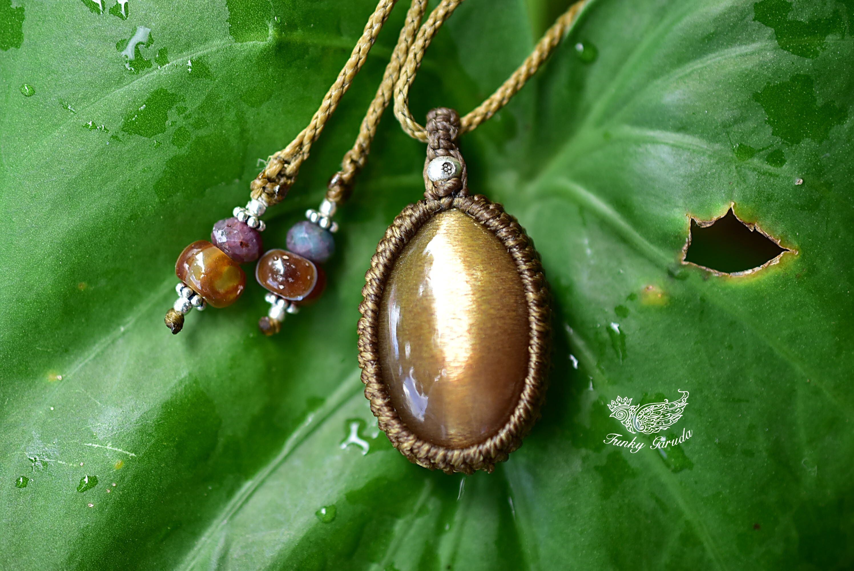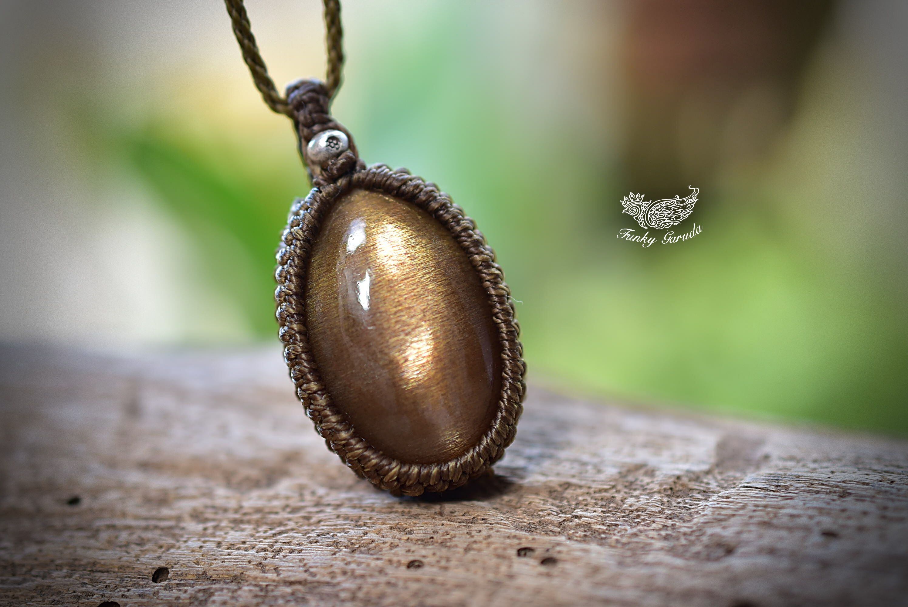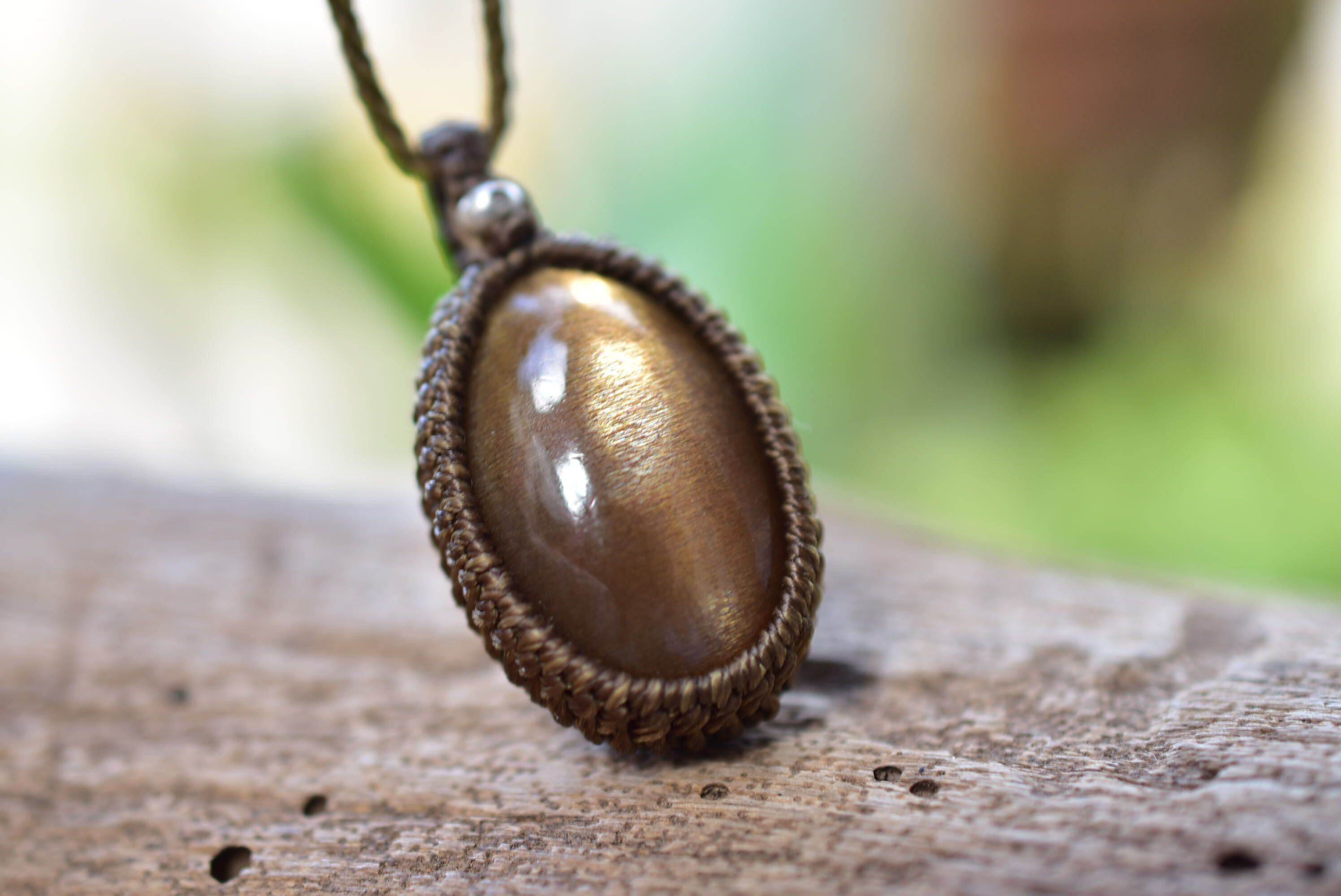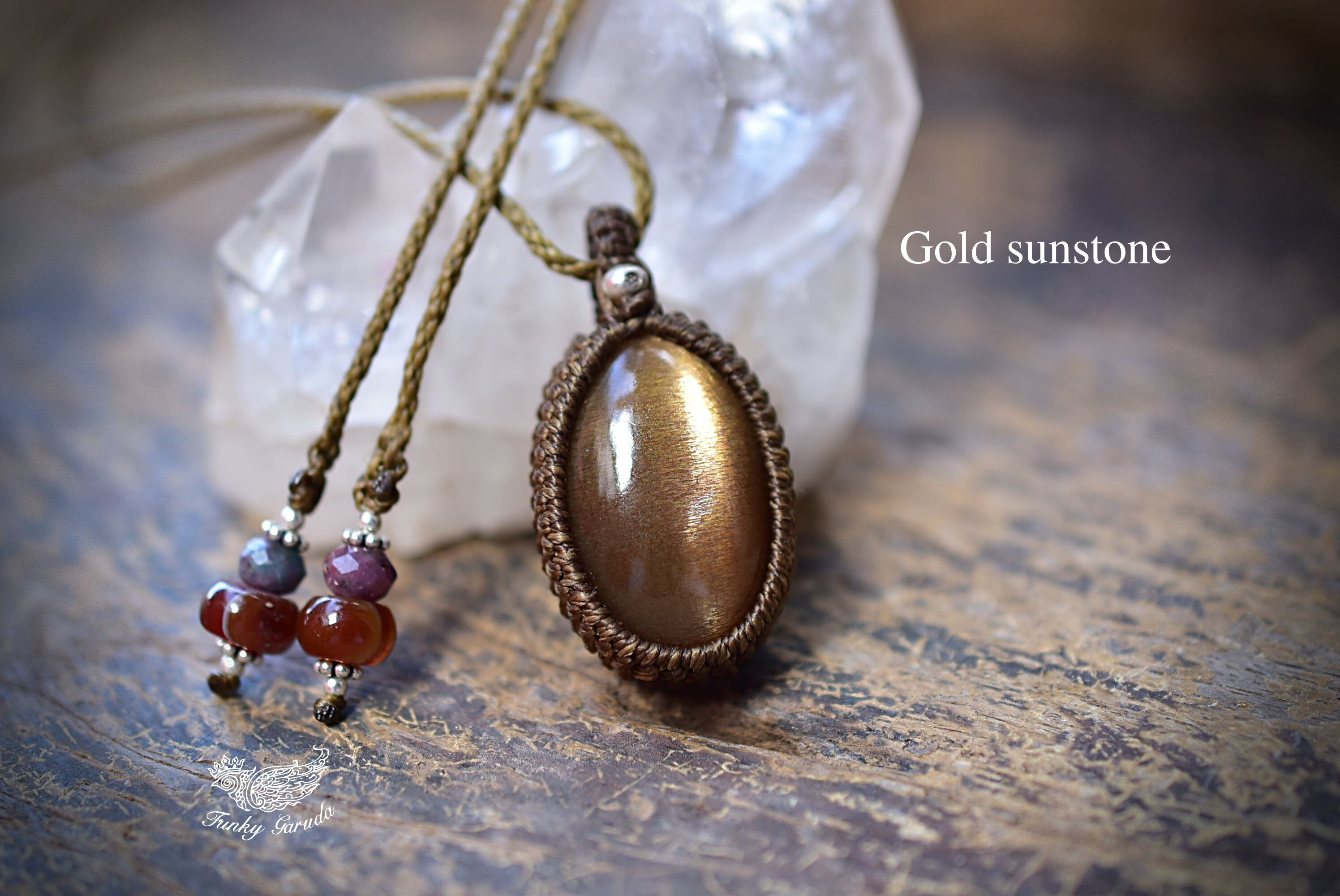金色の光沢★68ctゴールドサンストーン マクラメペンダント suny004