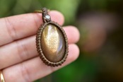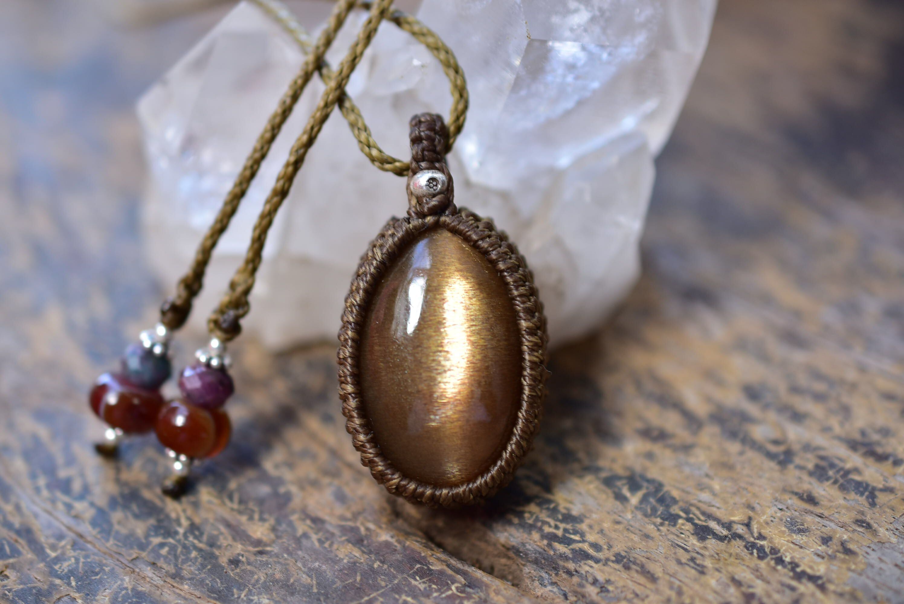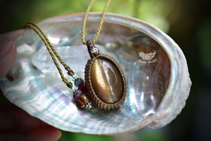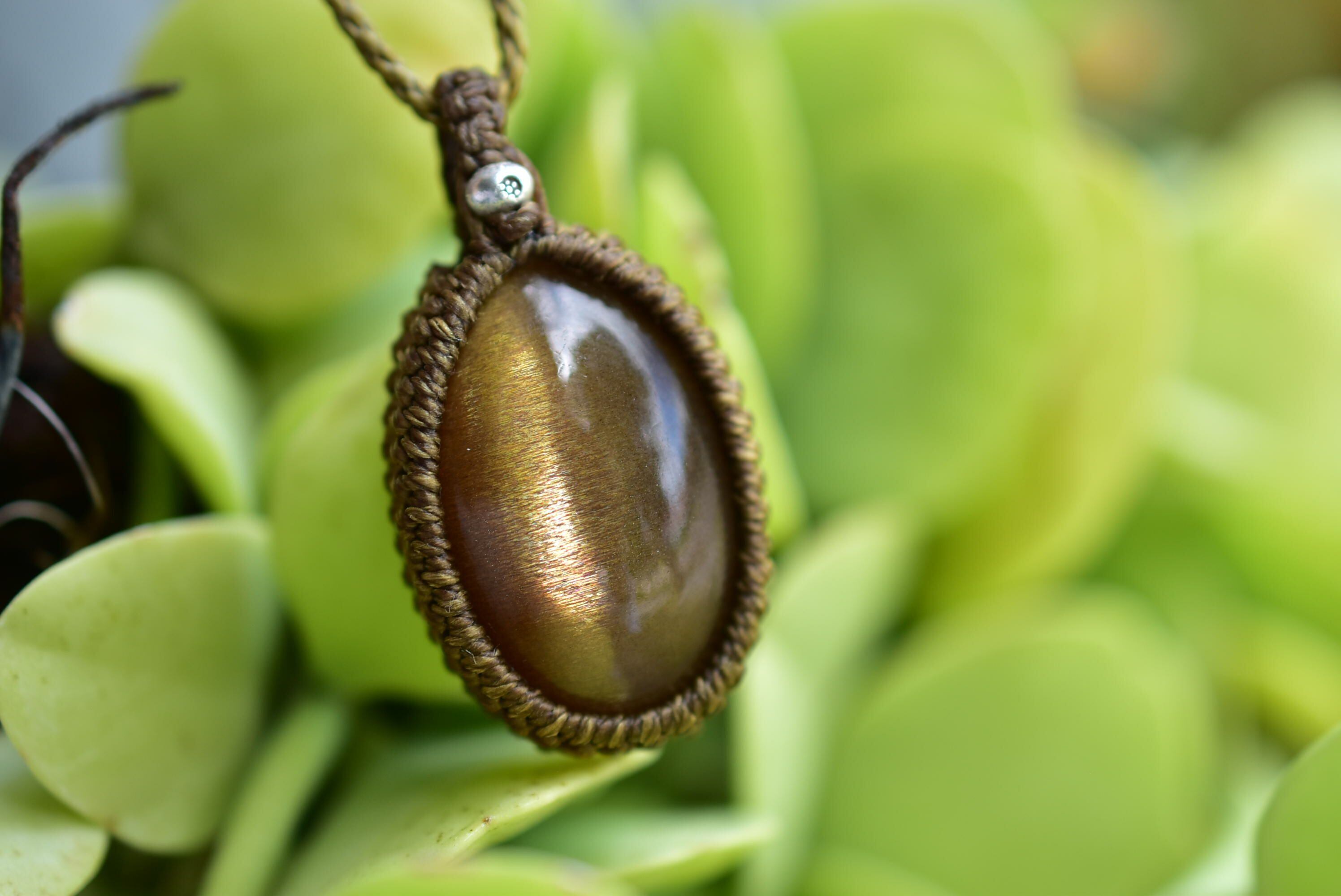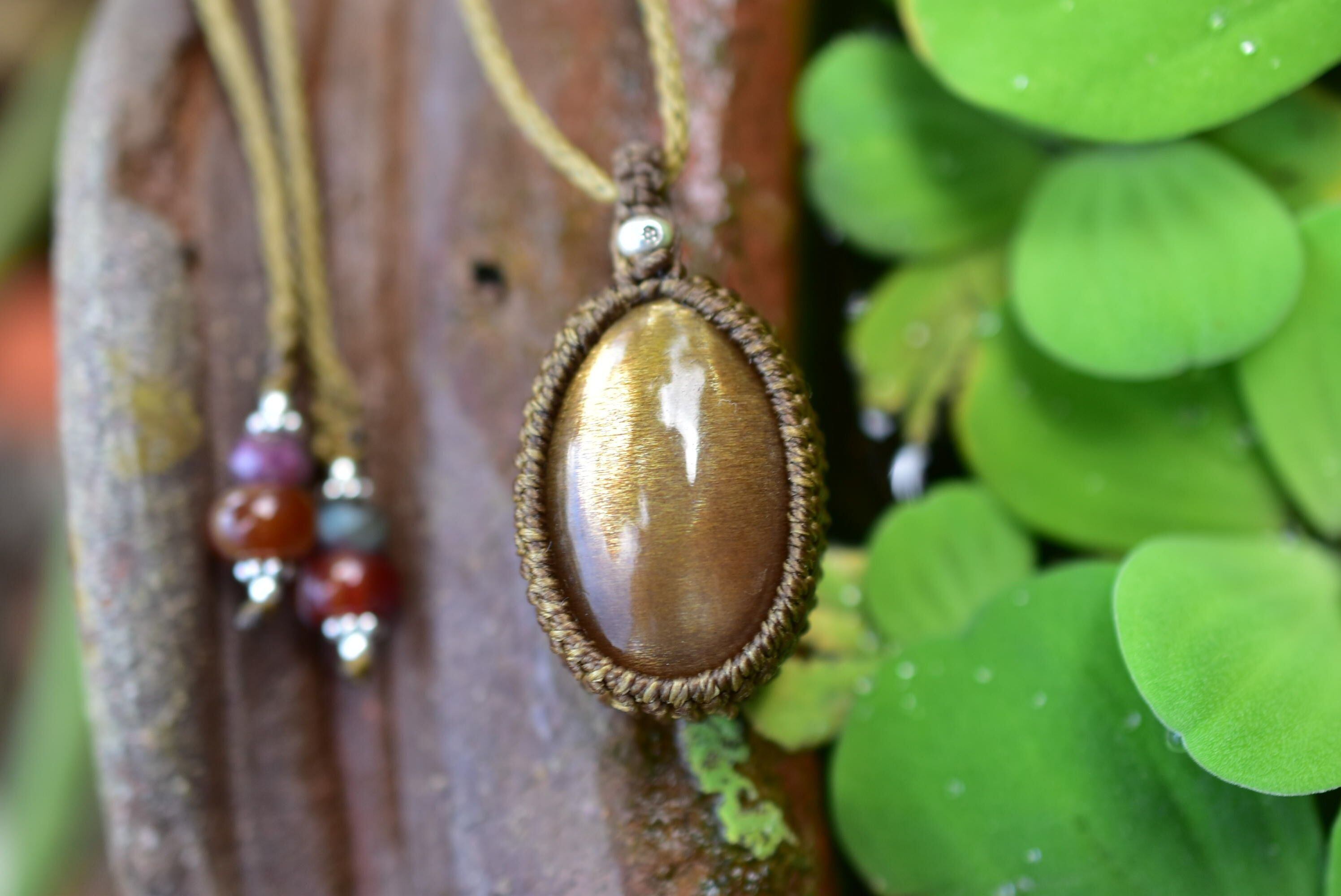 金色の光沢★68ctゴールドサンストーン マクラメペンダント suny004
