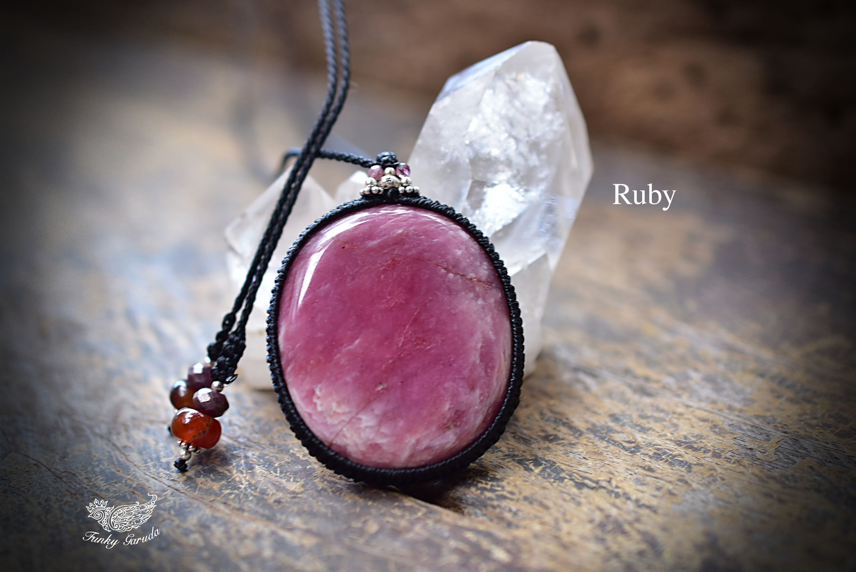 大粒★210ct ルビー シンプルマクラメペンダント rubyy003
