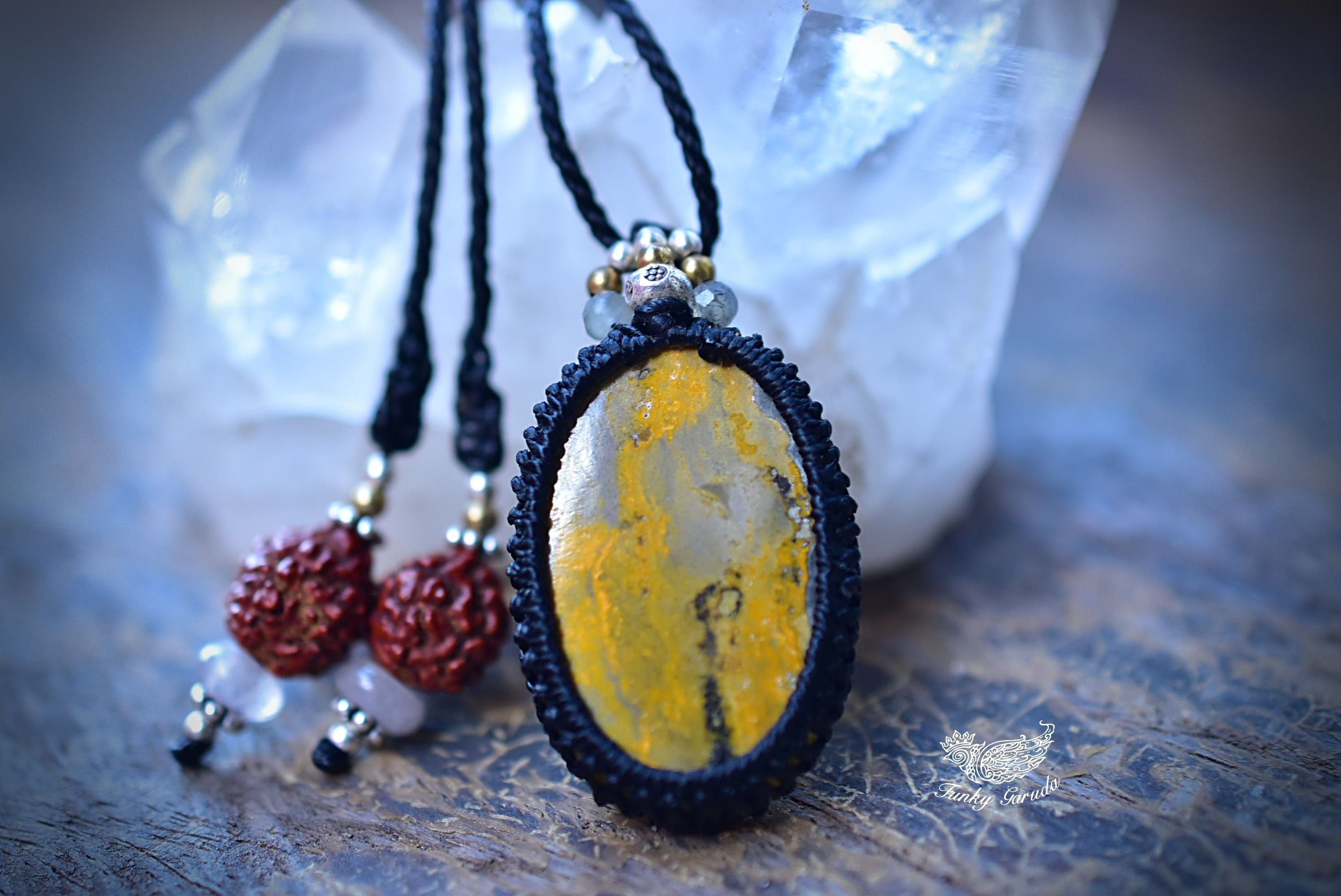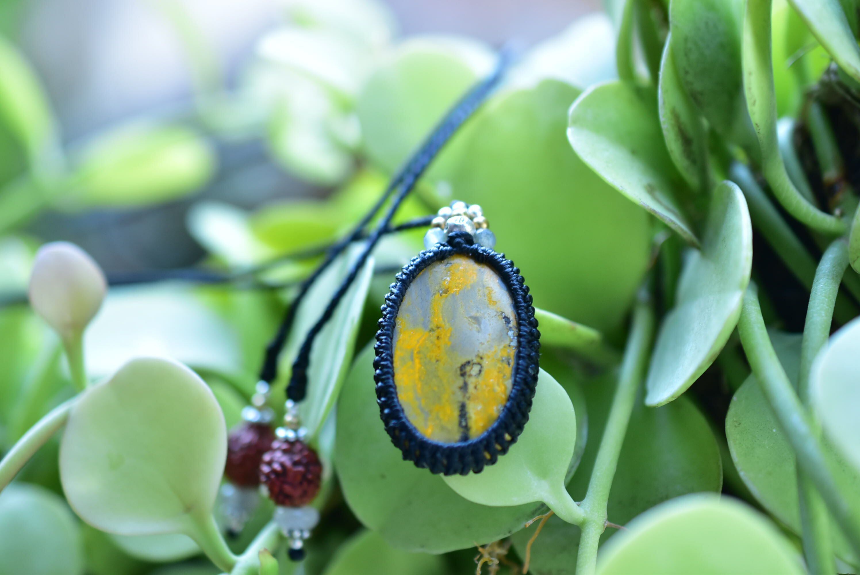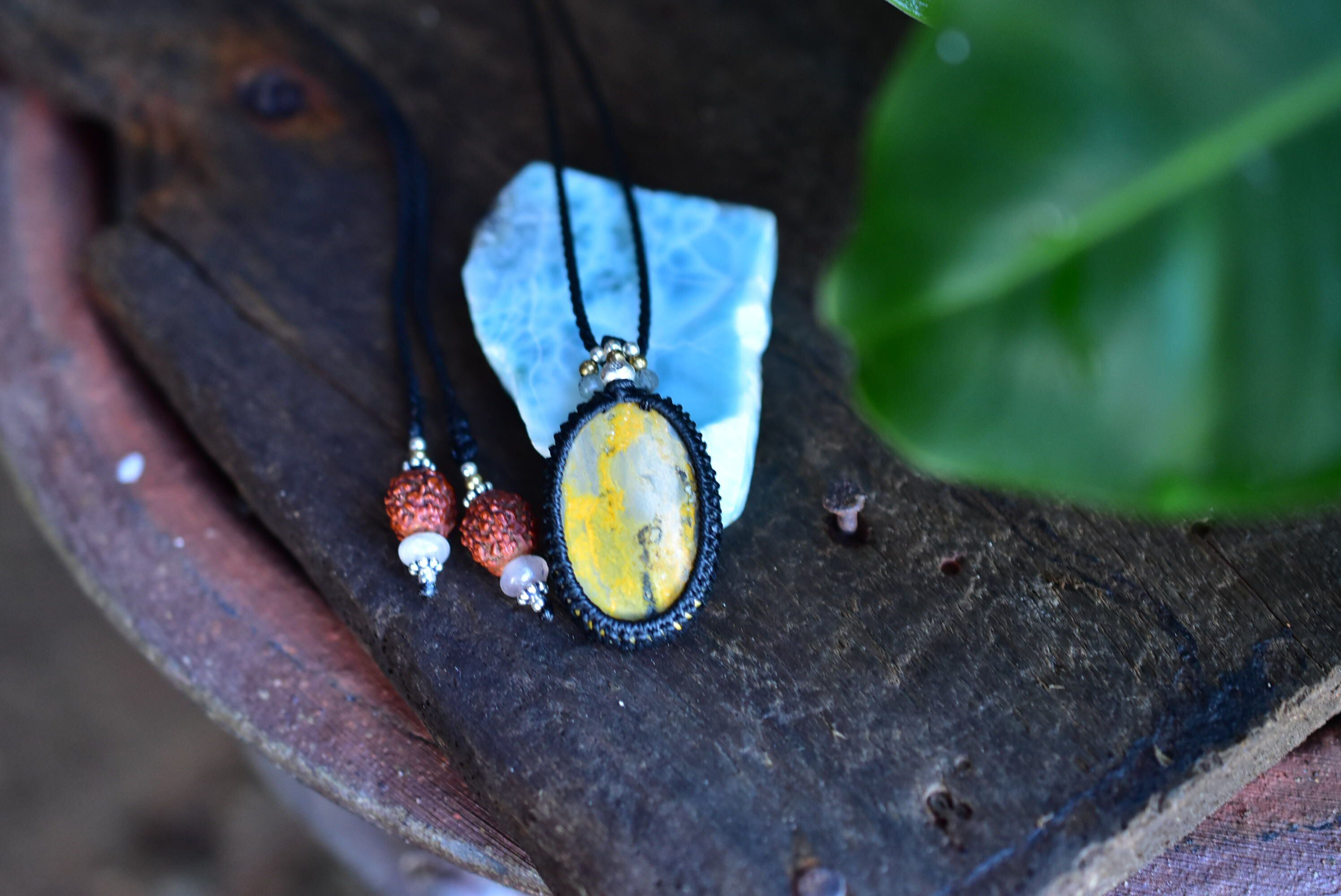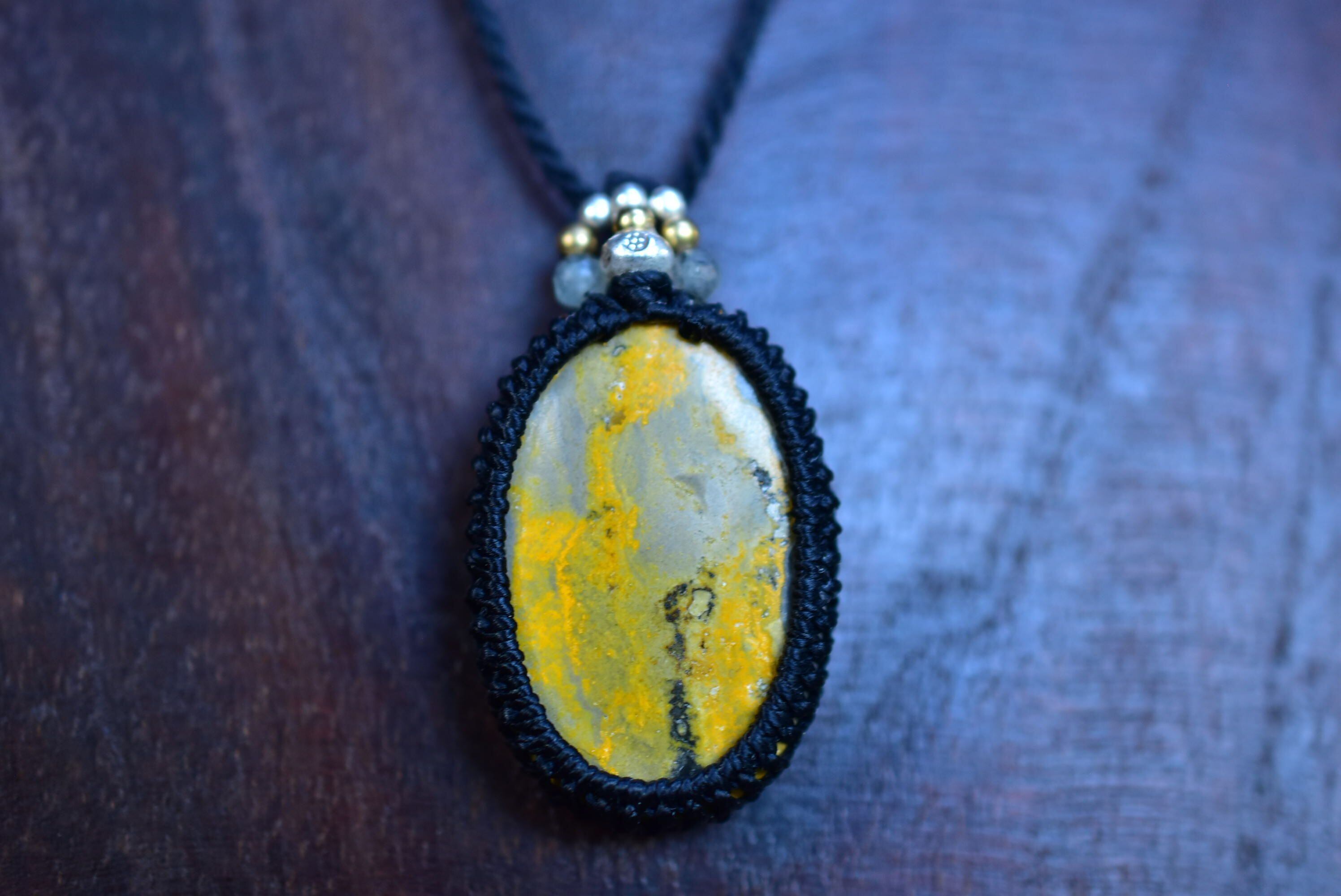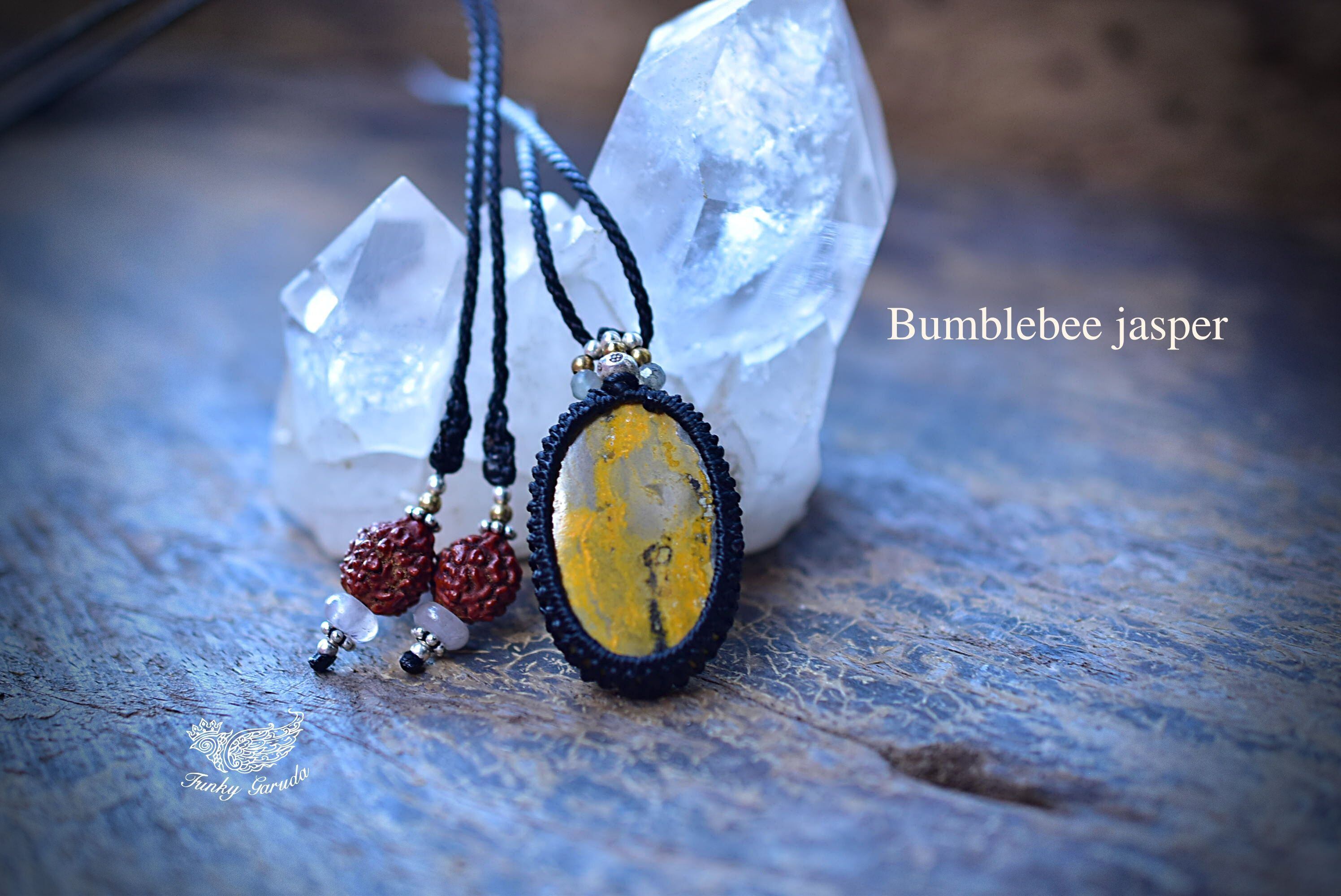 黄色い惑星★エクリプス★バンブルビージャスパー シンプルマクラメペンダントjay002