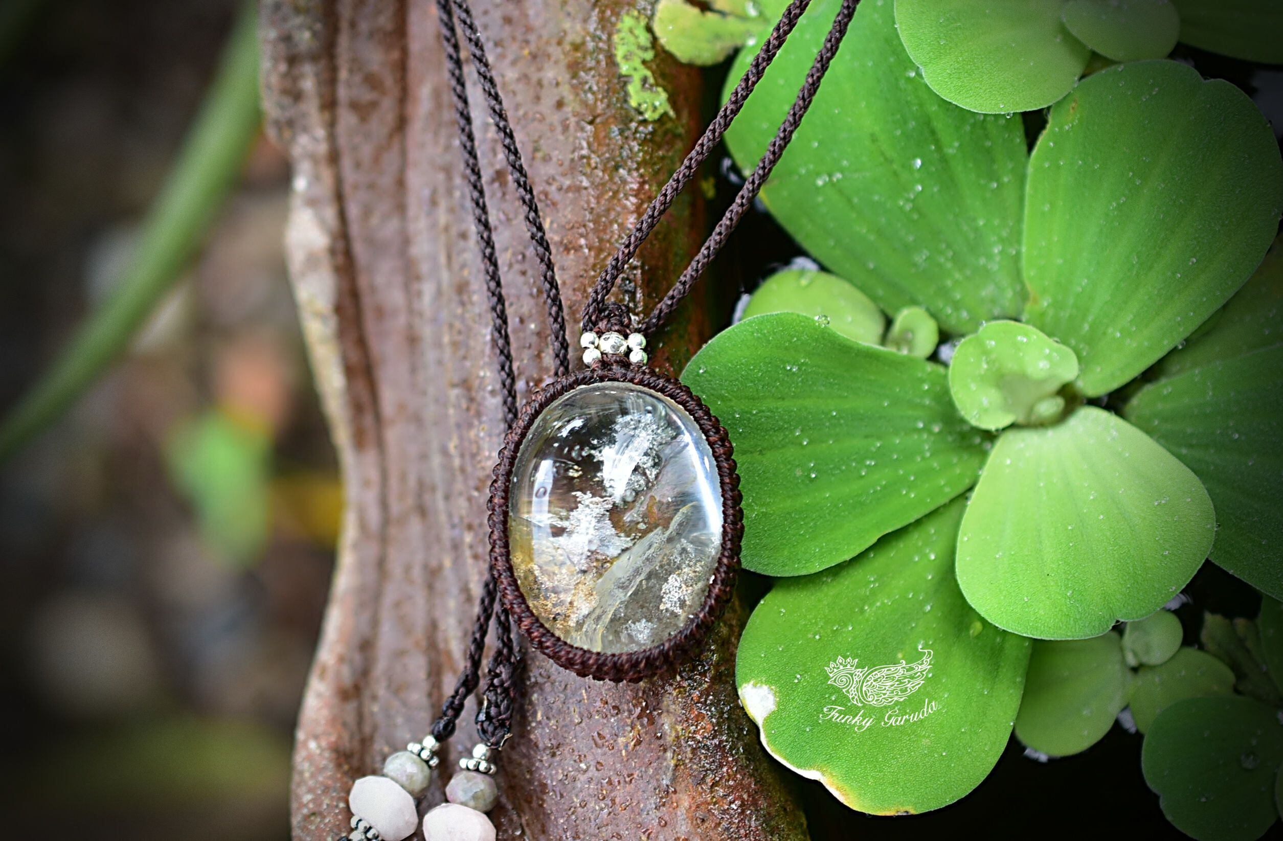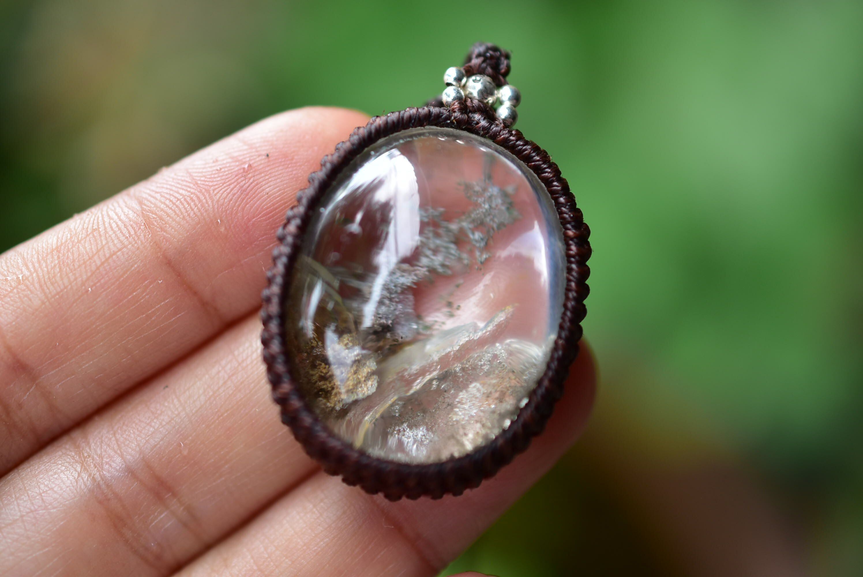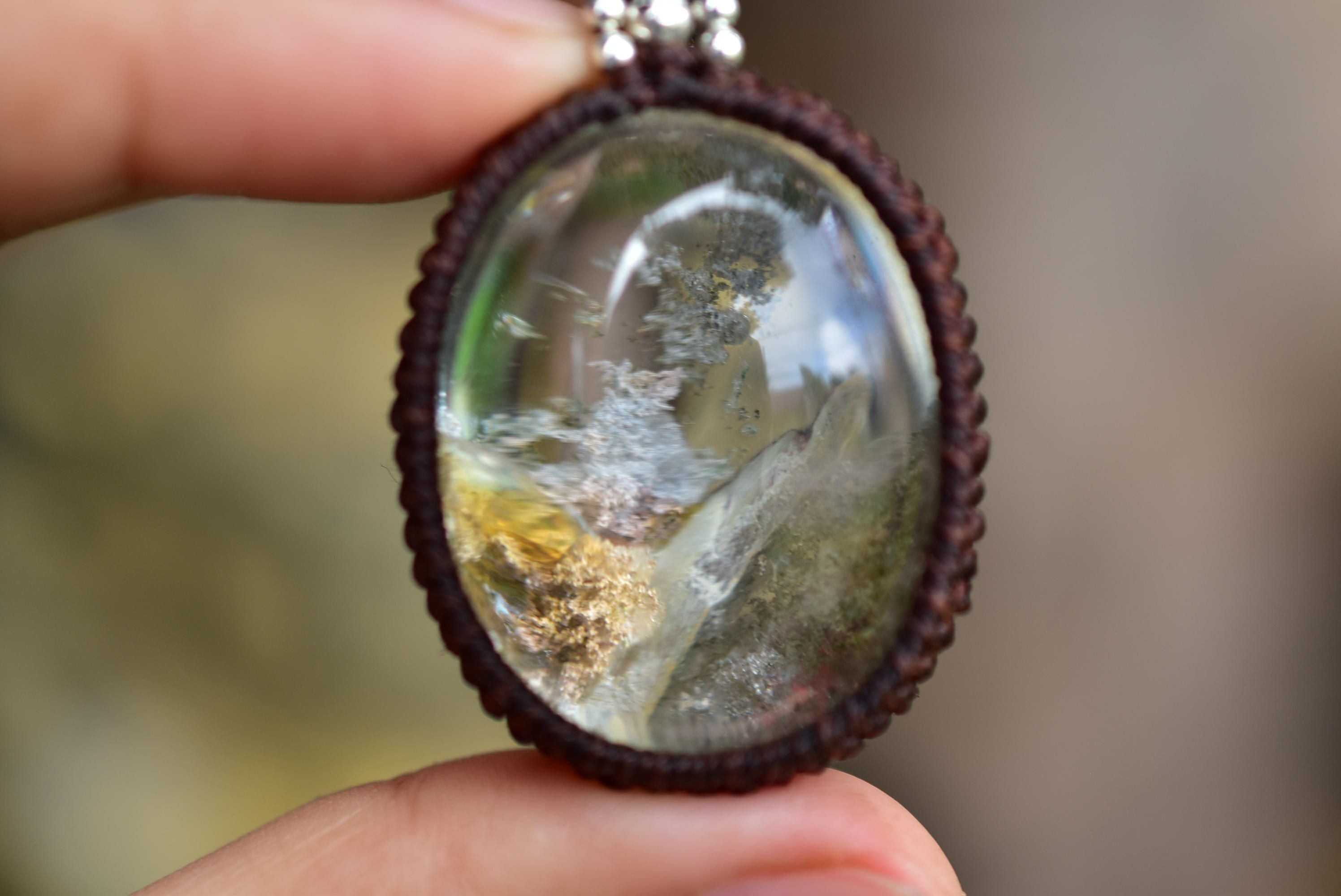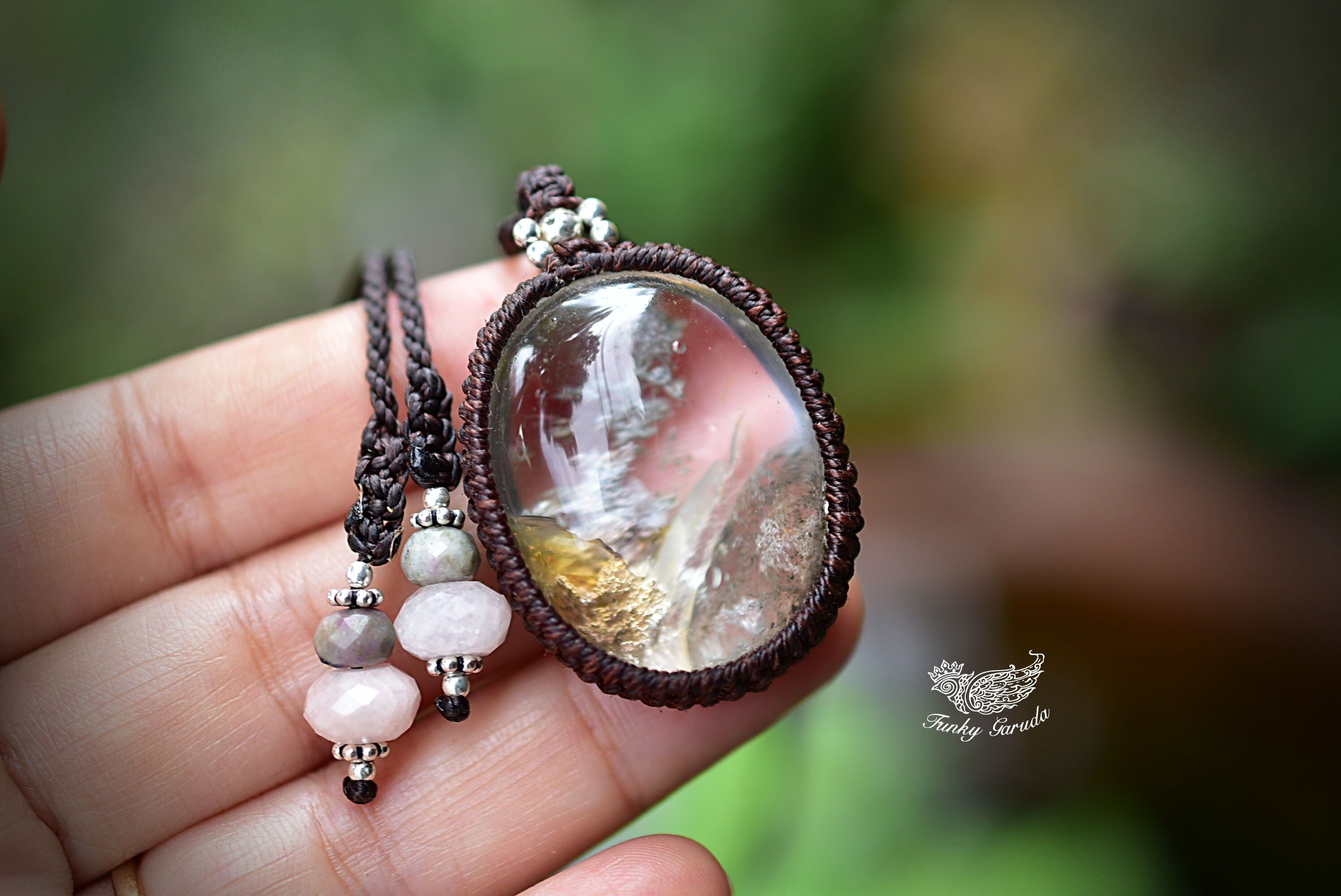 虹入り★立ち昇る神秘★中粒ガーデンクォーツ マクラメペンダント gy046