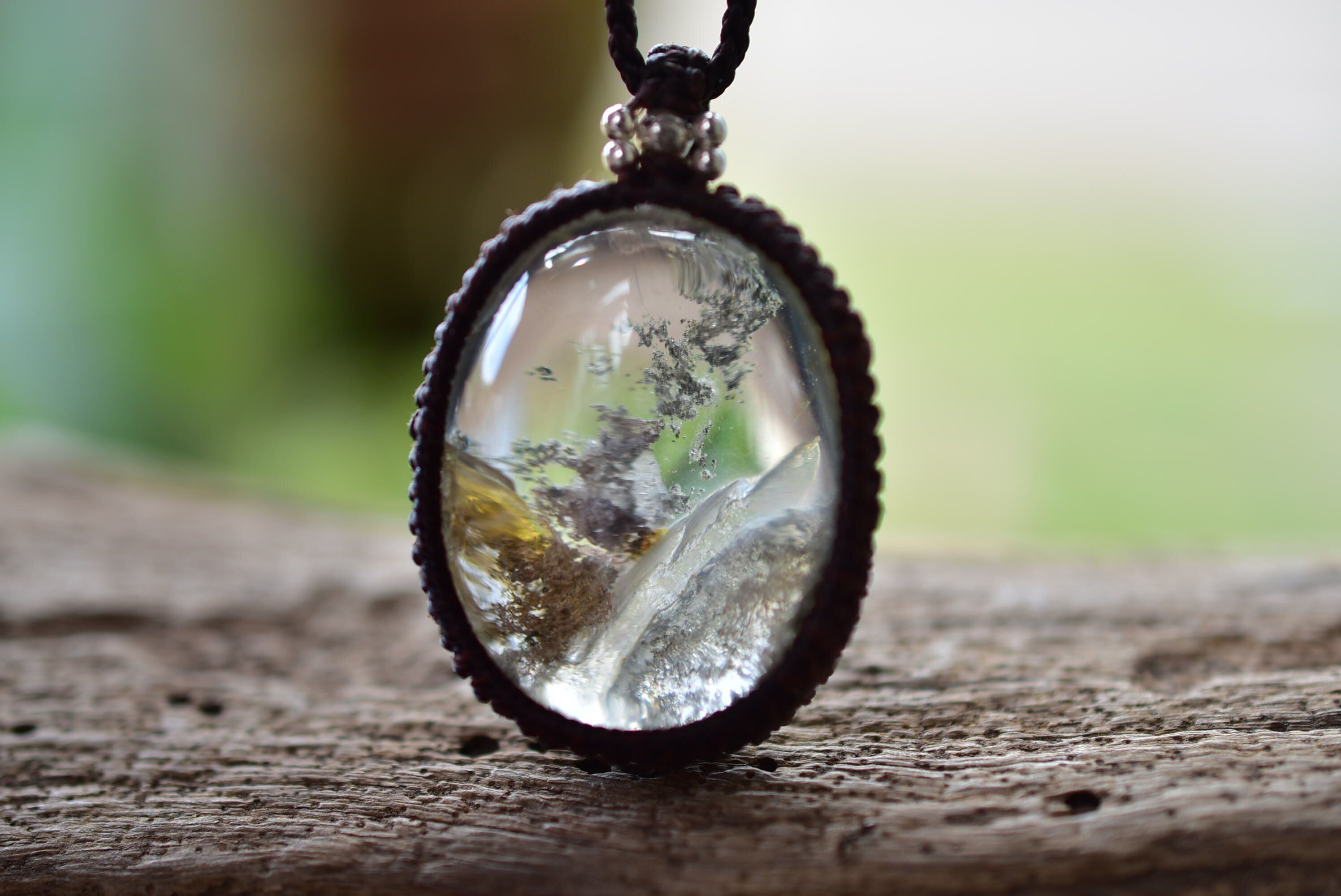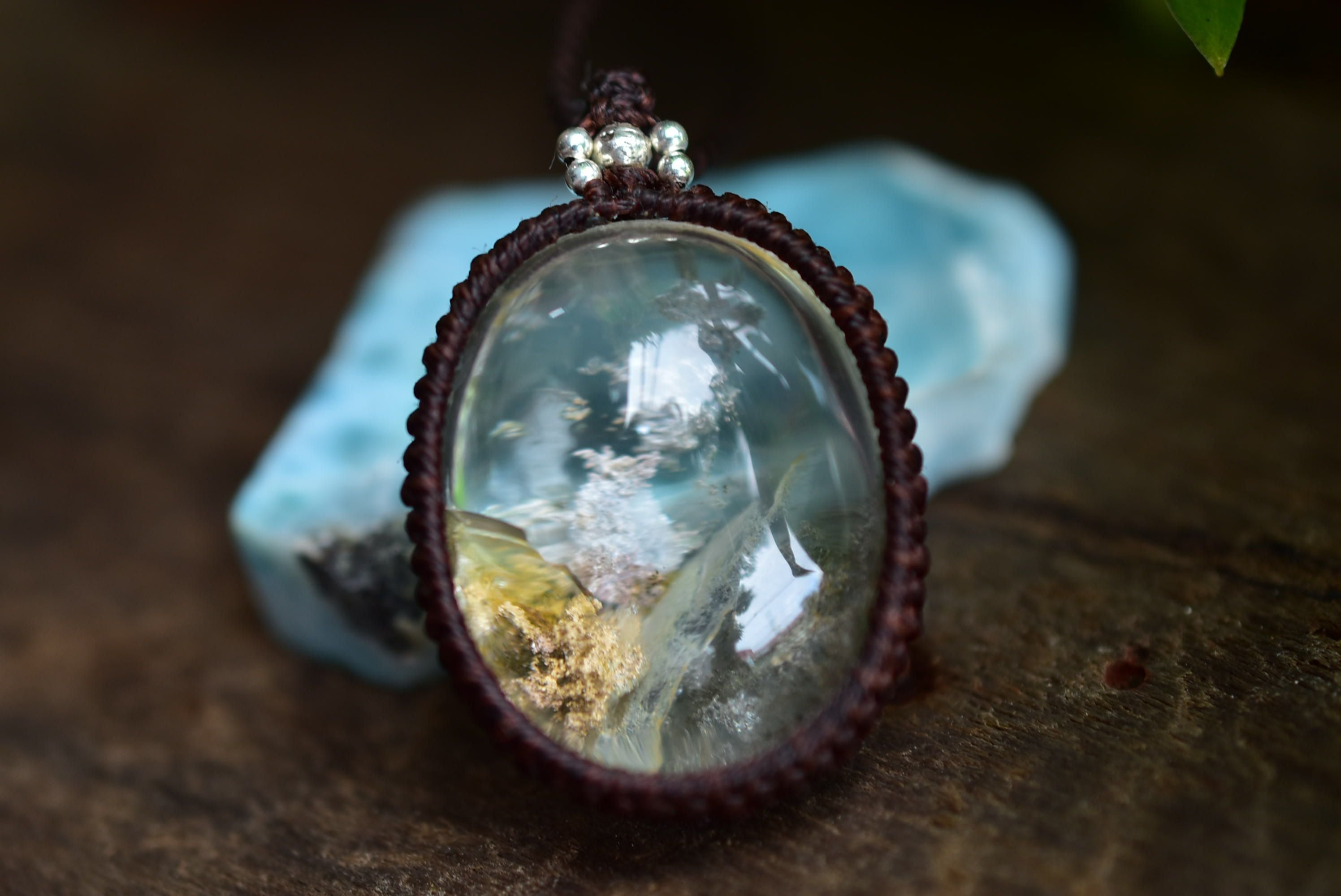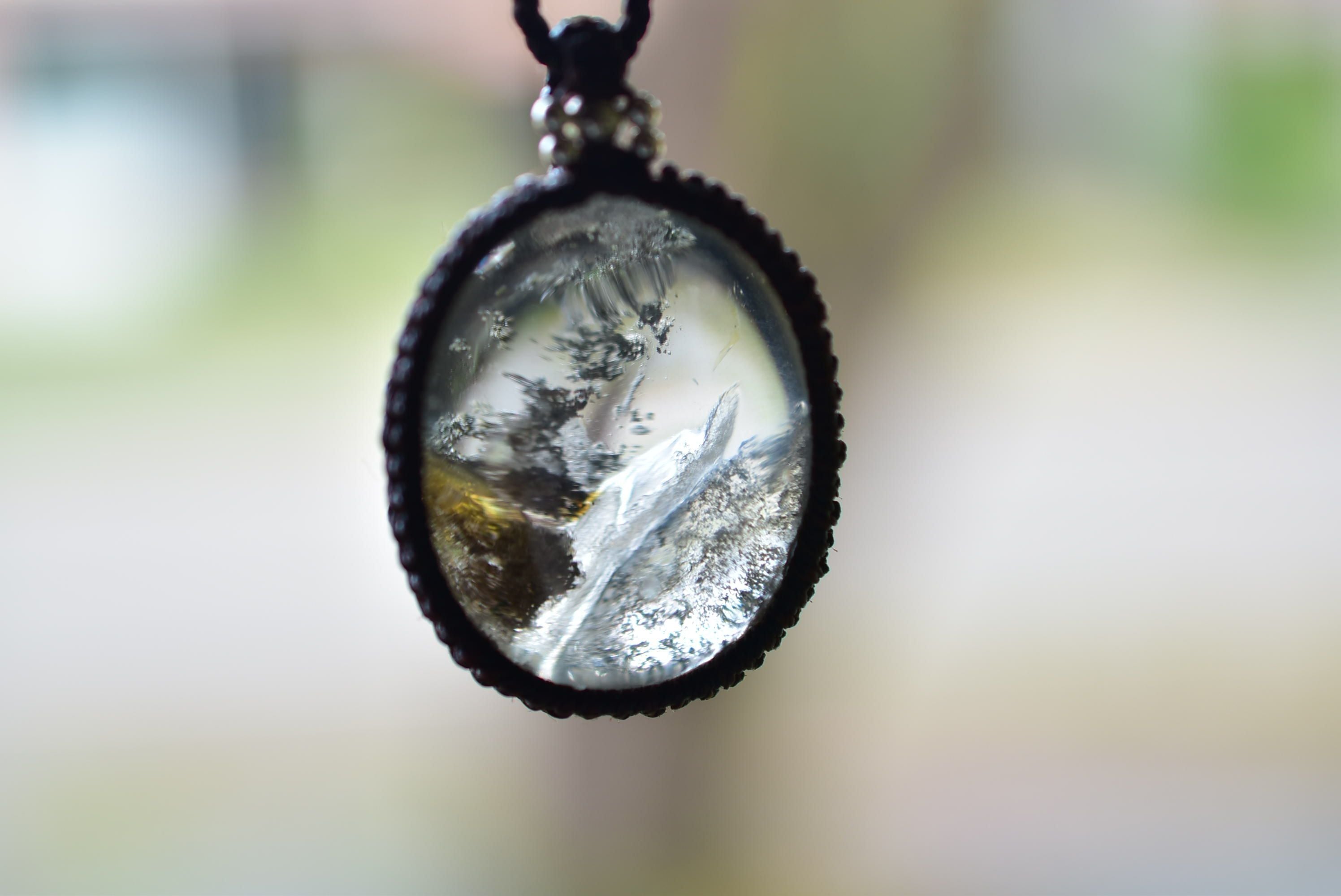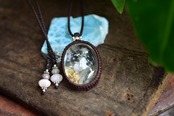 虹入り★立ち昇る神秘★中粒ガーデンクォーツ マクラメペンダント gy046