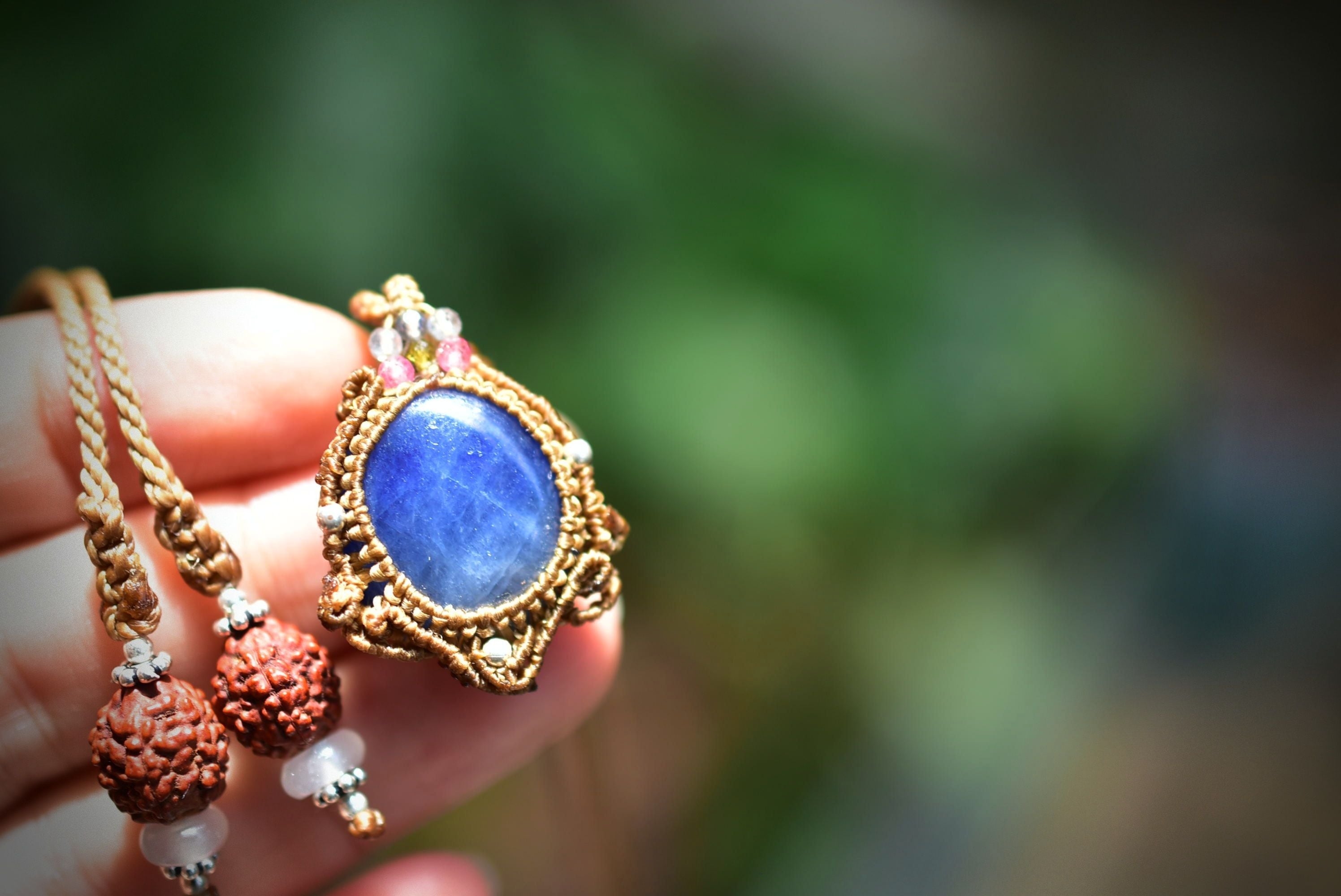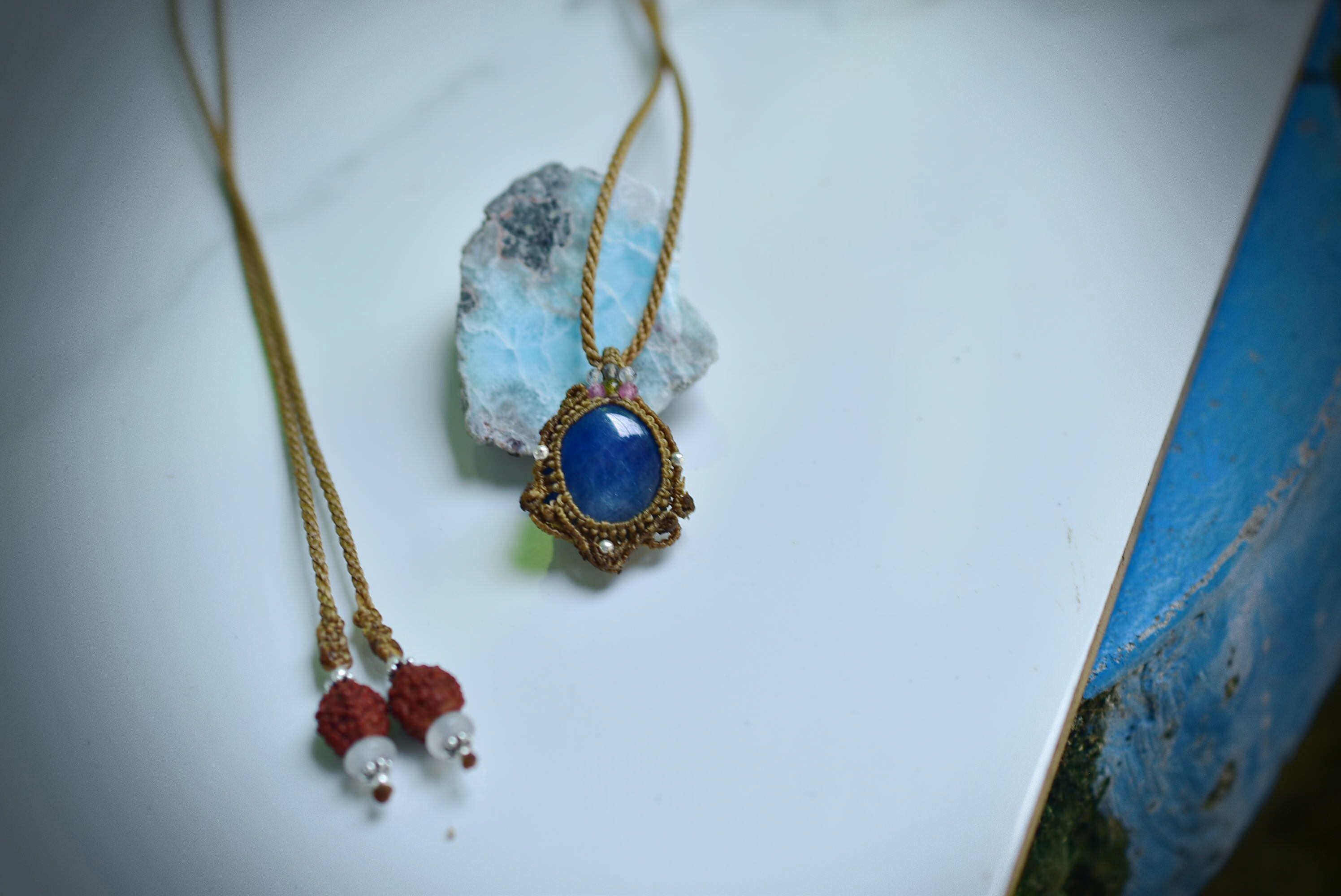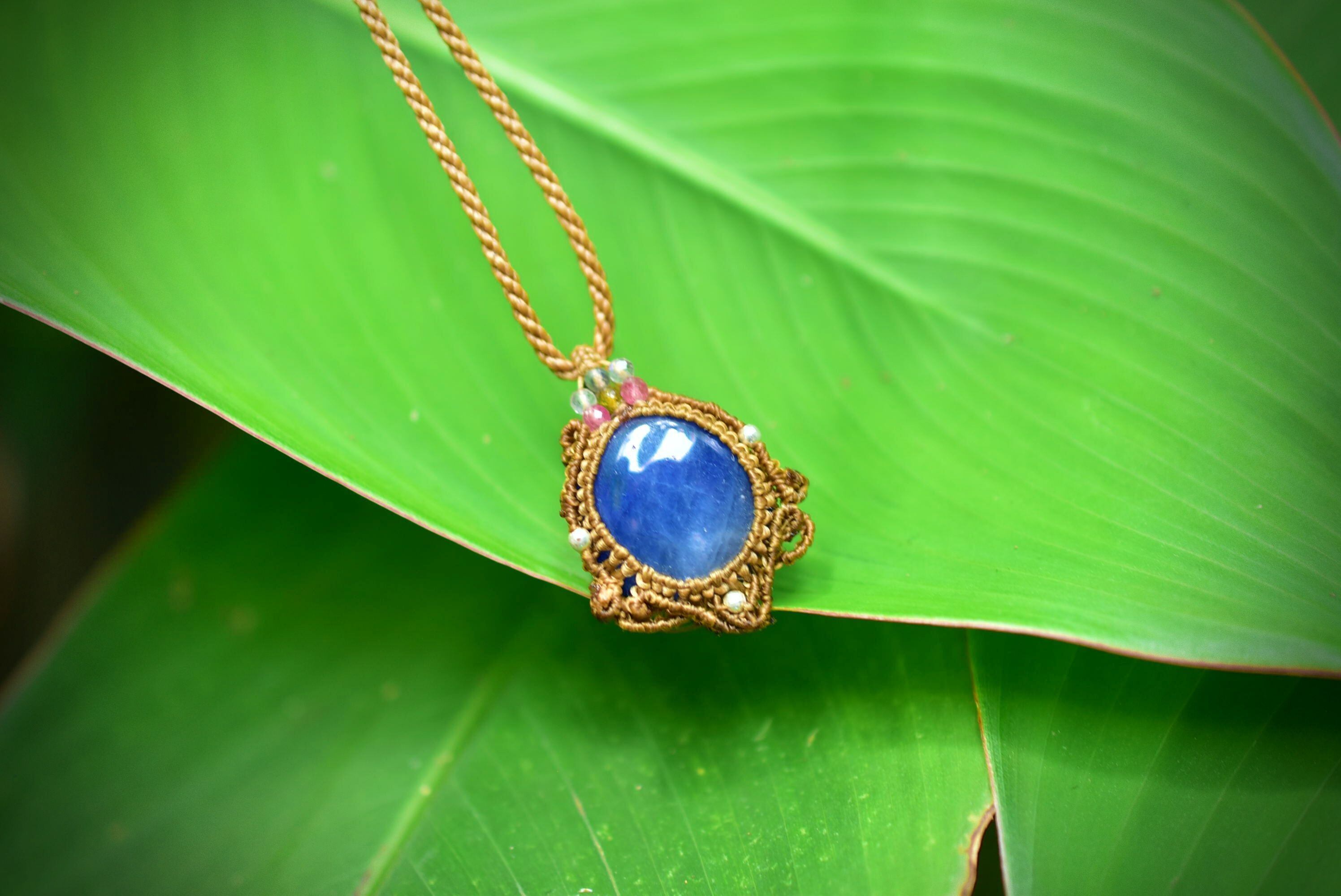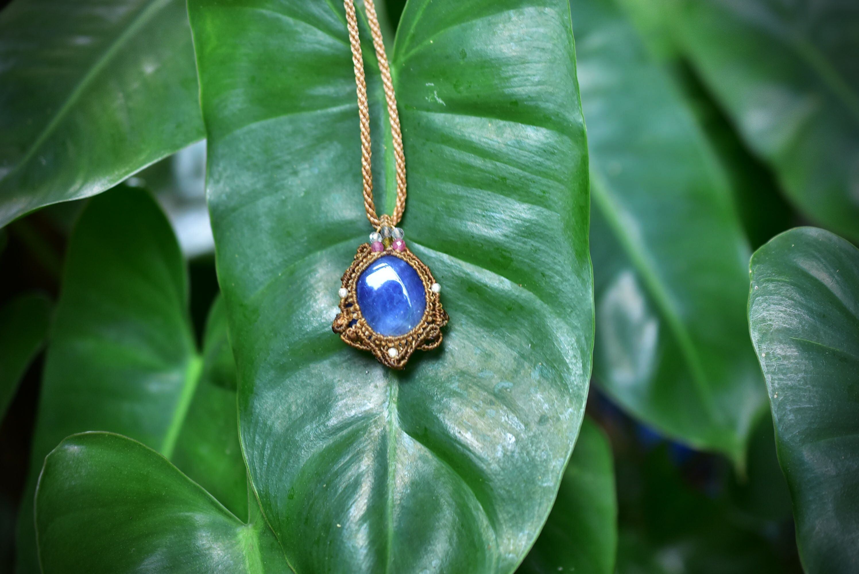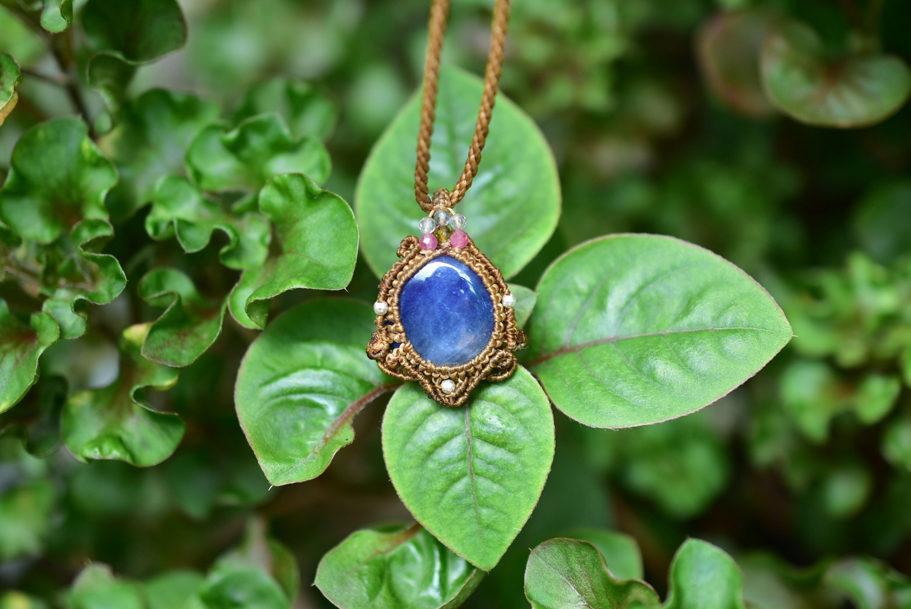 高品質★ブルーサファイア マクラメペンダントsafa013