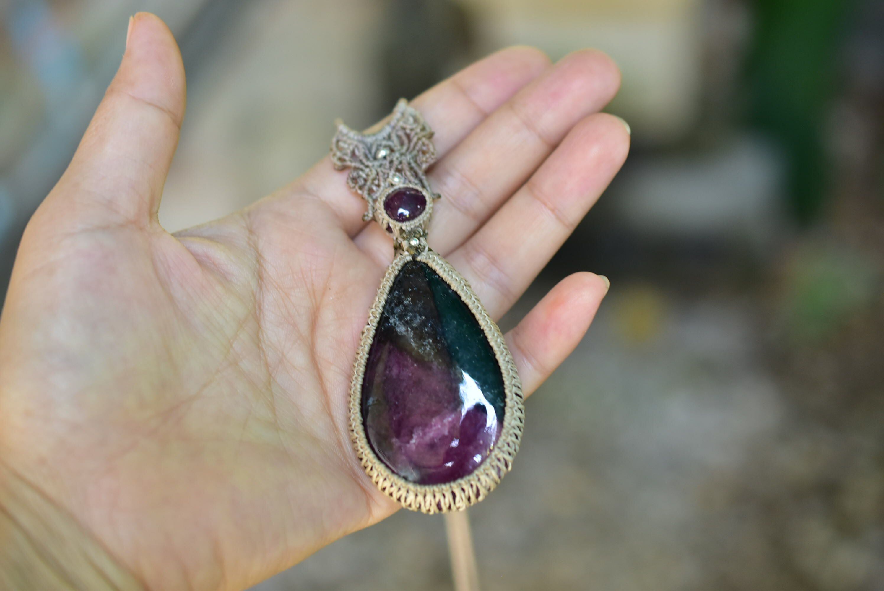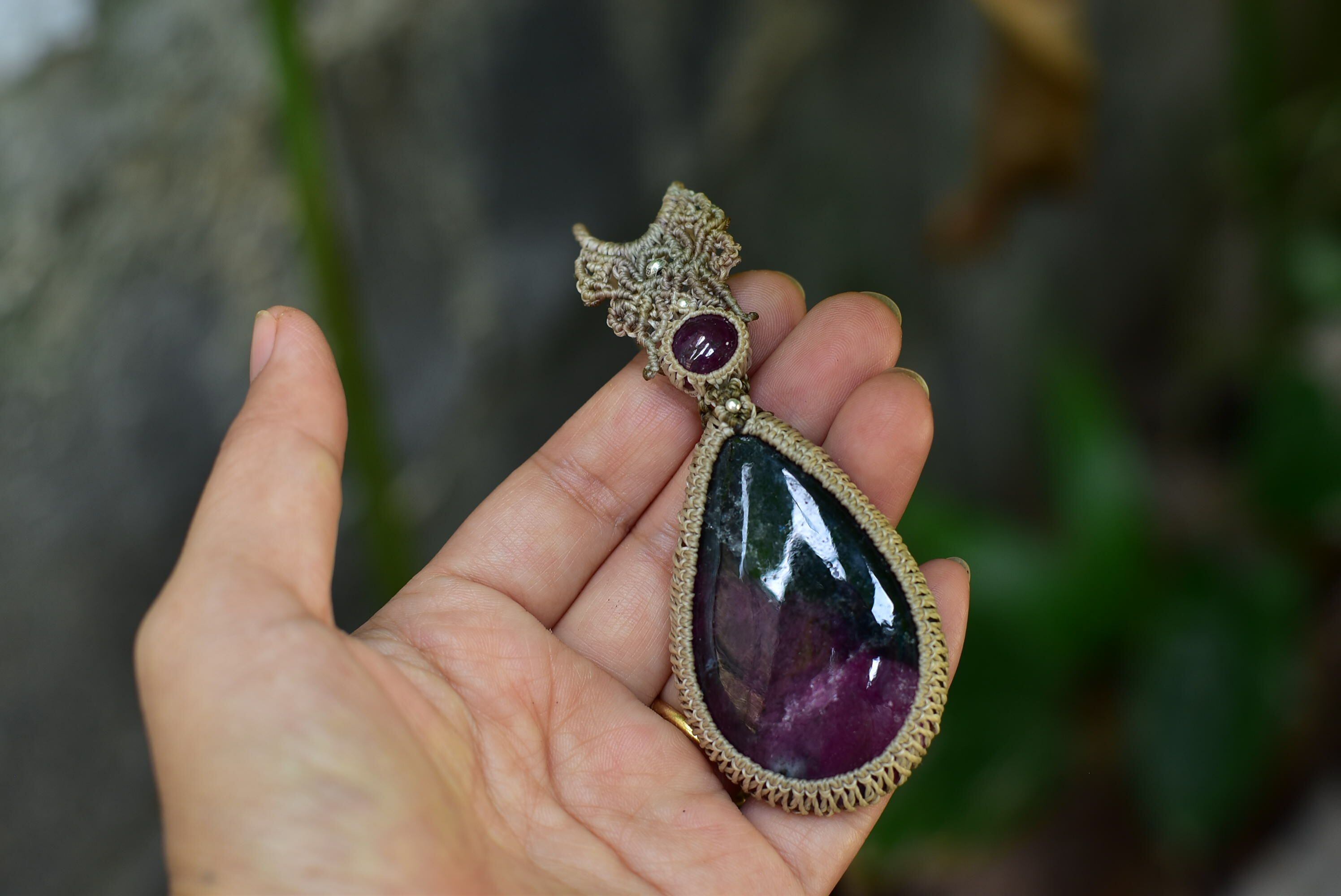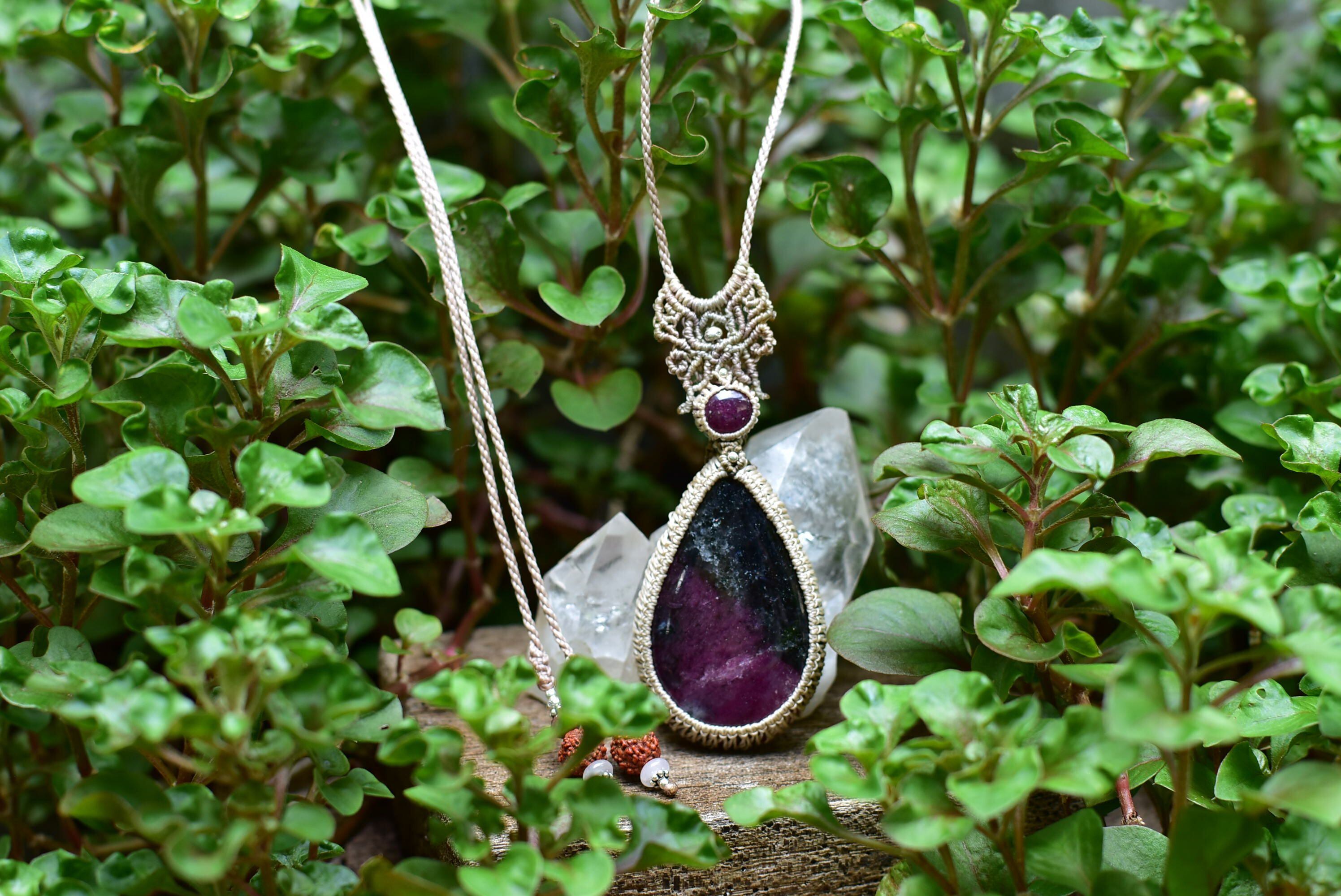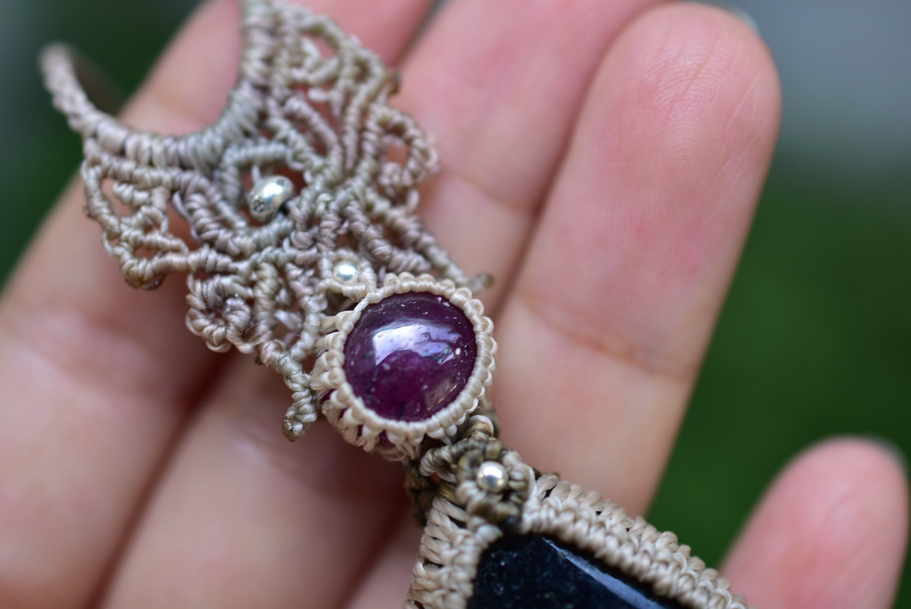 大粒★ルビーとルビーインゾイサイト マクラメペンダントruby034