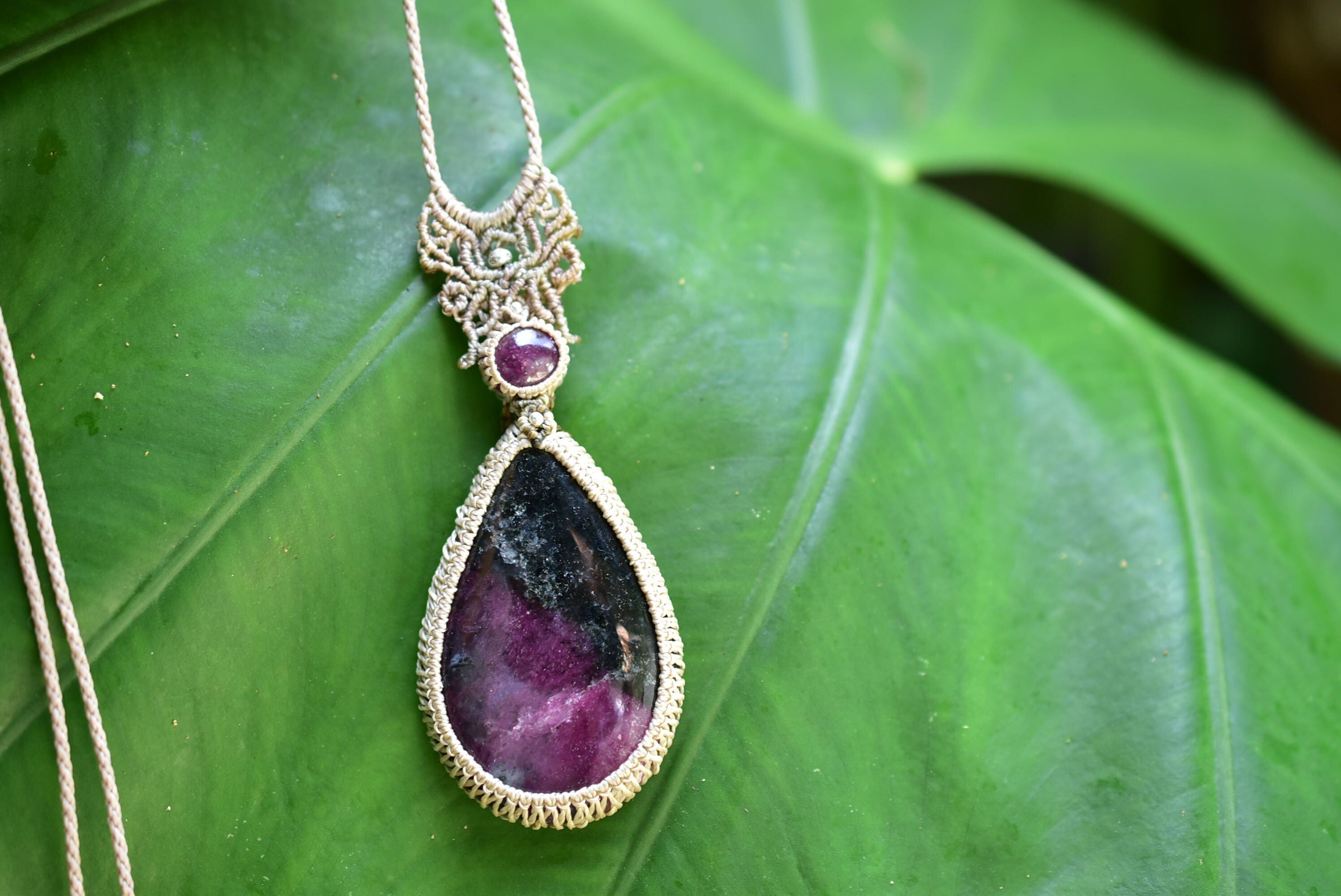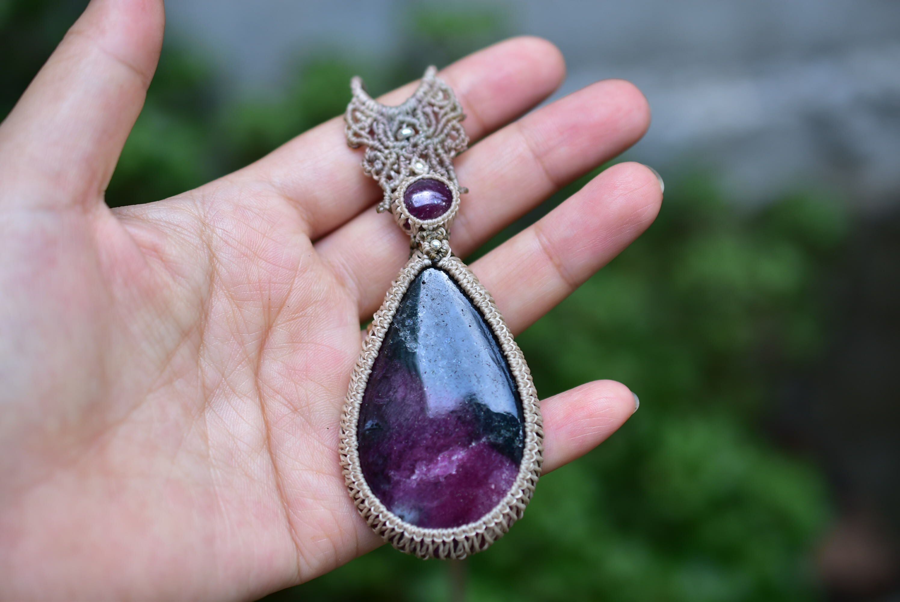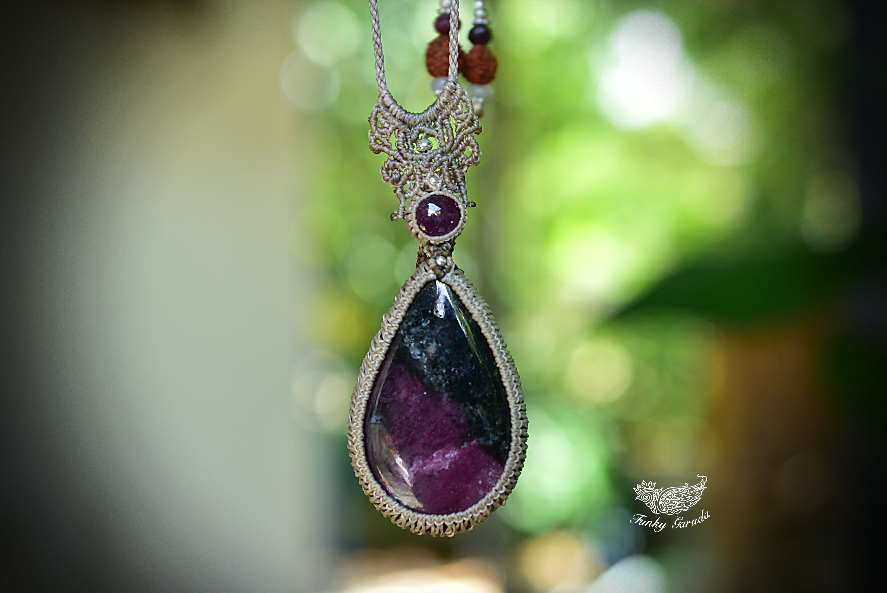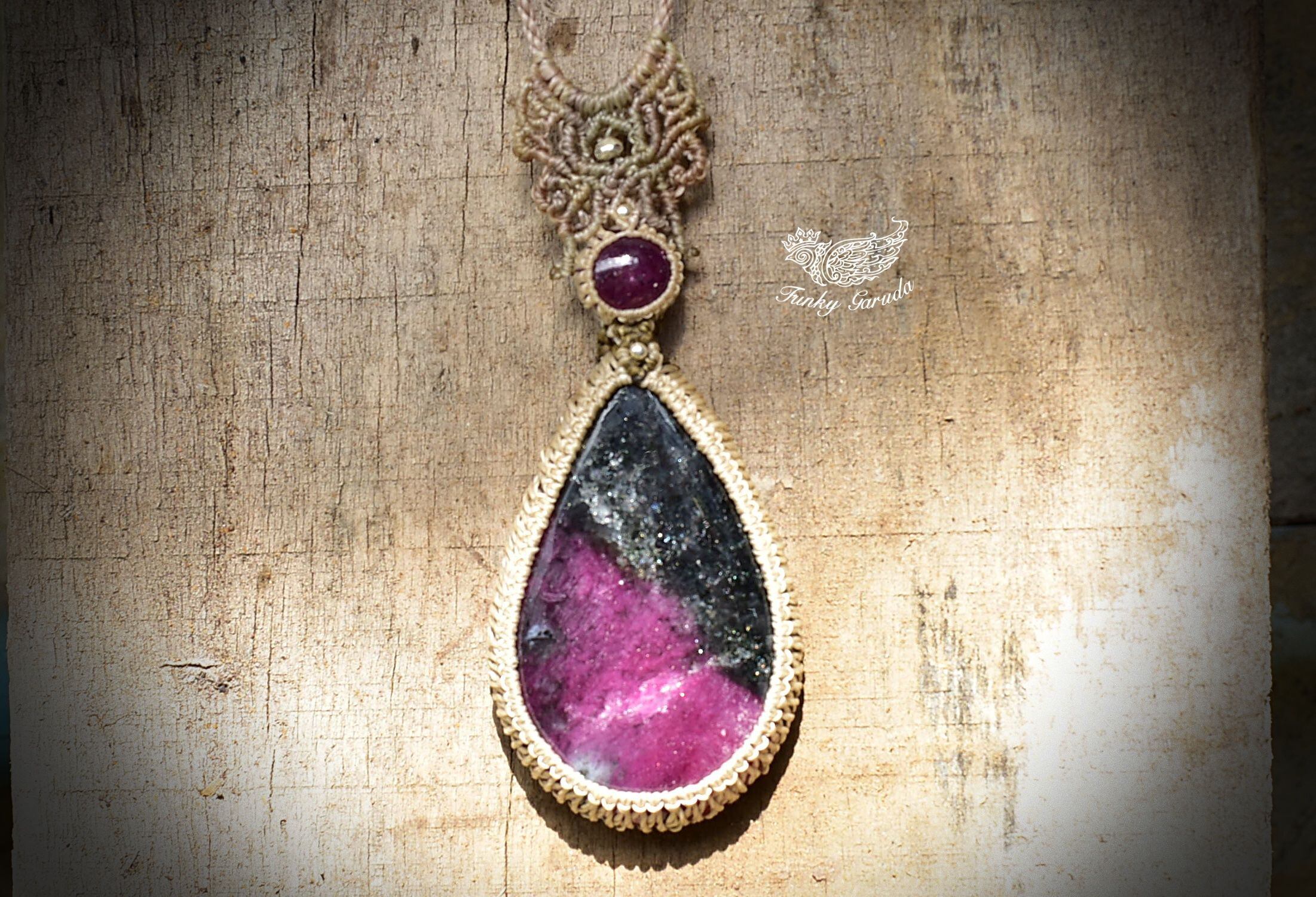 大粒★ルビーとルビーインゾイサイト マクラメペンダントruby034
