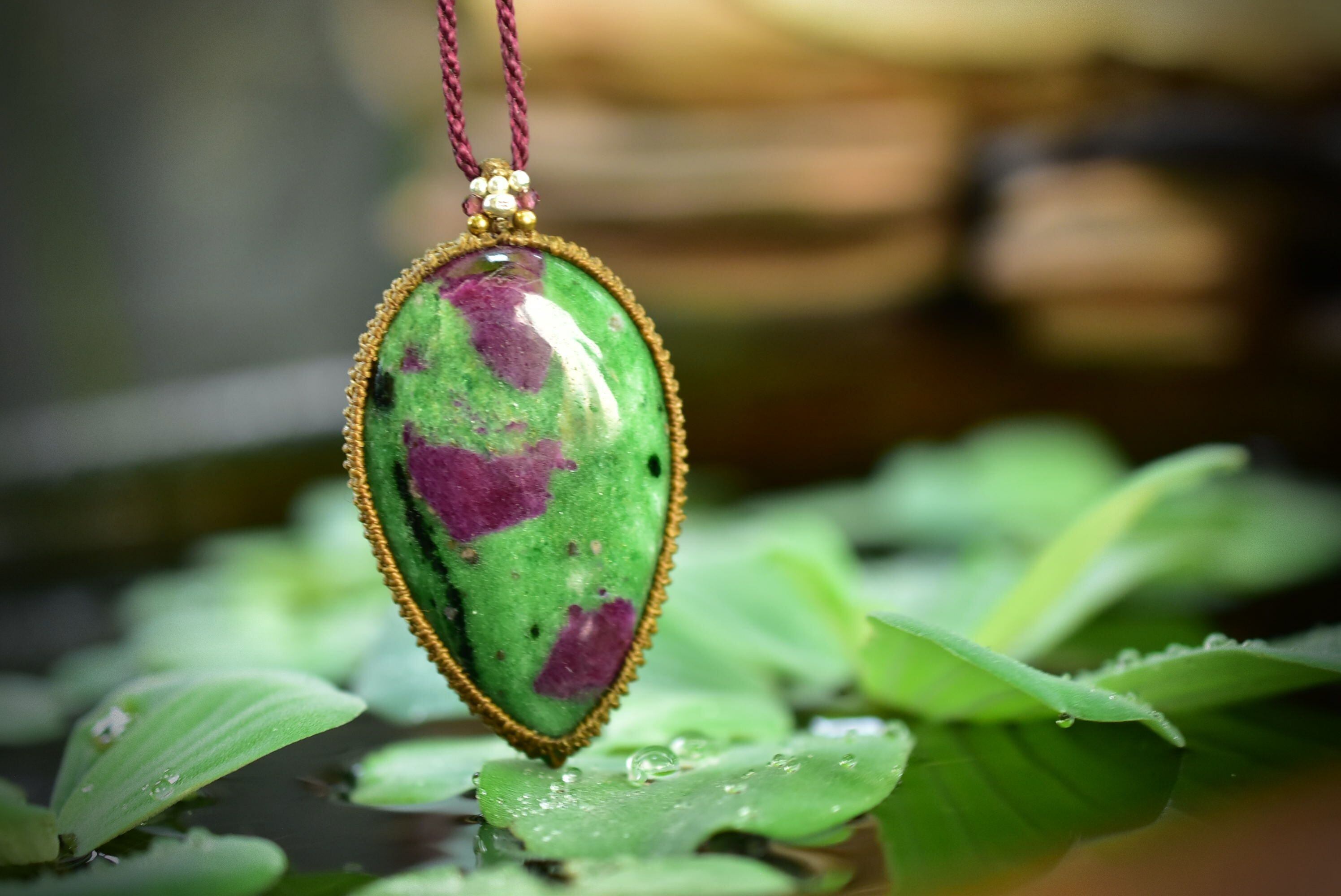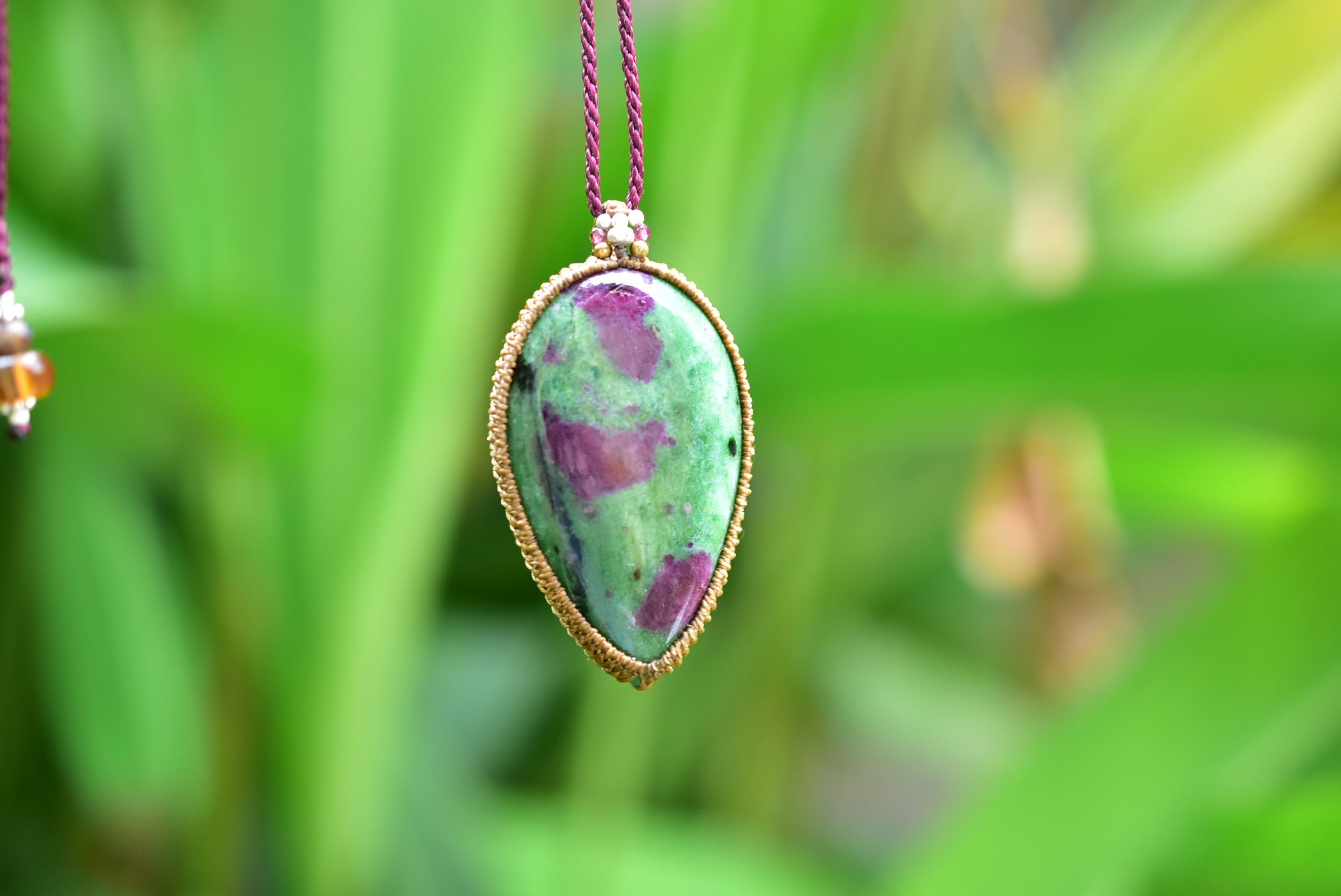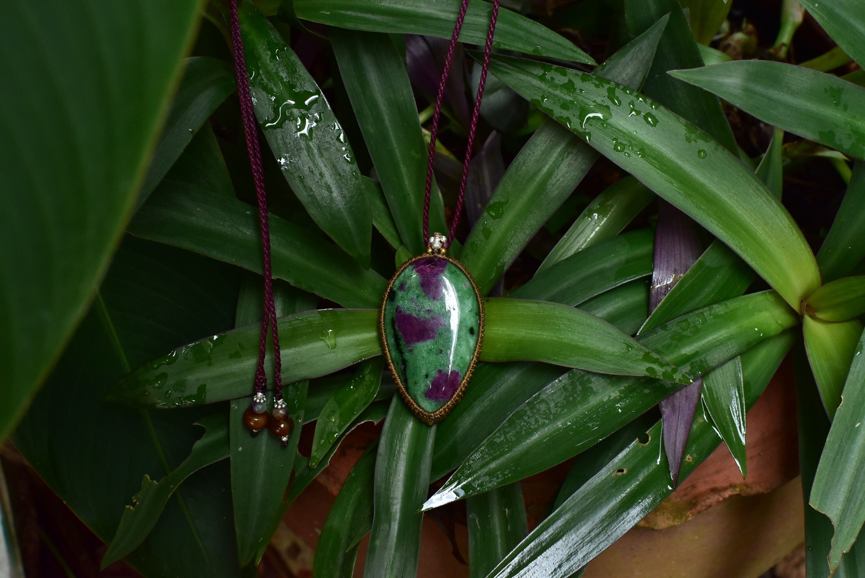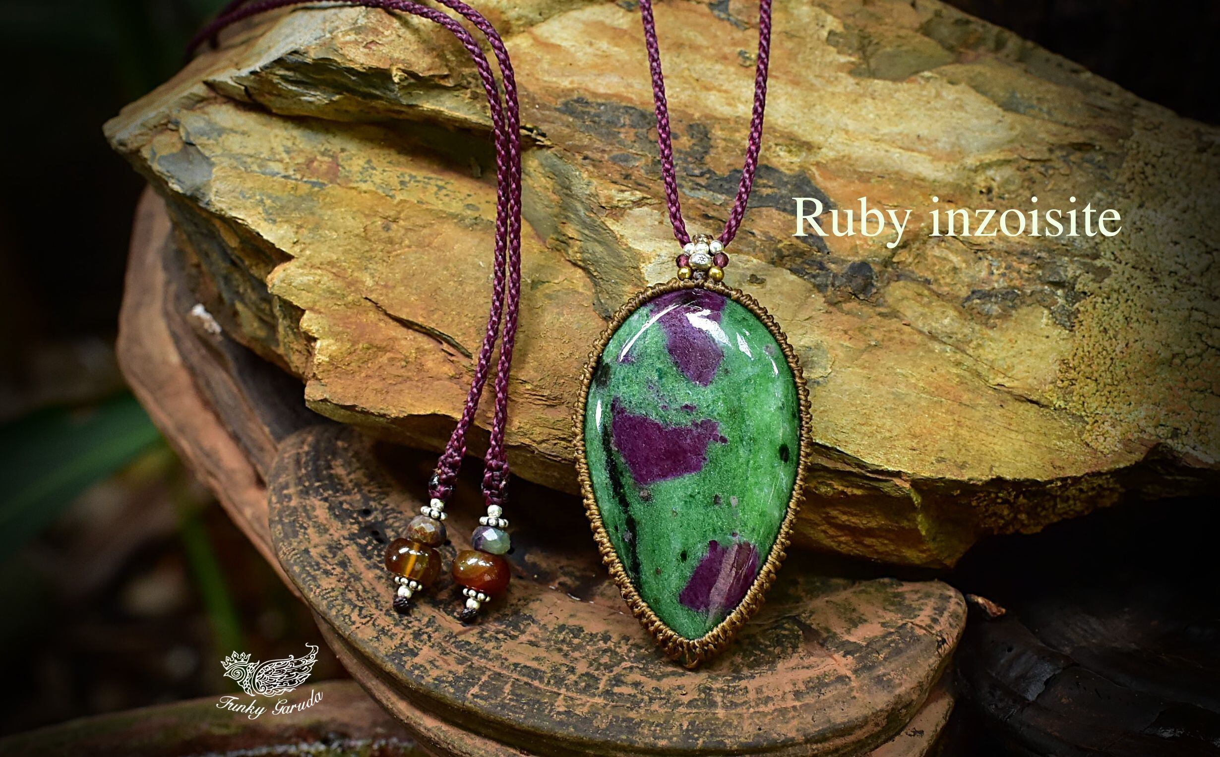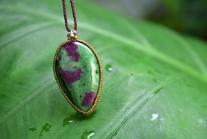 緑に映える紅★ルビーインゾイサイト シンプルマクラメペンダントruzy003