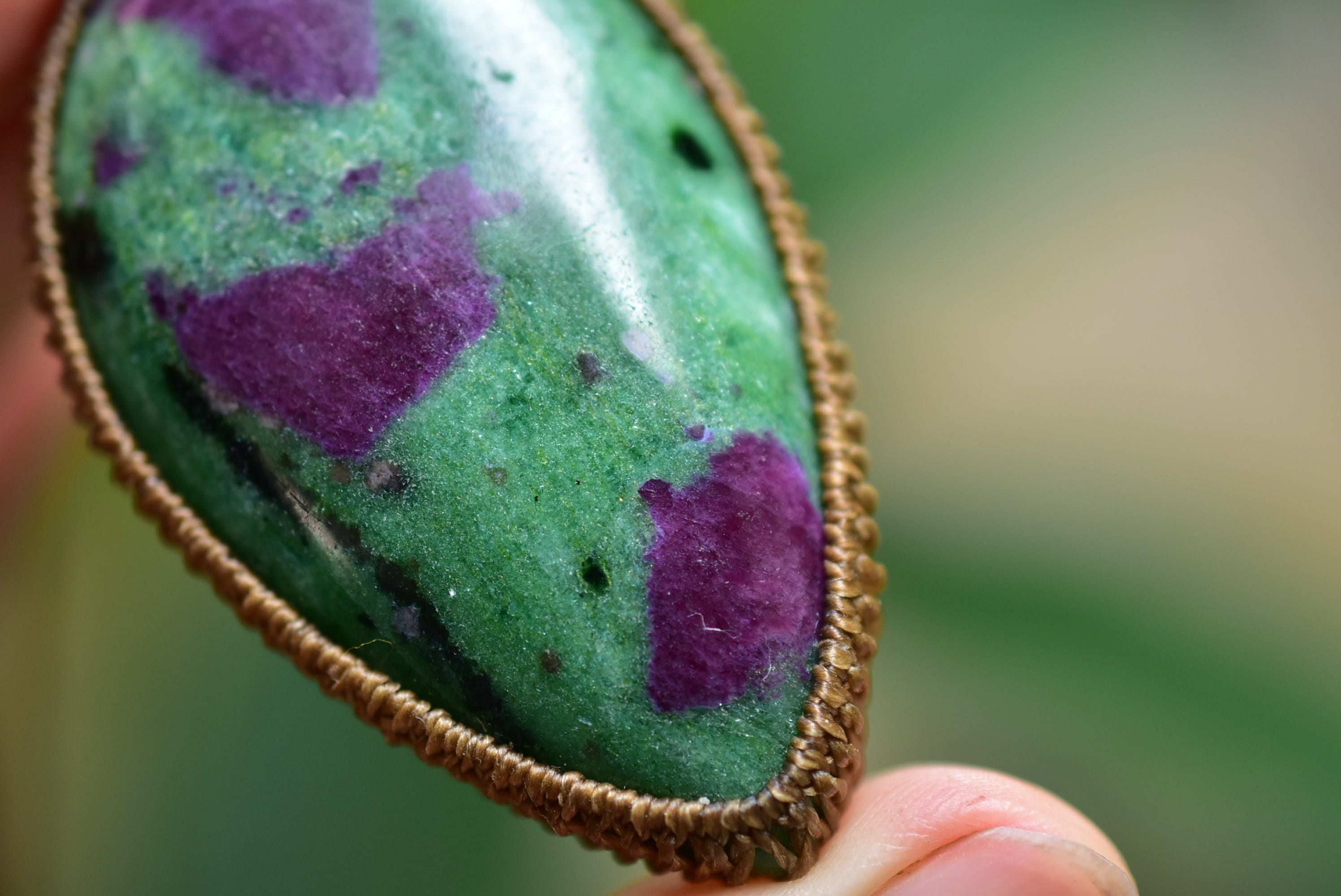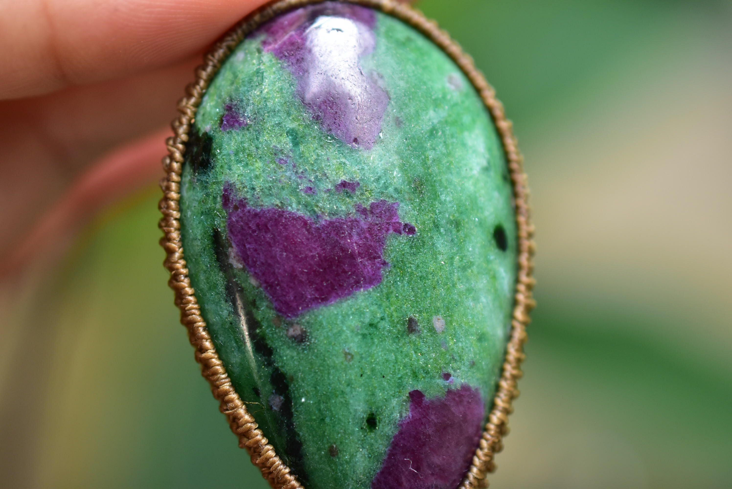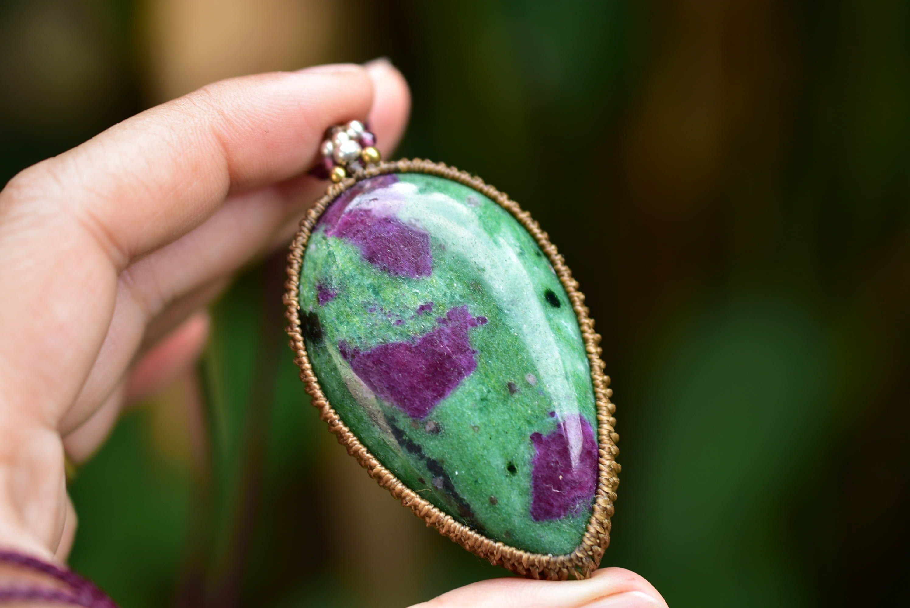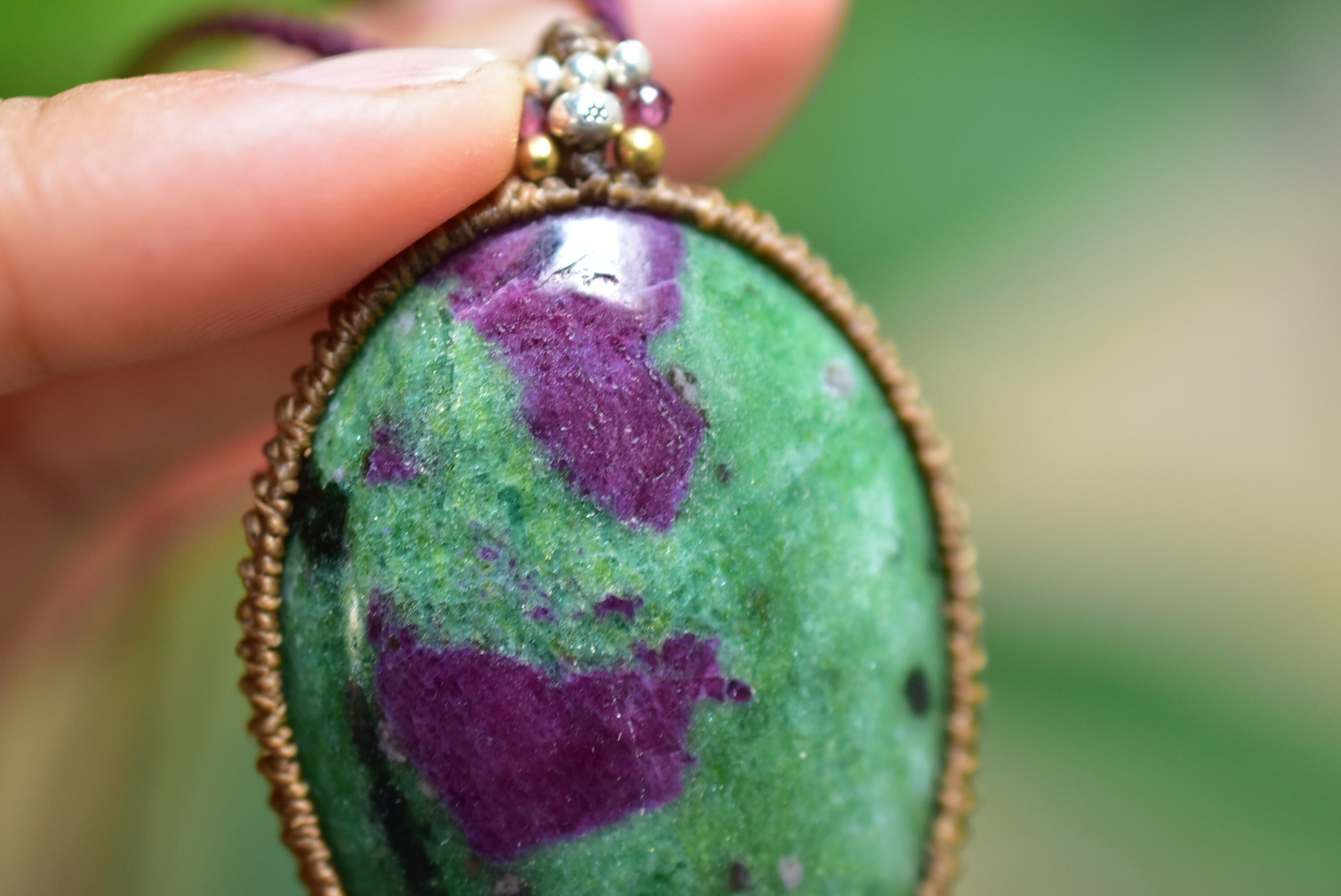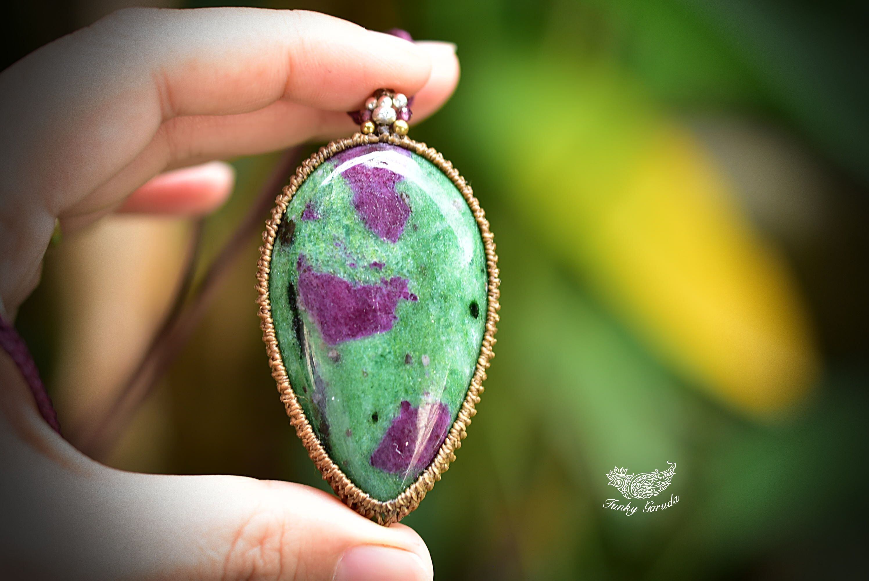 緑に映える紅★ルビーインゾイサイト シンプルマクラメペンダントruzy003