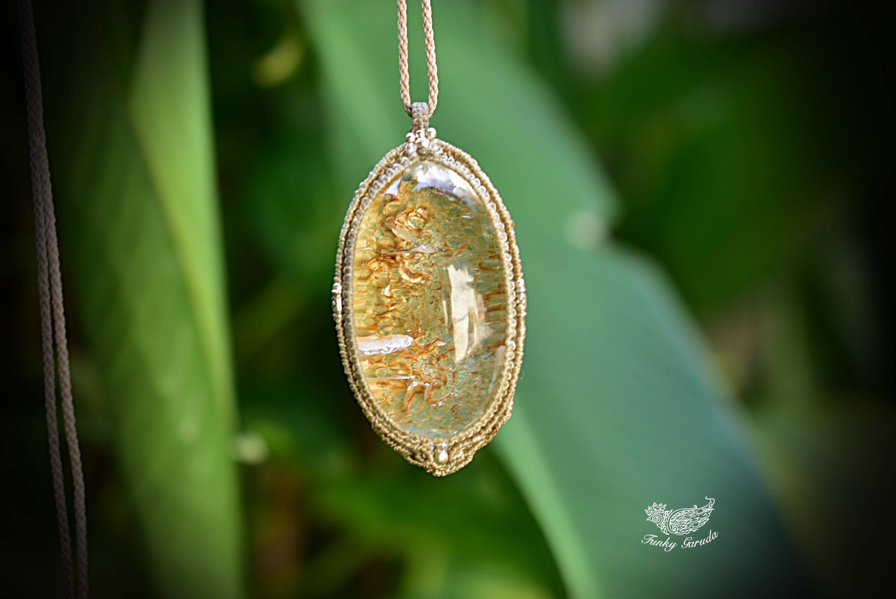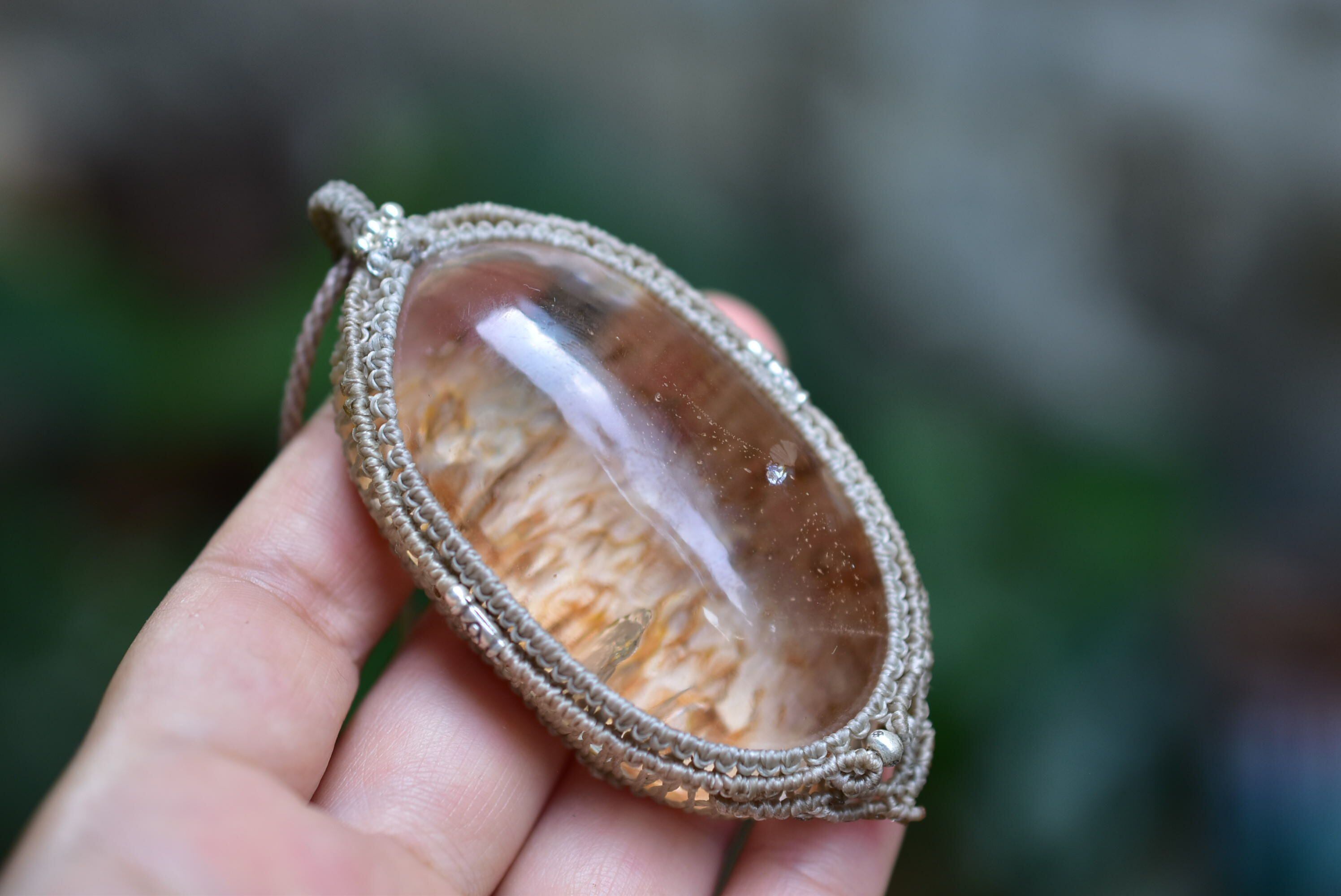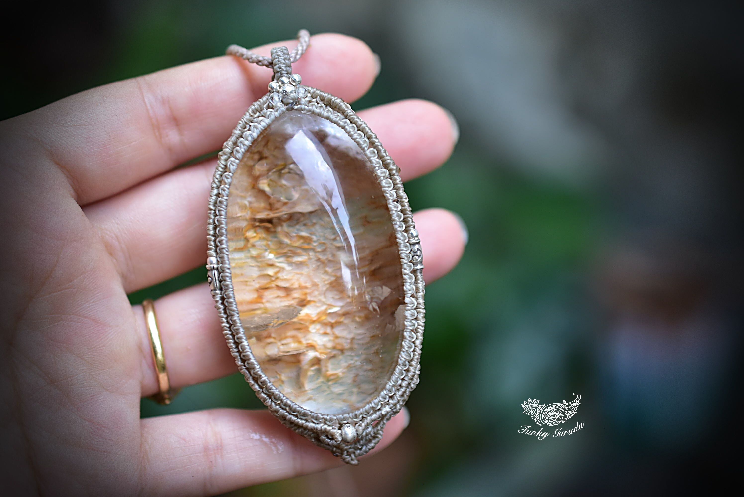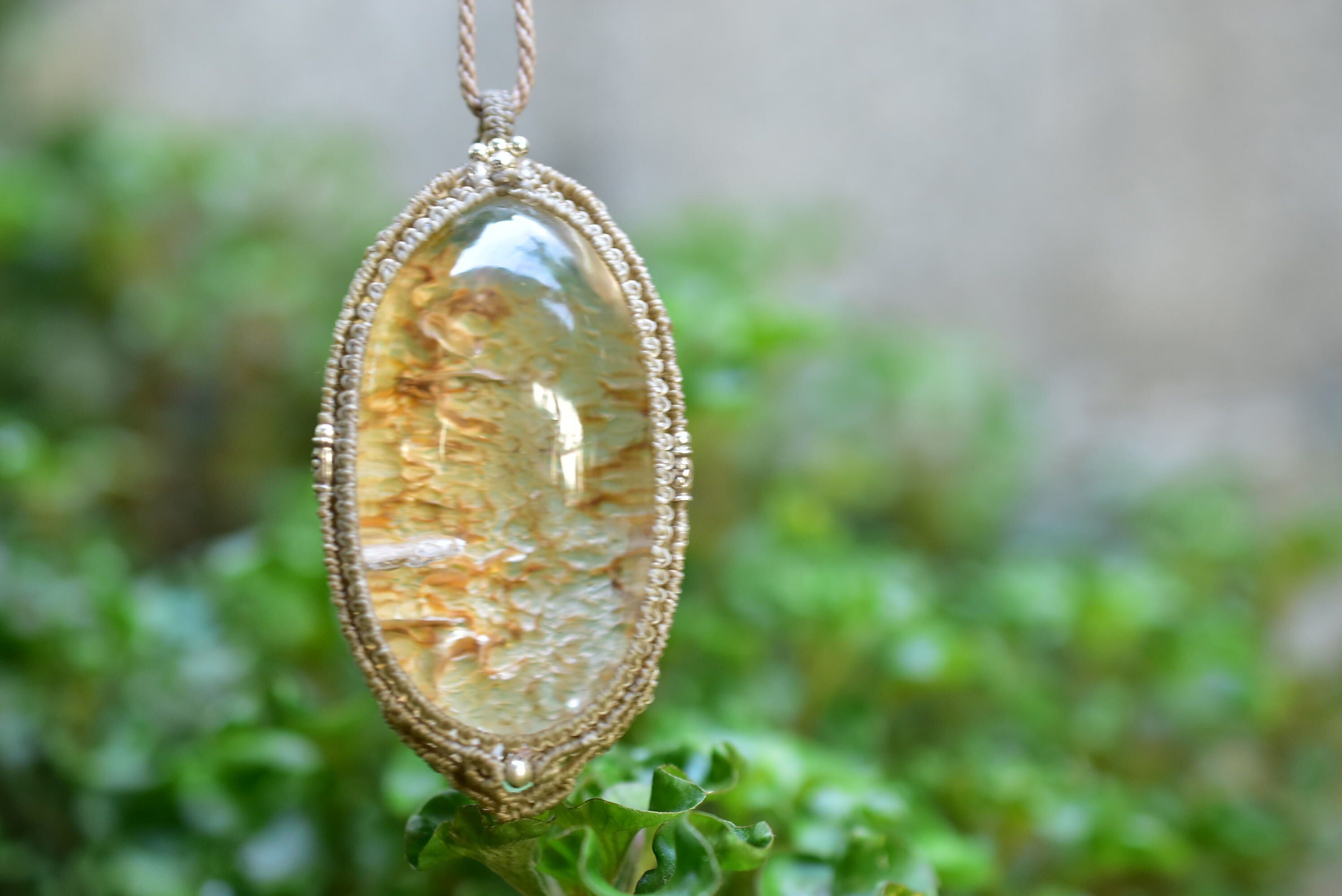 ゴールドクラック★特大★クラックインクォーツ マクラメペンダントgarm132