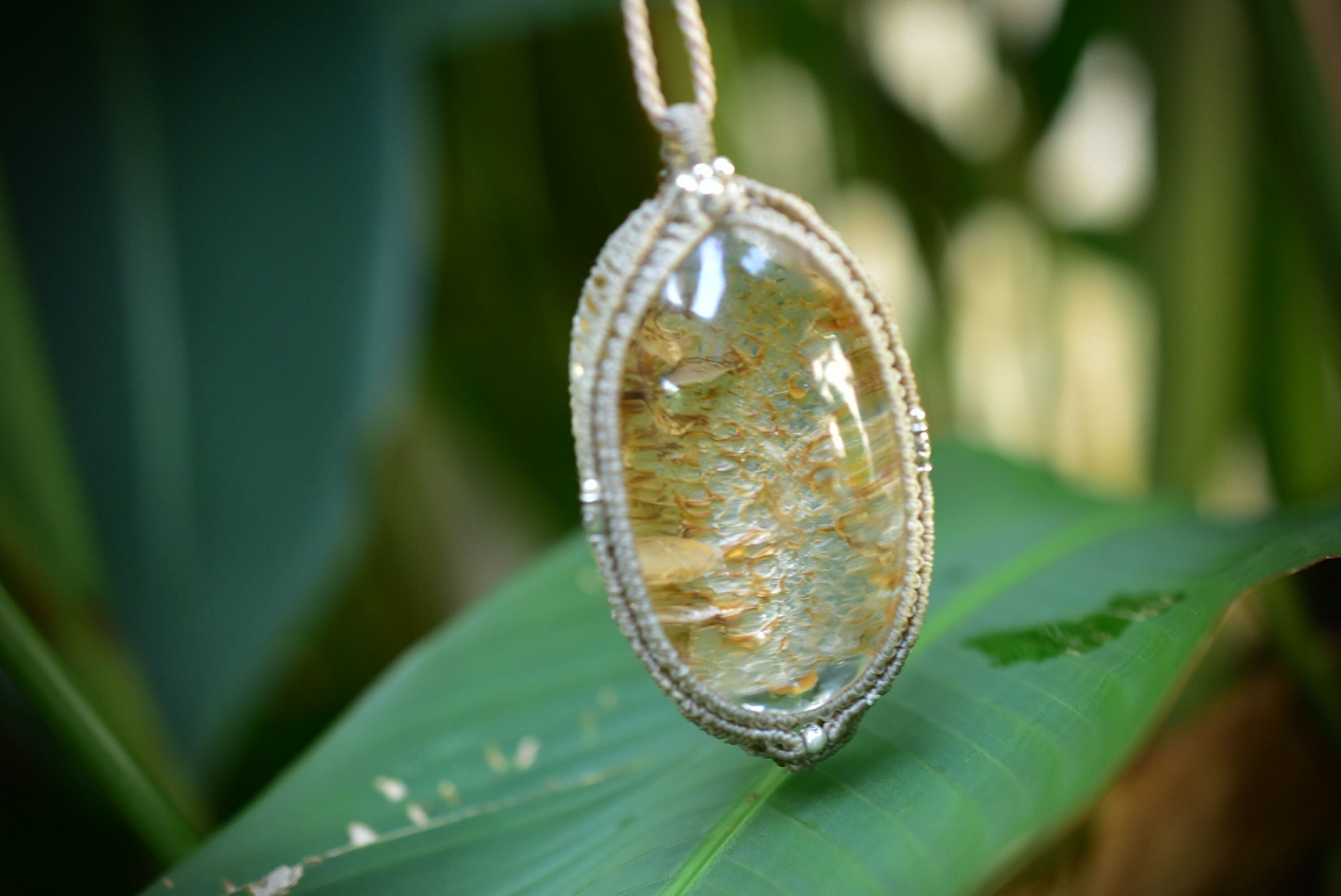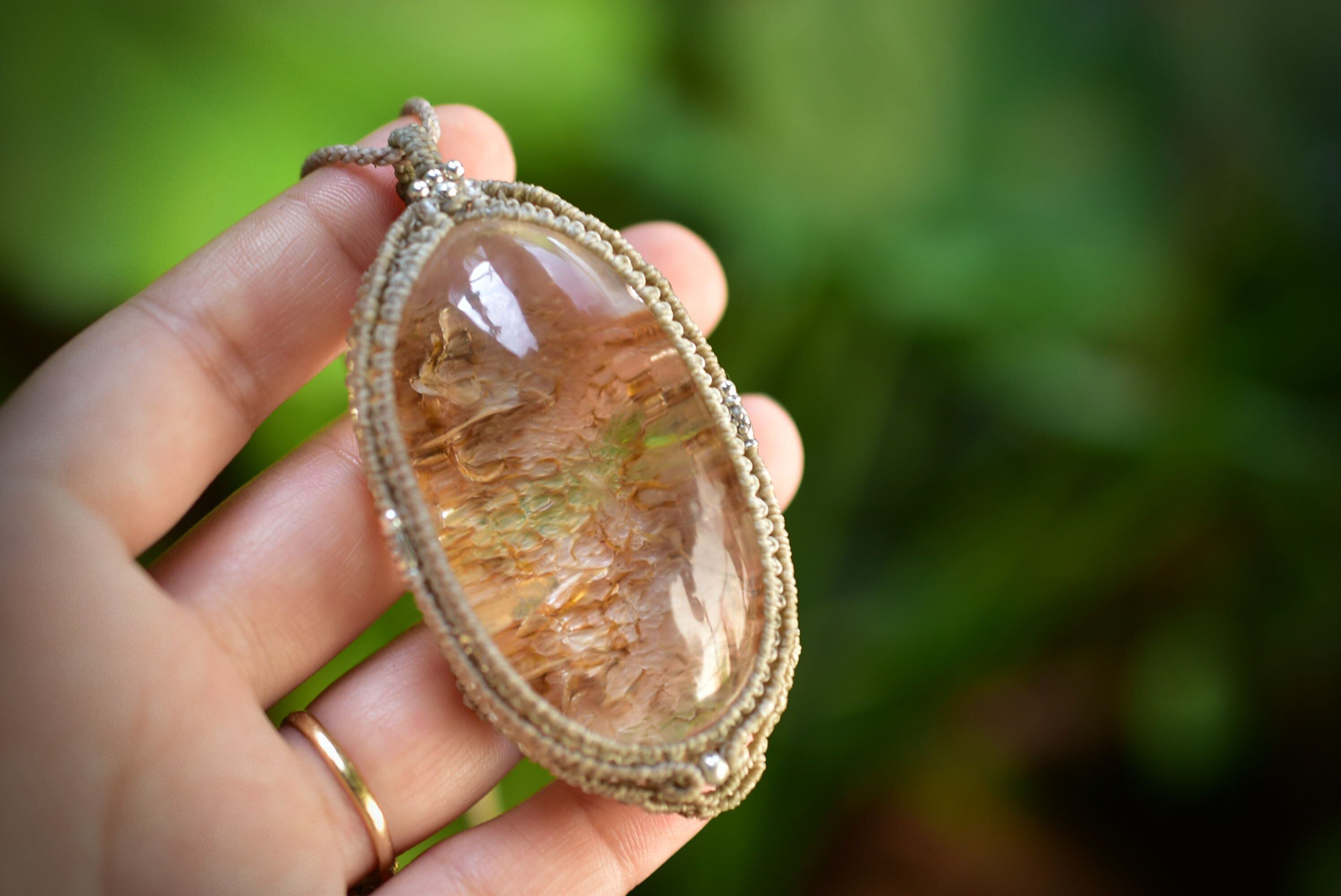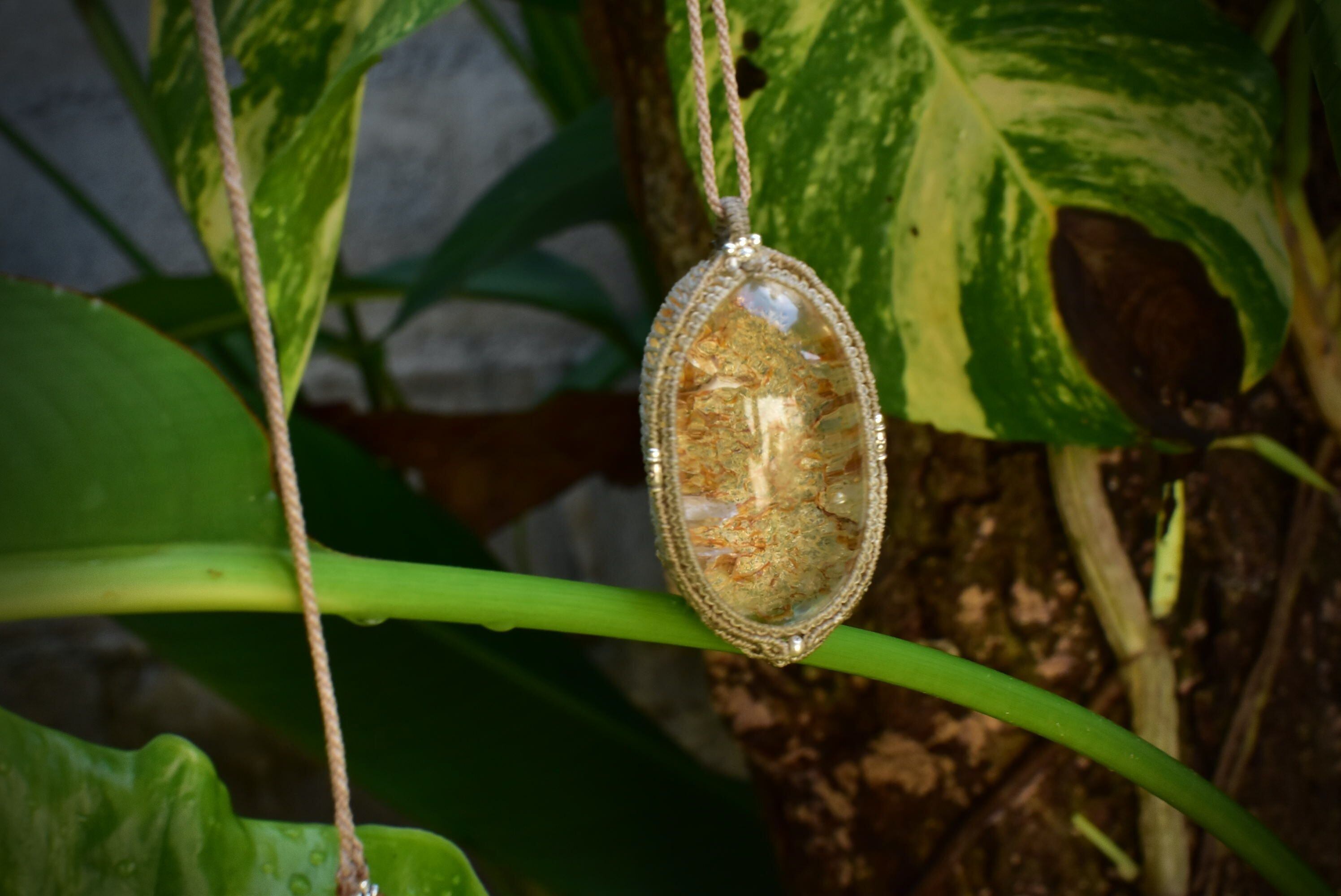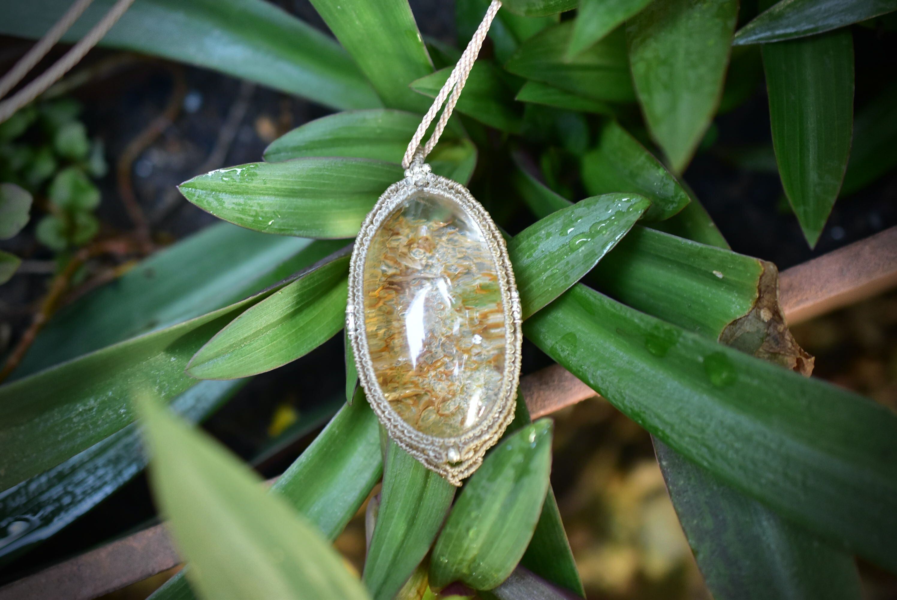 ゴールドクラック★特大★クラックインクォーツ マクラメペンダントgarm132