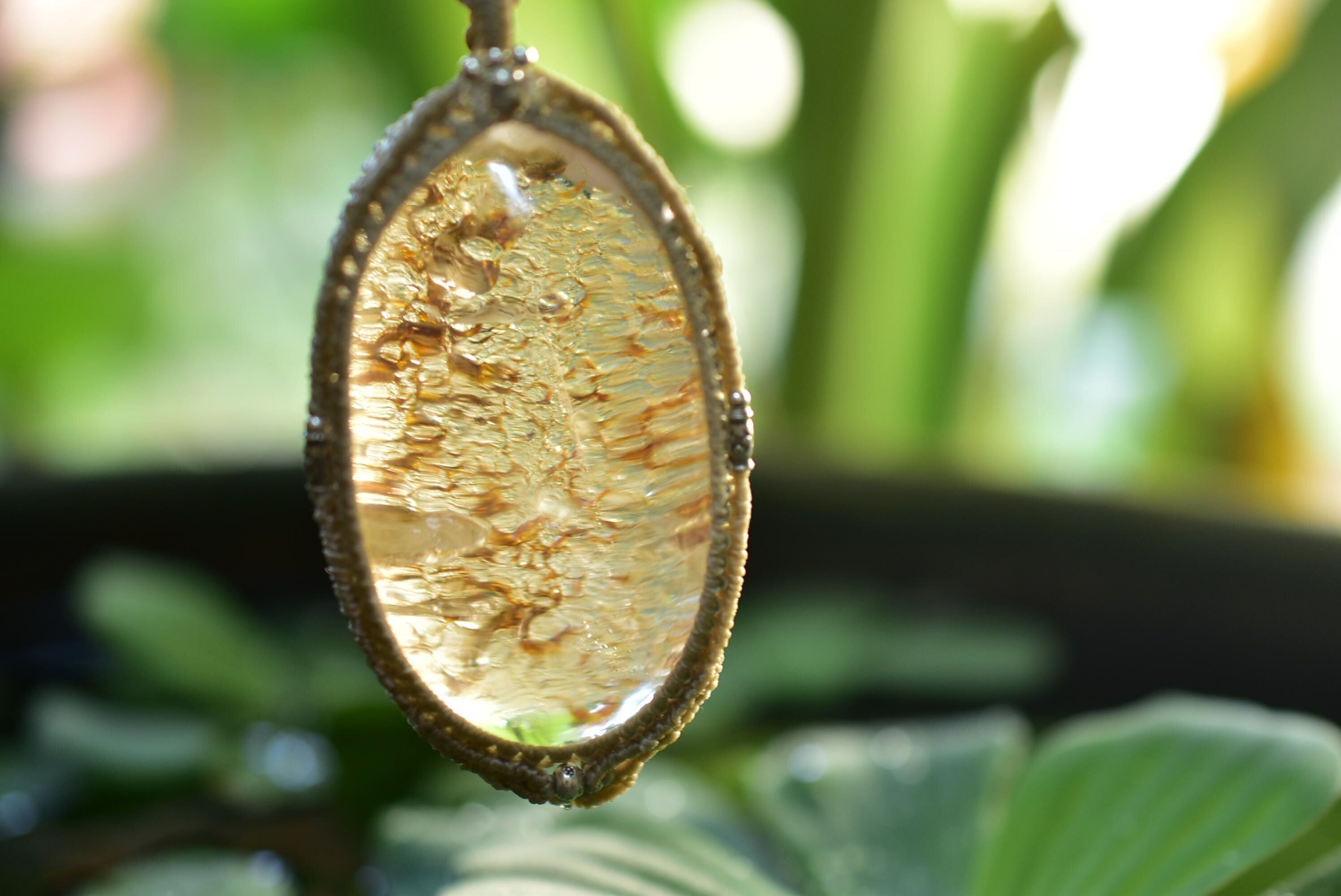 ゴールドイエローカラーの水晶の中に秘められた世界を楽しめます。
