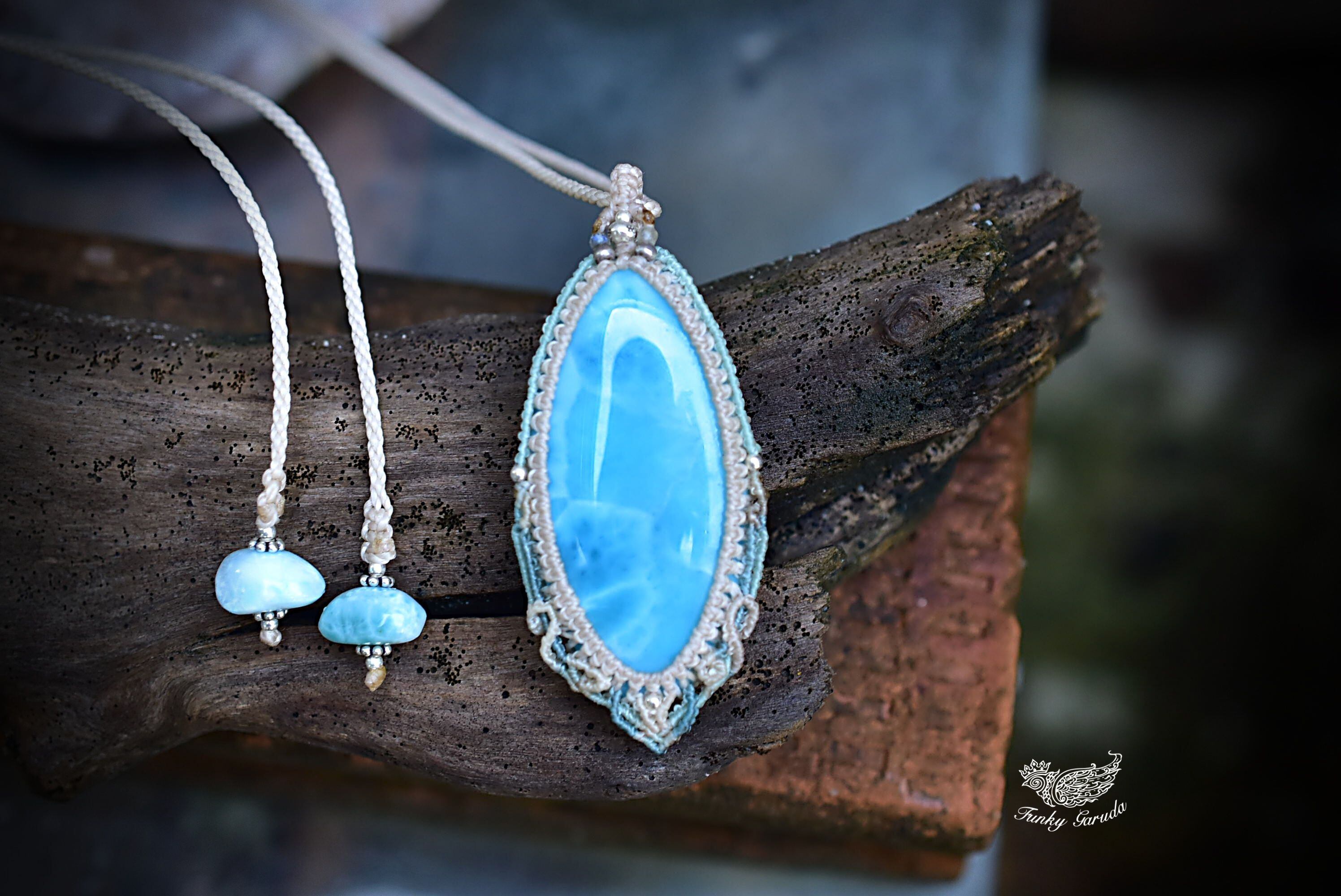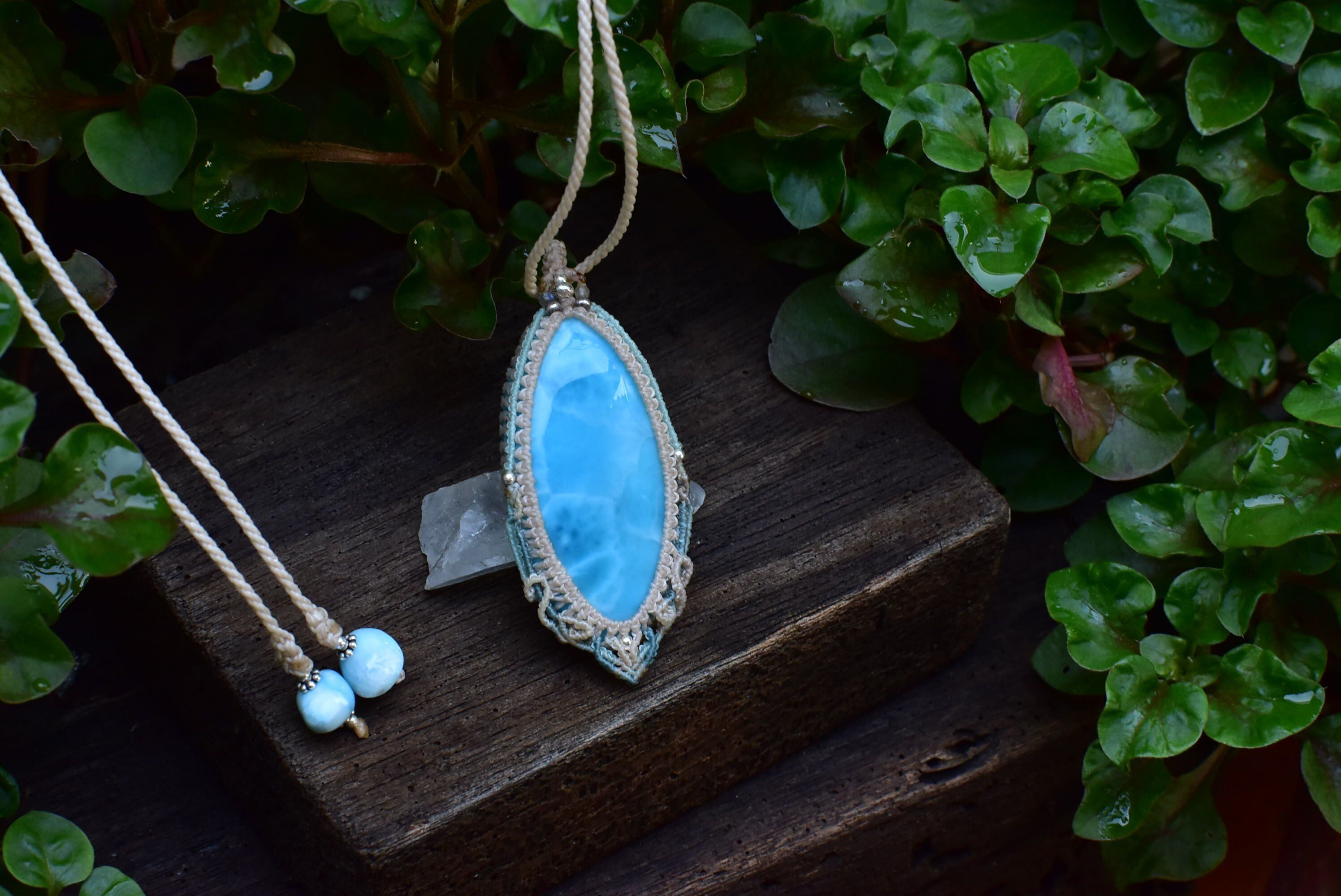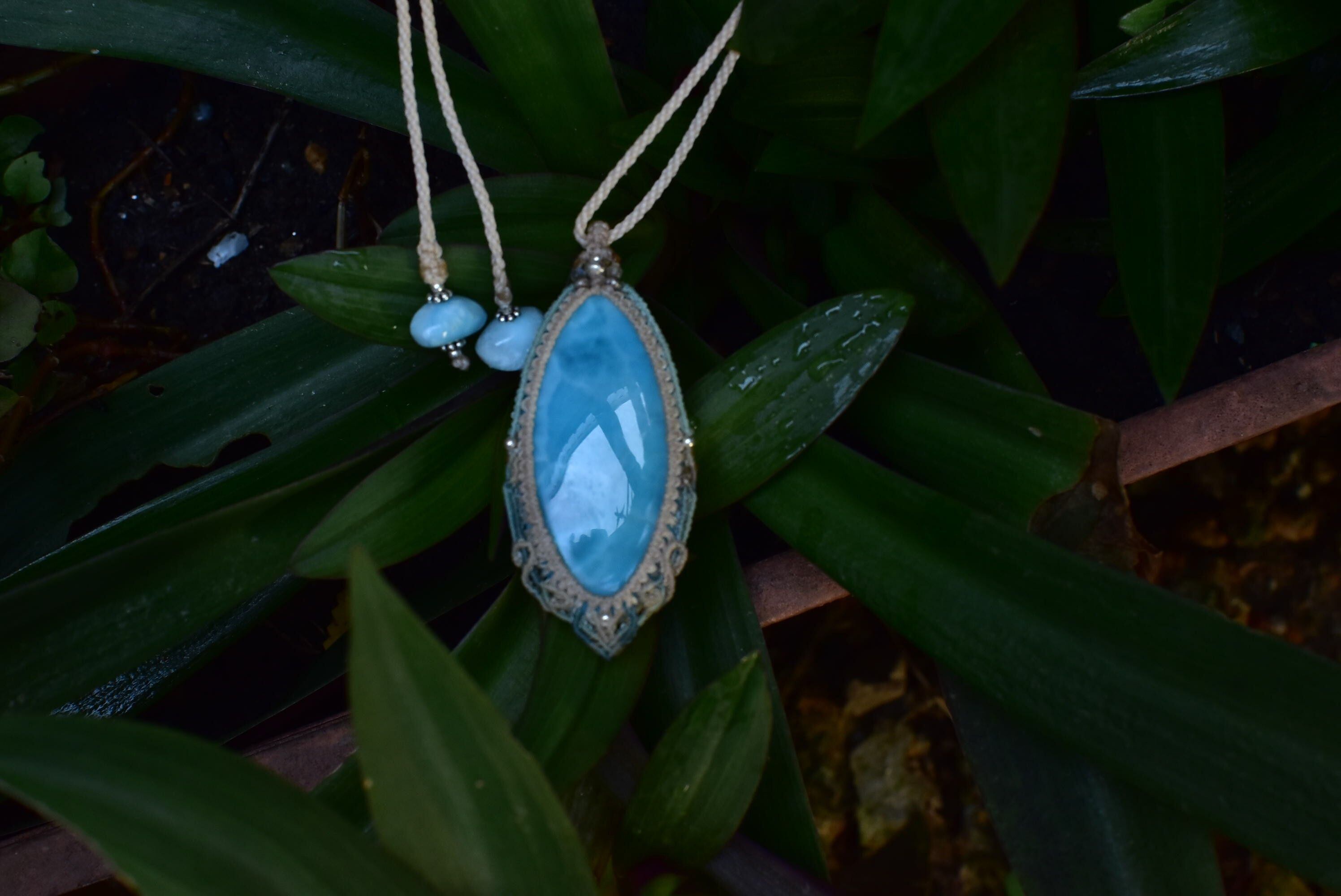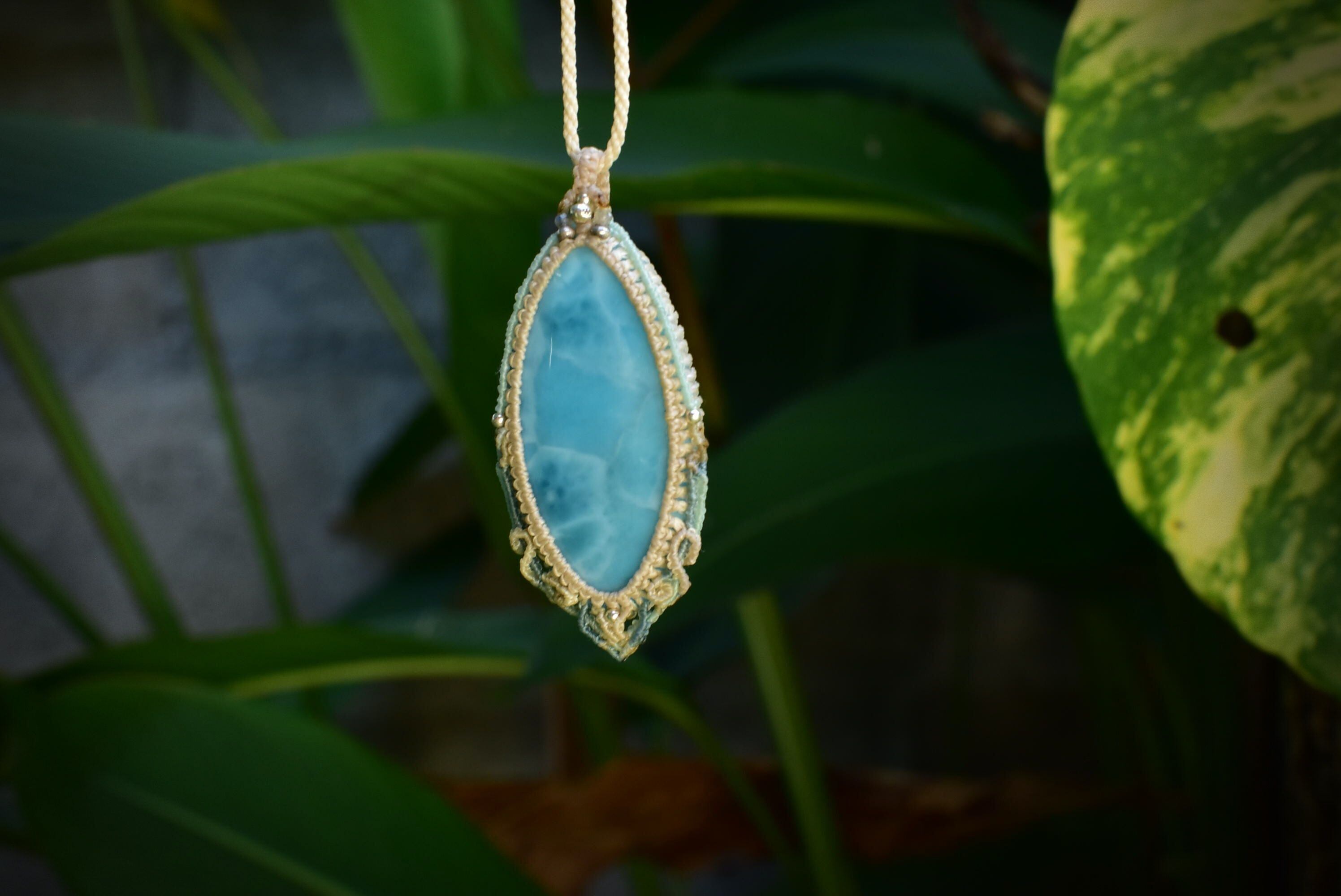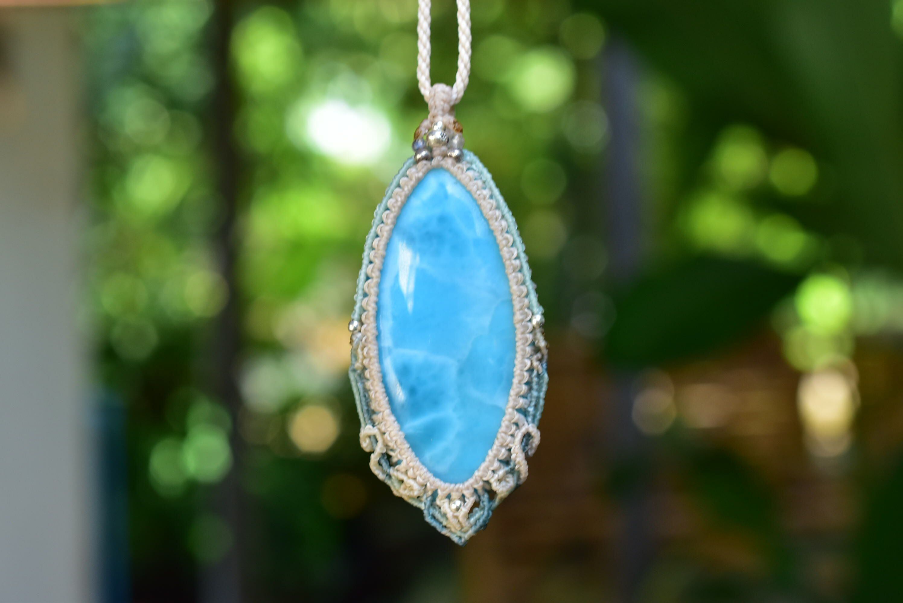 波の滴★高品質ラリマー マクラメペンダントlari047