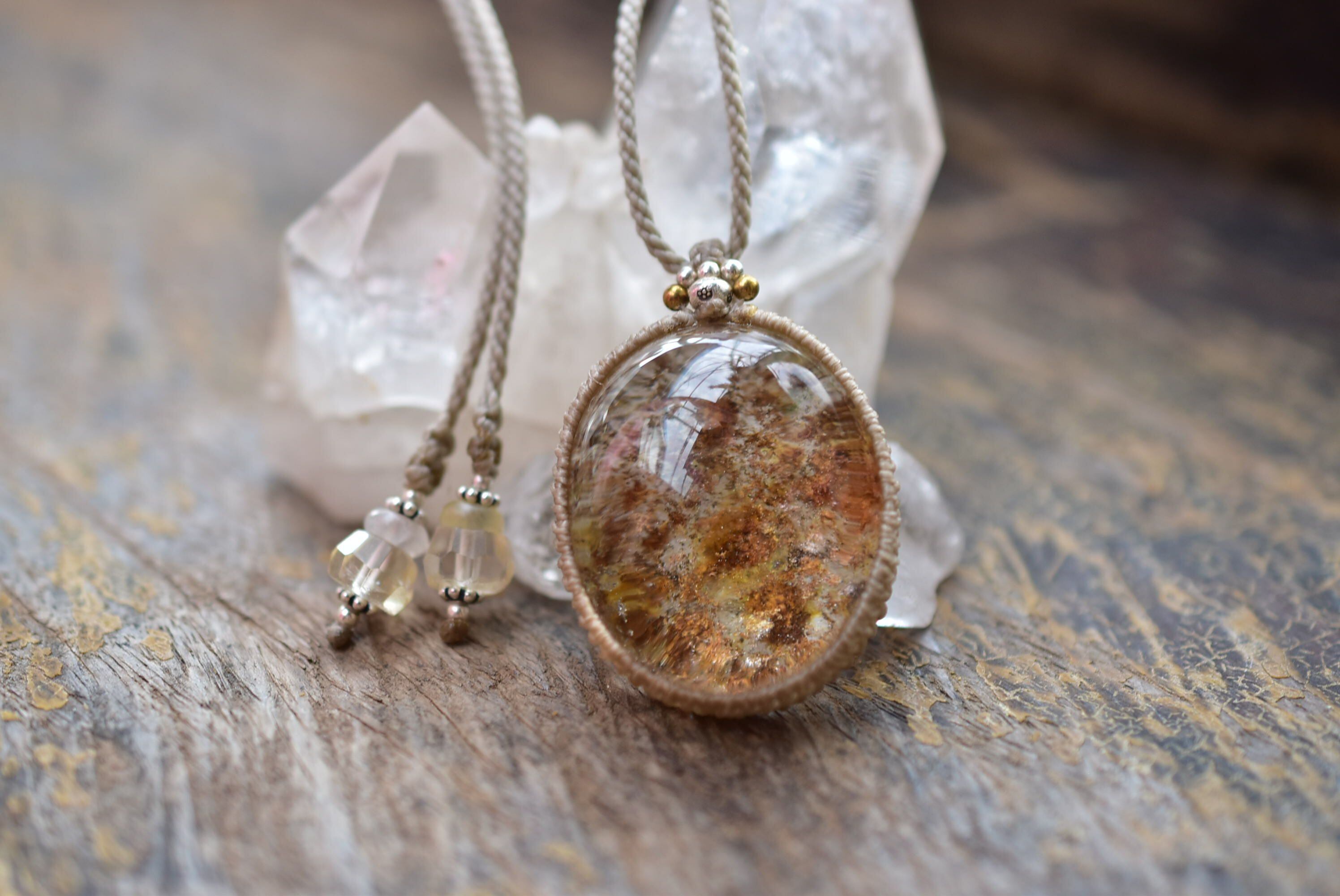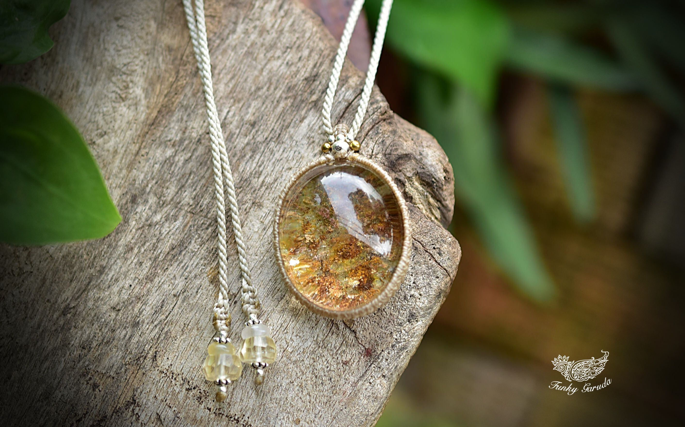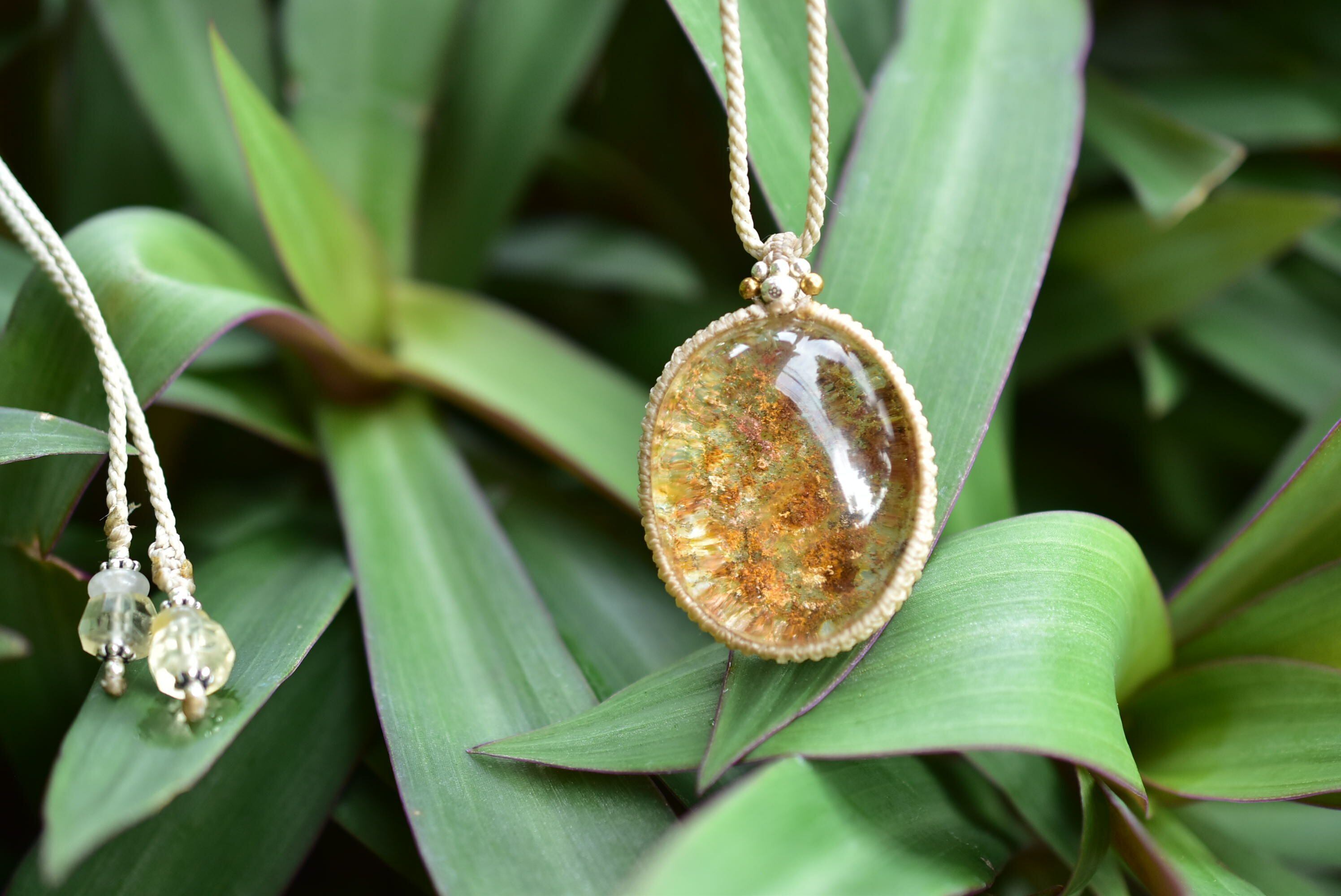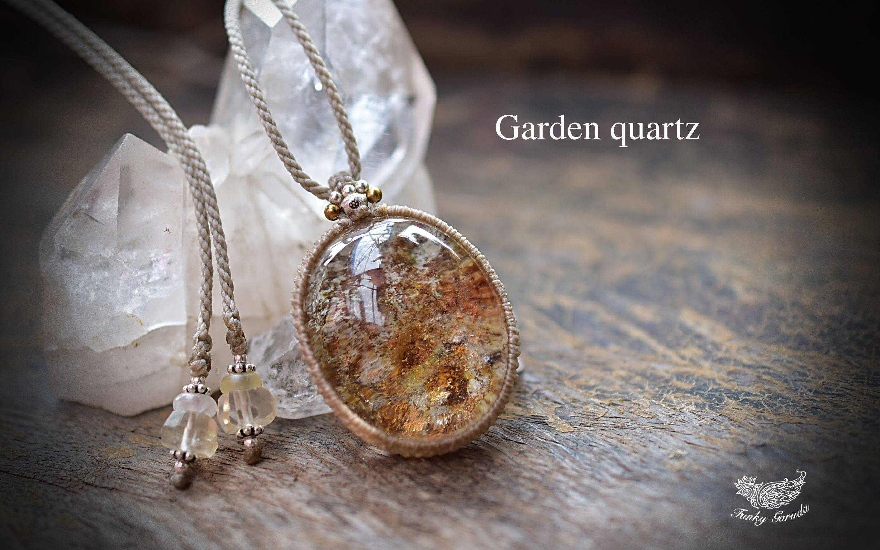 ほんのり虹入り★黄金の花★ガーデンクォーツ マクラメペンダント gy048