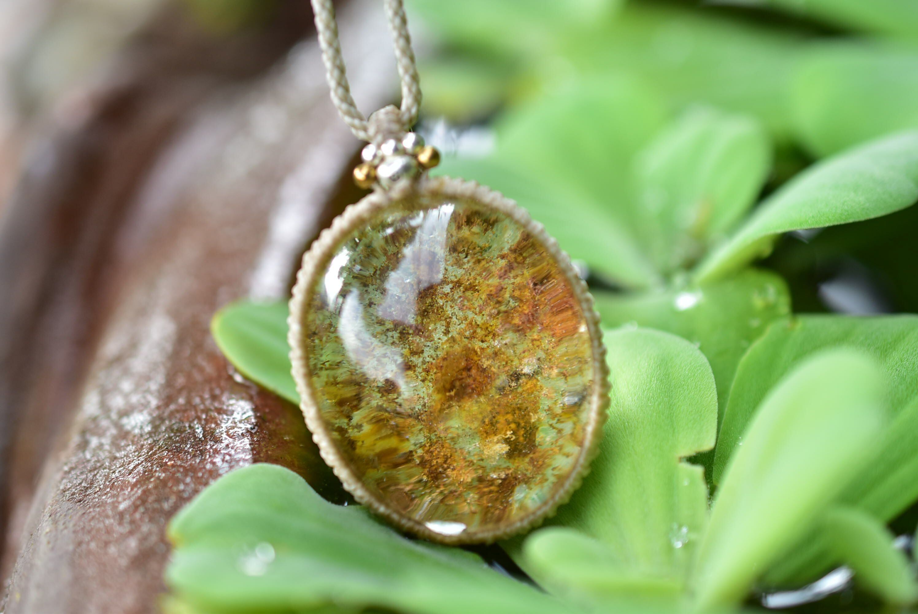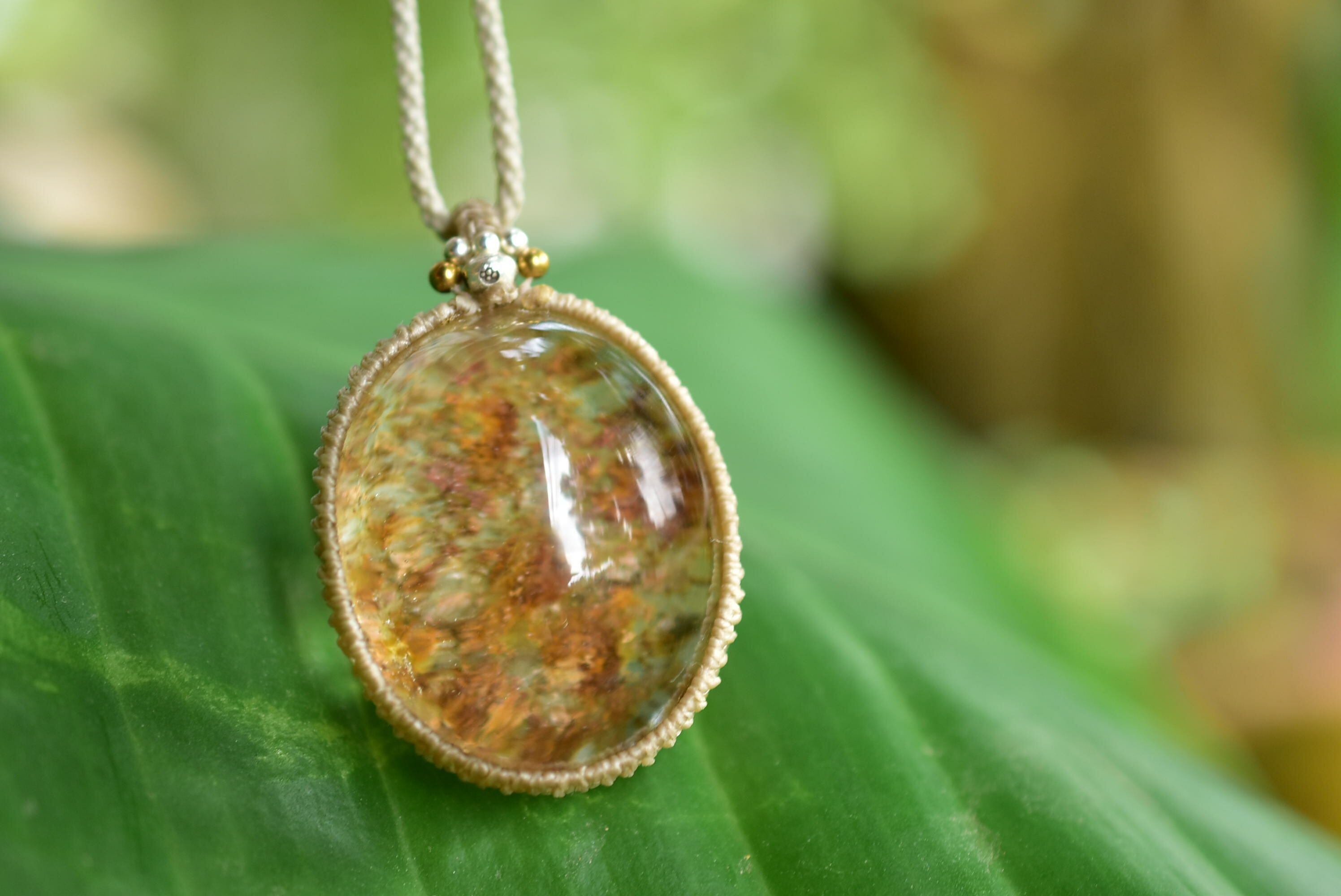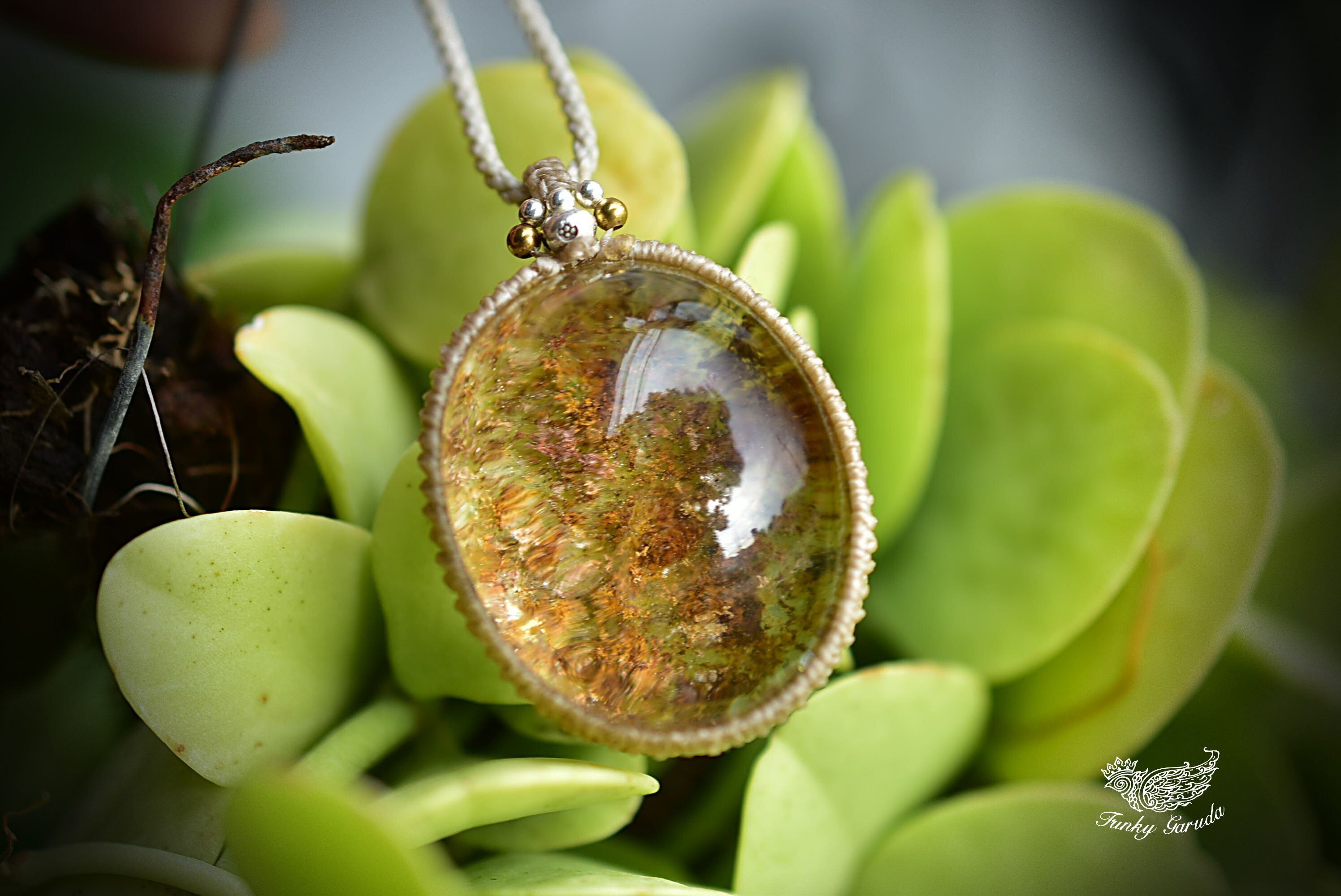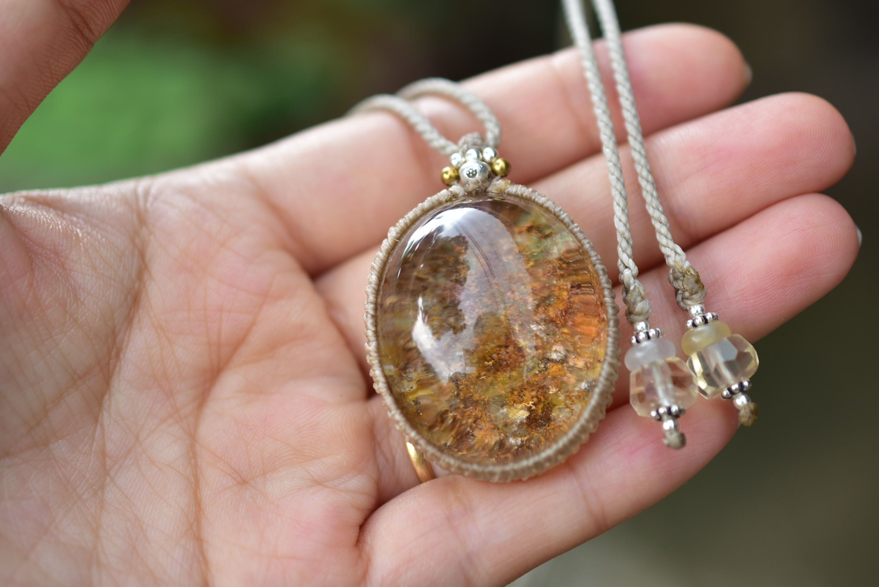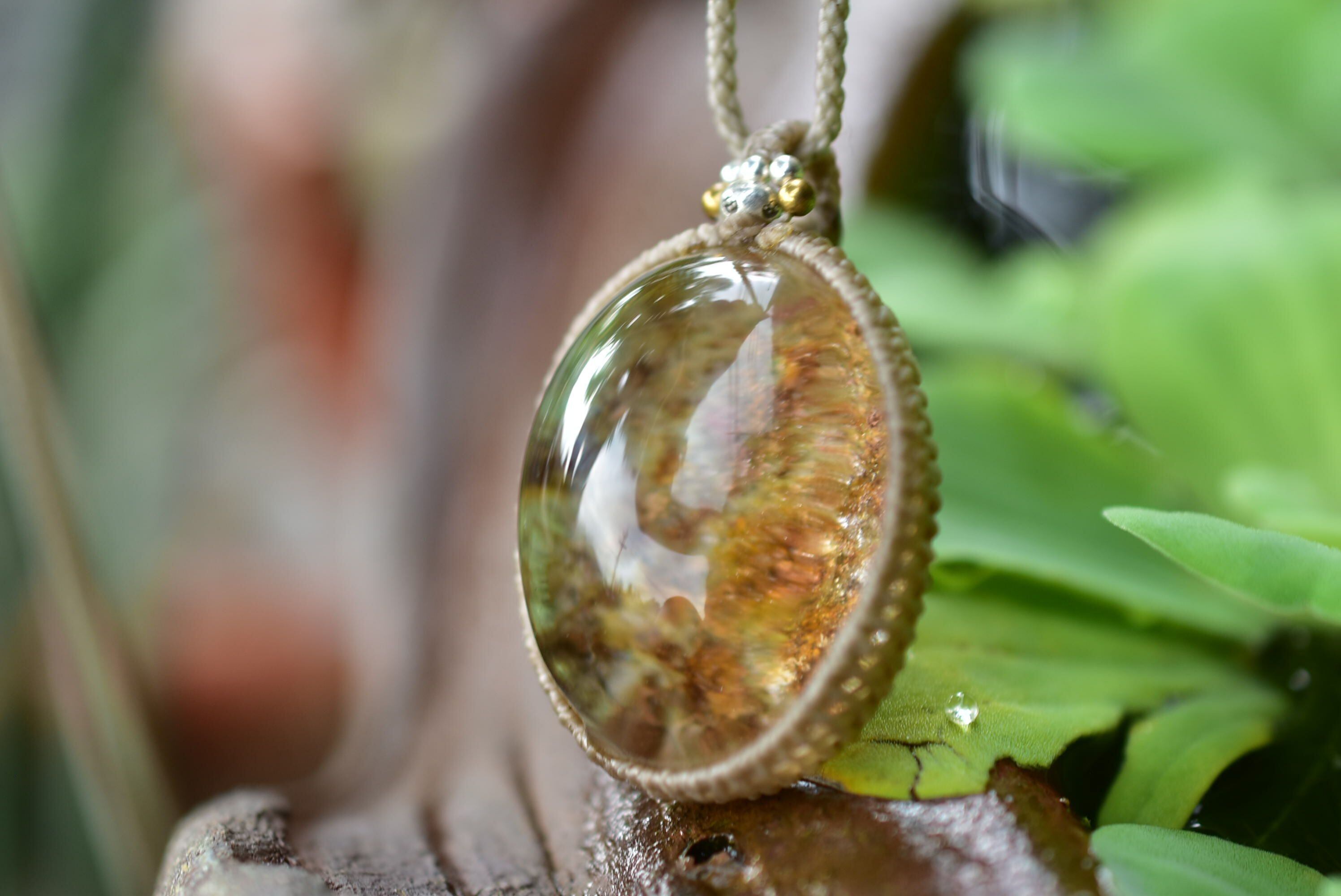 ほんのり虹入り★黄金の花★ガーデンクォーツ マクラメペンダント gy048