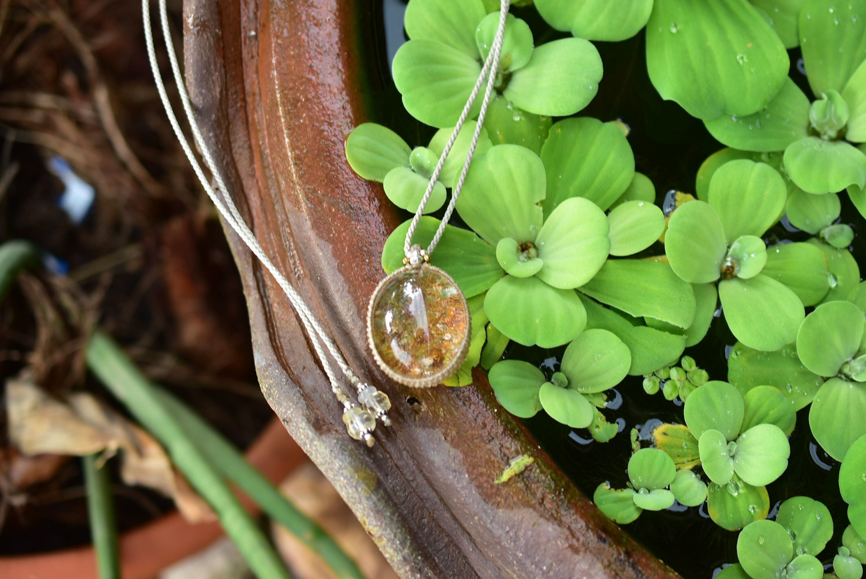 内包物全体にキラキラとしたシラー、そしてその中からほんのりと見える