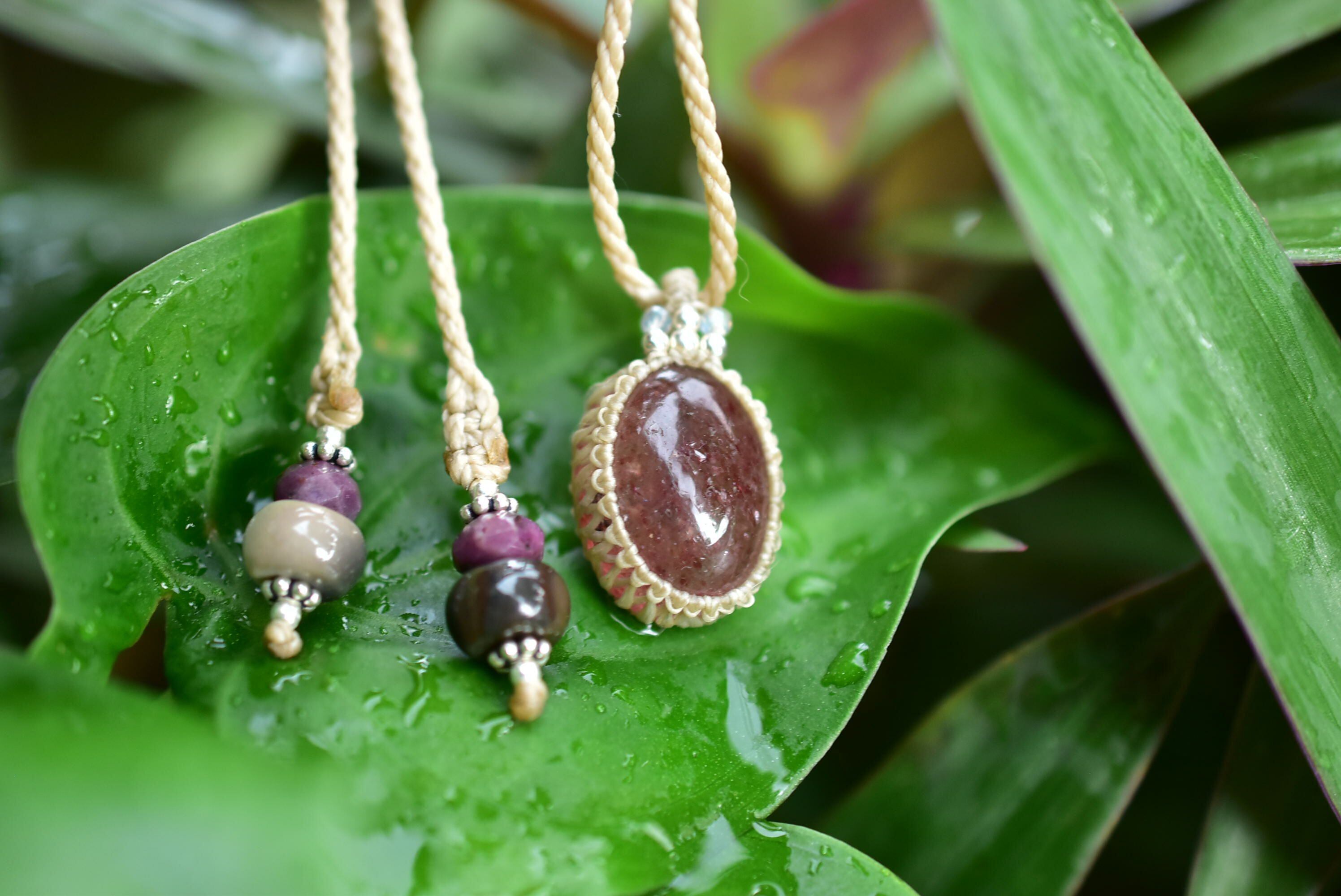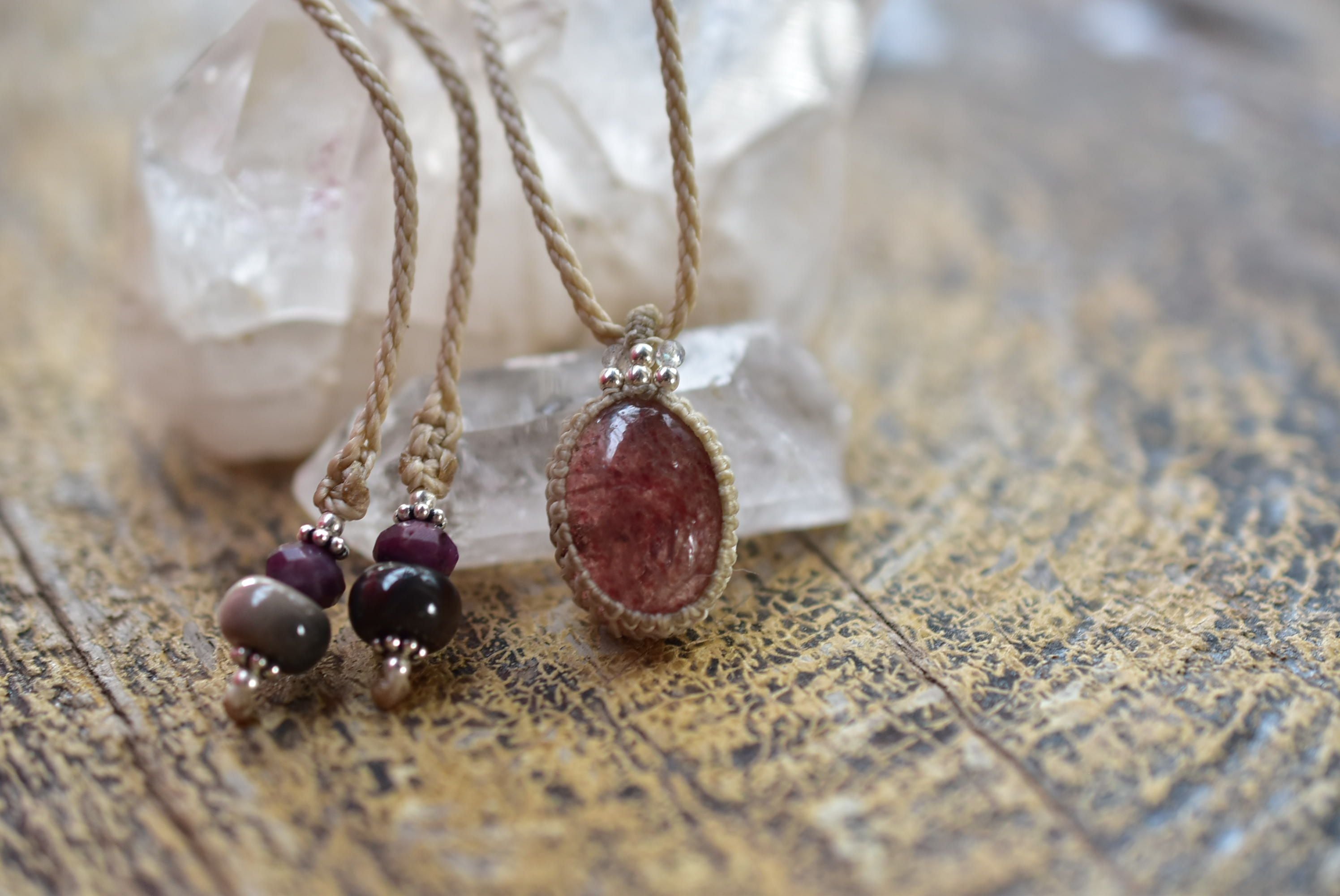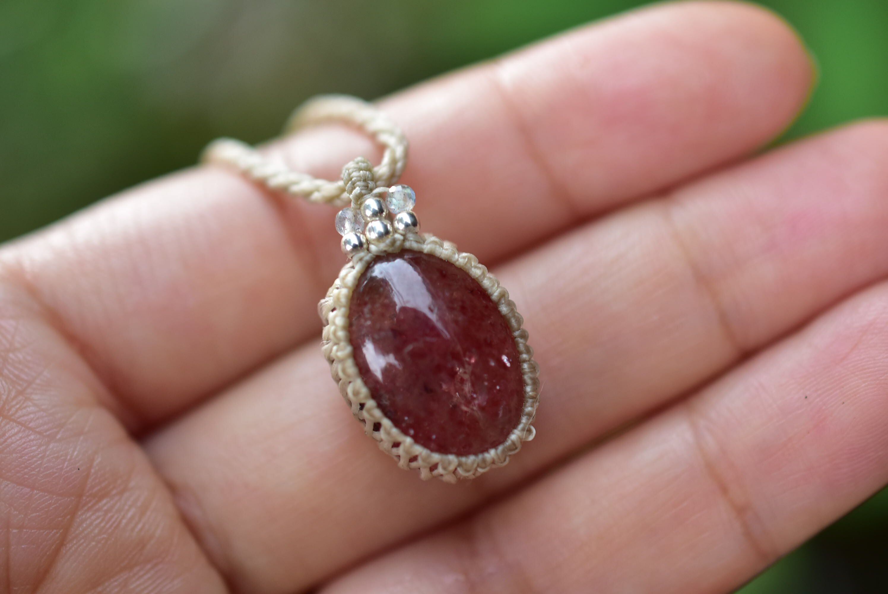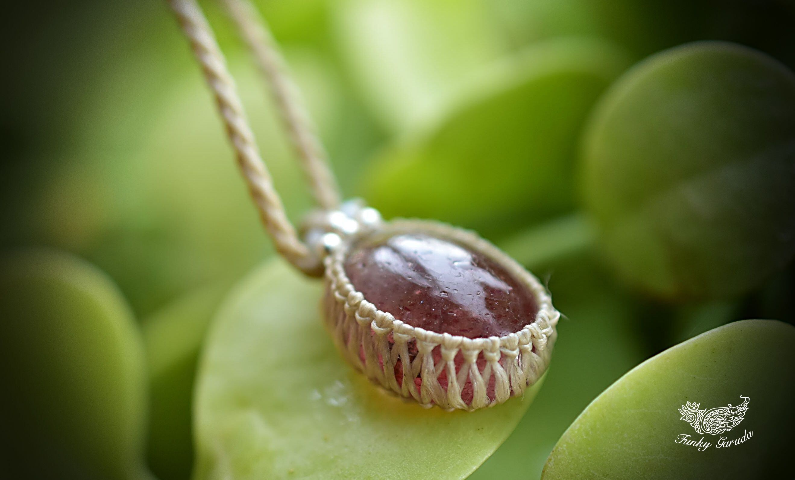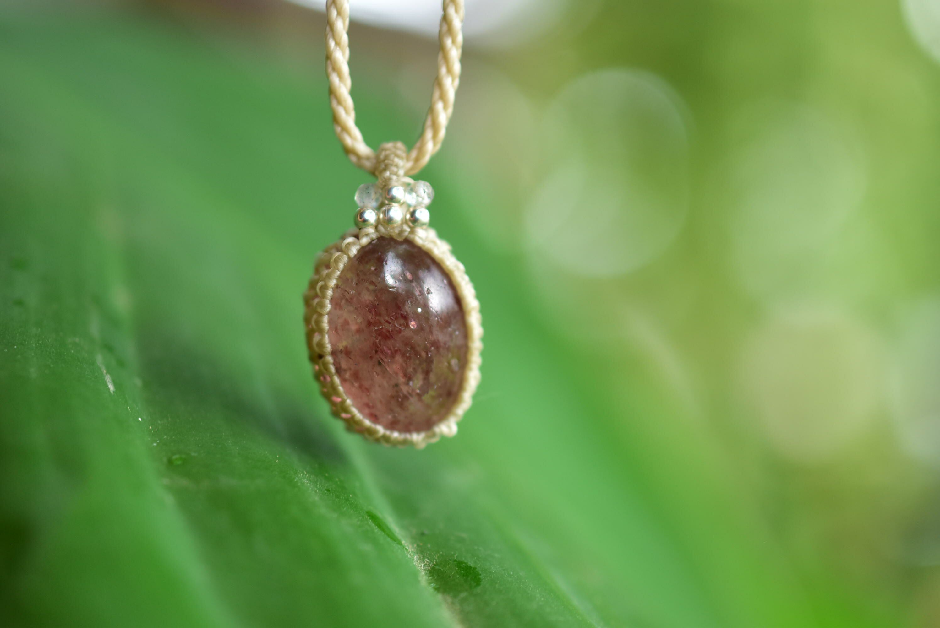 苺水晶★ストロベリーインクォーツ マクラメペンダントstry001