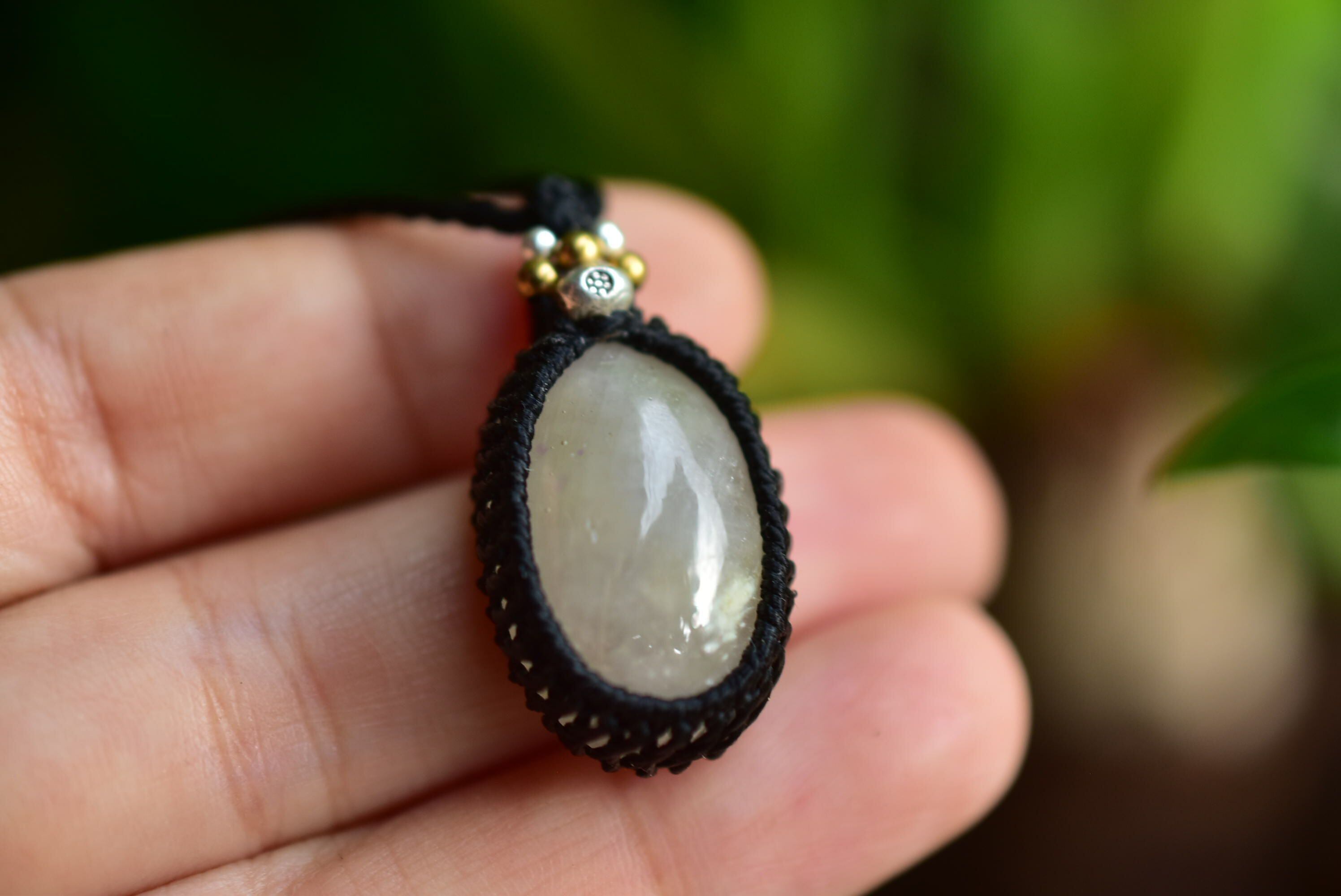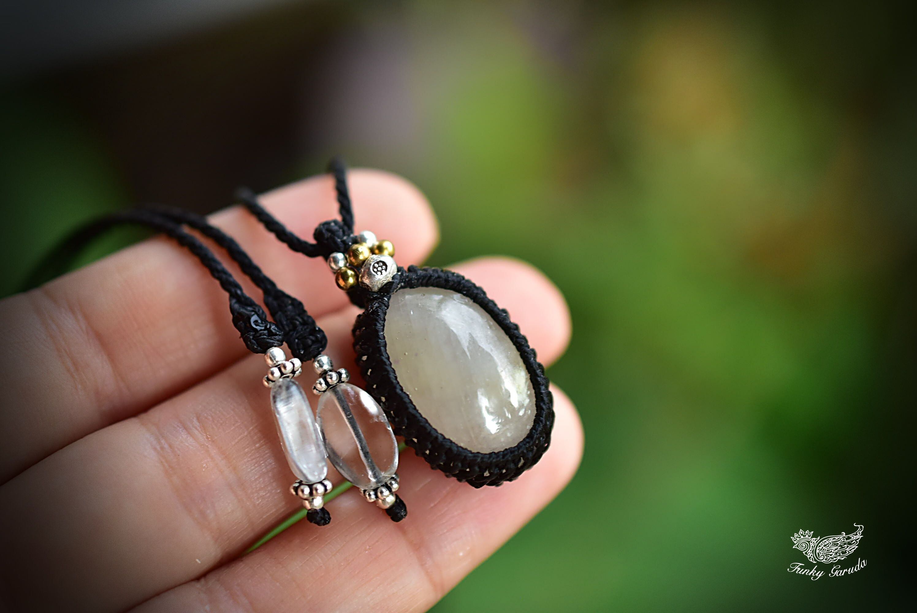 ピュアな輝き★ホワイトサファイア マクラメペンダント safy003