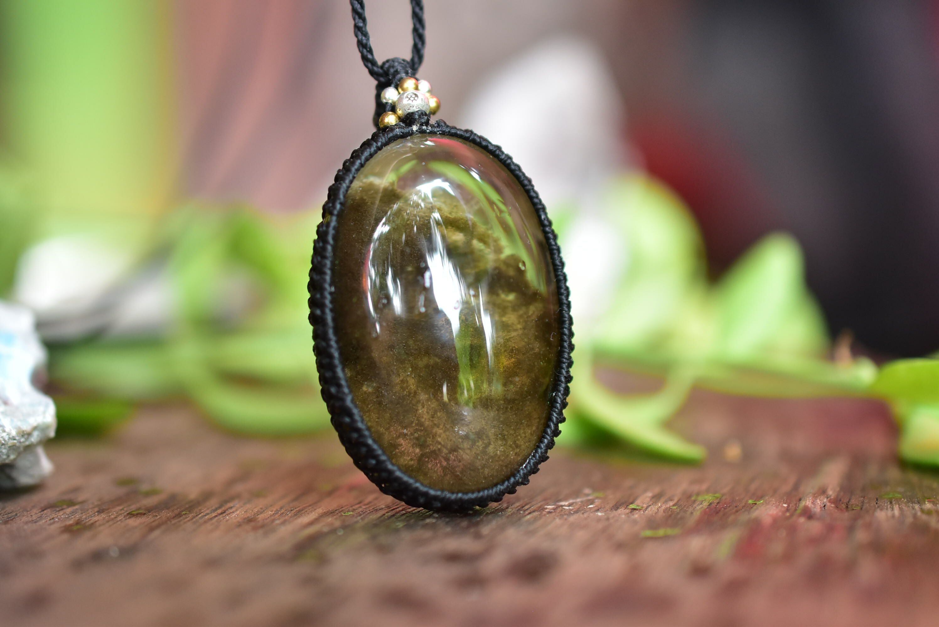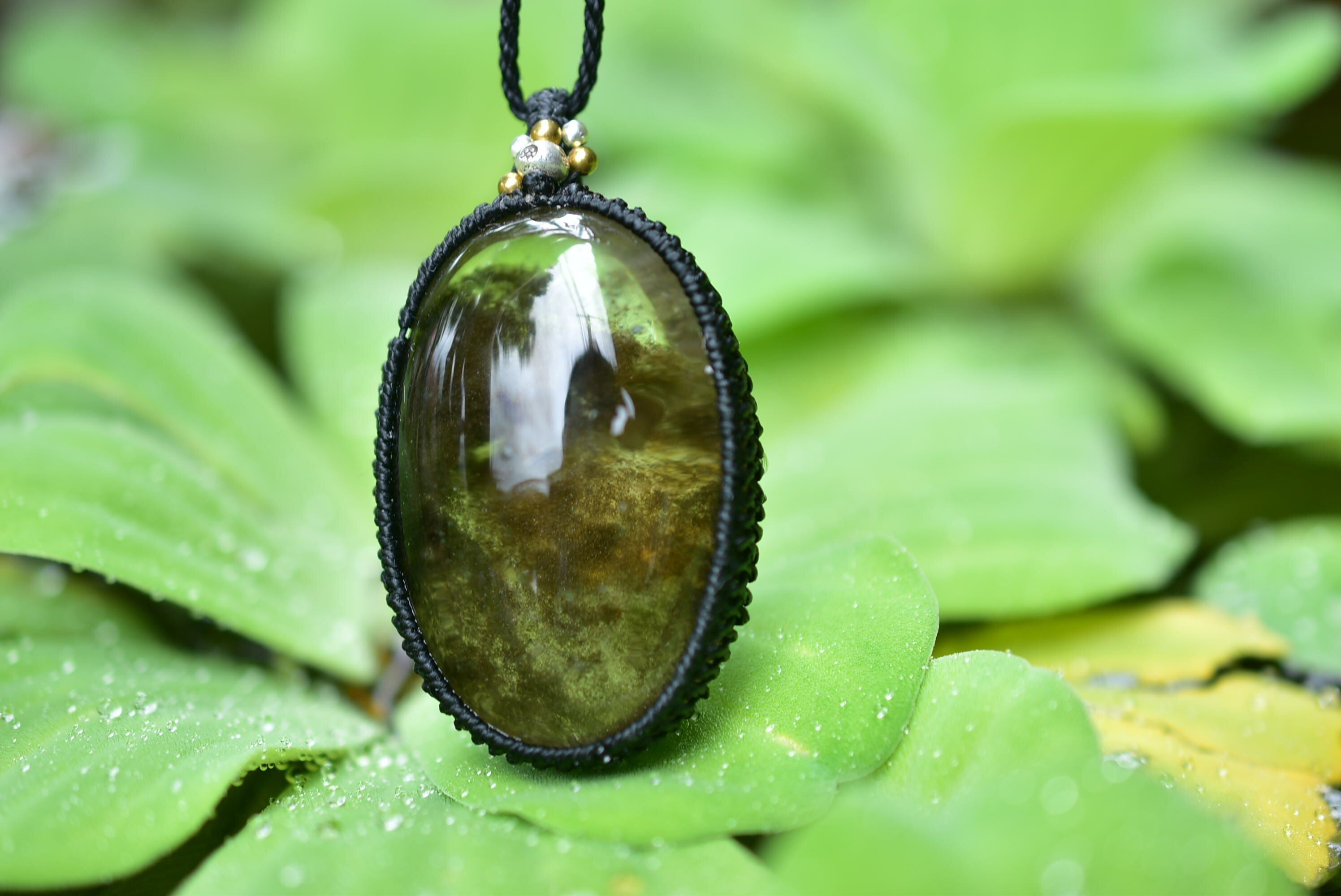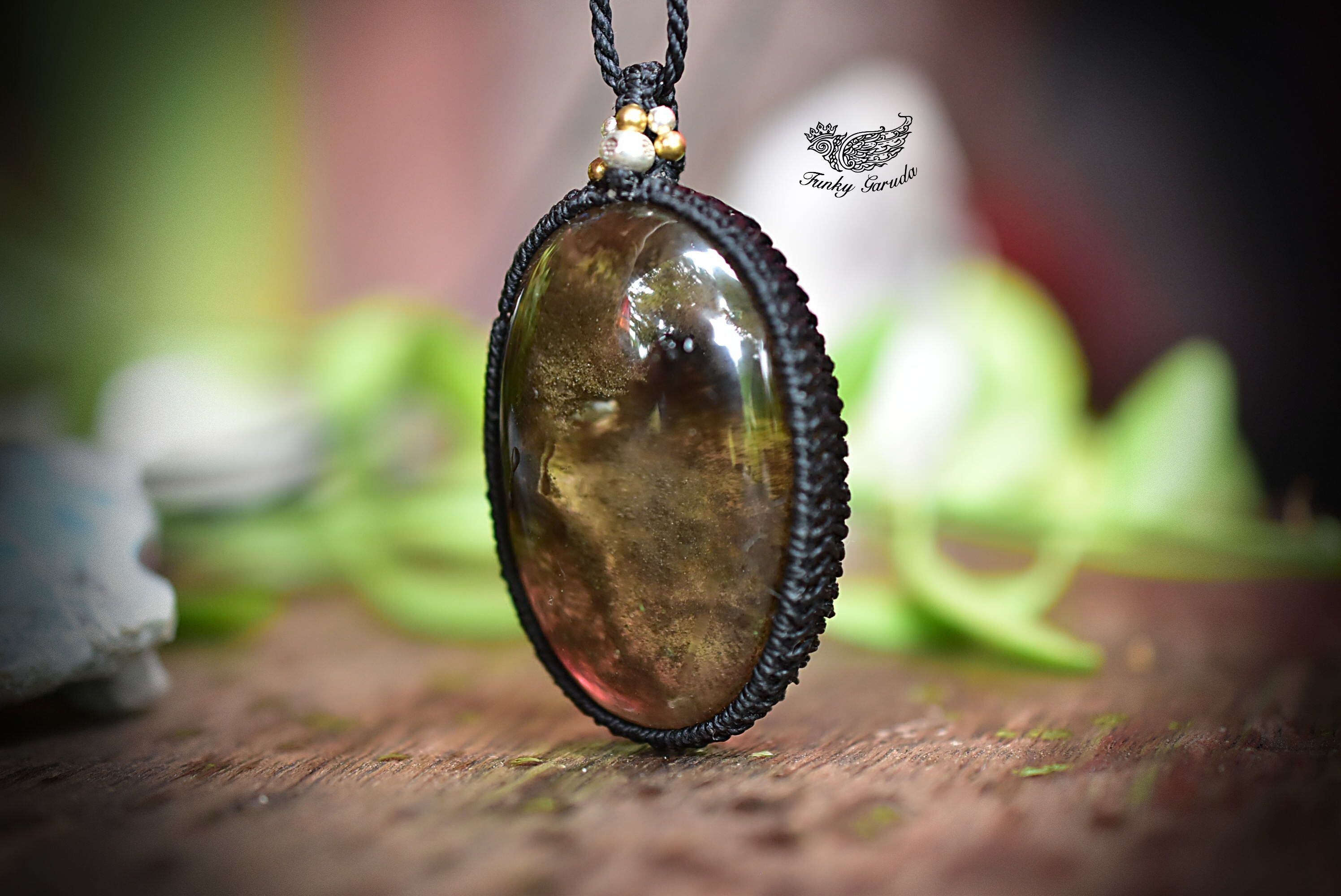 レア★山々の煙★ダークガーデンクォーツ シンプルマクラメペンダントgy049