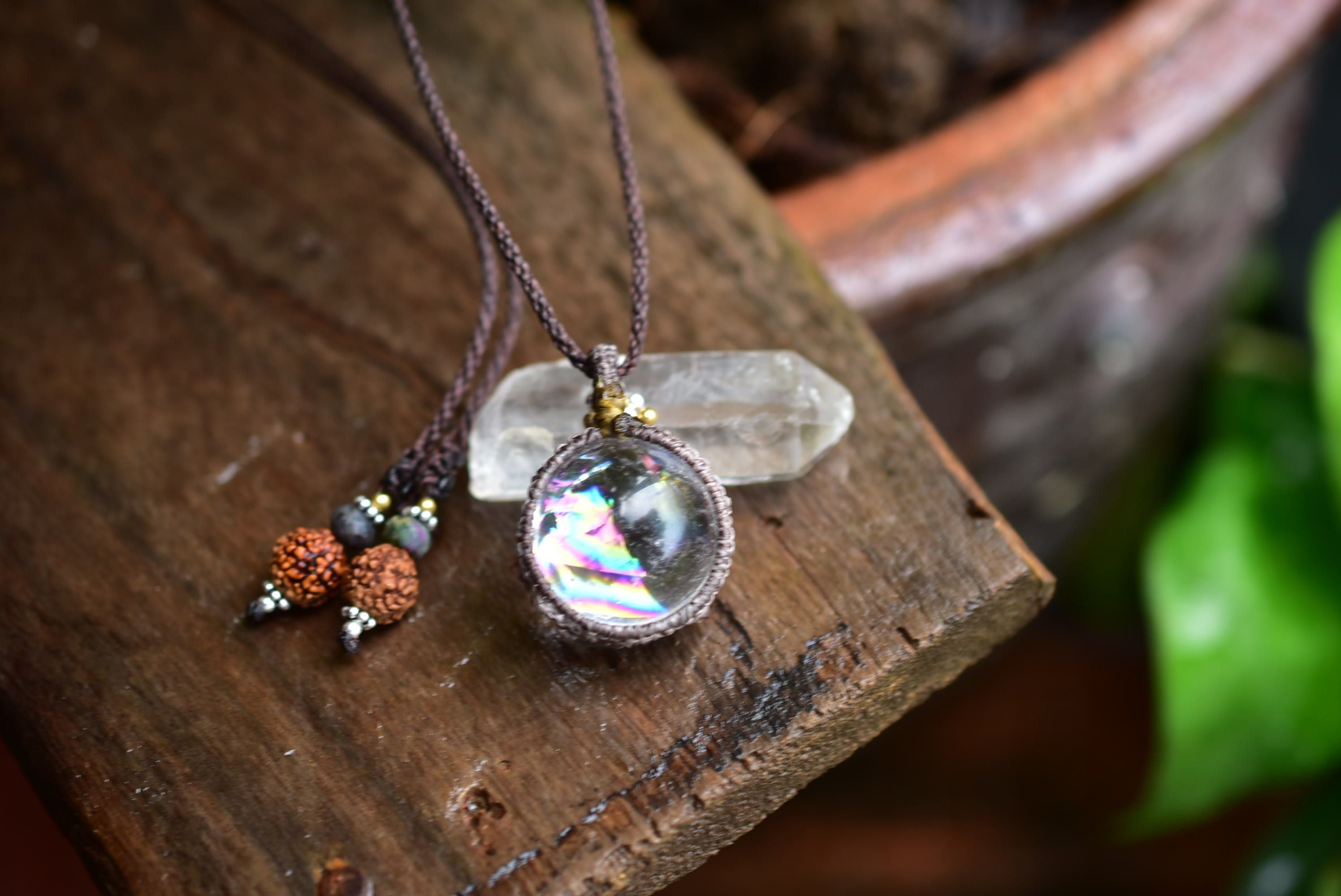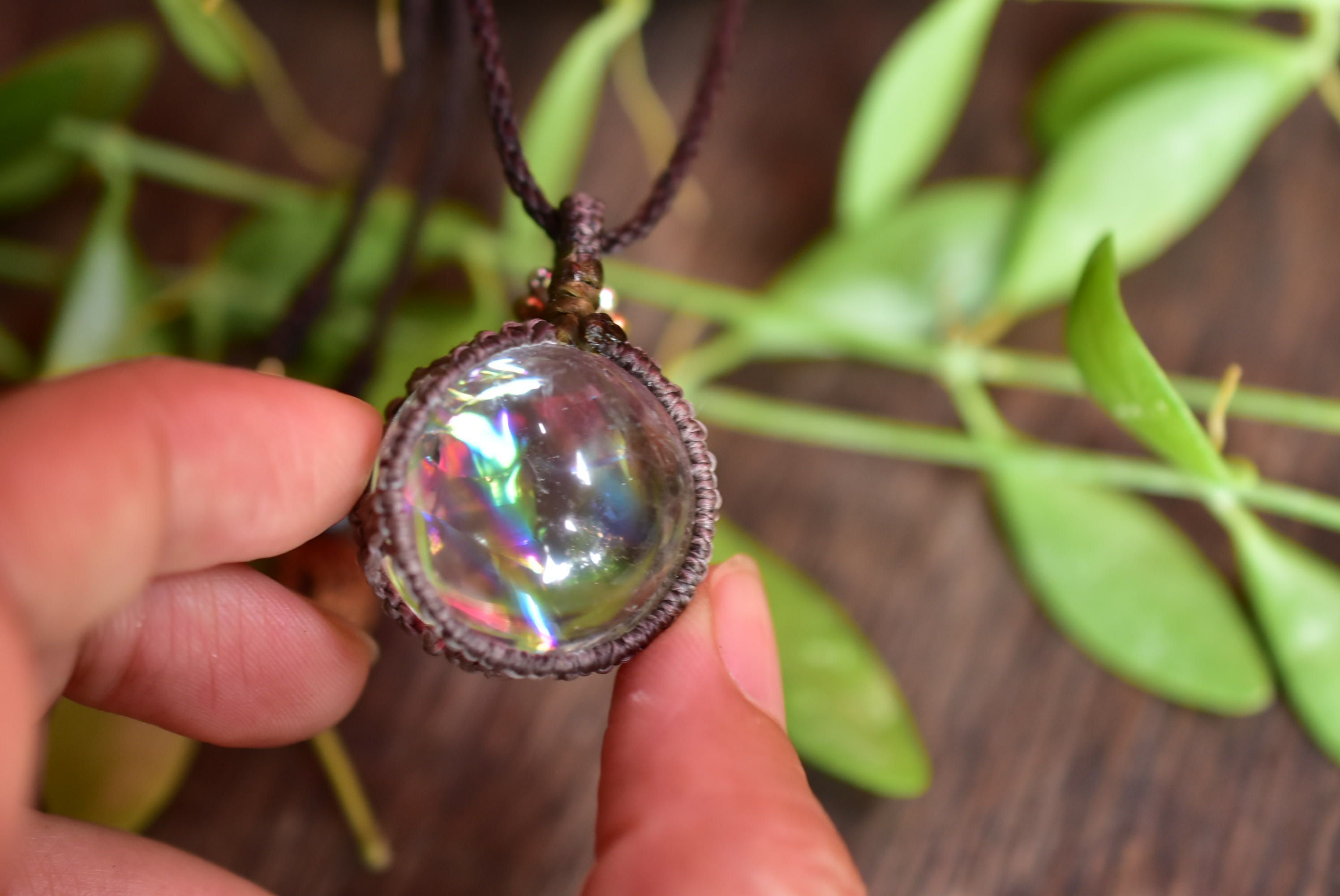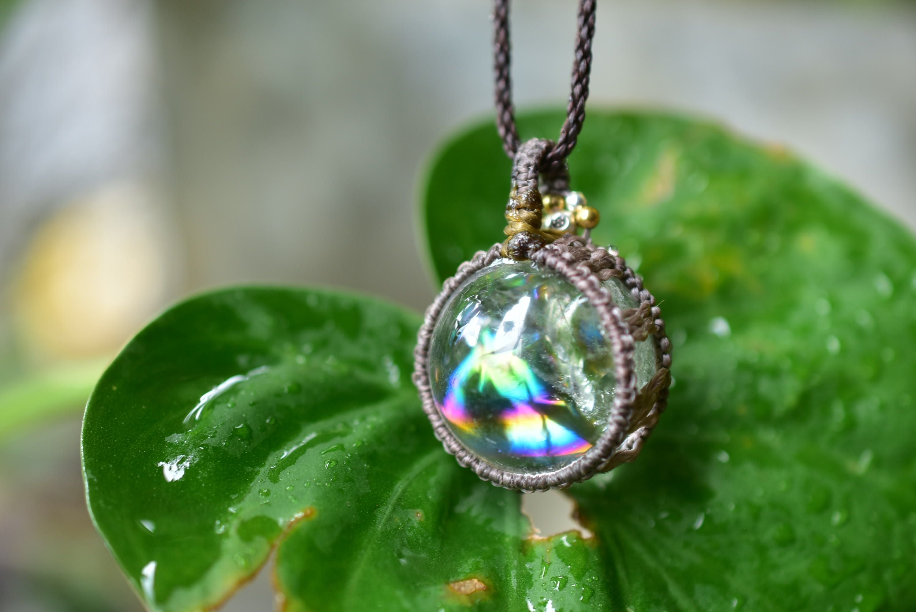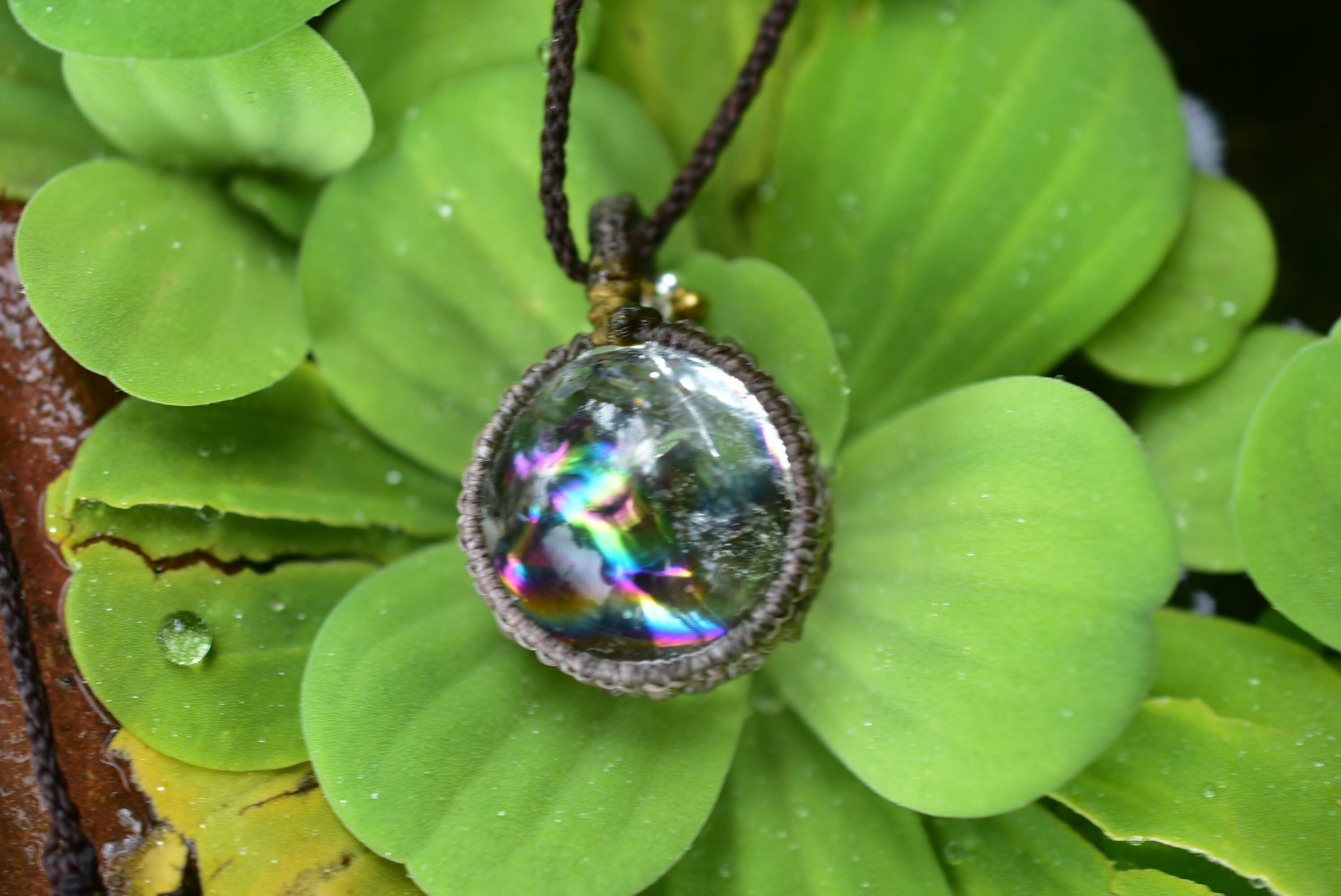 大きな虹★レインボー★クリスタルボール マクラメペンダントcryy002