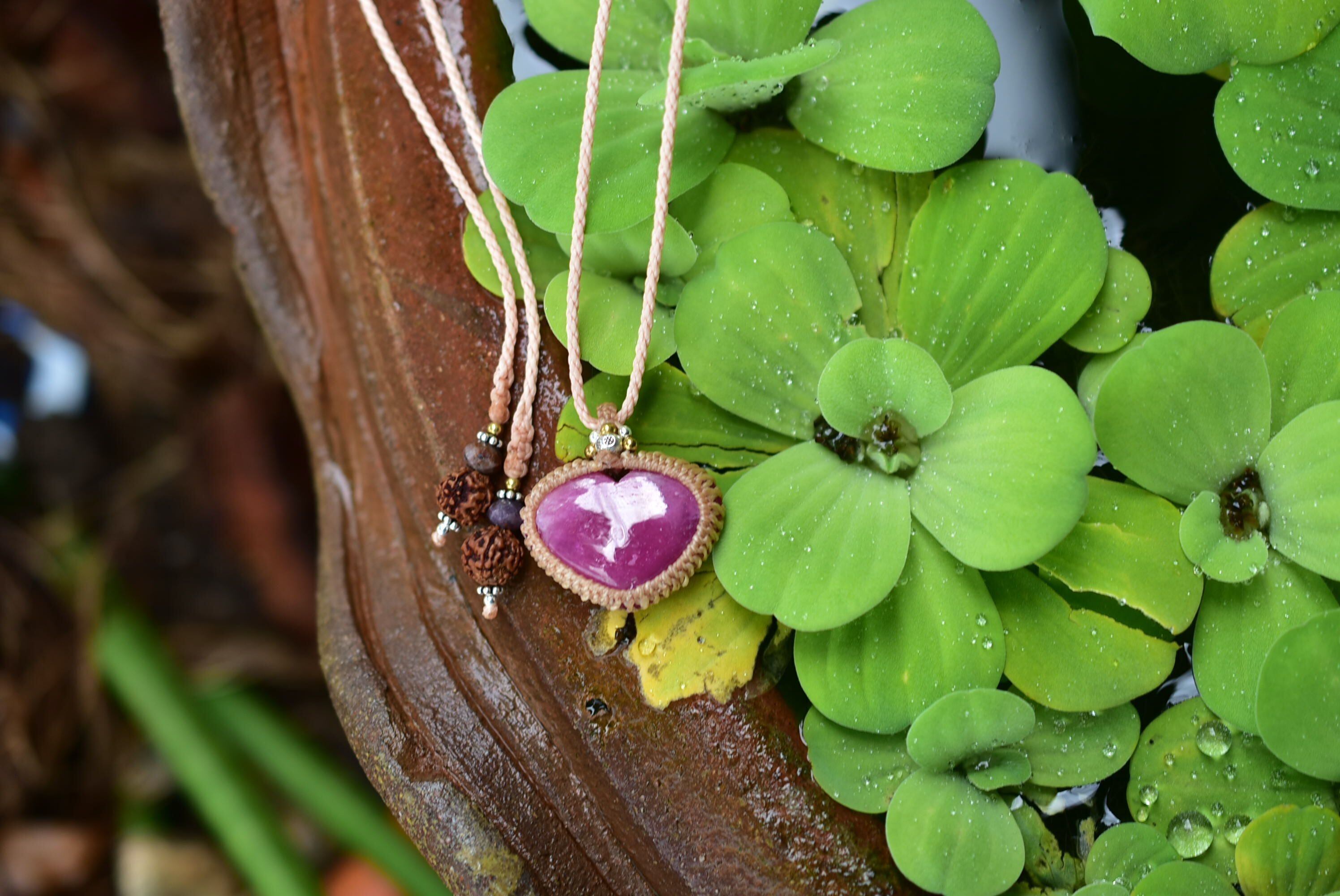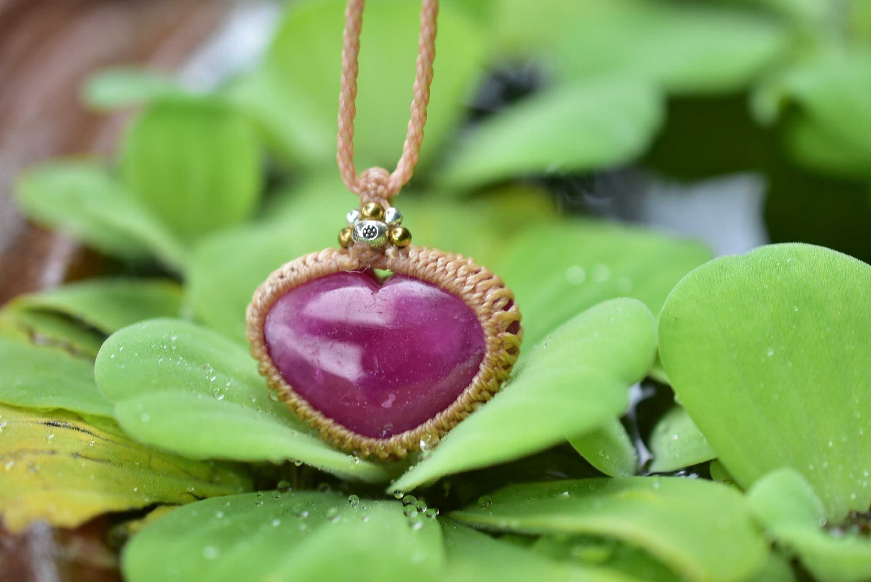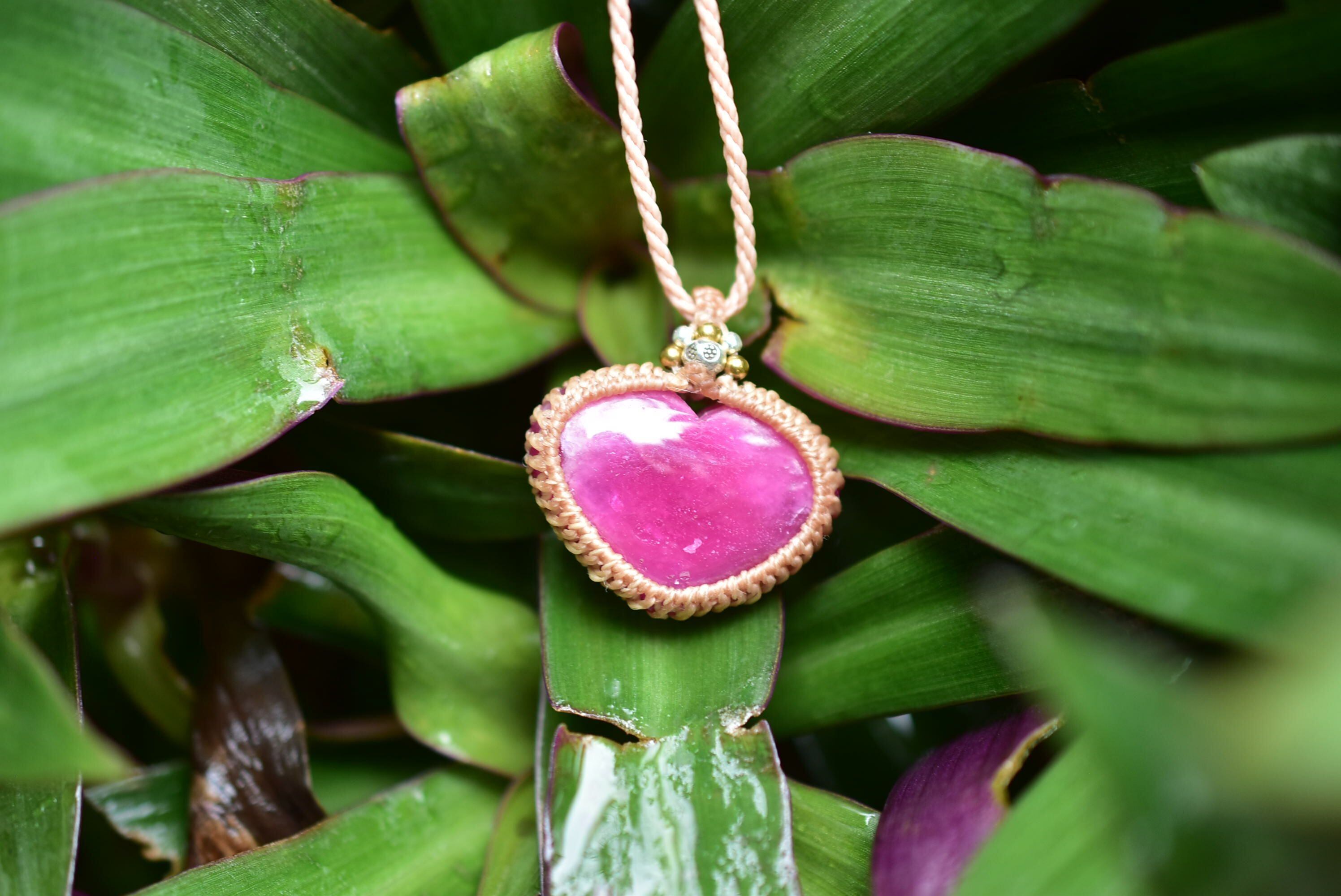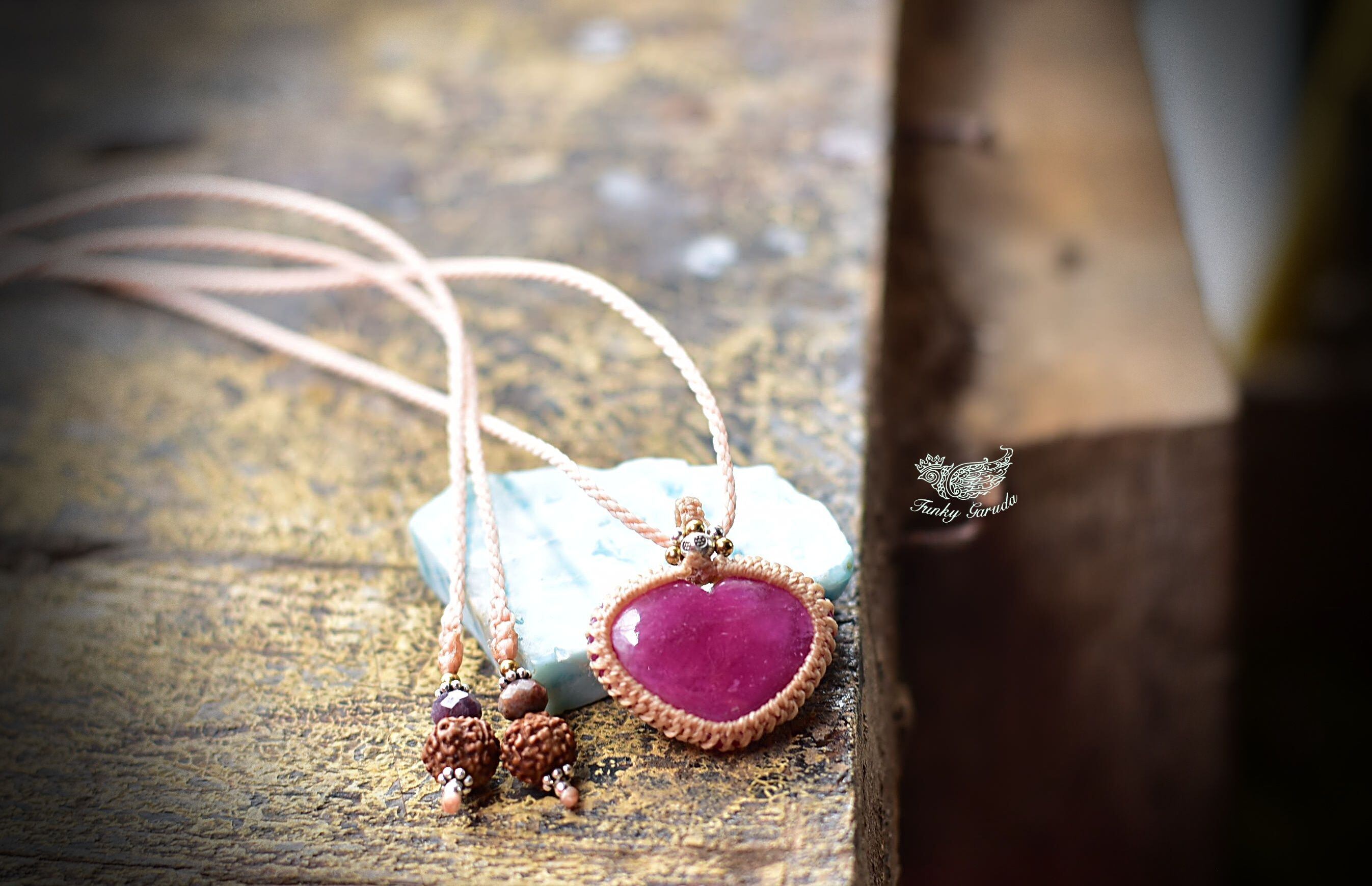 ハート型研磨★ルビー マクラメペンダント rubyy009