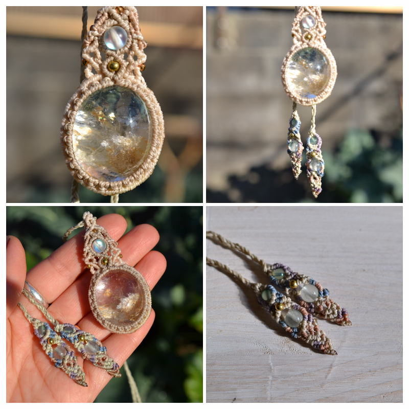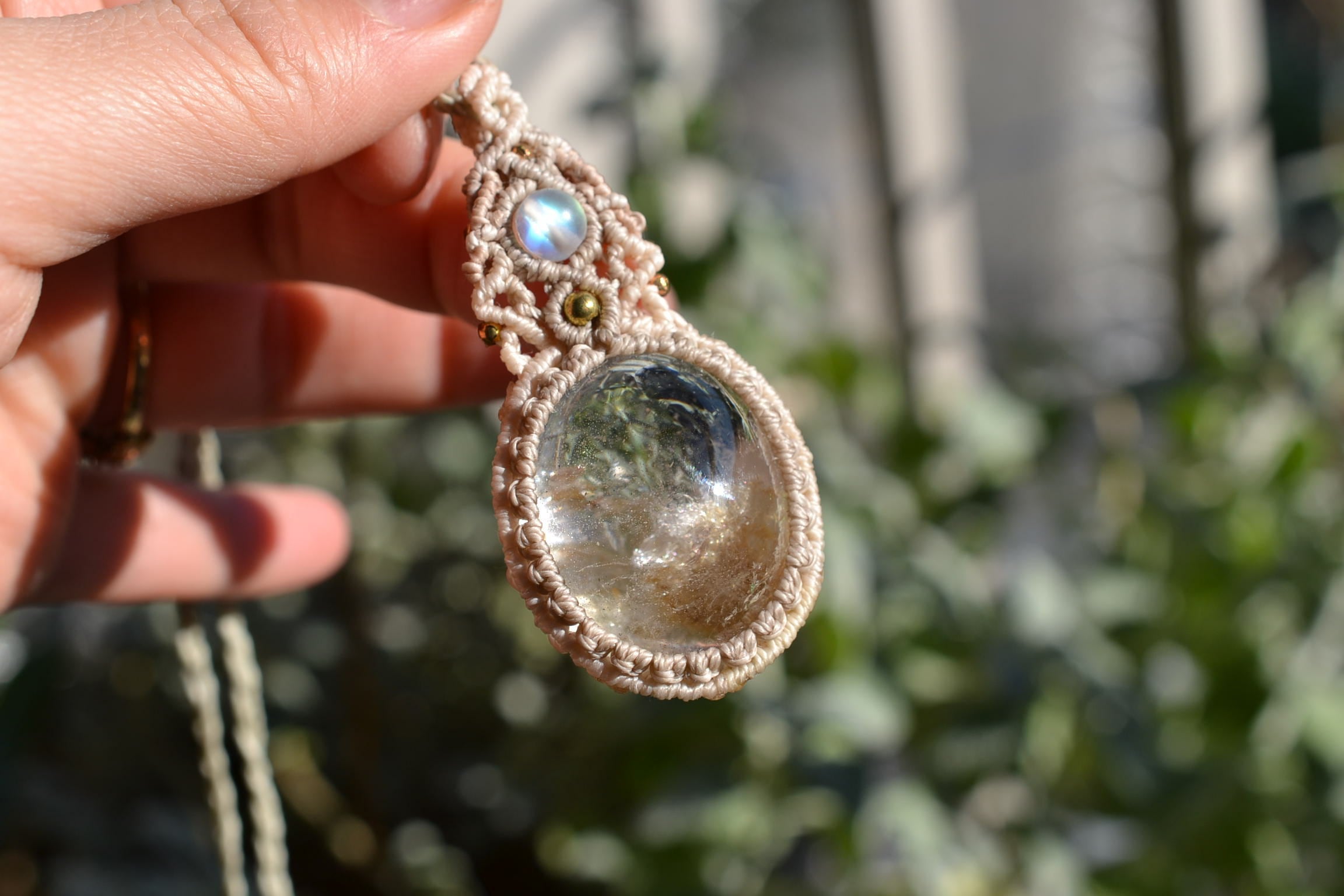 高品質★ムーンストーン×ガーデンクォーツ マクラメペンダント