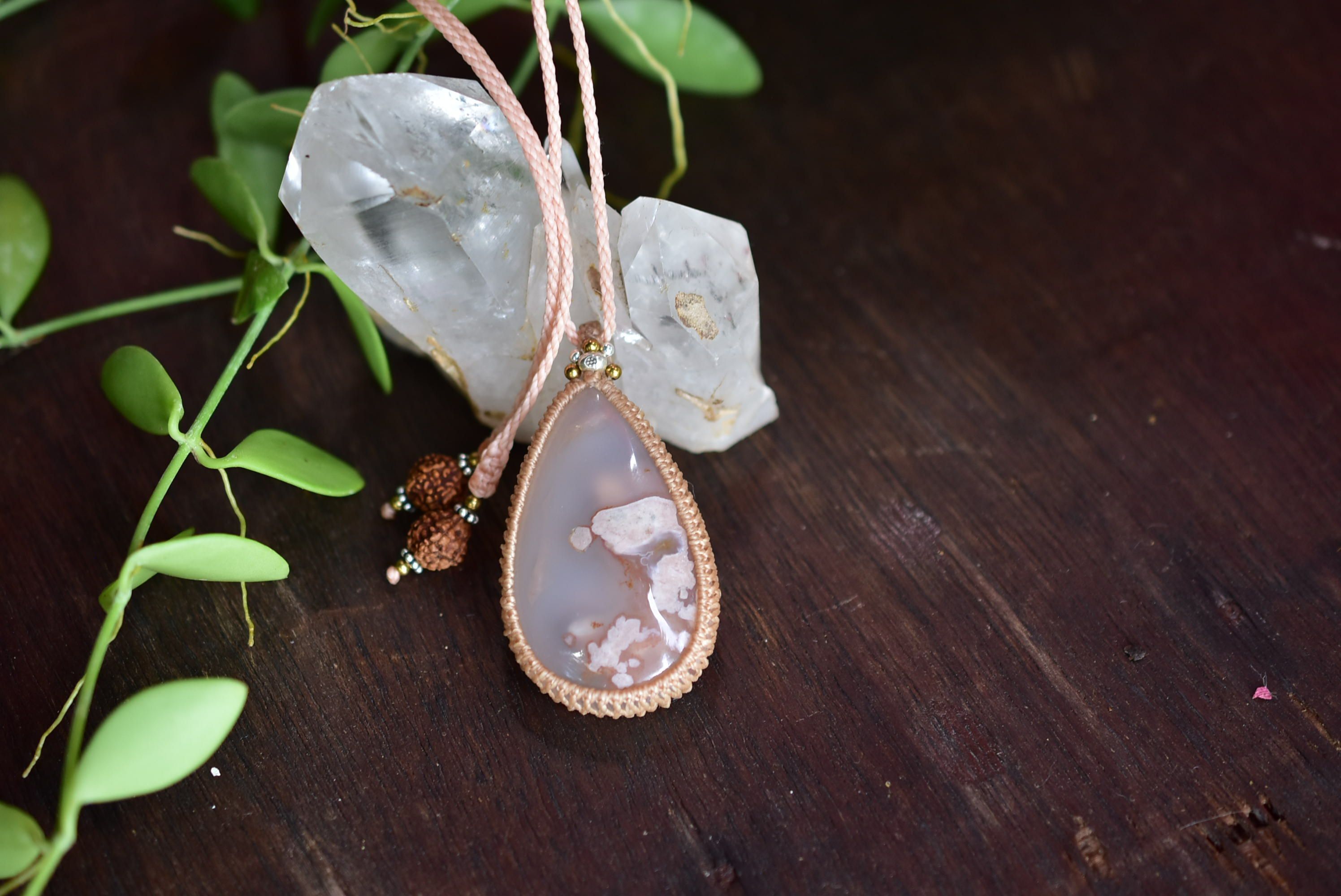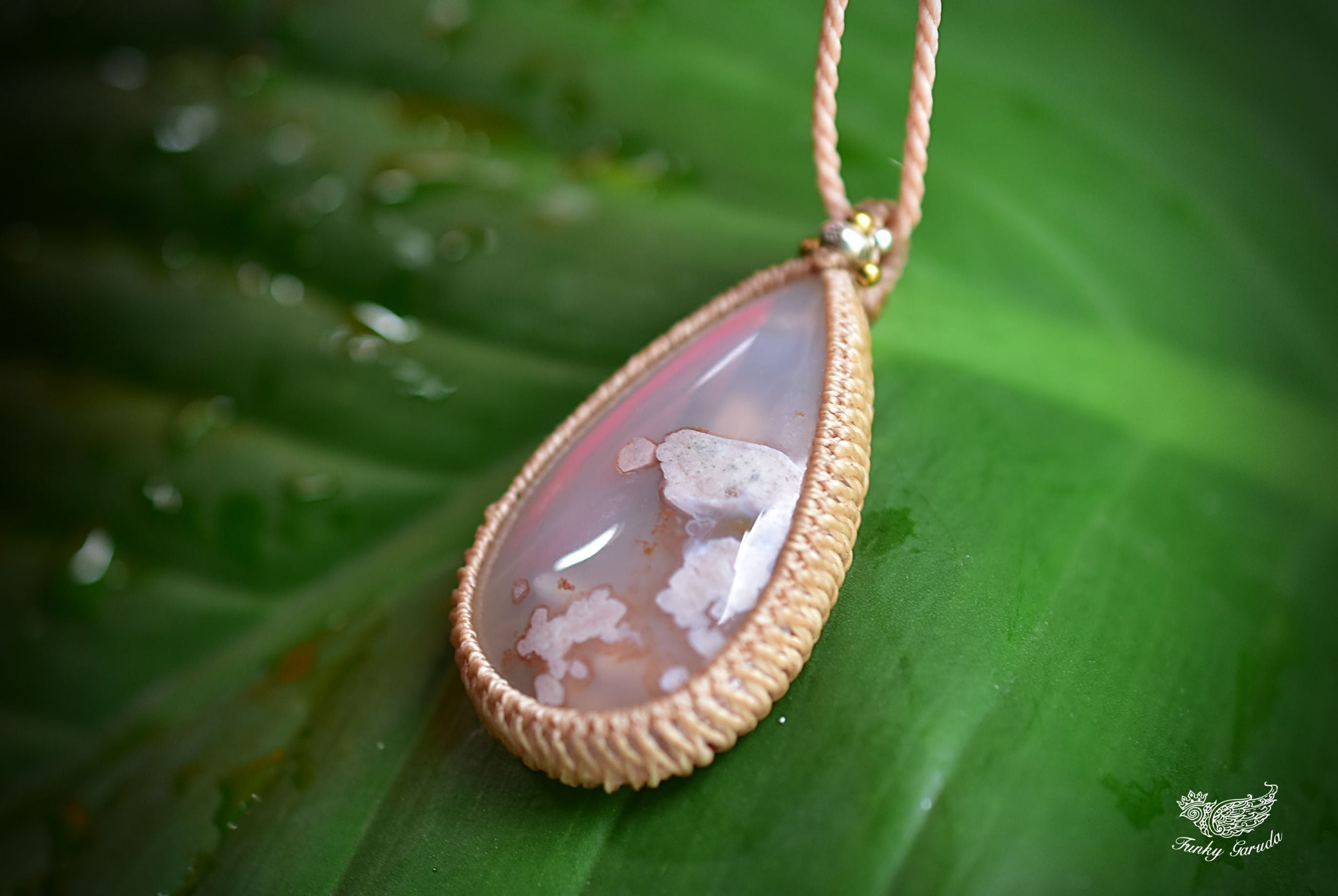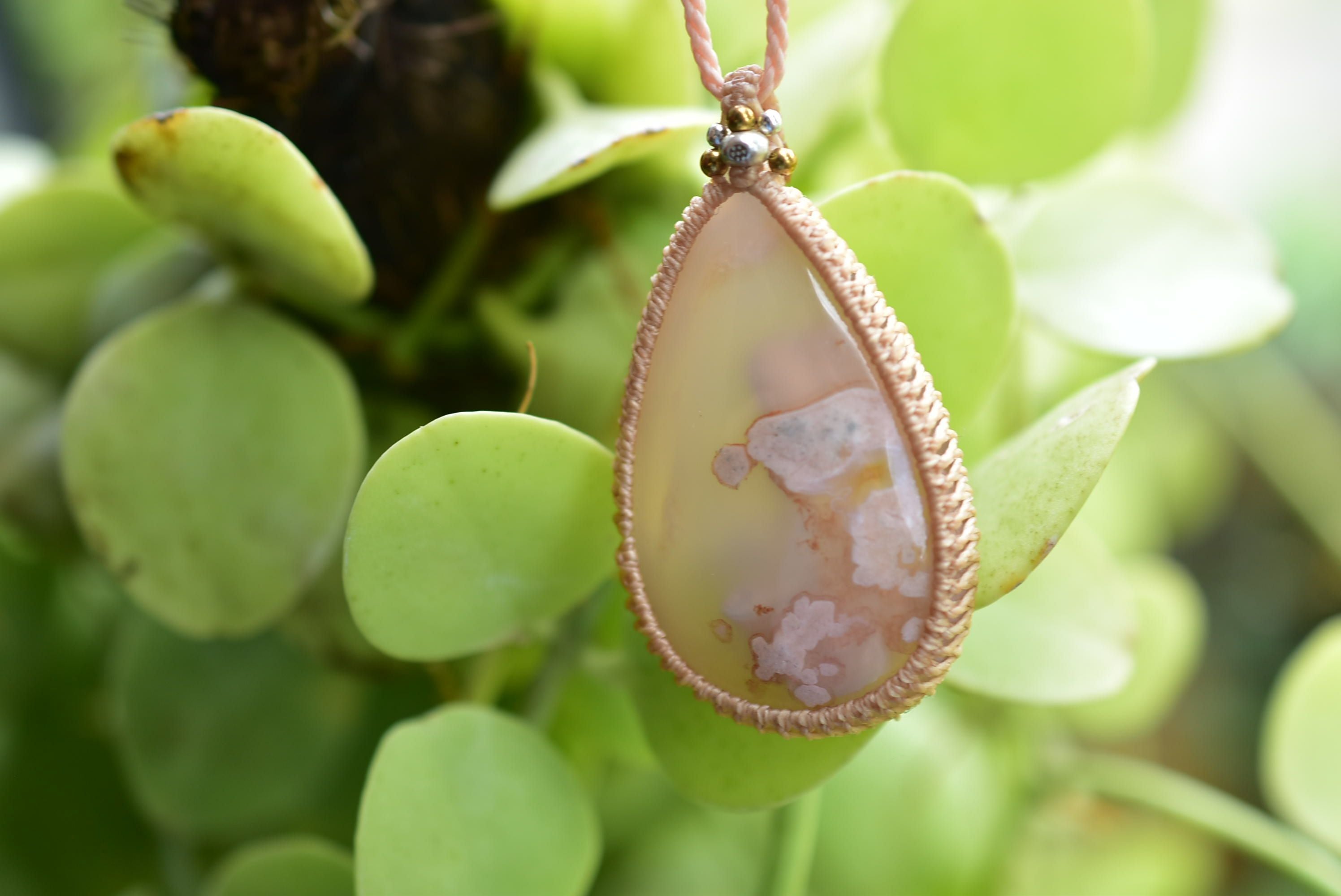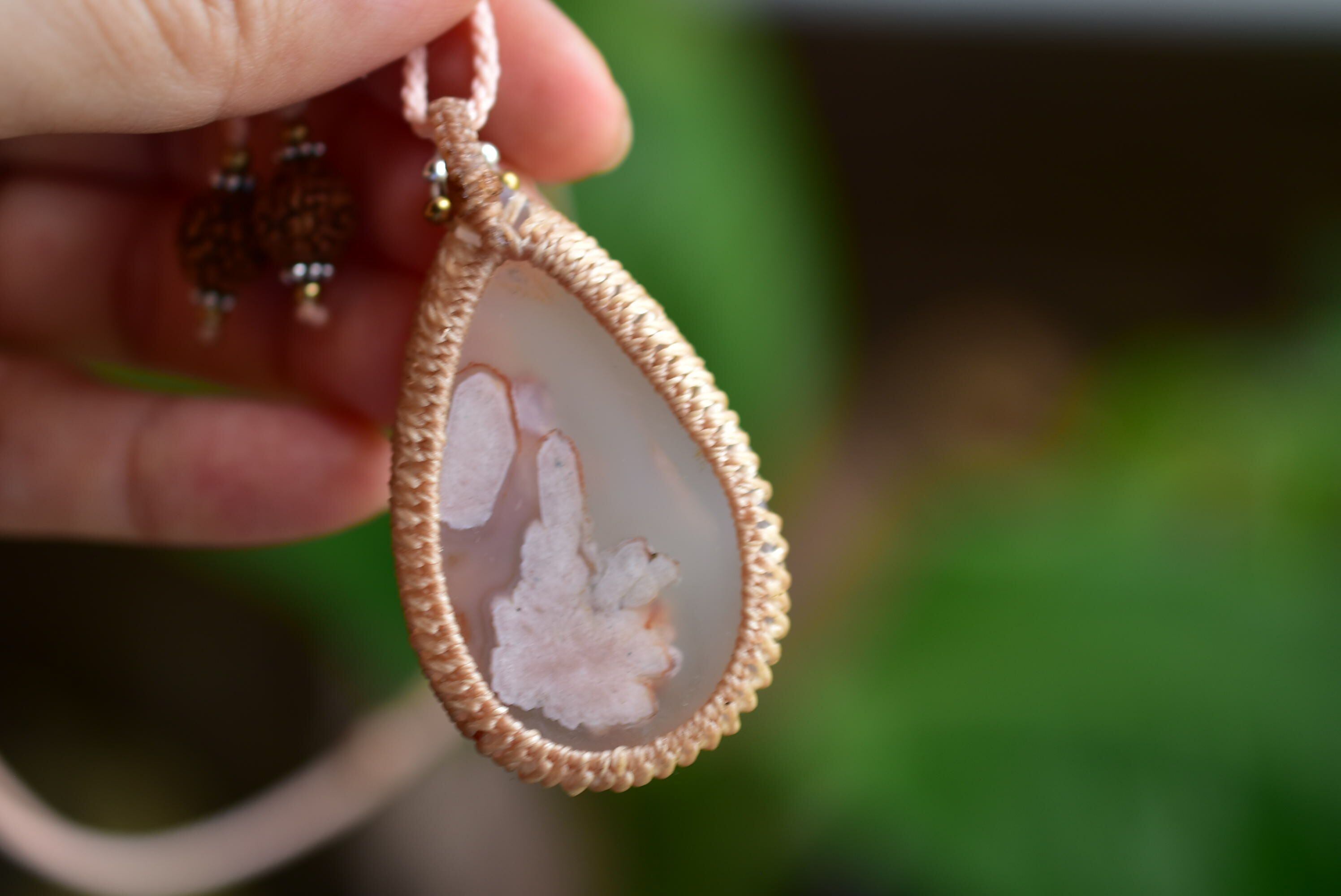 桜瑪瑙★大粒★チェリーブロッサムアゲート マクラメペンダント chey002