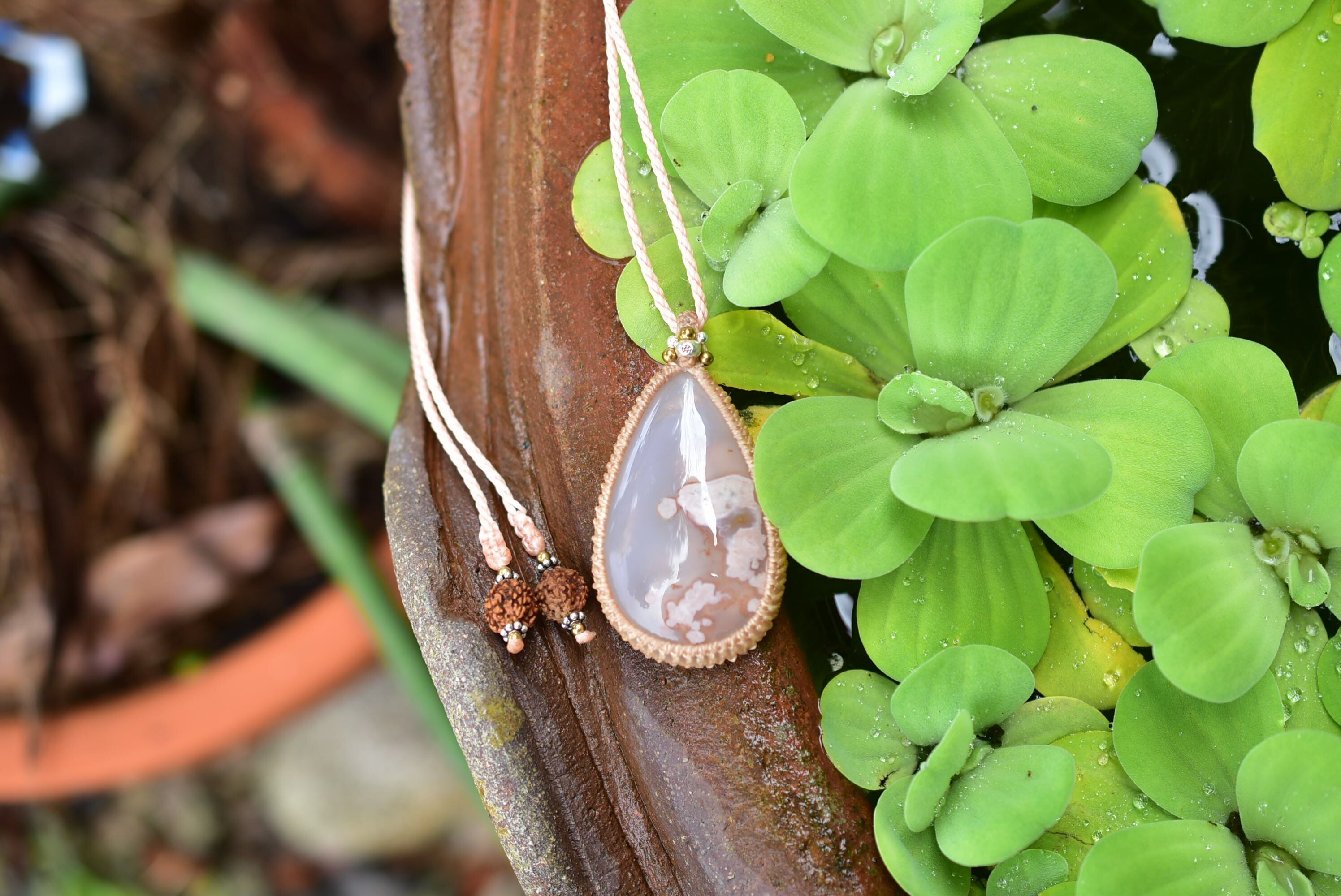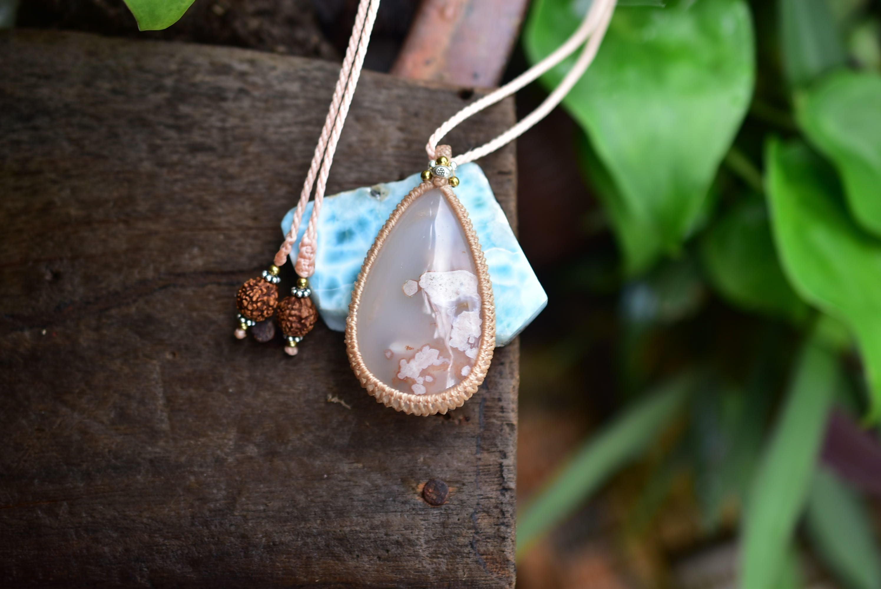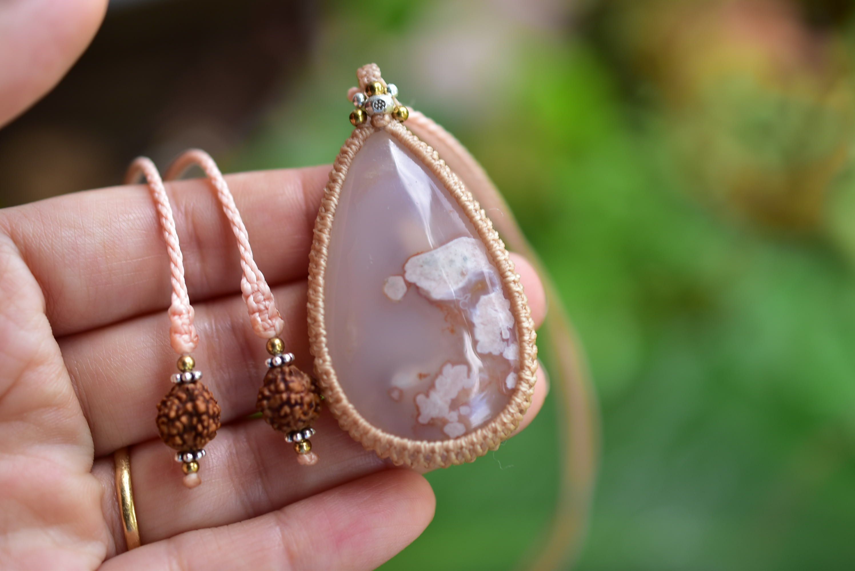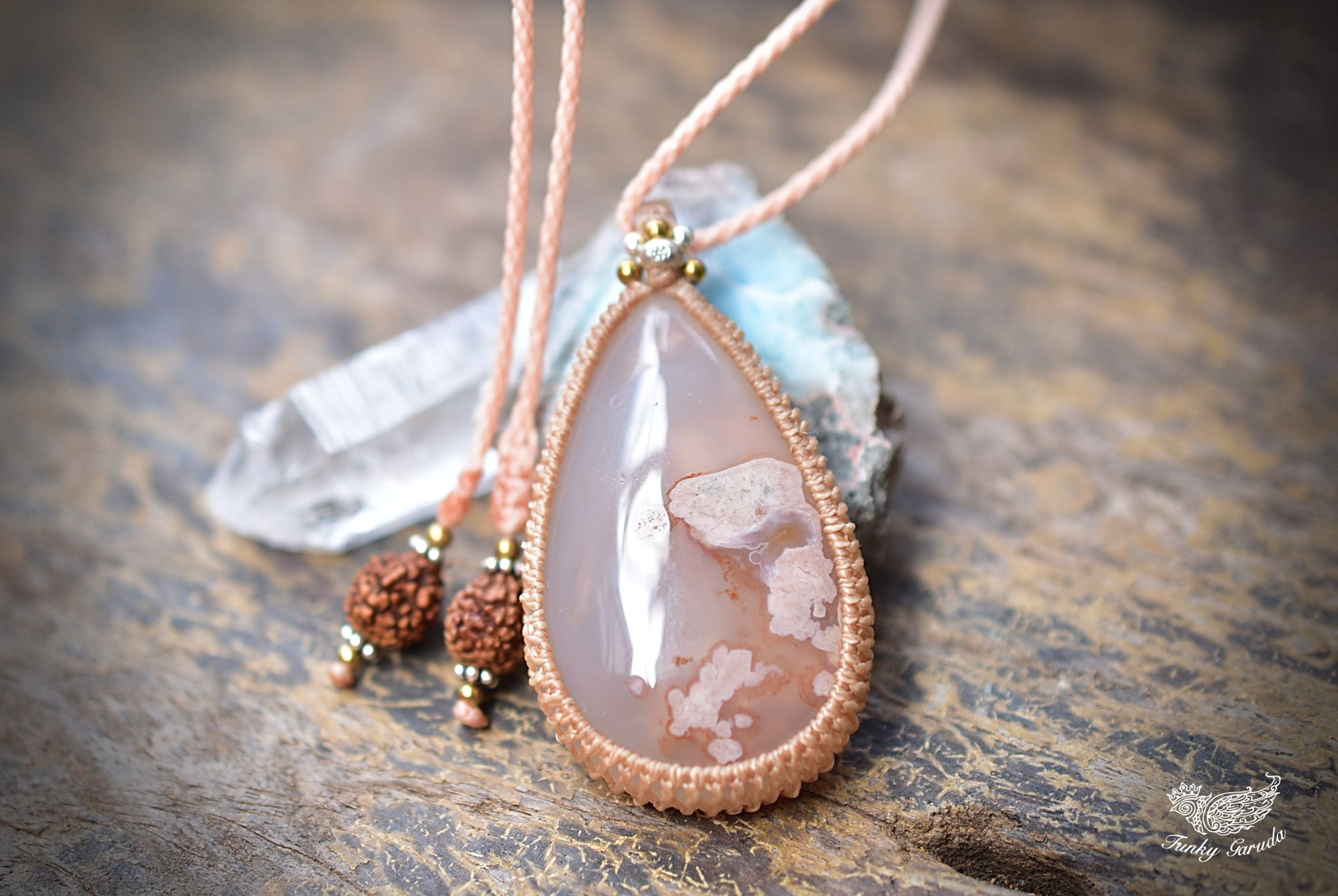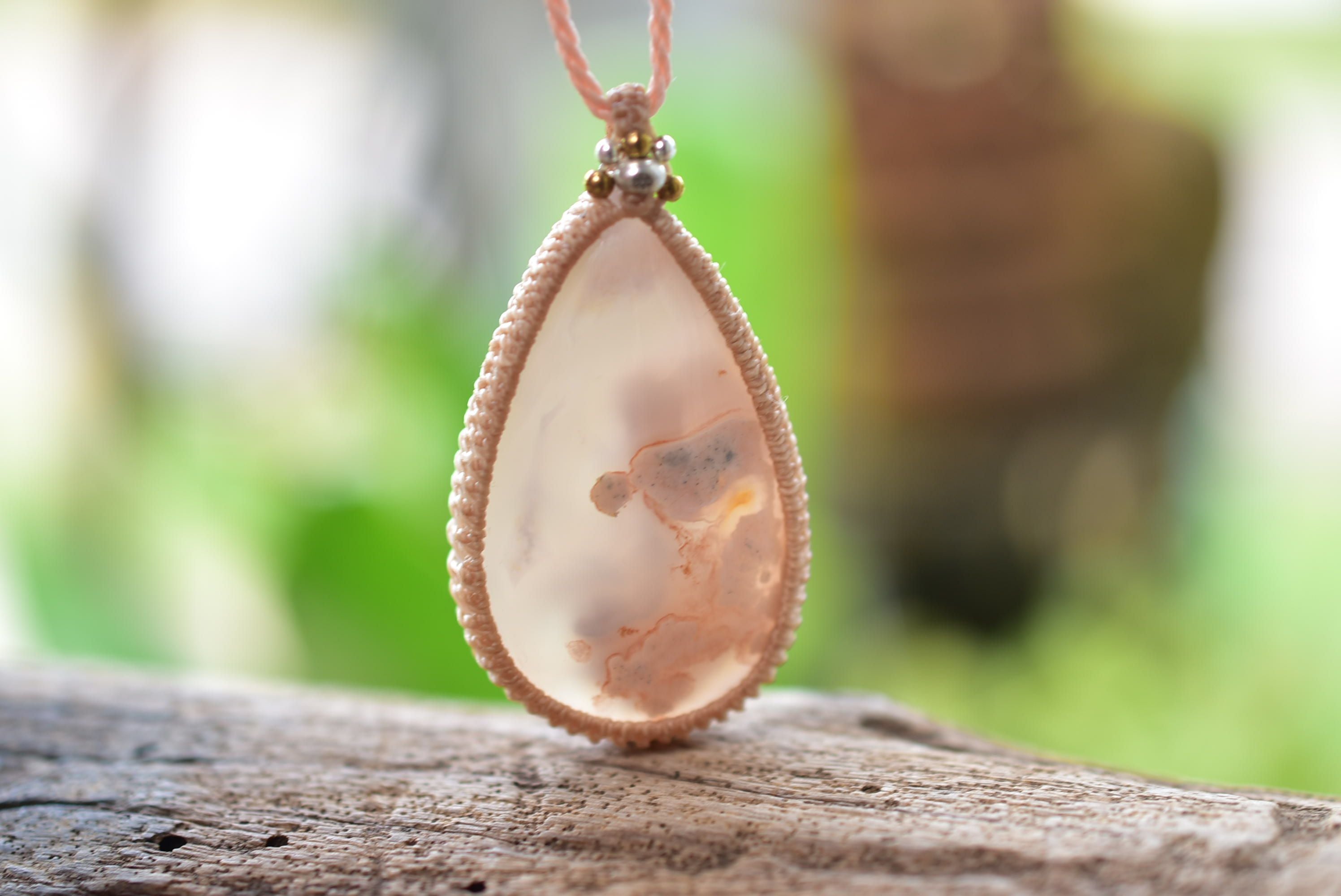 桜瑪瑙★大粒★チェリーブロッサムアゲート マクラメペンダント chey002