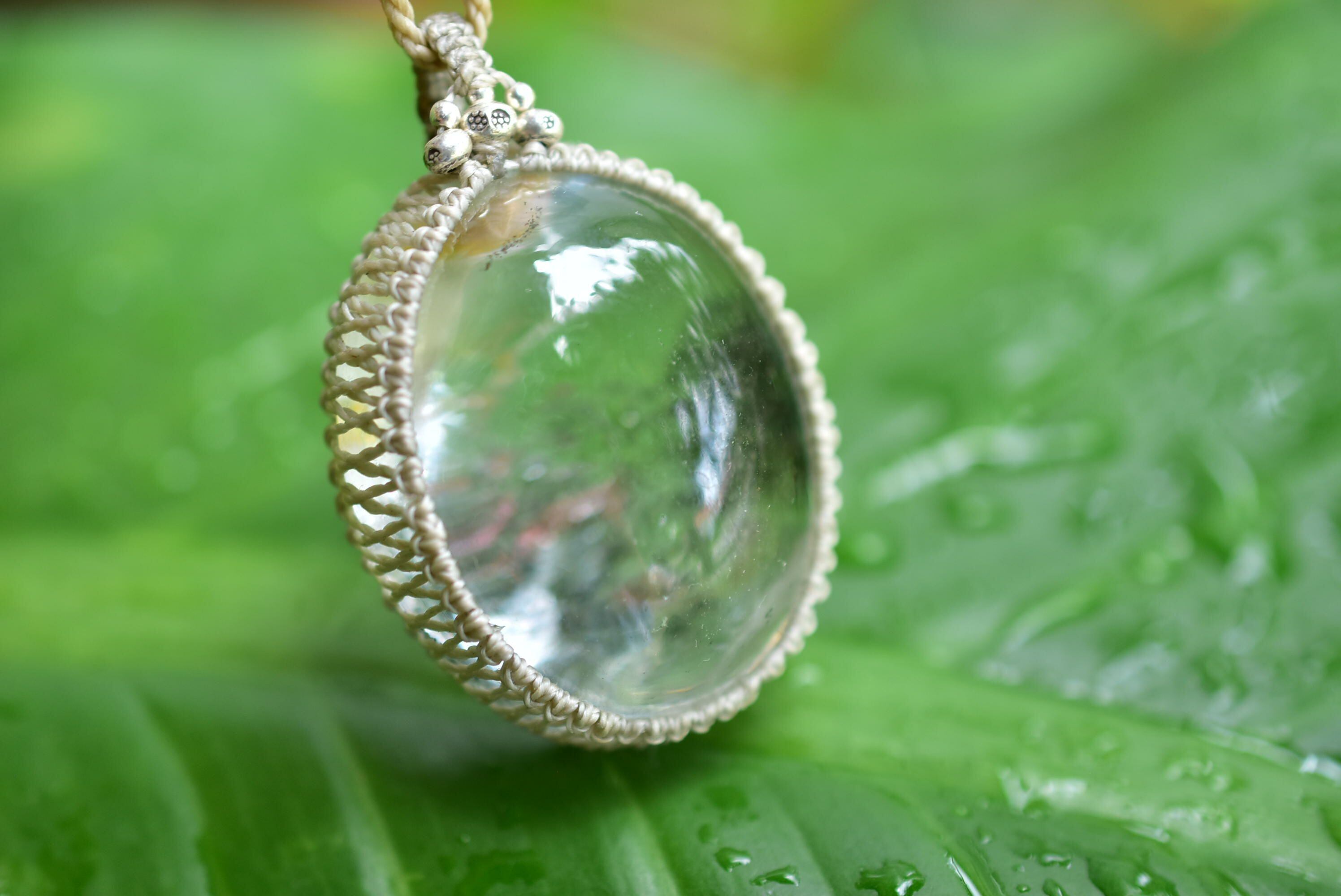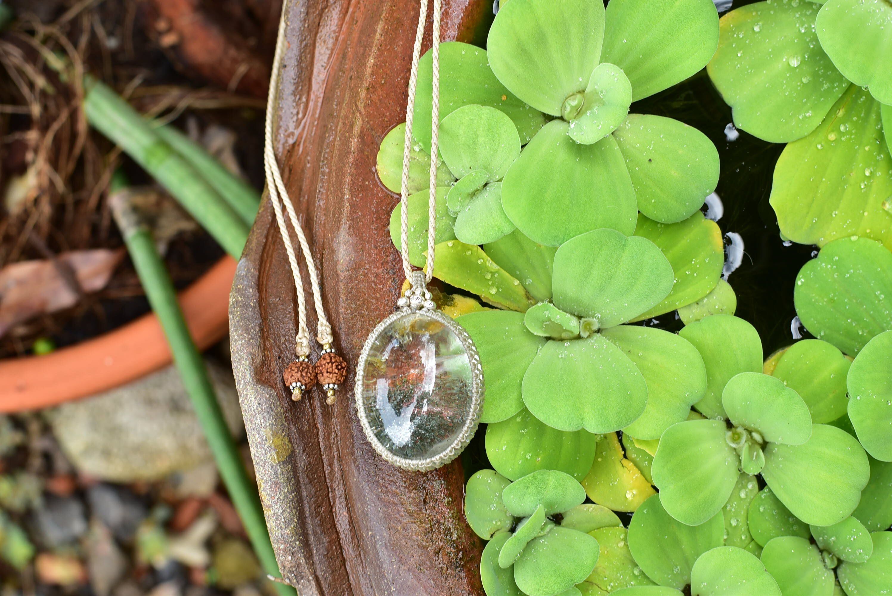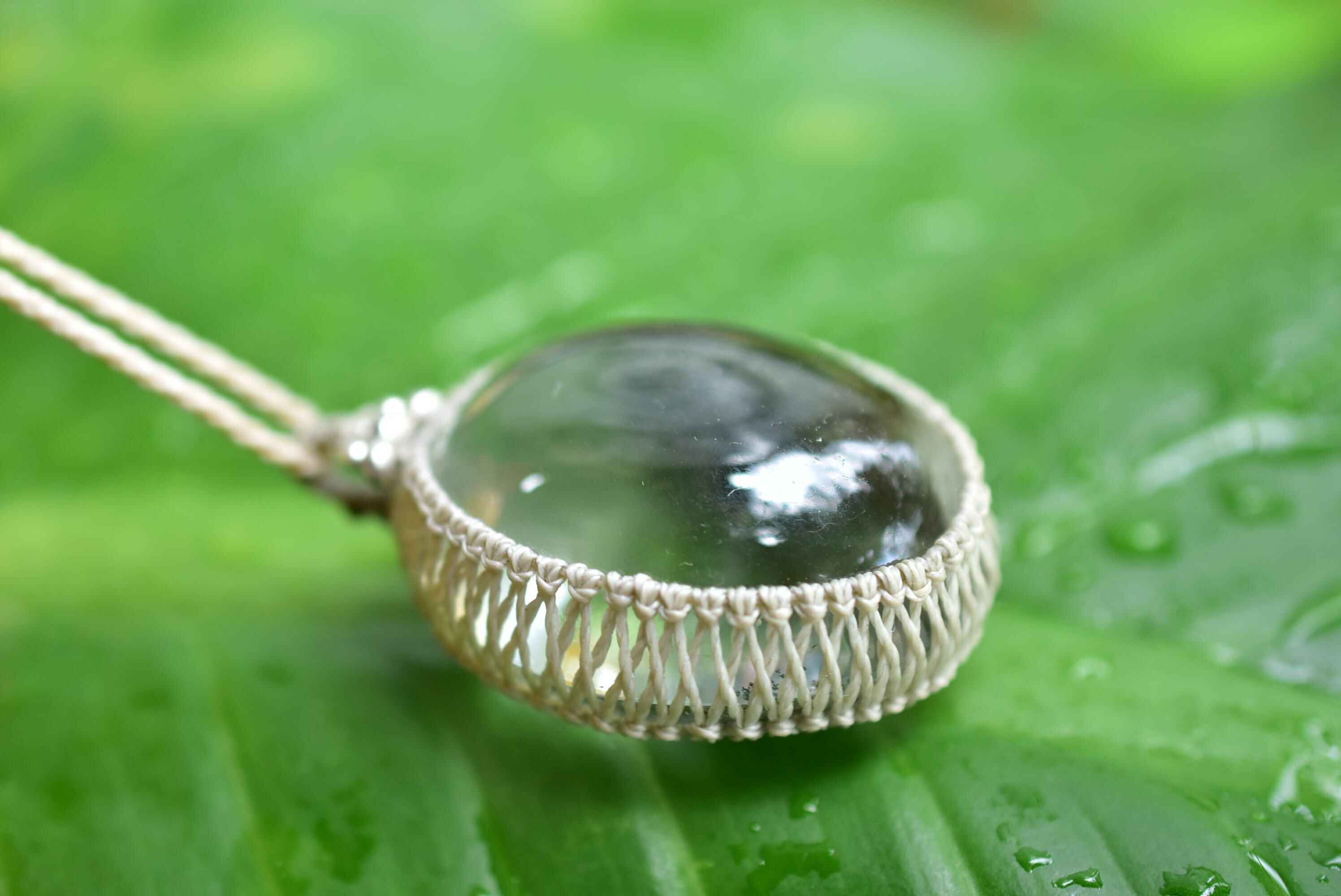 静かな緑★大粒ガーデンクォーツ シンプルマクラメペンダントgy051