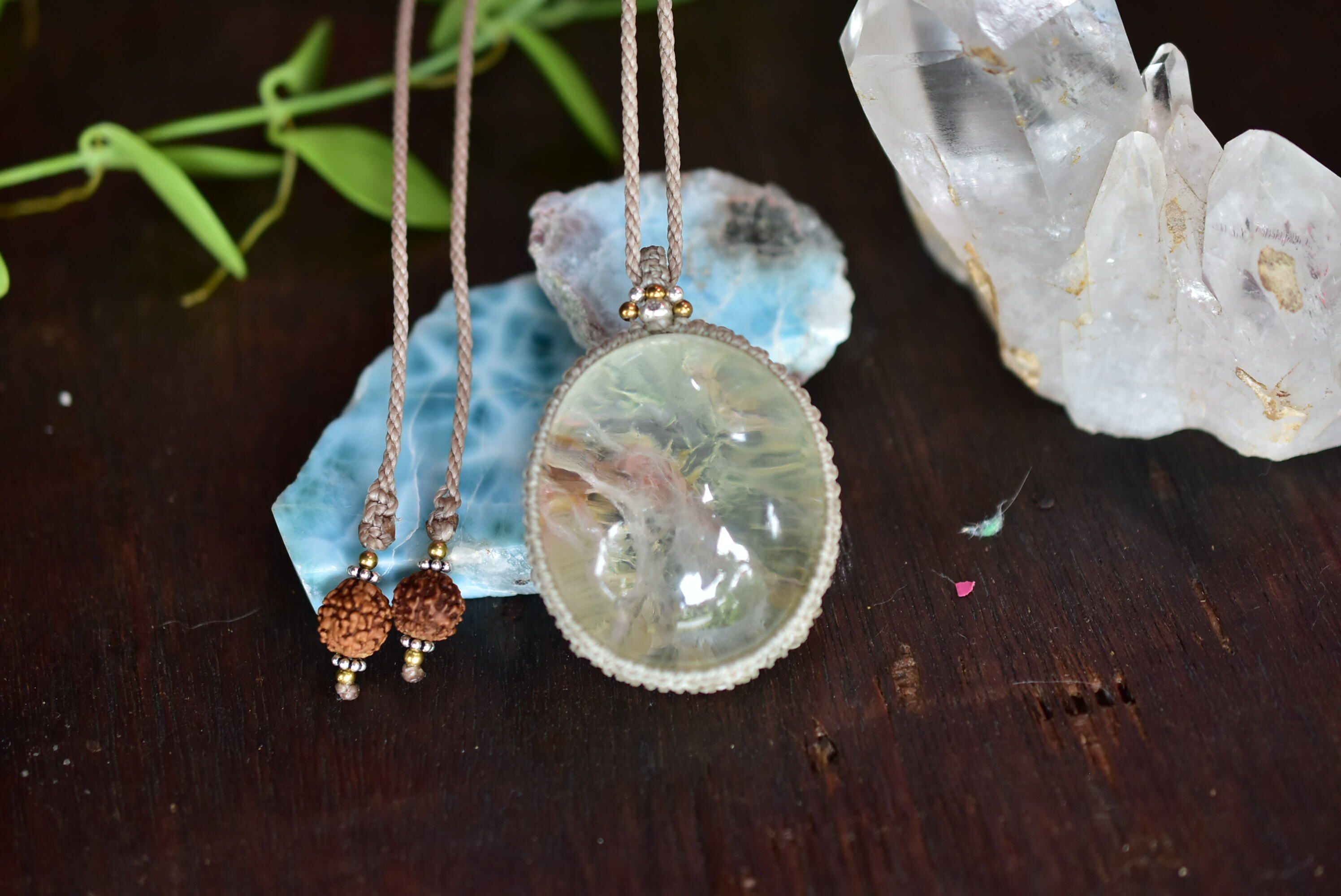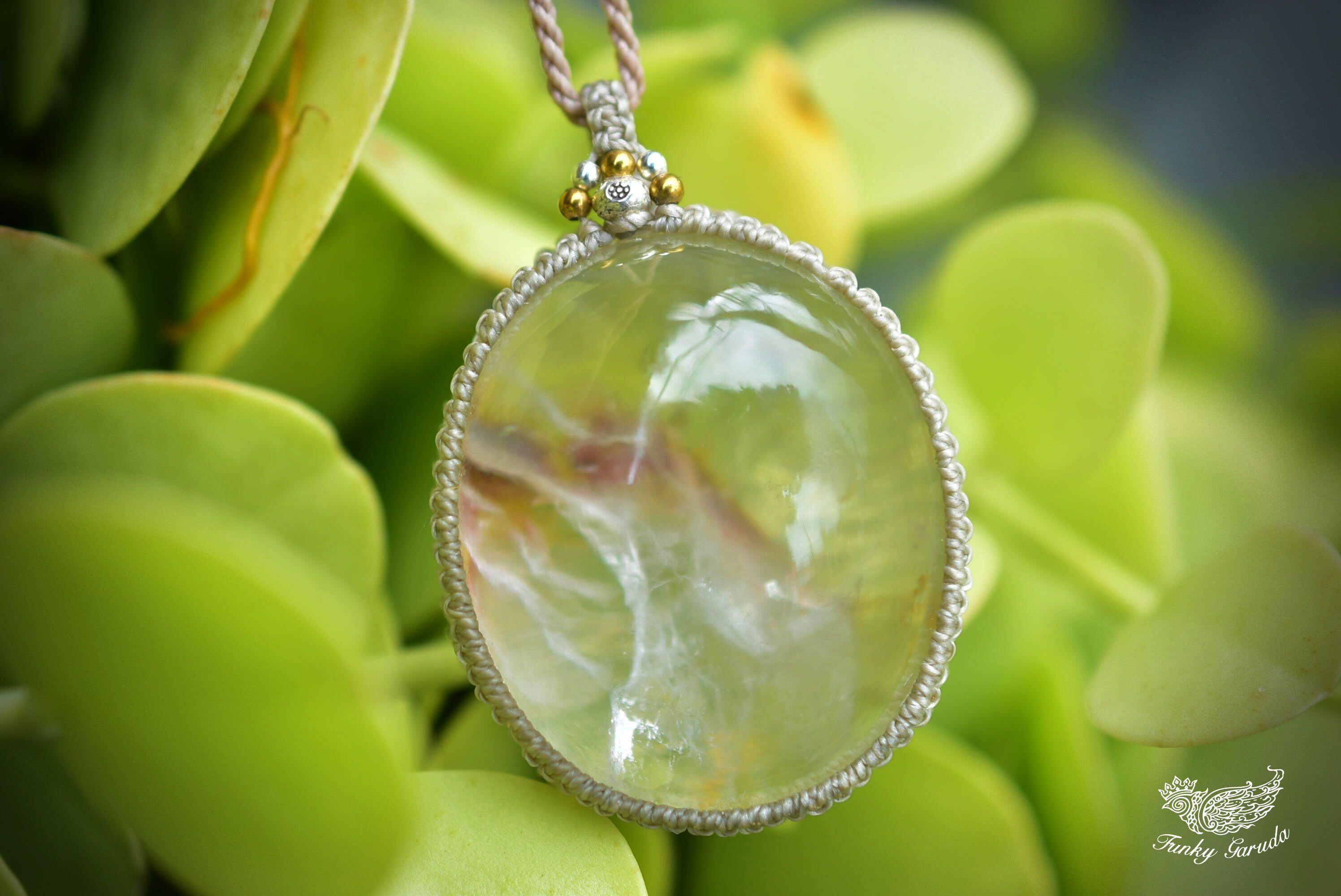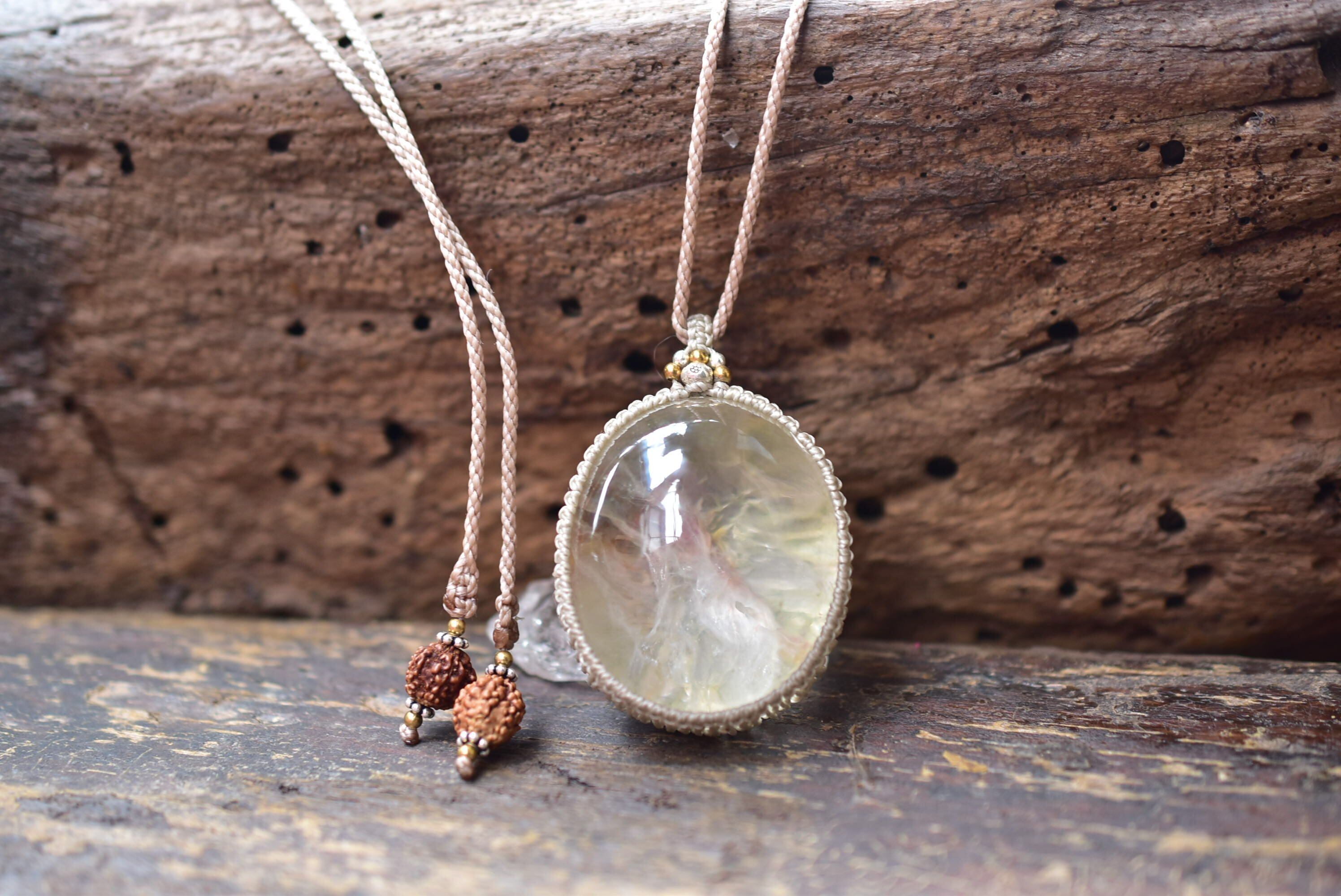 白の温もり★透明感★ホワイトピンク★ガーデンクォーツ マクラメペンダントgy052