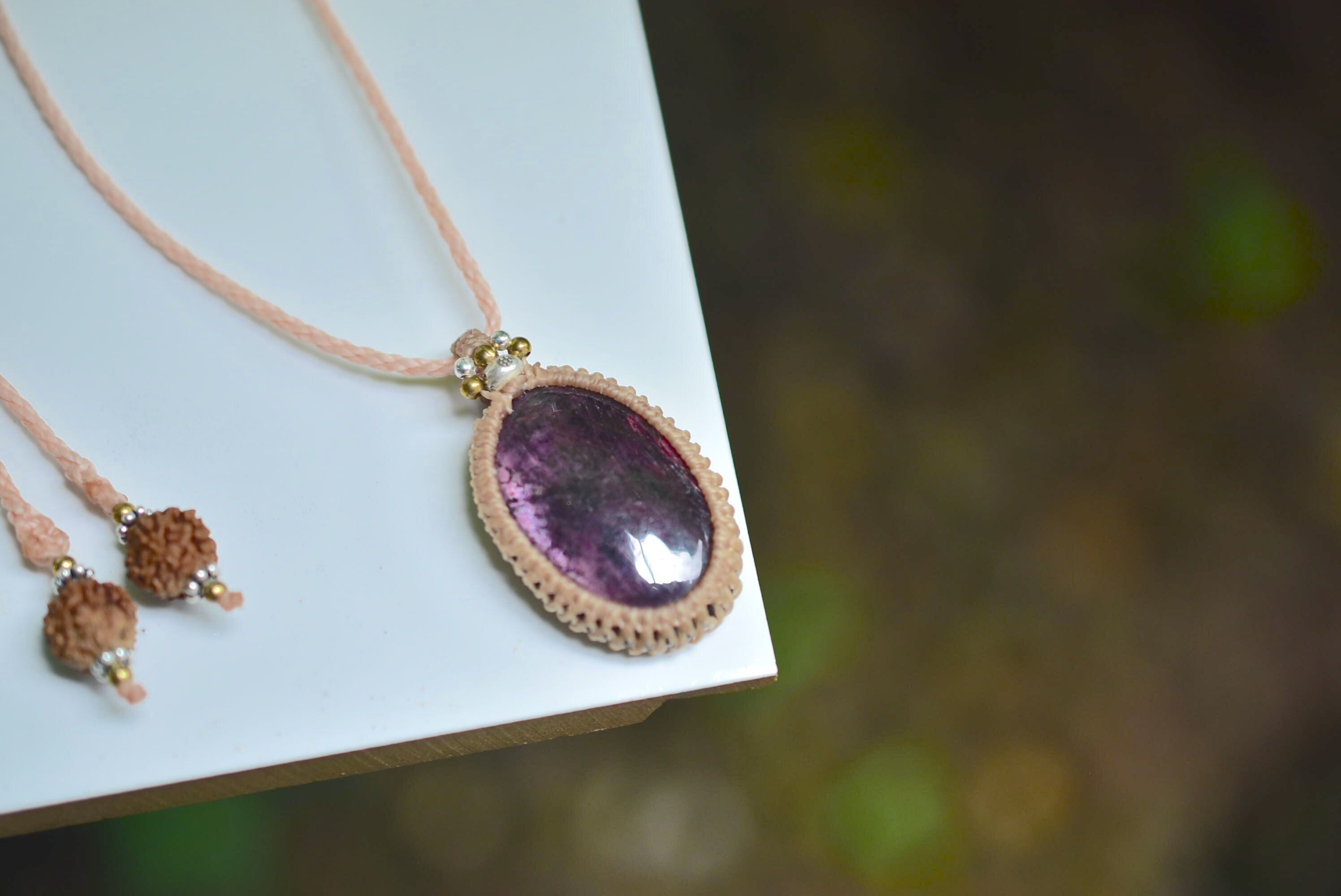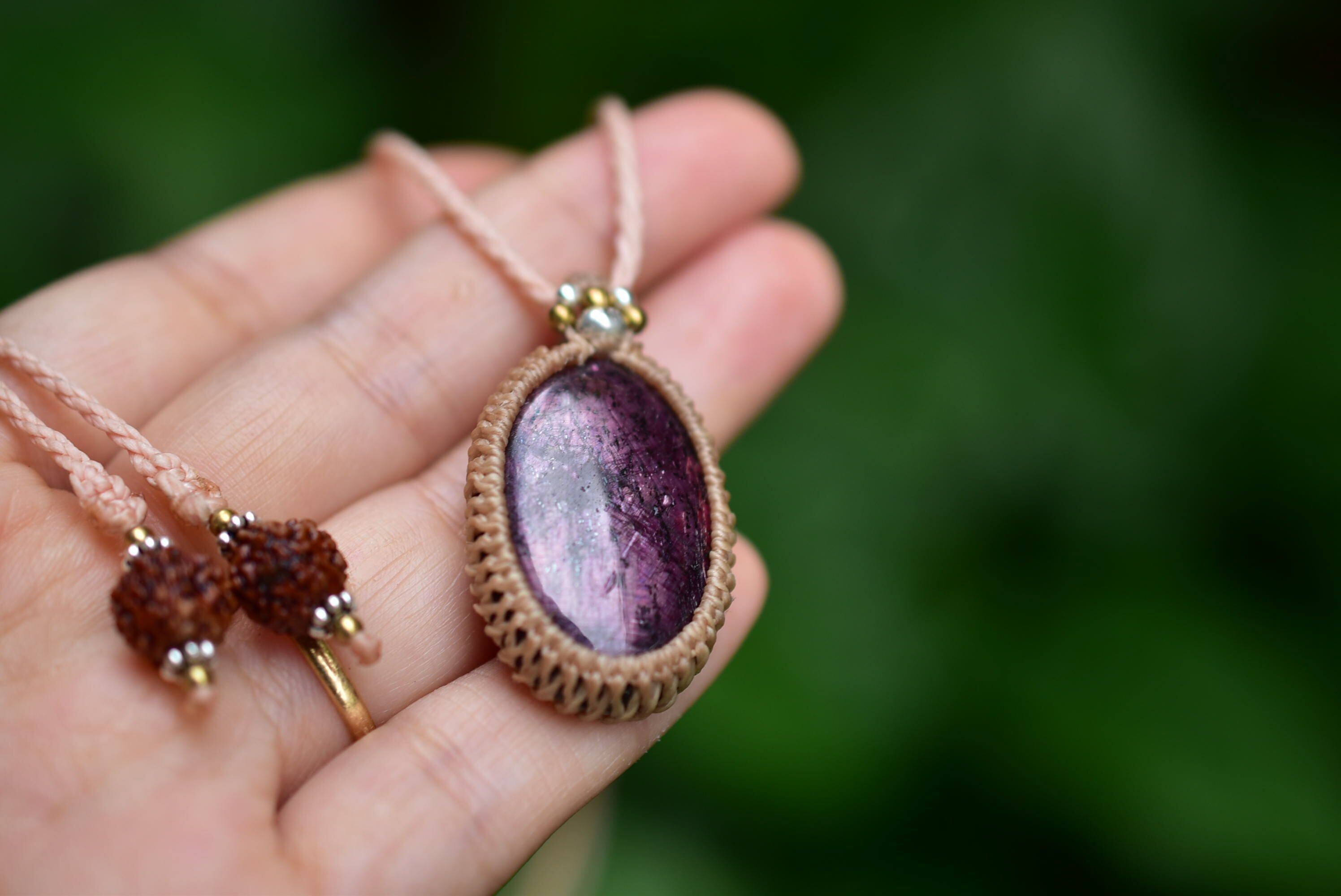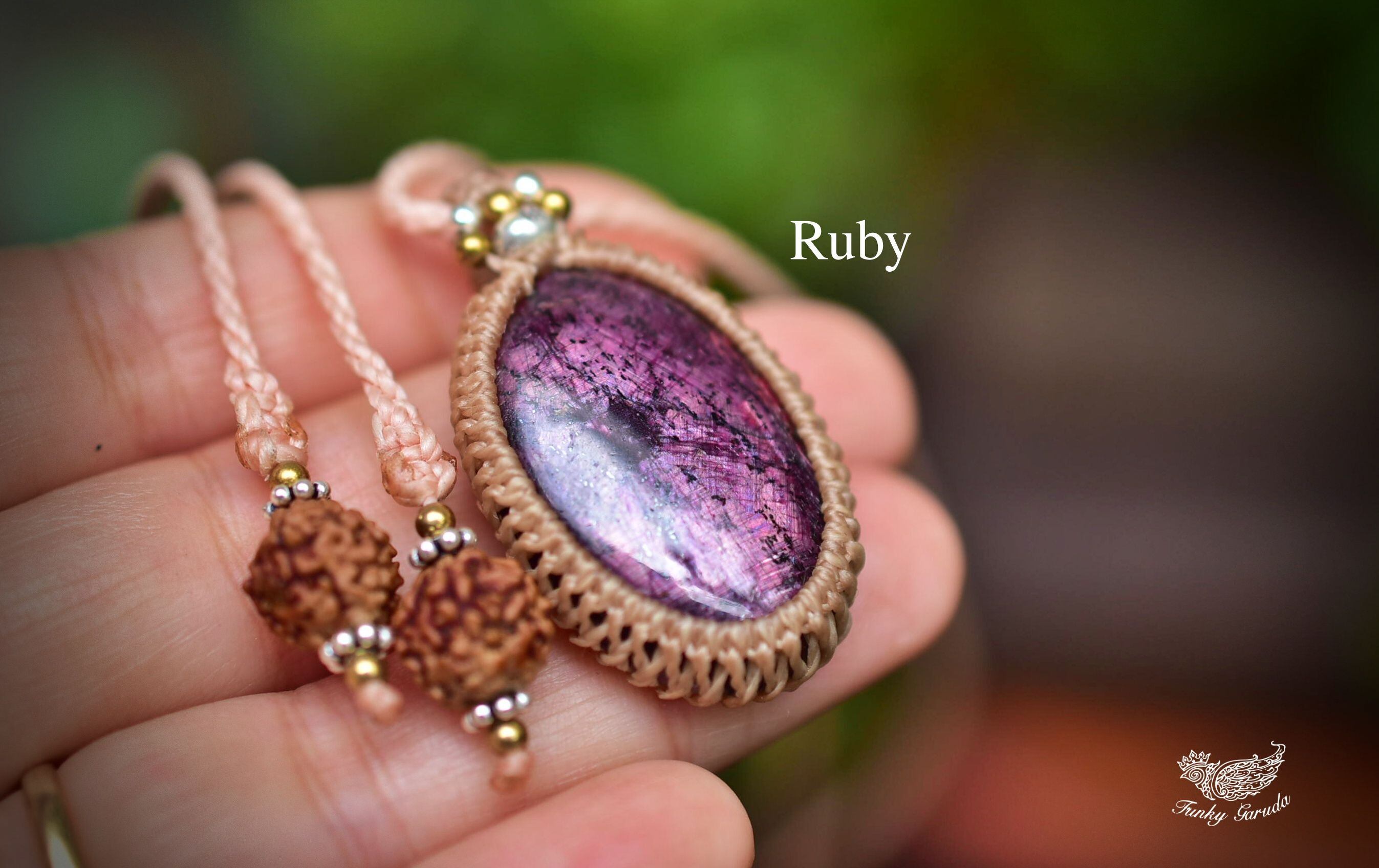 上質なルビーを、シンプルなマクラメペンダントに仕上げました。