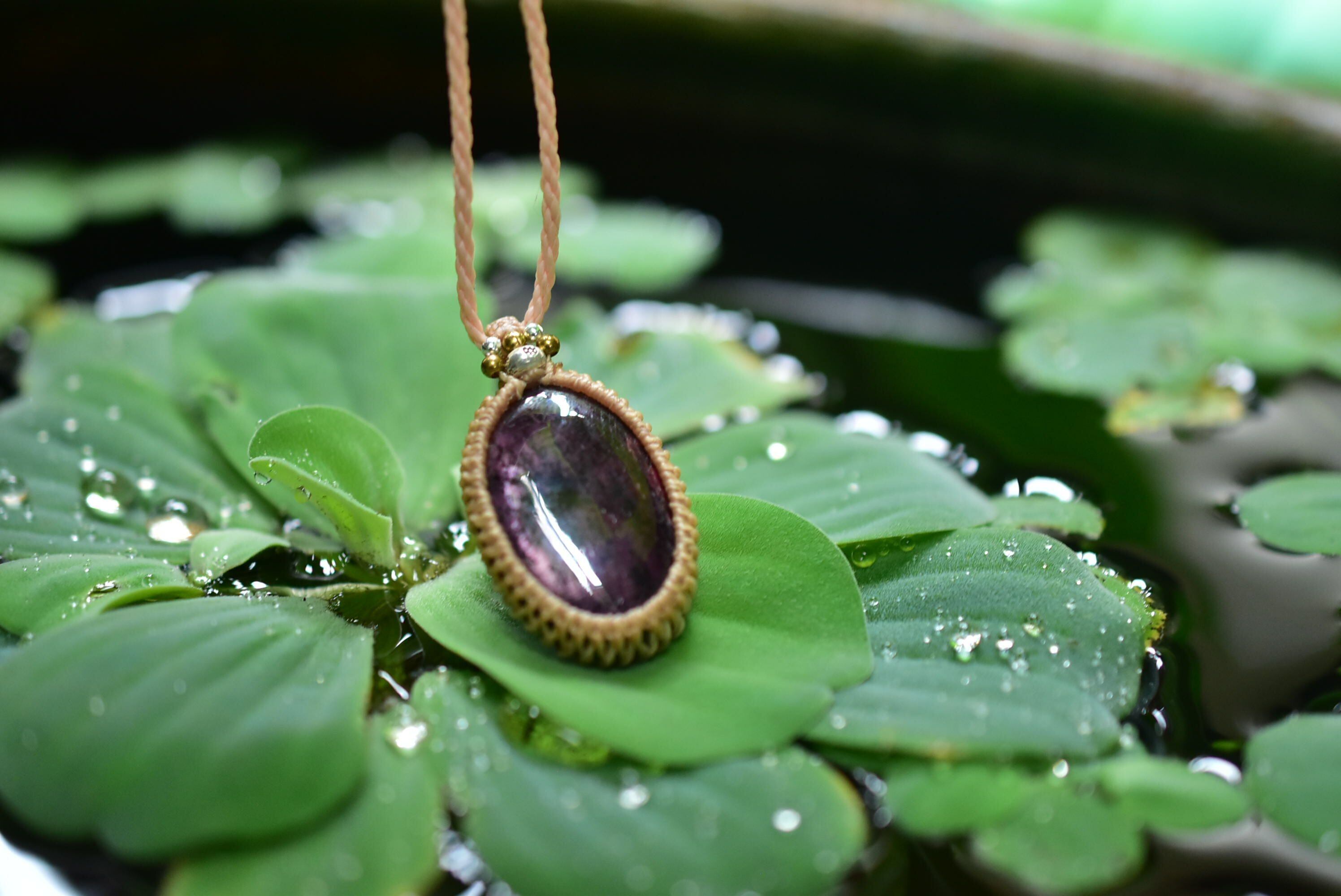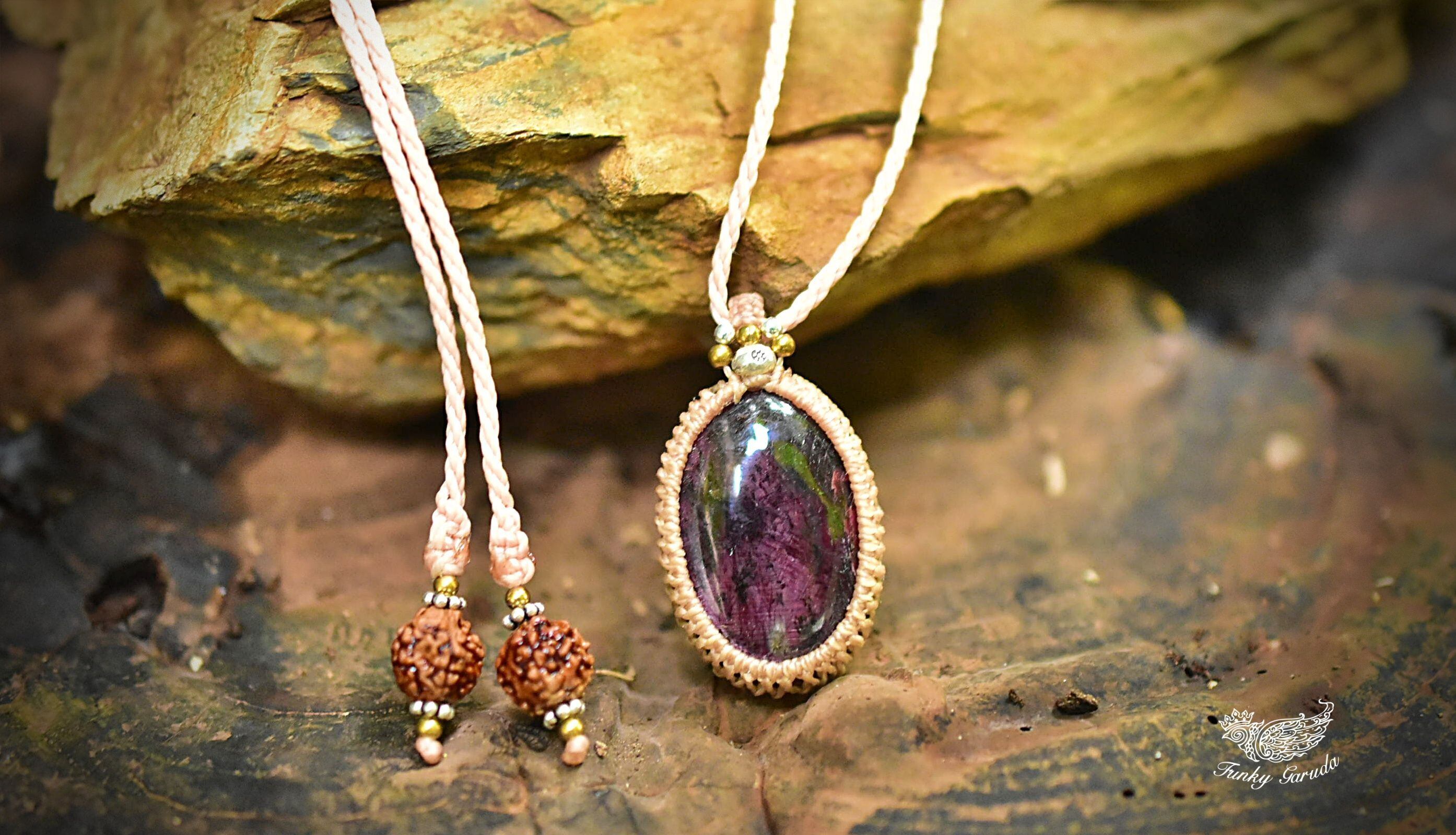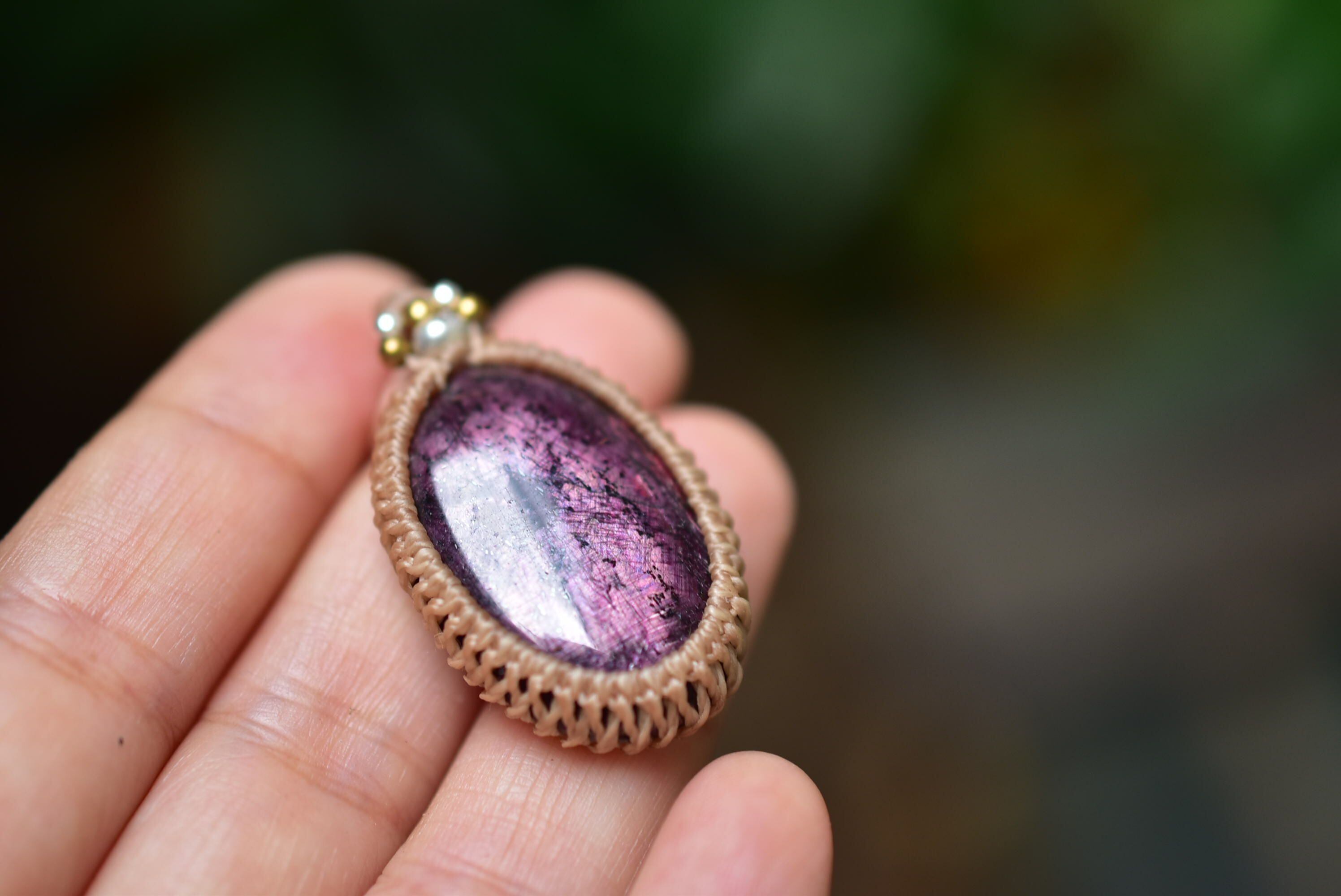 上質なルビーを、シンプルなマクラメペンダントに仕上げました。