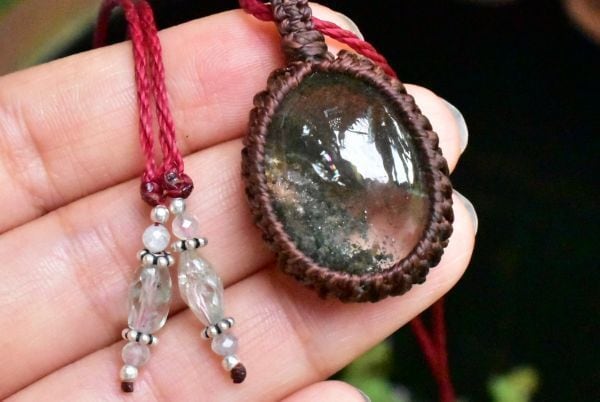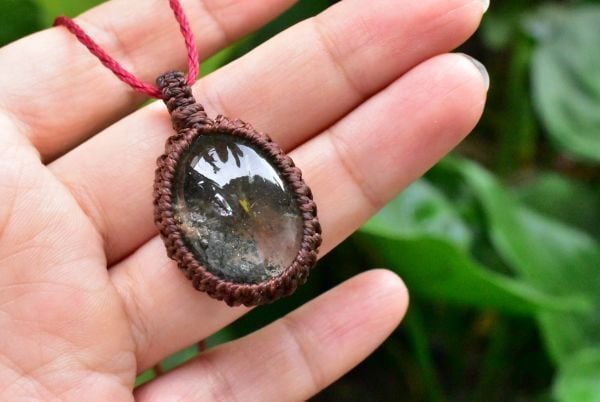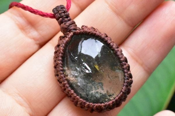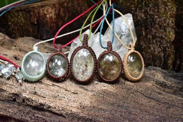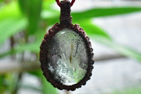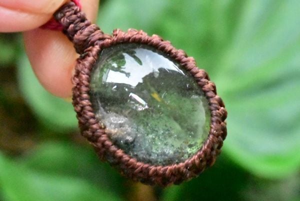 虹入り★クローライトガーデンクォーツ マクラメペンダント gary015