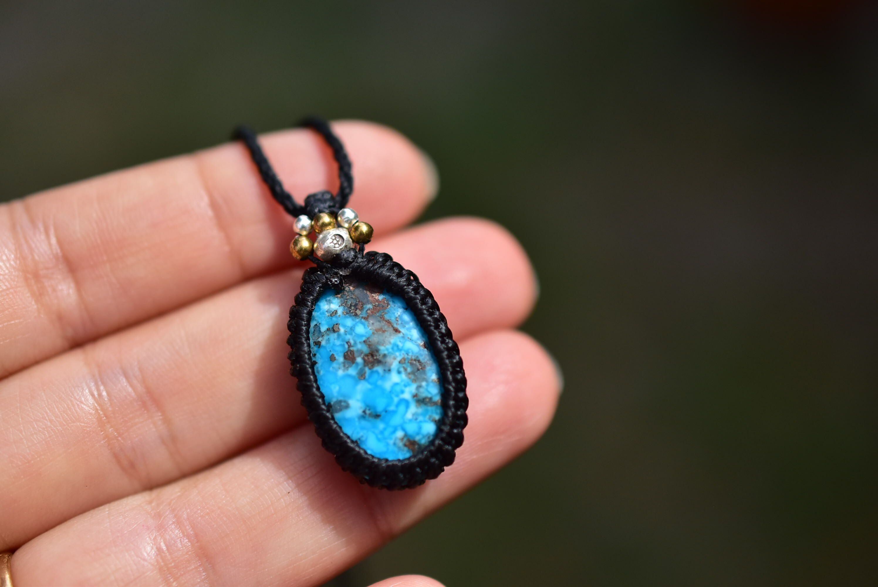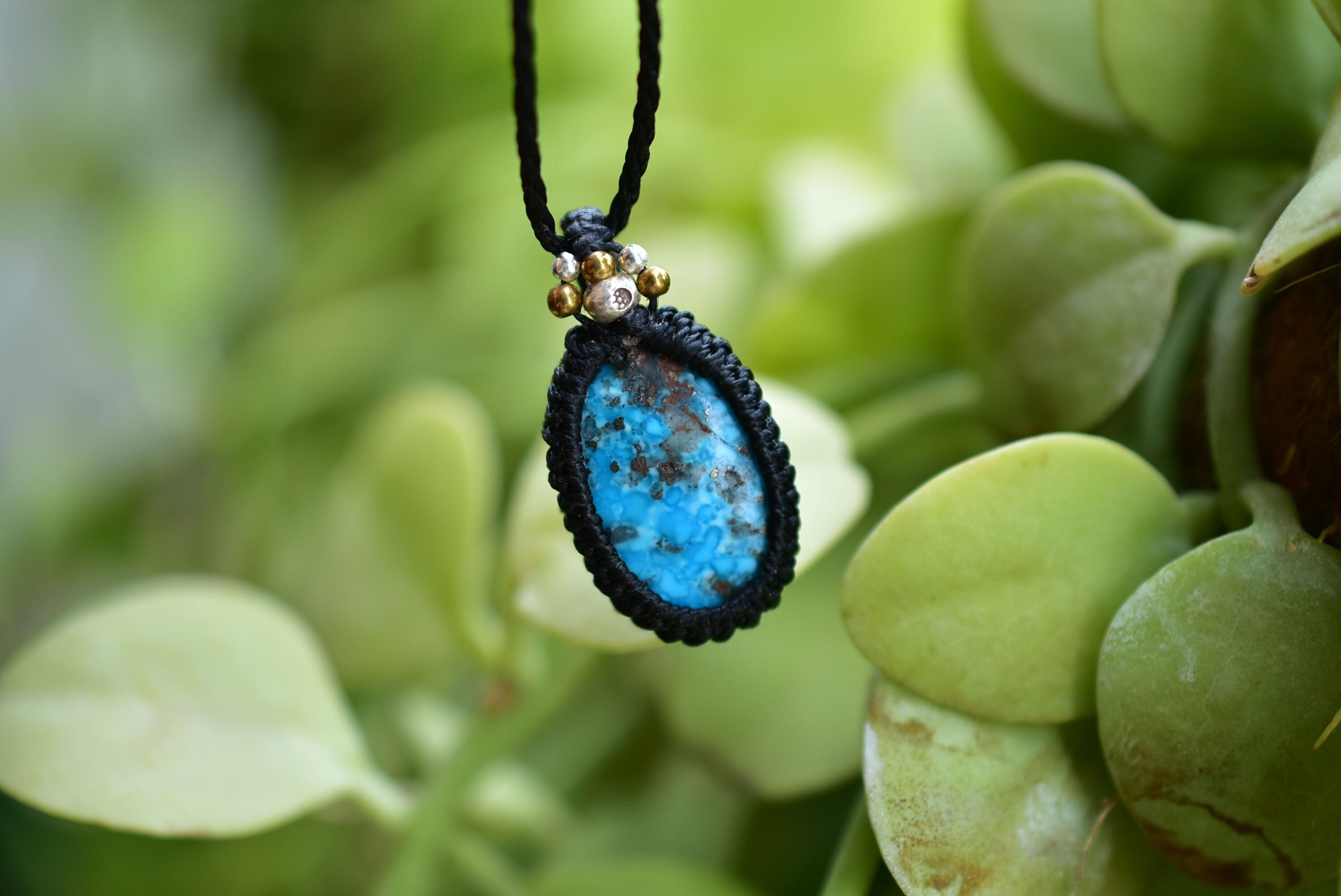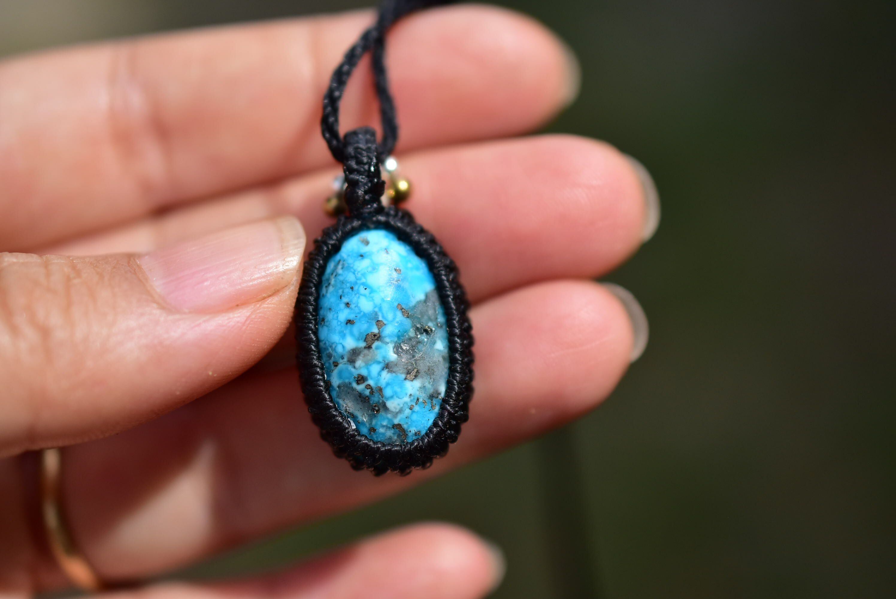 恵みの青色★ターコイズ マクラメペンダント tury010