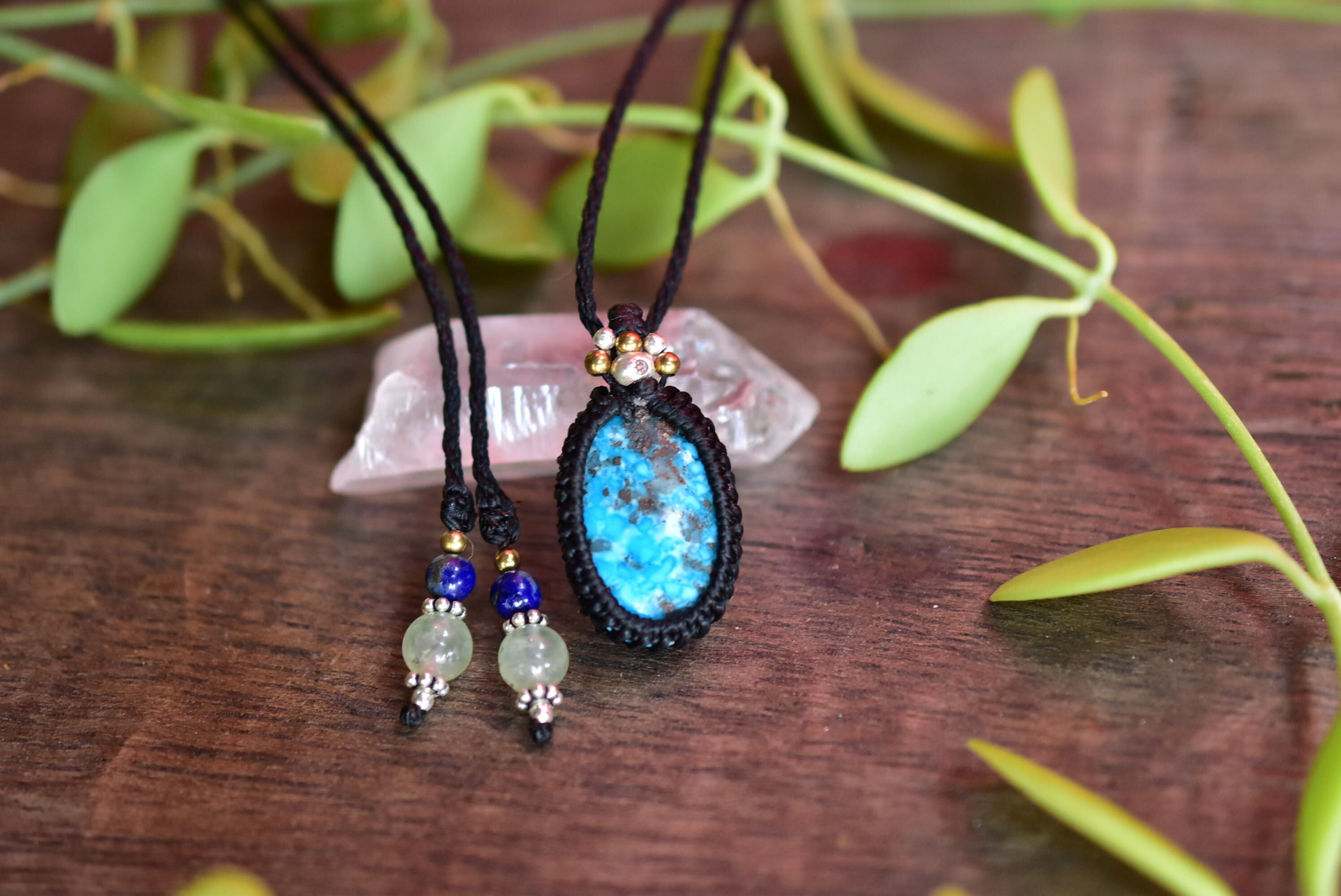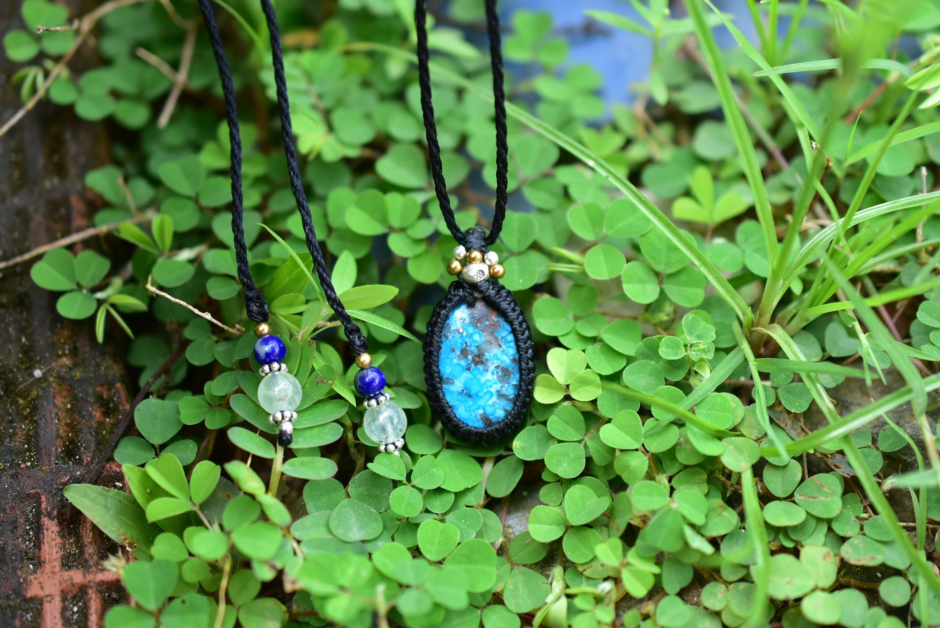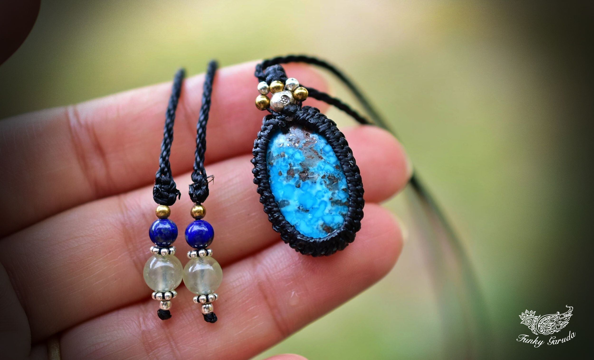 恵みの青色★ターコイズ マクラメペンダント tury010