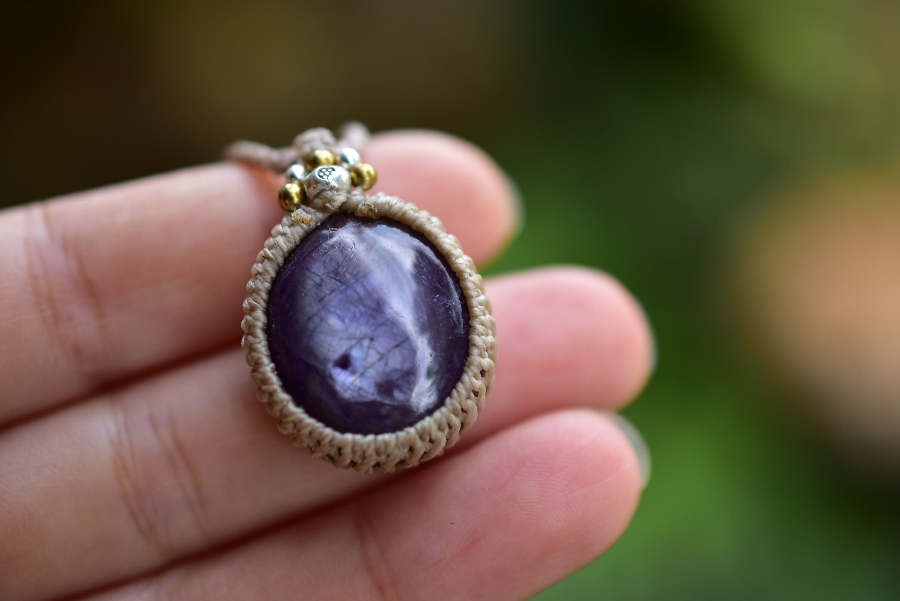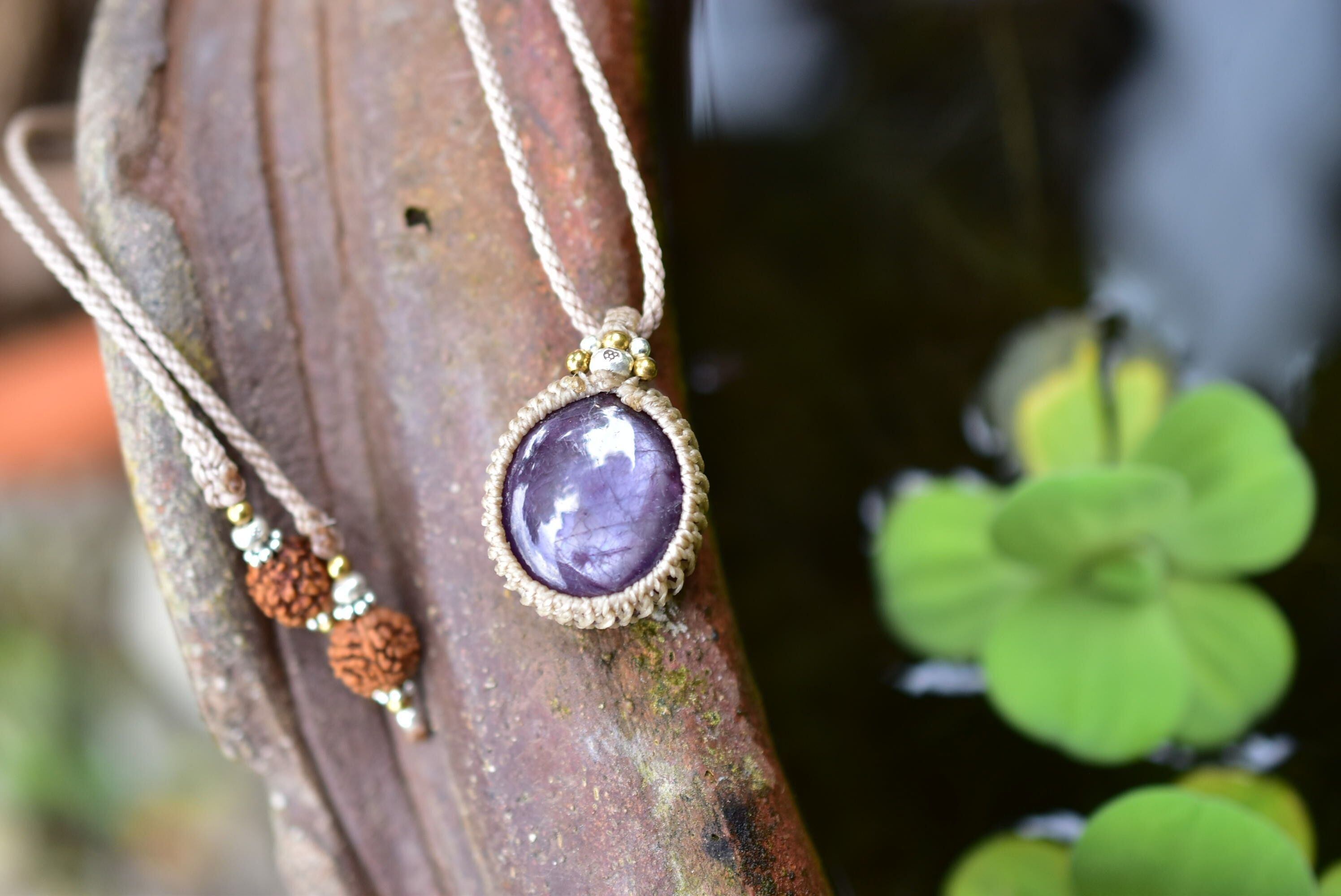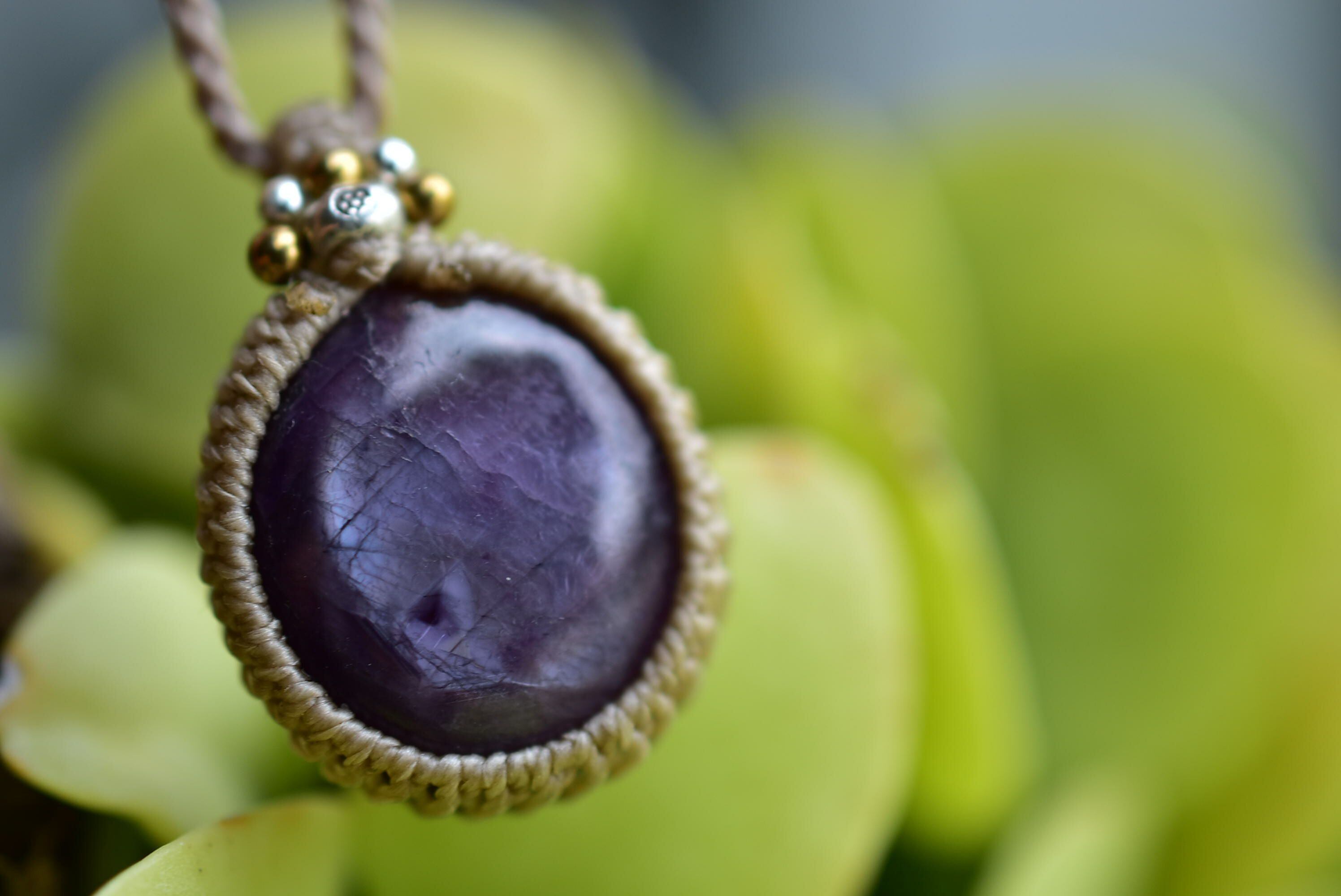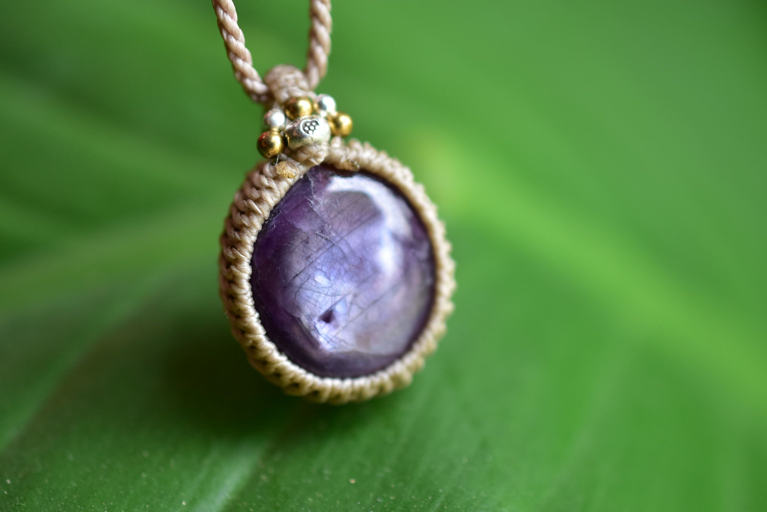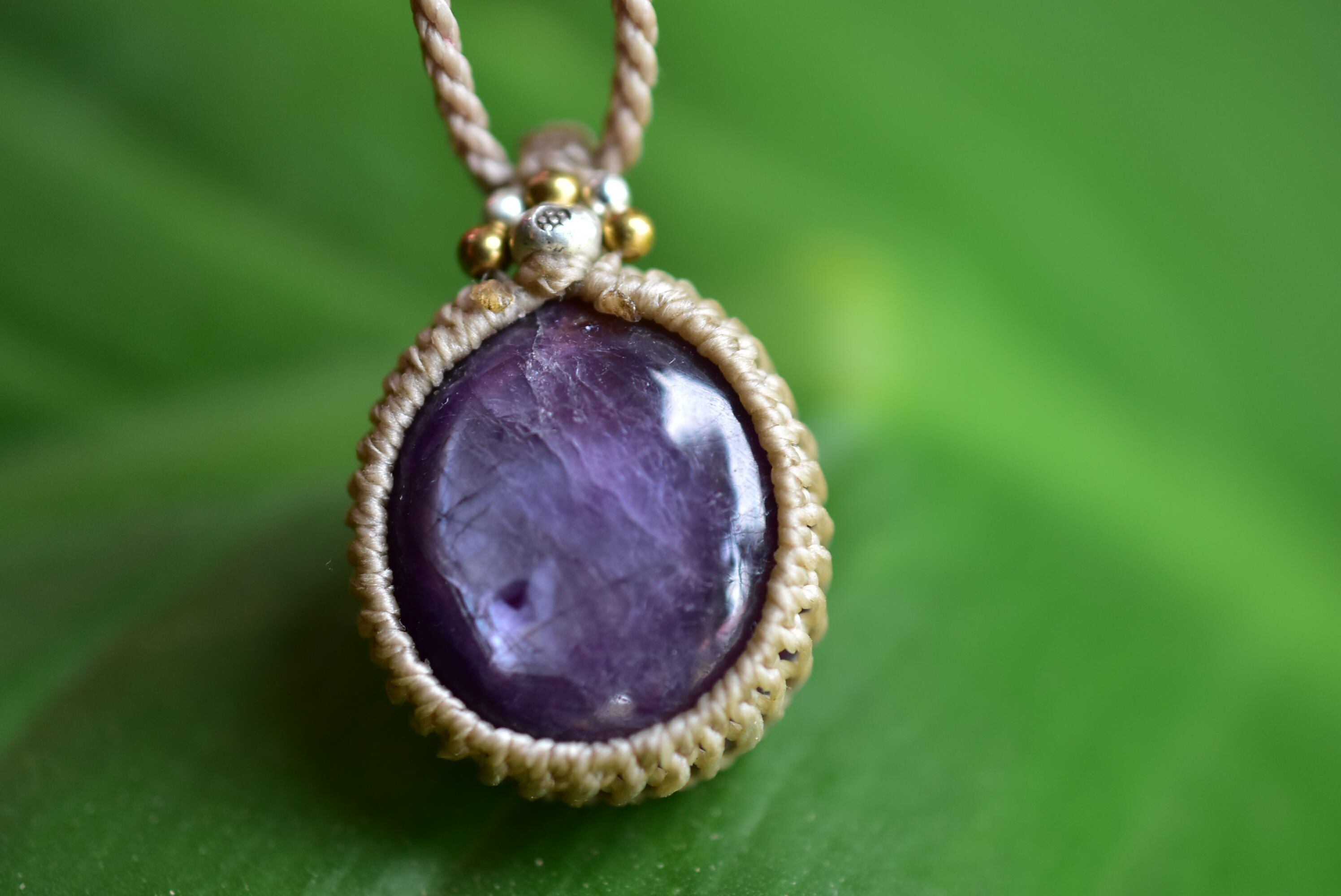艶やかな紫★スタールビー シンプルマクラメペンダント rubyy011