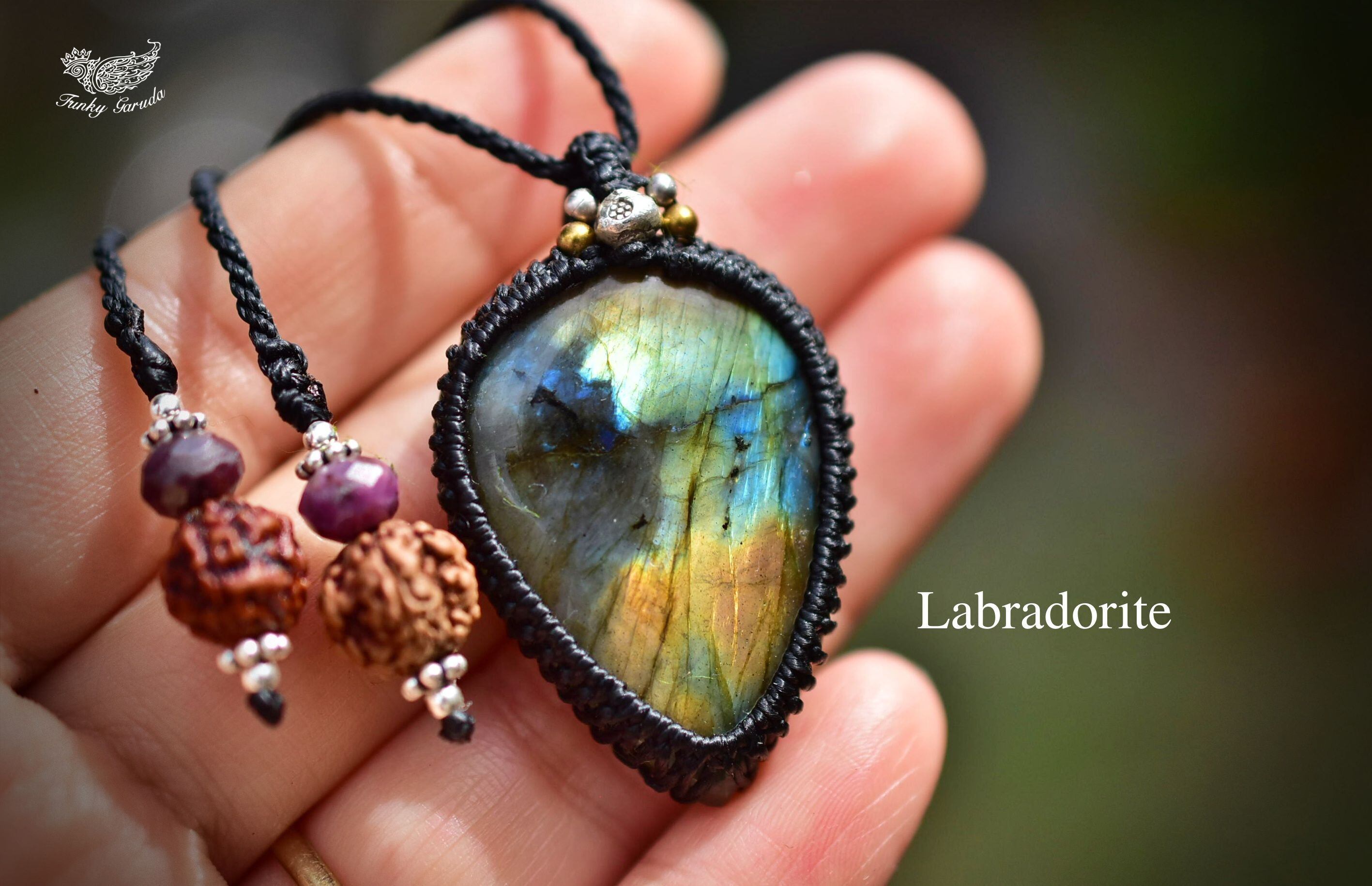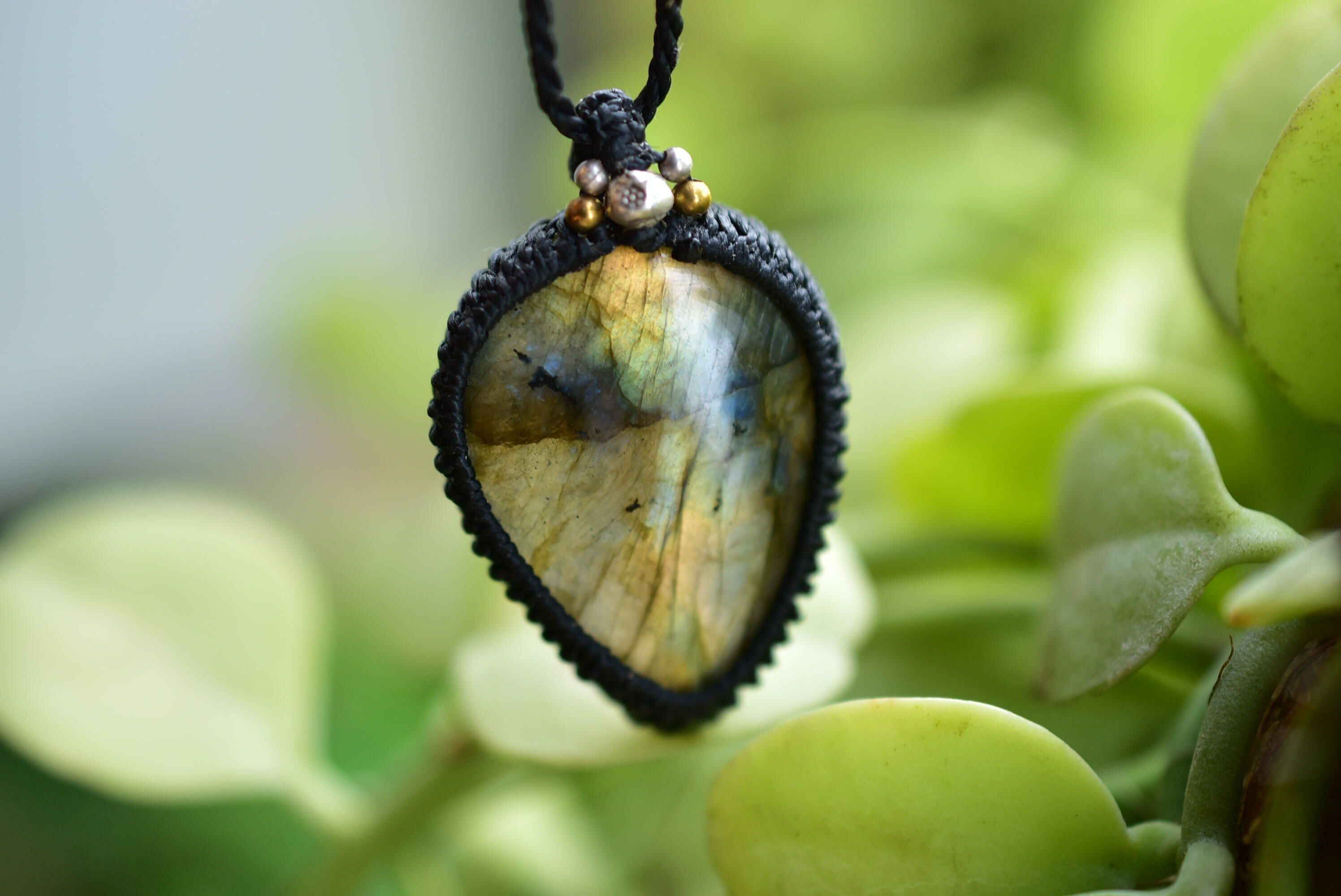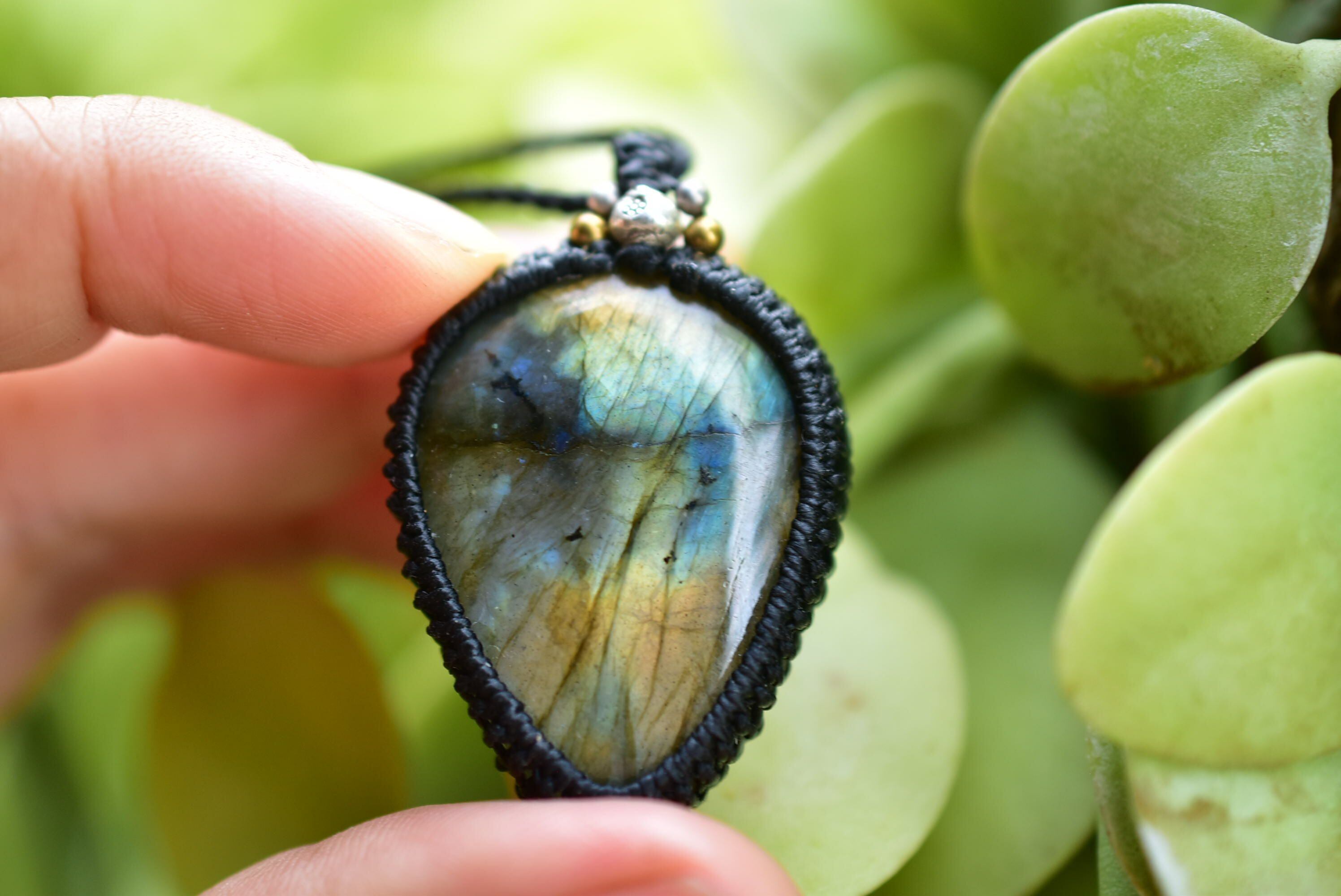 幻の蝶★ラブラドライトマクラメペンダント lay016