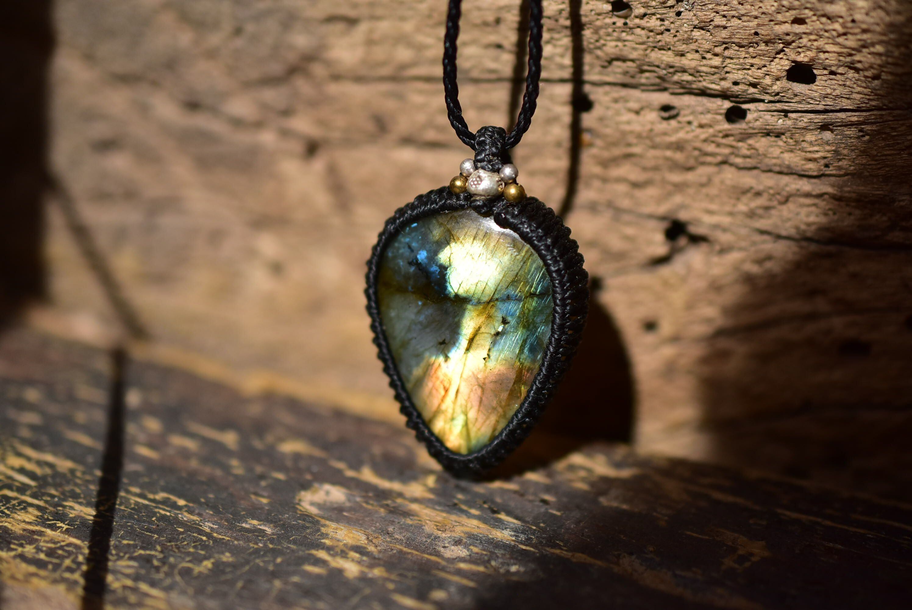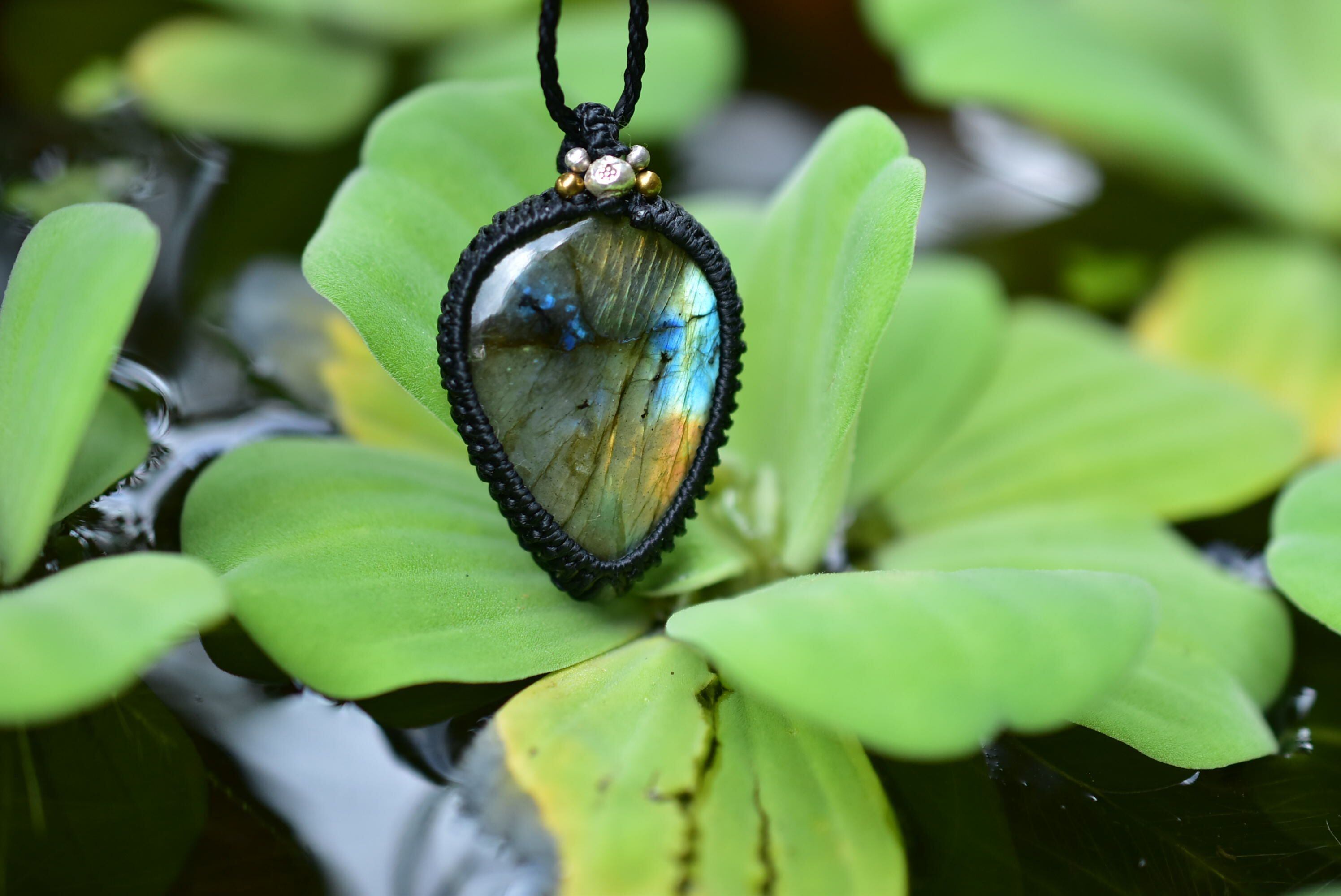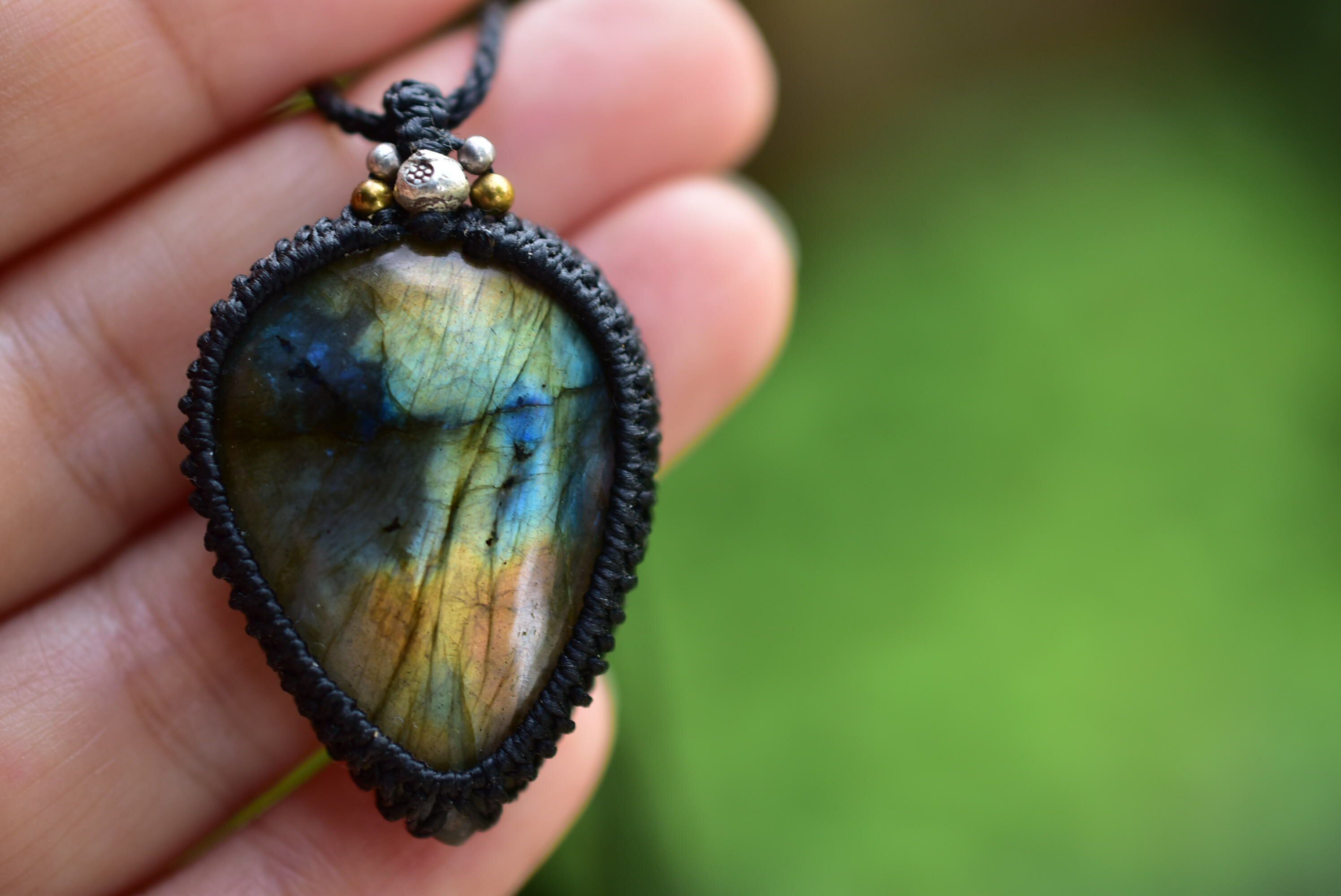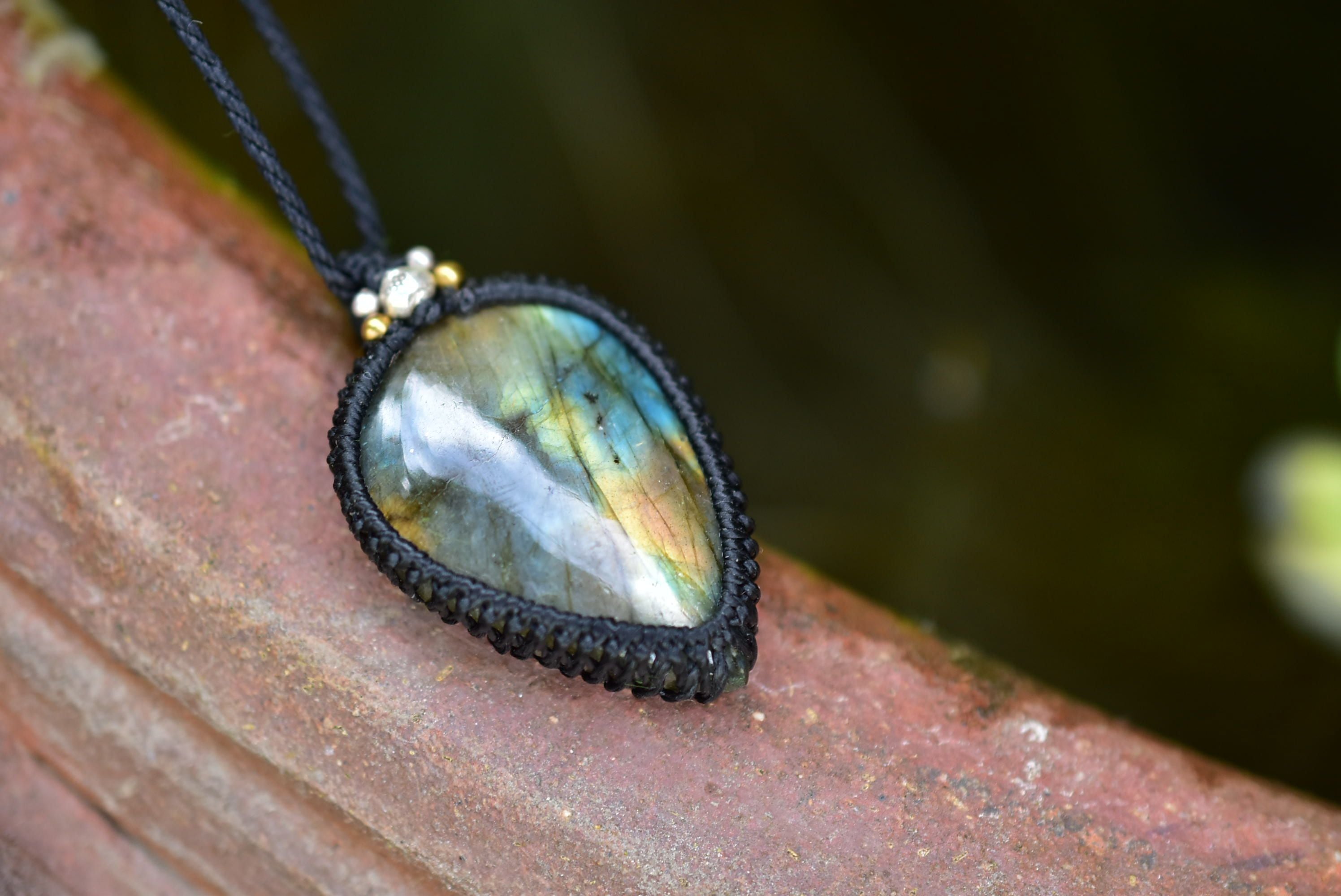 幻の蝶★ラブラドライトマクラメペンダント lay016