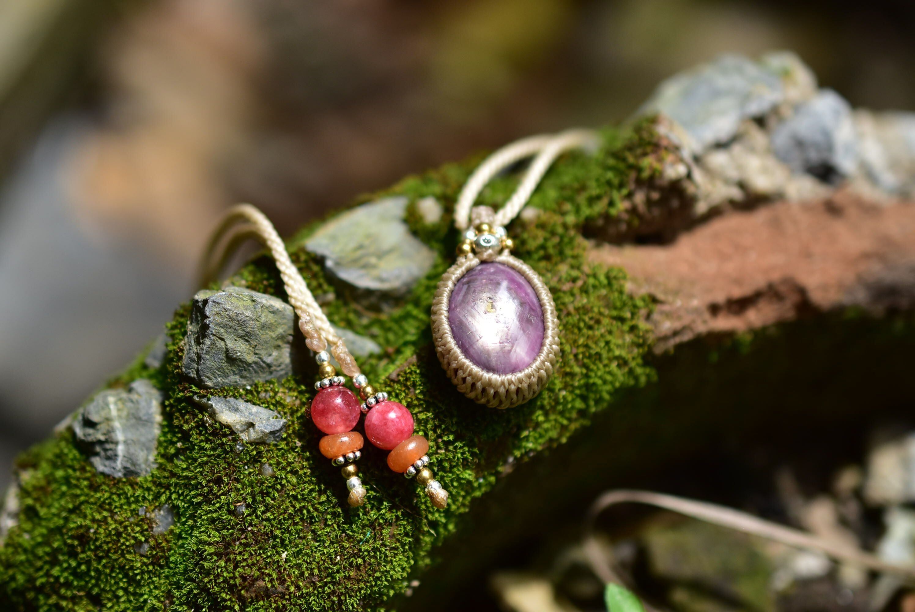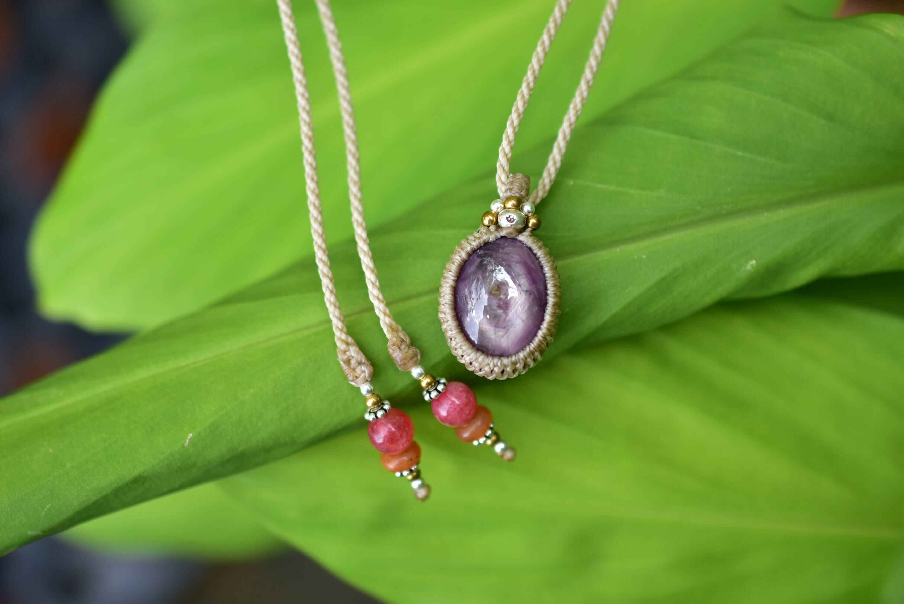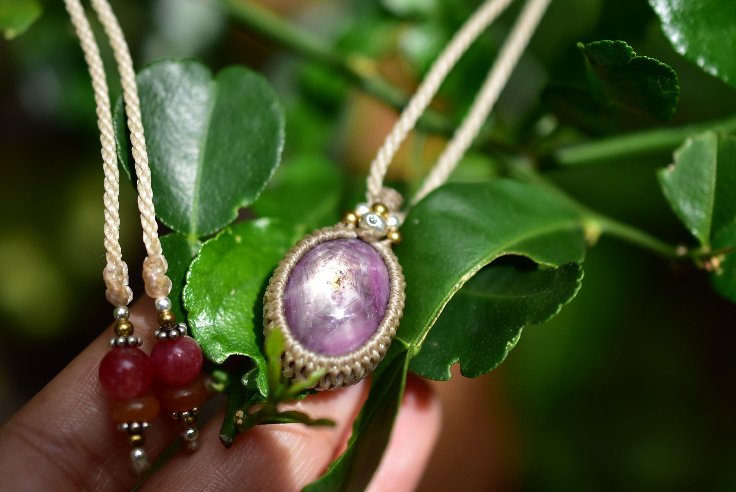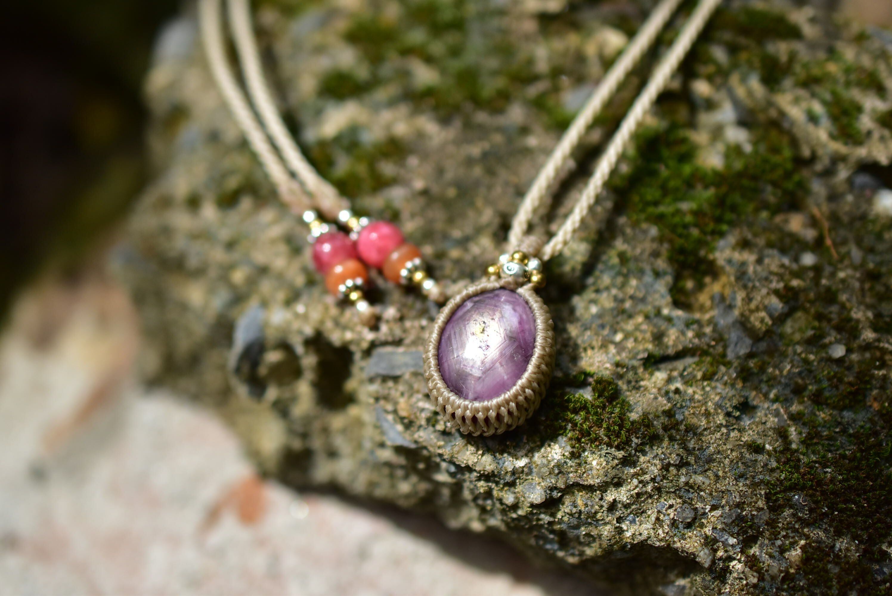 艶めく華★スタールビー シンプルマクラメペンダント rubyy013